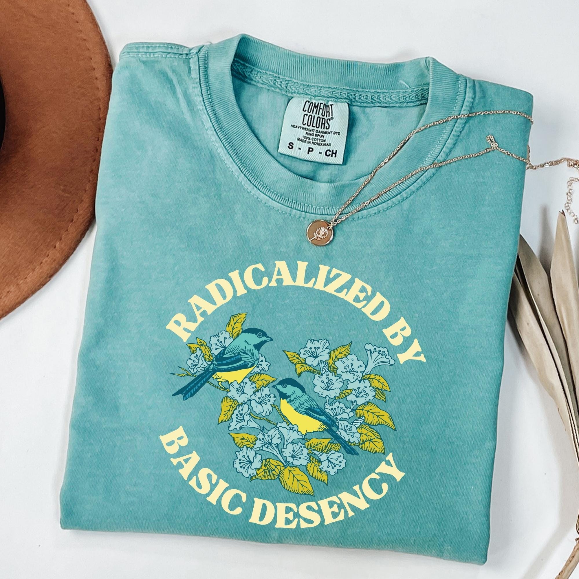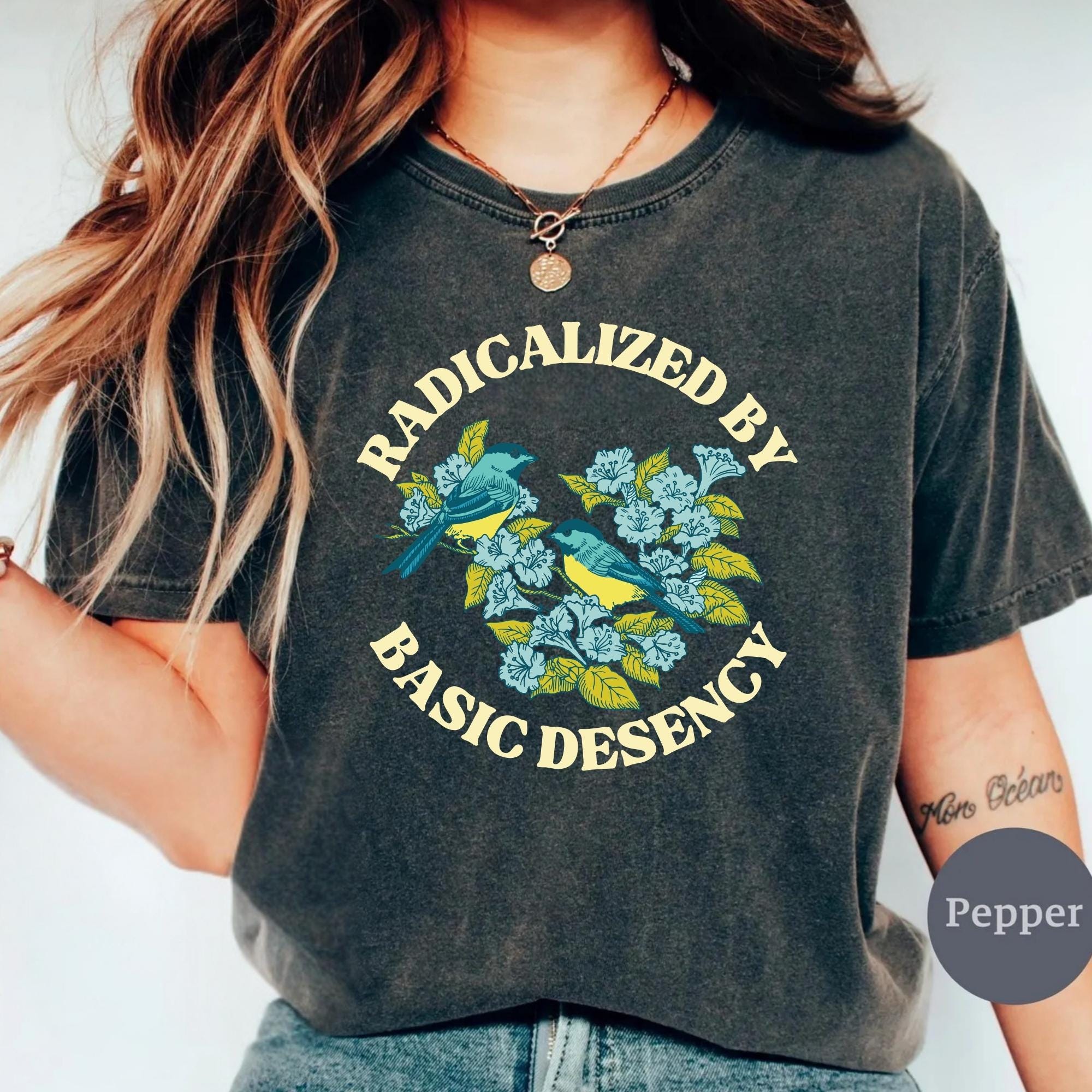 Radicalized By Basic Decency Shirt, Political Protest Tshirt, Feminist Activist Gift, Woman's Liberal Shirt, Aesthetic Social Justice Tee ๐ Your Everyday Go-To โ Unique Design Comfort Colors Unisex T-Shirt and Sweatshirt
