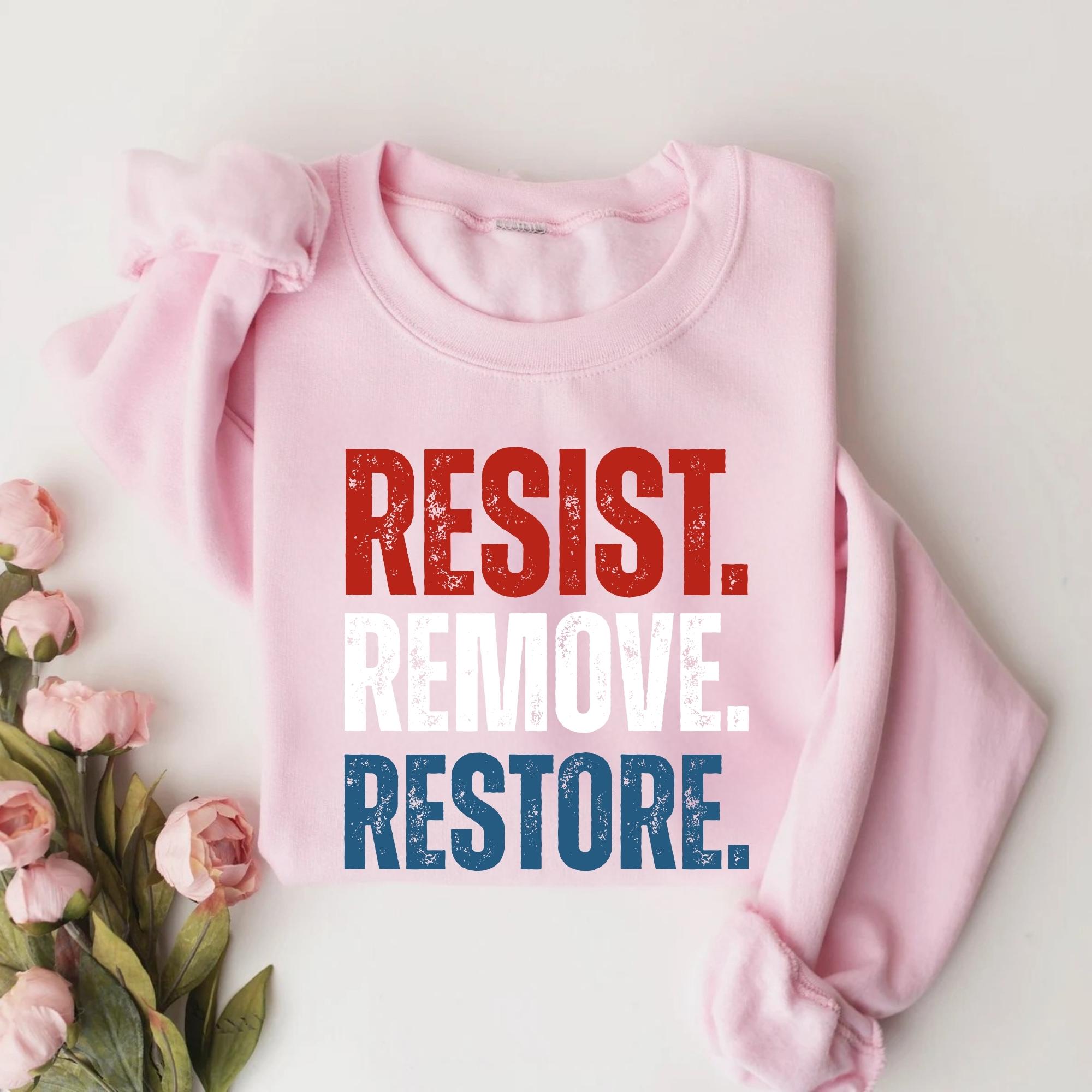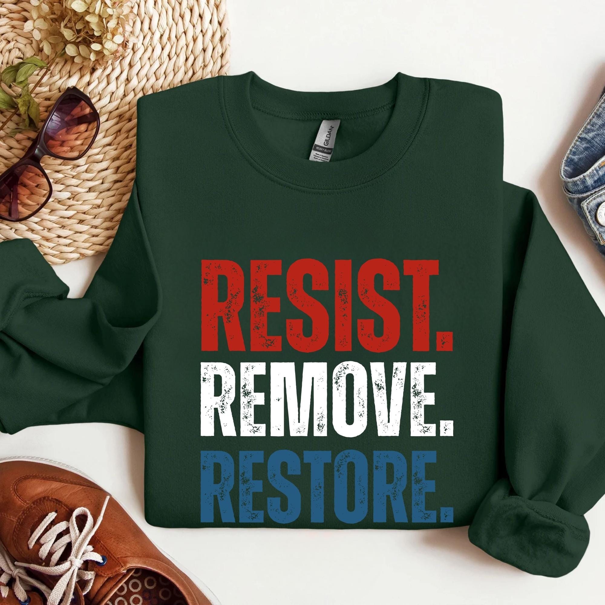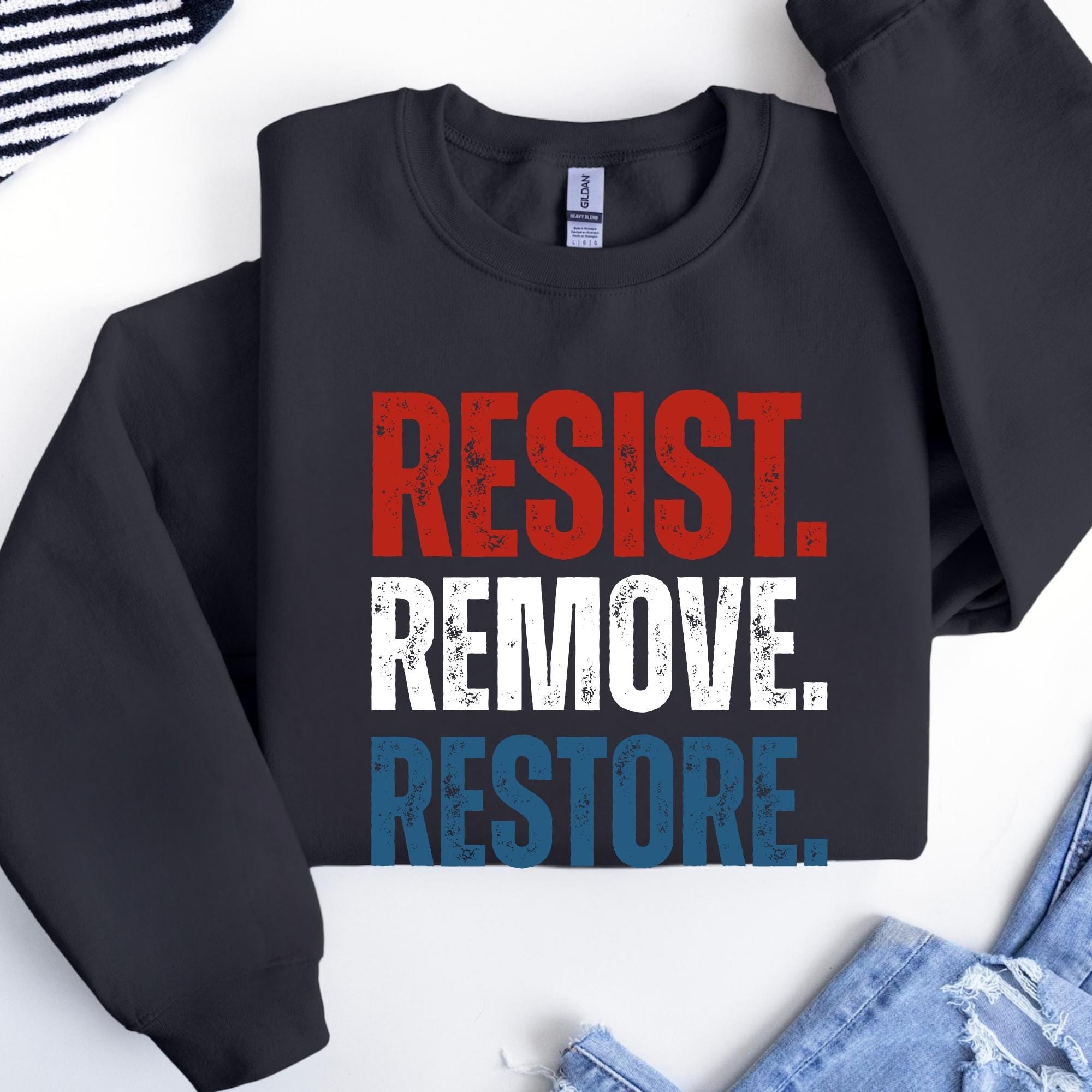 Resist Remove Restore shirt is a bold political protest t-shirt designed for activists, liberals, and resistance supporters. Resist Remove Restore Sweatshirt, Political Protest T Shirt, Anti Trump Activist Sweatshirt, Liberal Resistance Graphic Tee π Your Everyday Go-To β Unique Design Unisex SweatShirt and Hoodie