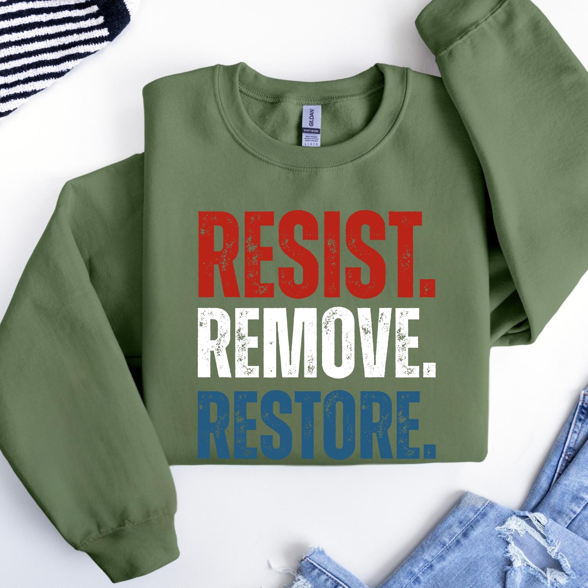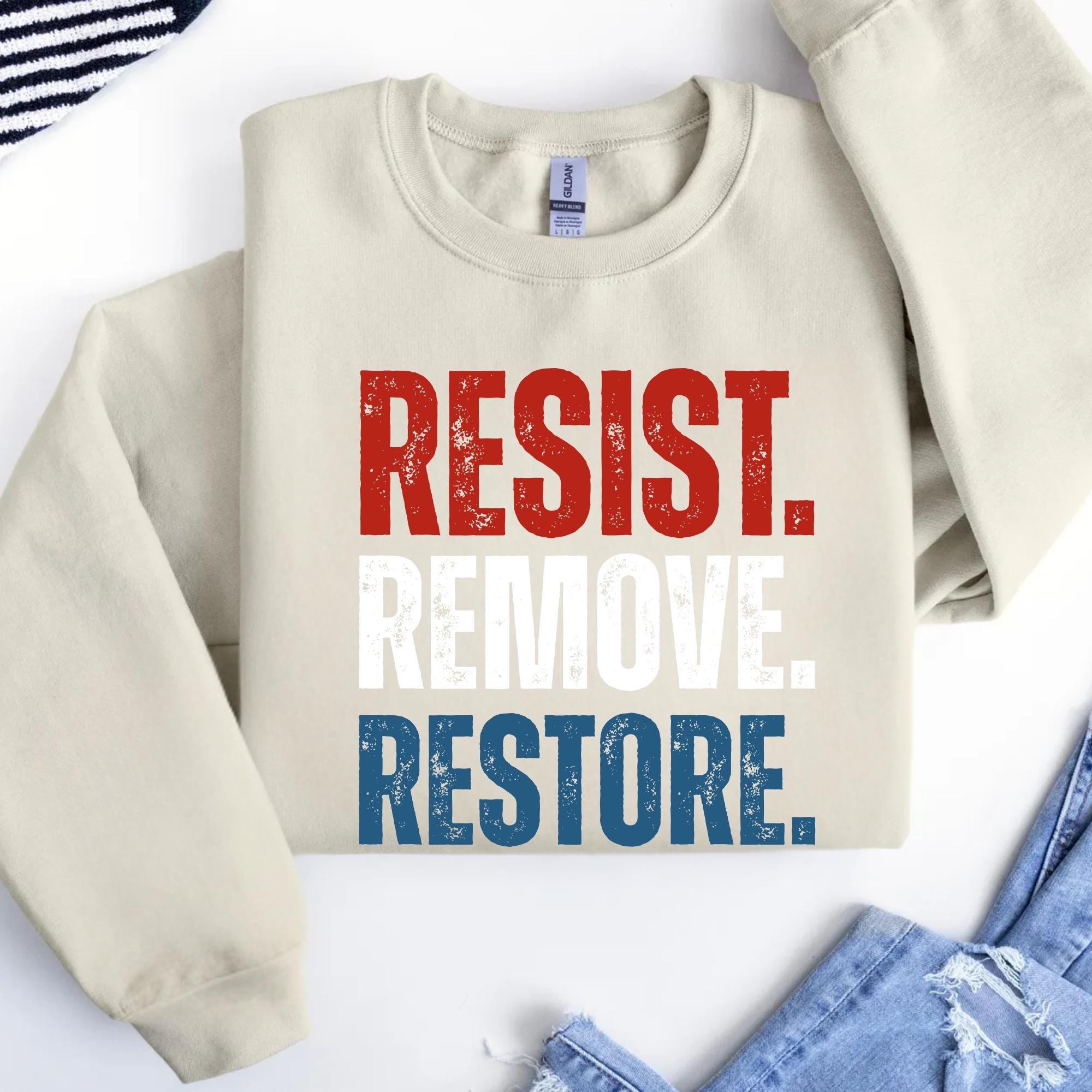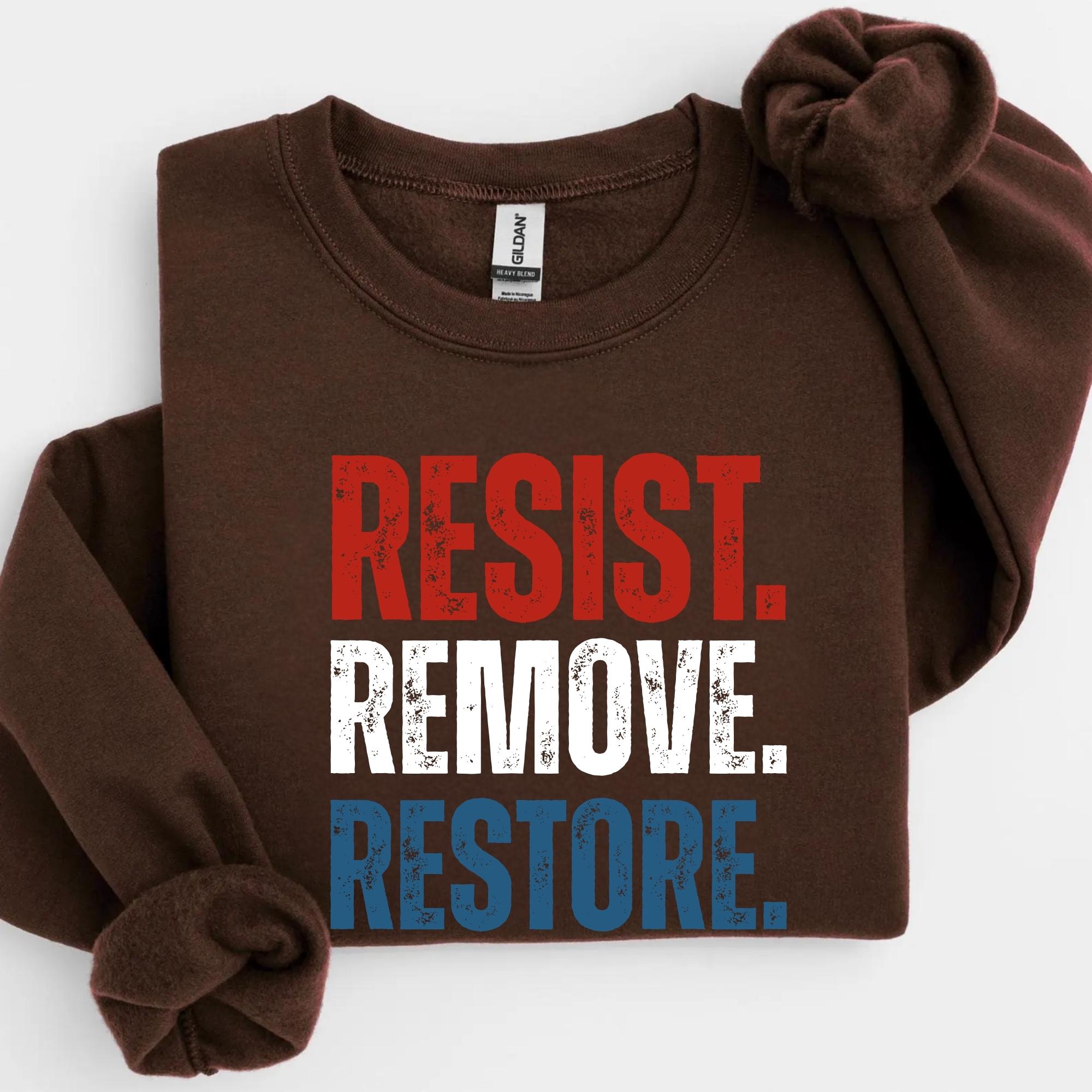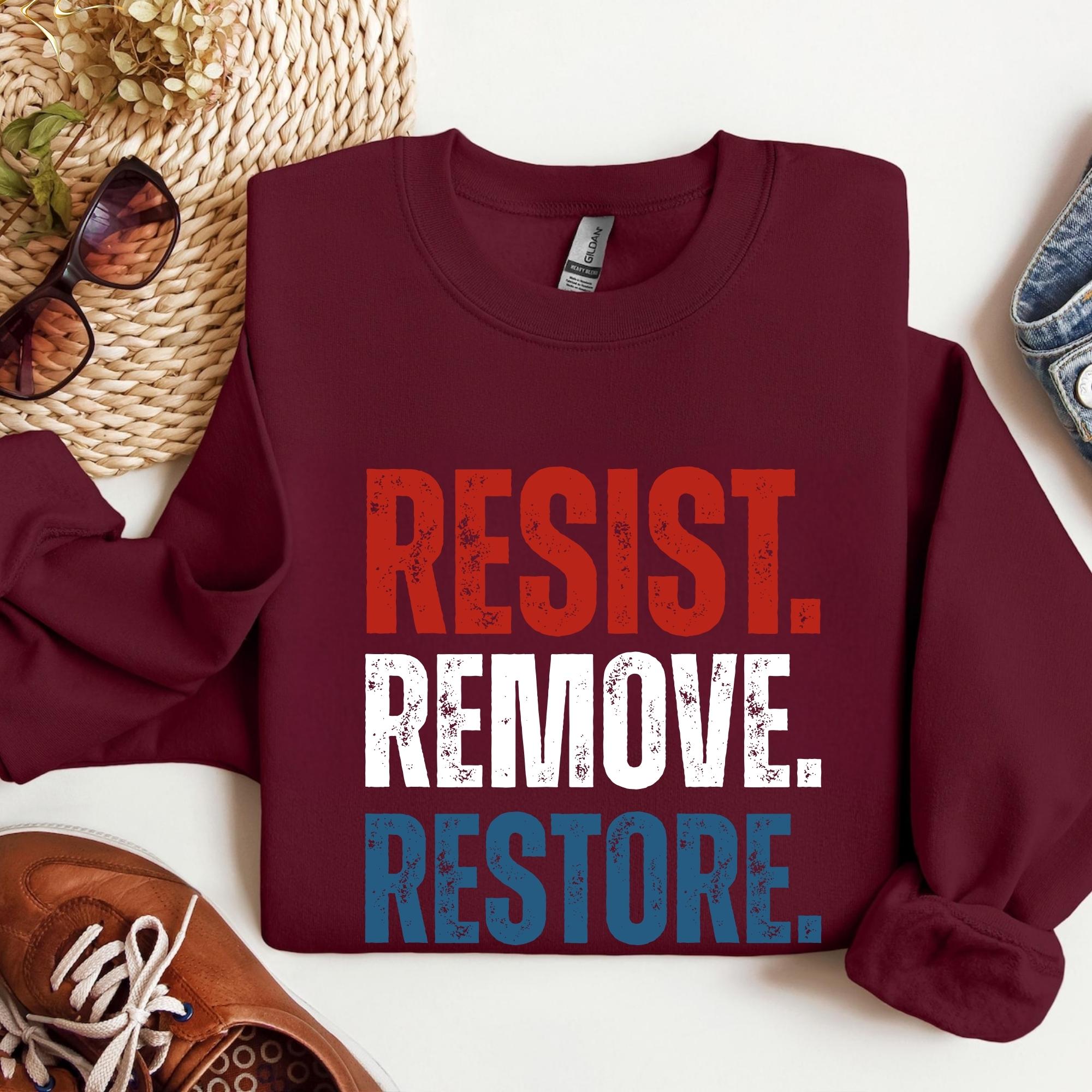 Resist Remove Restore shirt is a bold political protest t-shirt designed for activists, liberals, and resistance supporters. Resist Remove Restore Sweatshirt, Political Protest T Shirt, Anti Trump Activist Sweatshirt, Liberal Resistance Graphic Tee π Your Everyday Go-To β Unique Design Unisex SweatShirt and Hoodie