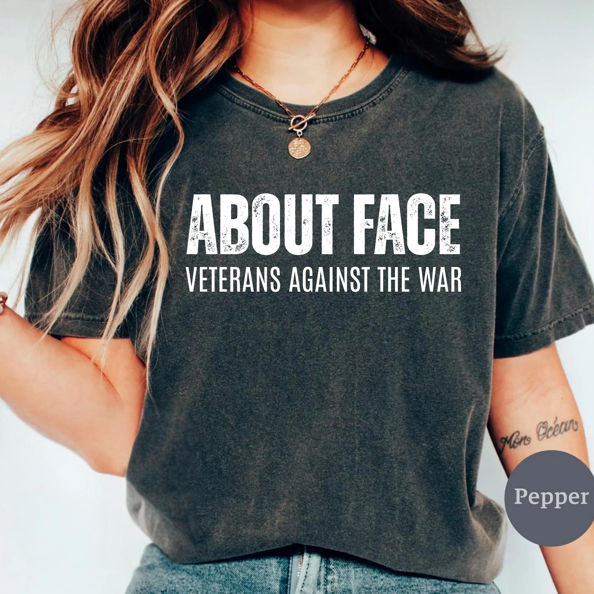 About Face Veterans Against the War shirt is a powerful anti-war protest t-shirt designed to honor veterans who stand for peace, justice, and accountability. About Face Veterans Against the War Shirt, Anti War Protest Shirt, Veteran Activist Tee, Peace Political Statement Shirt, Comfort Colors Tee