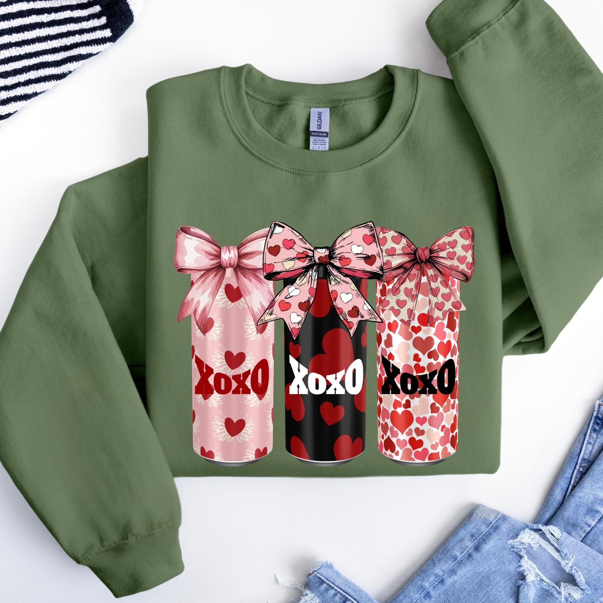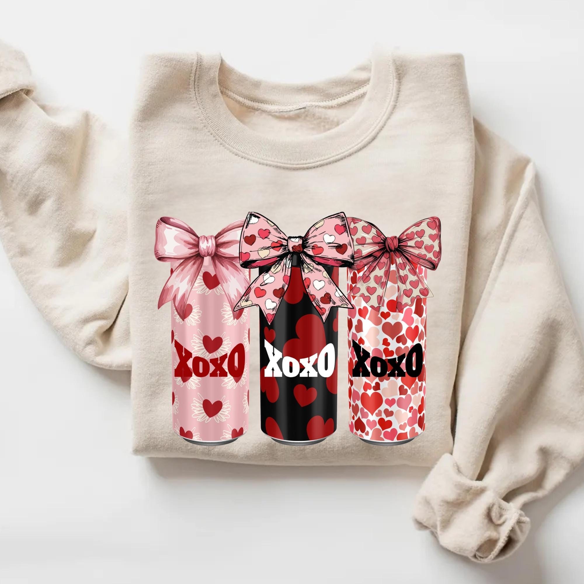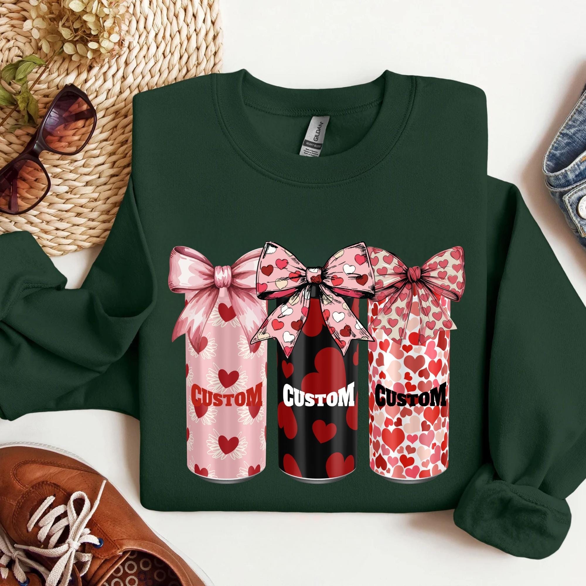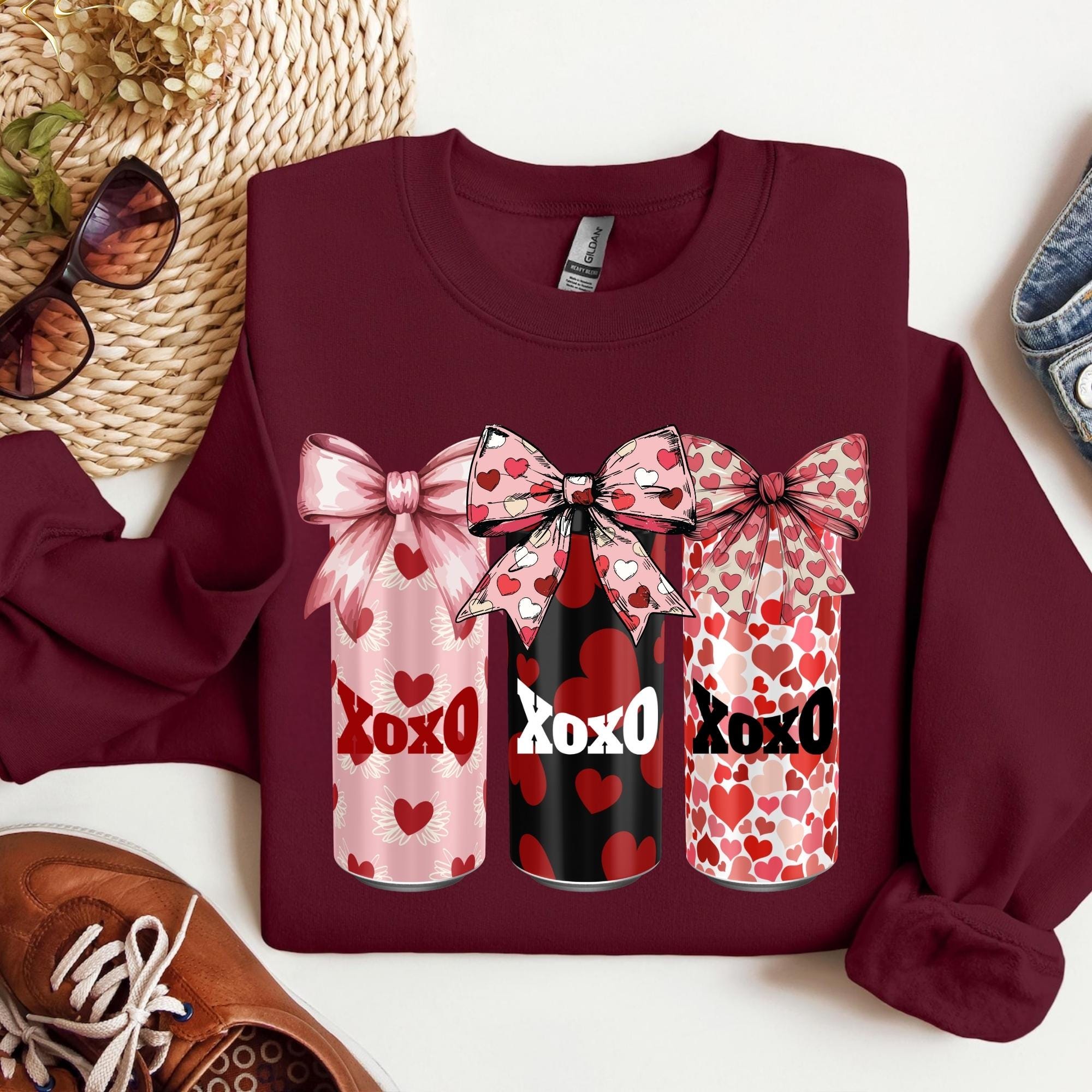 Personalized XOXO Valentine Sweatshirt, Custom Name Heart Bow Crewneck, Romantic Valentine Gift for Her