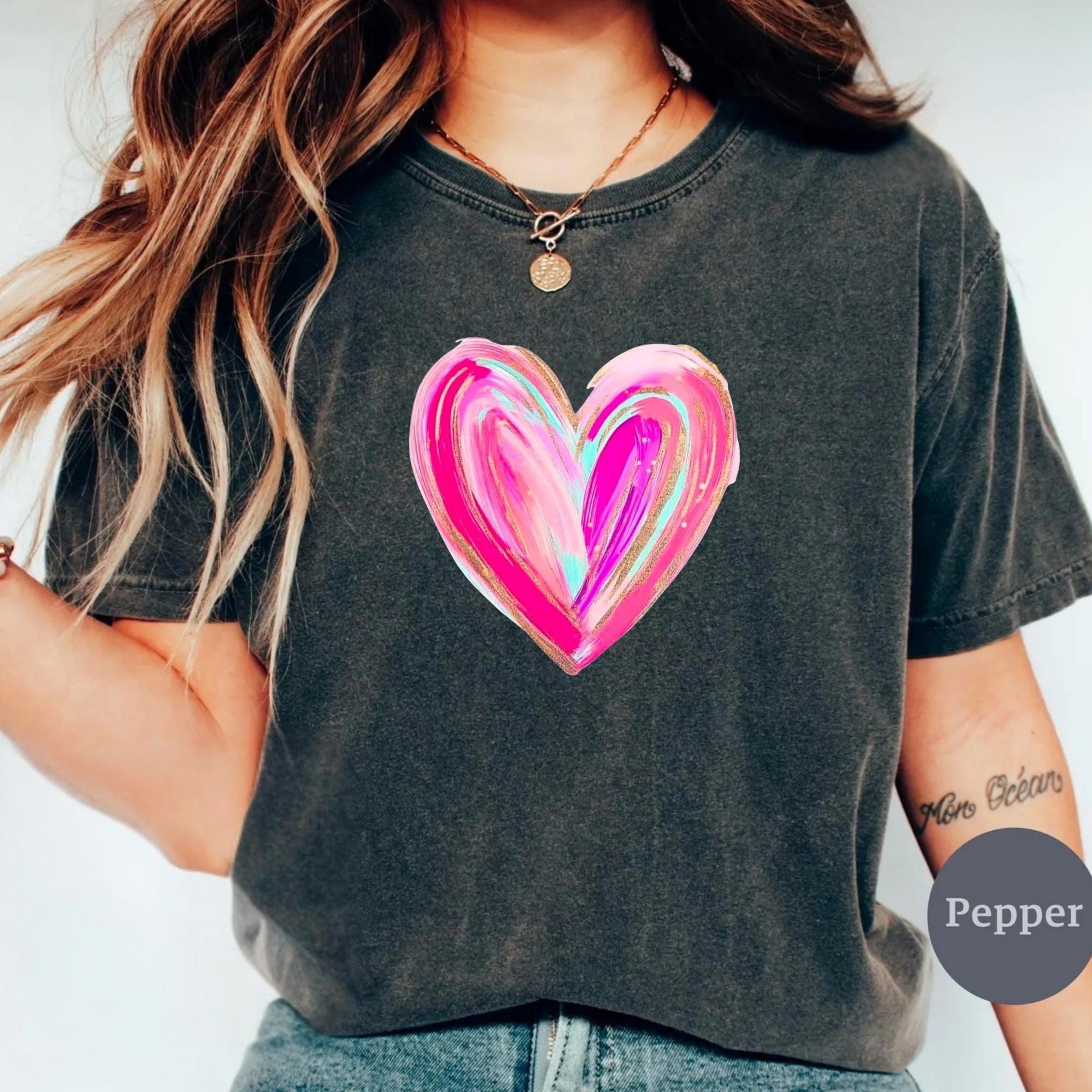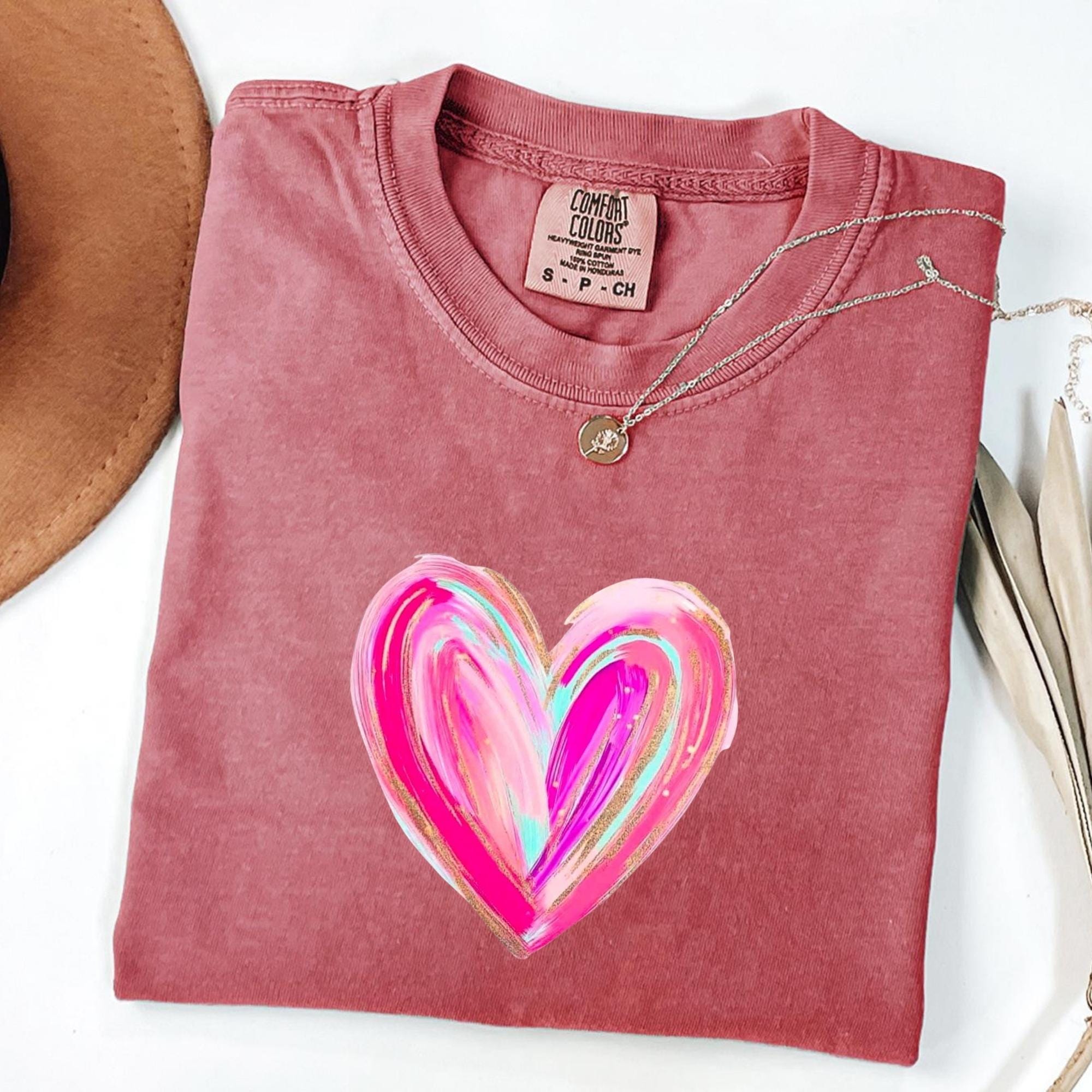 Comfort Colors® Cute Heart Shirt, Brushstroke Heart Shirt, Christmas Gift, Womens Love Shirt, Valentines Day Shirt, Coquette Valentine Tee