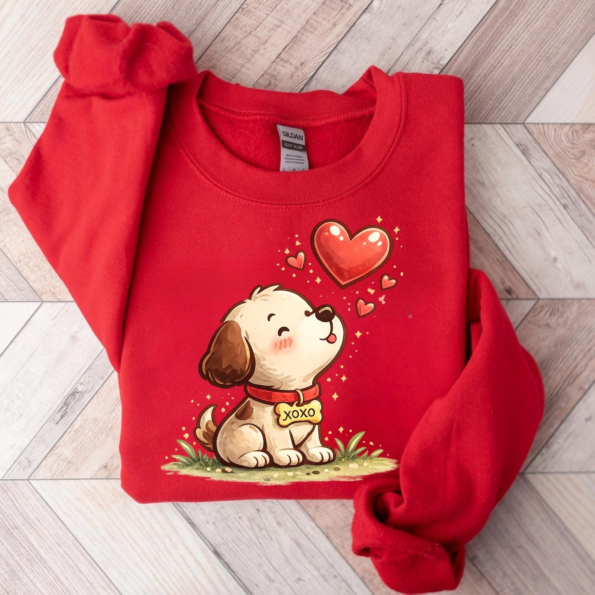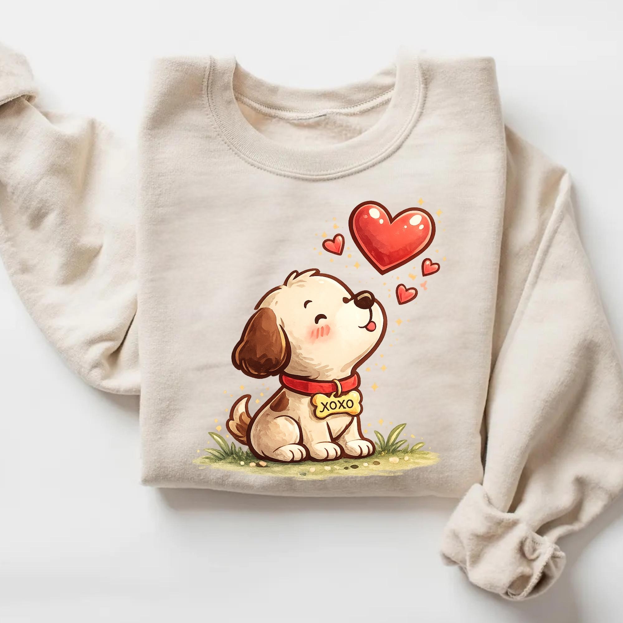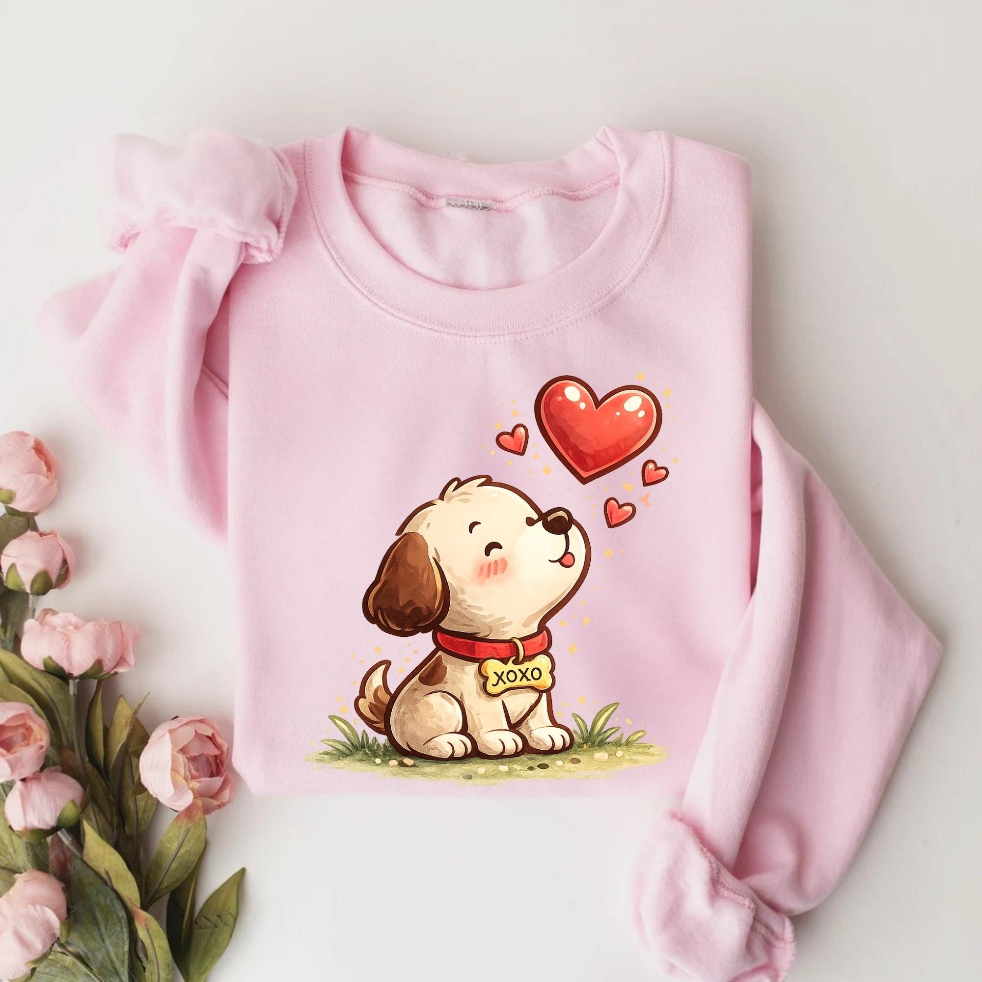 Cute Dog Valentines Sweatshirt For Him Her Kids, The Cartoon Shirt, Gift For Him, Funny Cartoon, Gift For Valentines Day