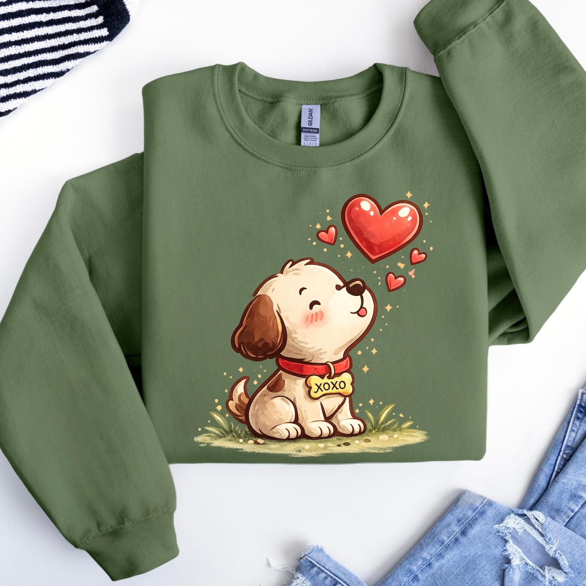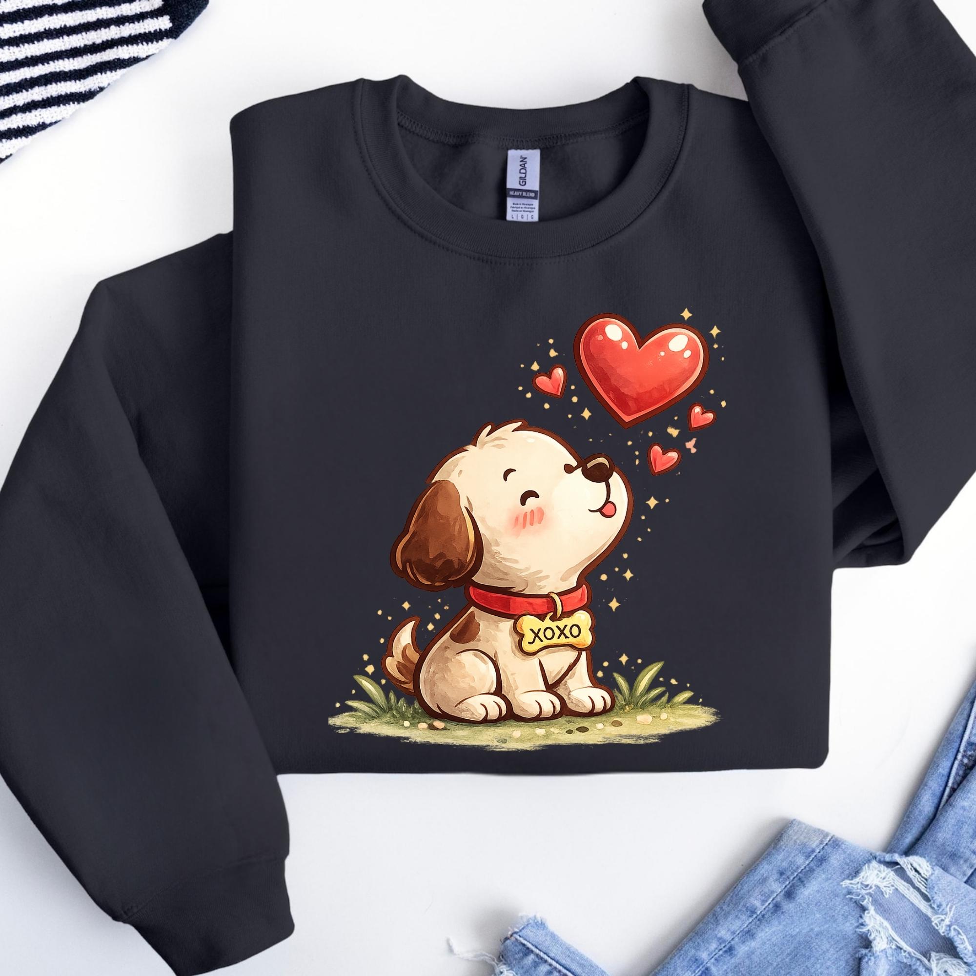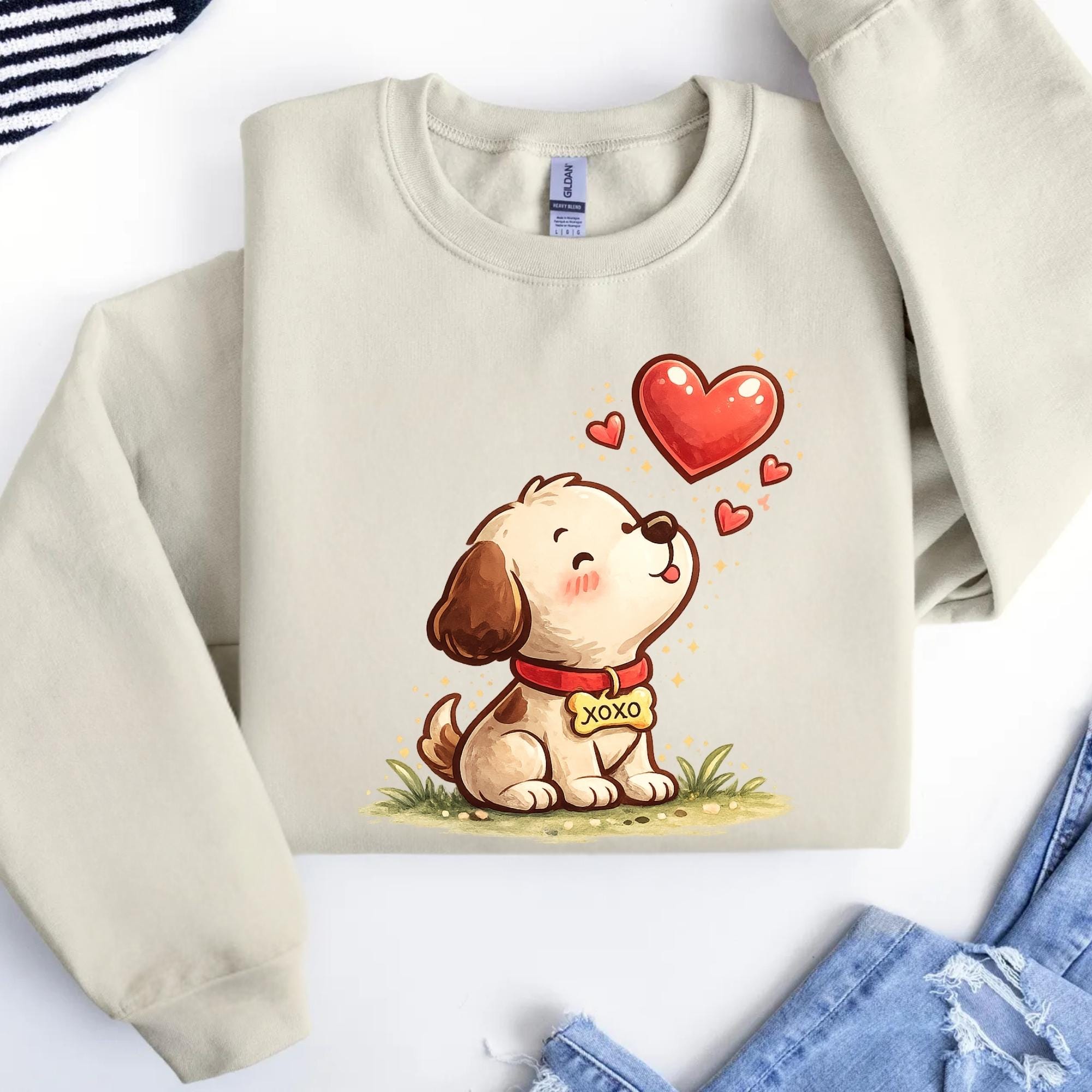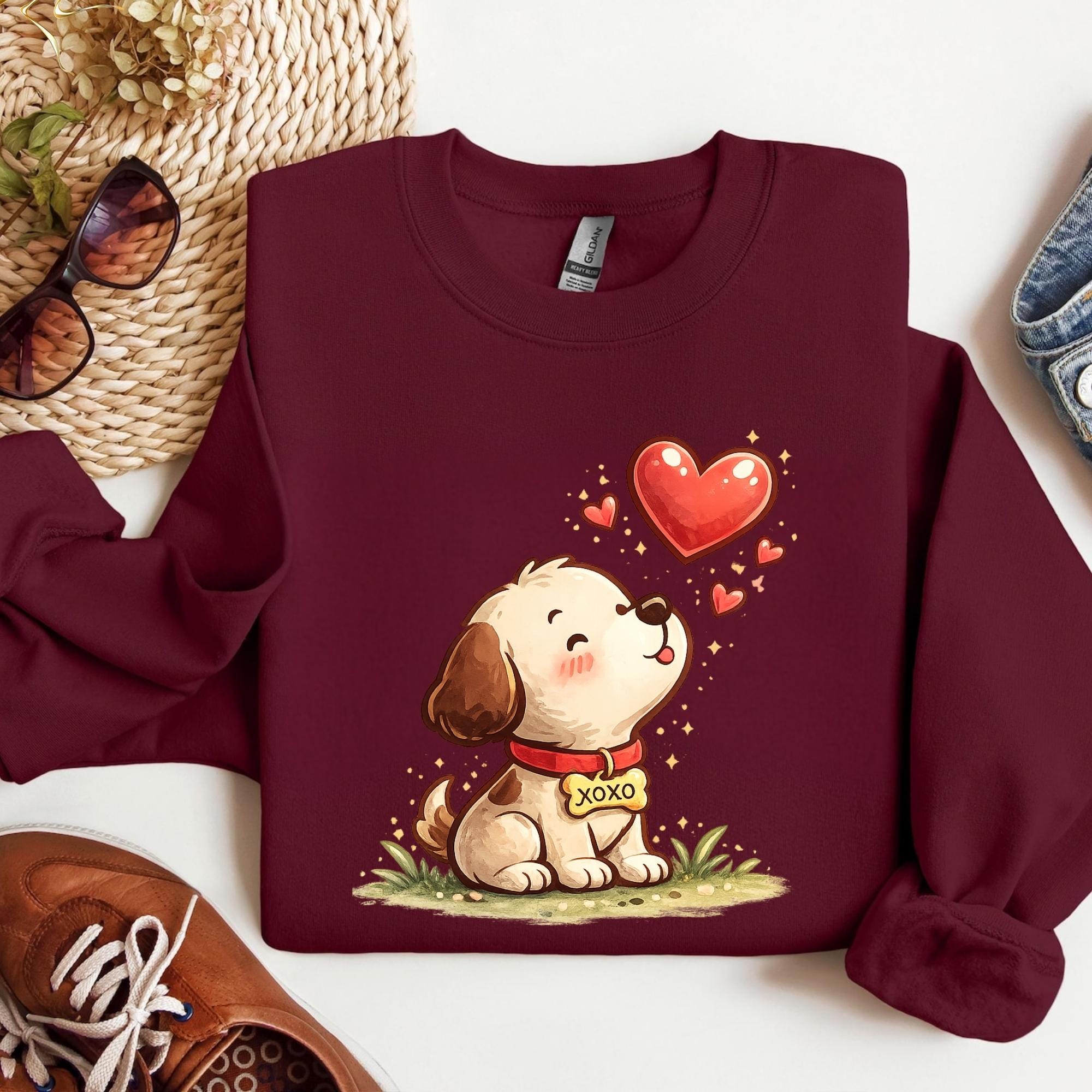 Cute Dog Valentines Sweatshirt For Him Her Kids, The Cartoon Shirt, Gift For Him, Funny Cartoon, Gift For Valentines Day