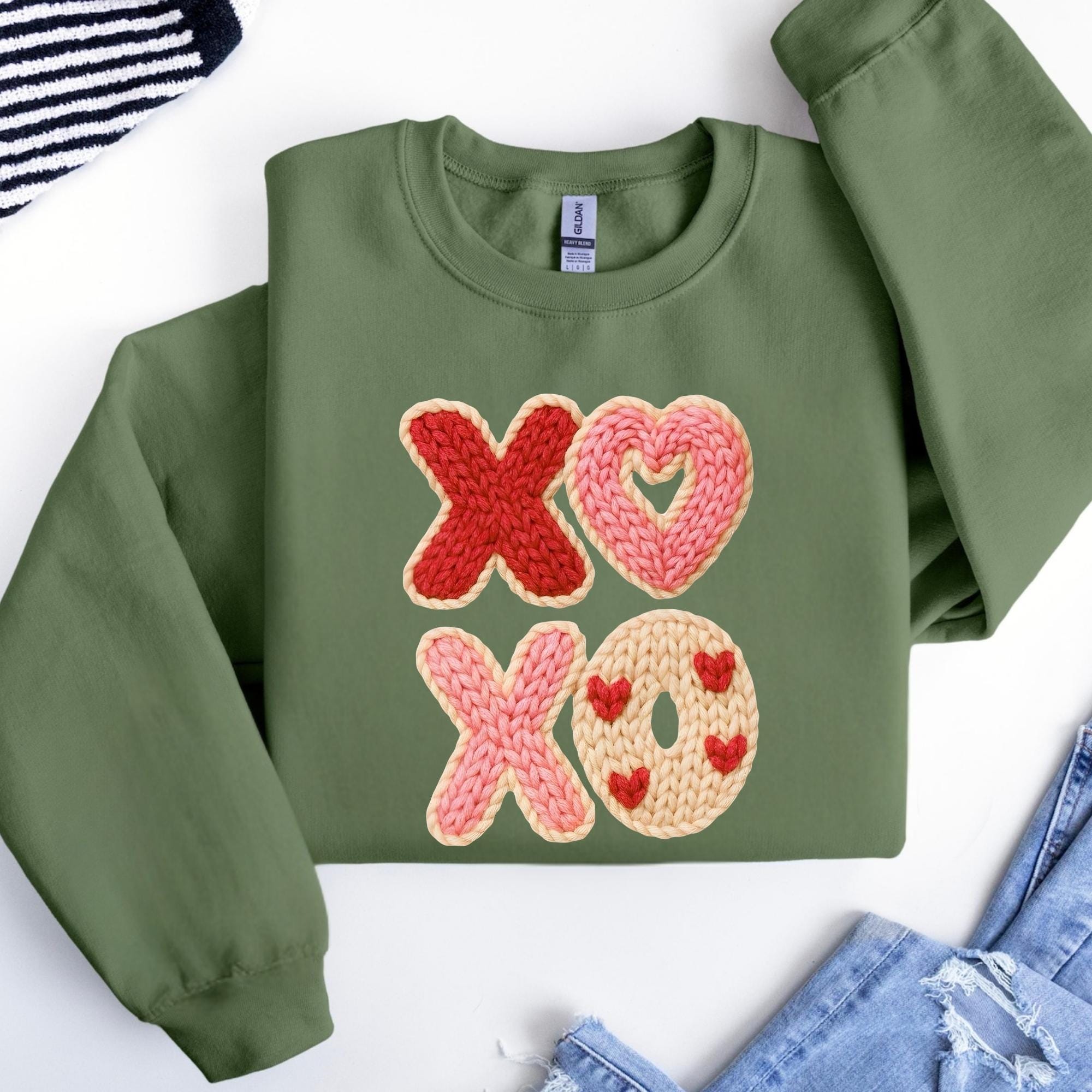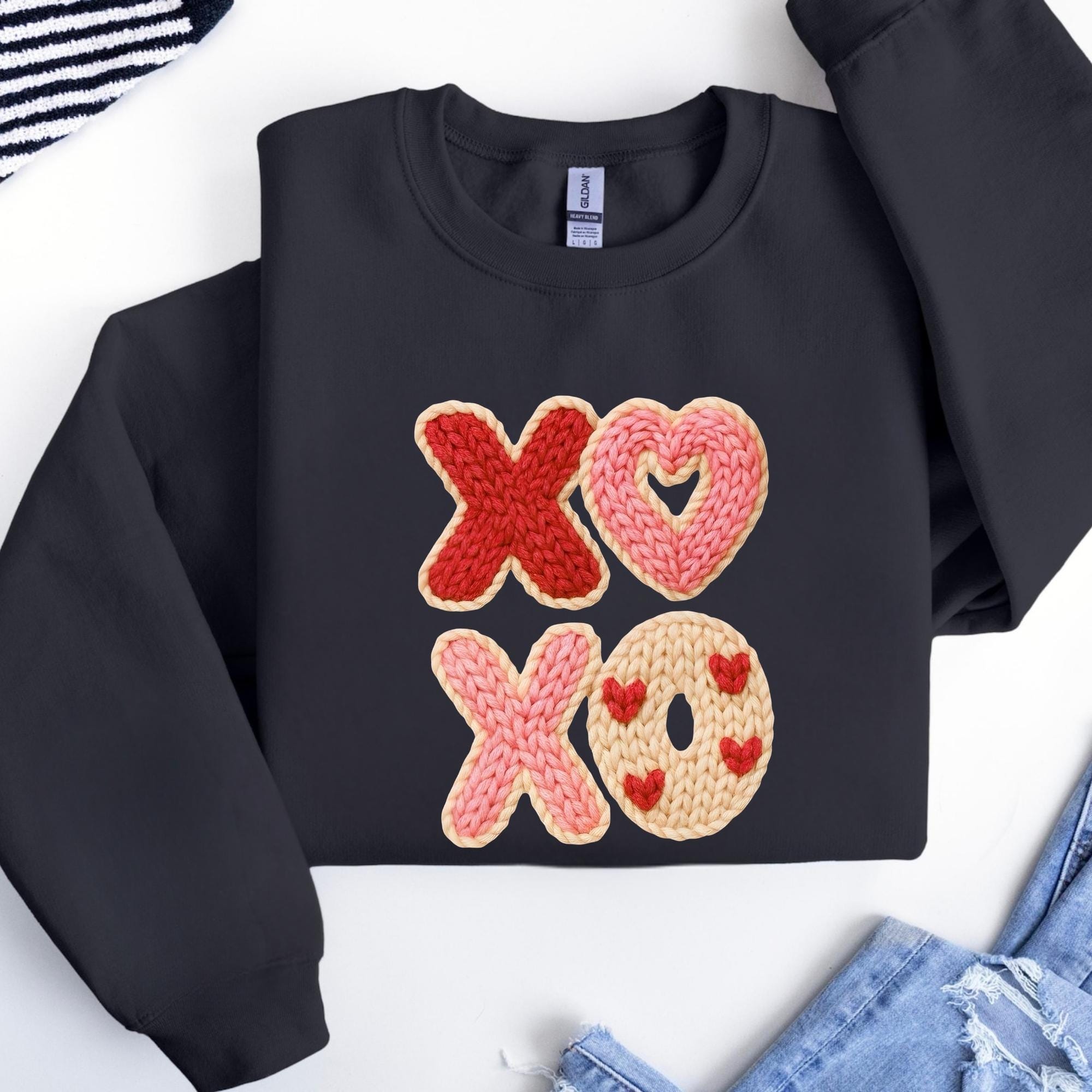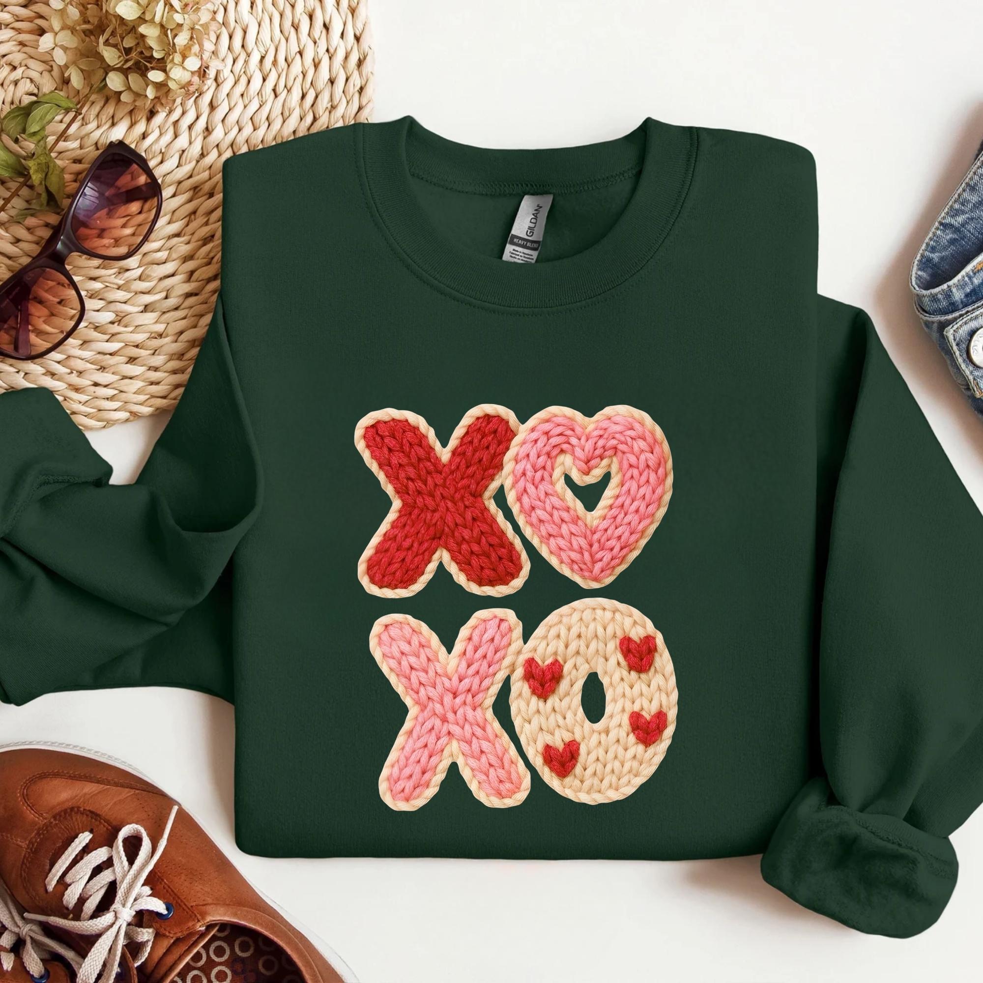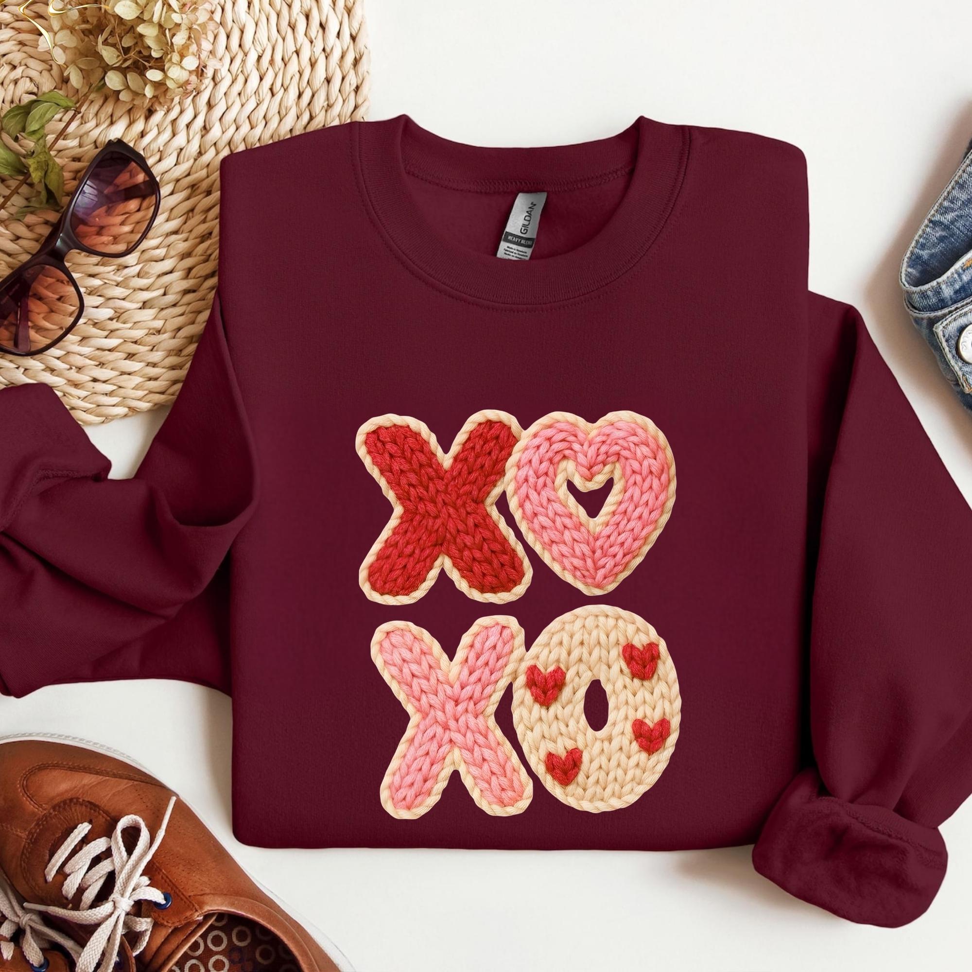 Faux Yarn XOXO Shirt, Coquette Bow Valentines T-Shirt, Valentines Day Shirt, Womens Valentine Shirt, Valentine's Day Gift