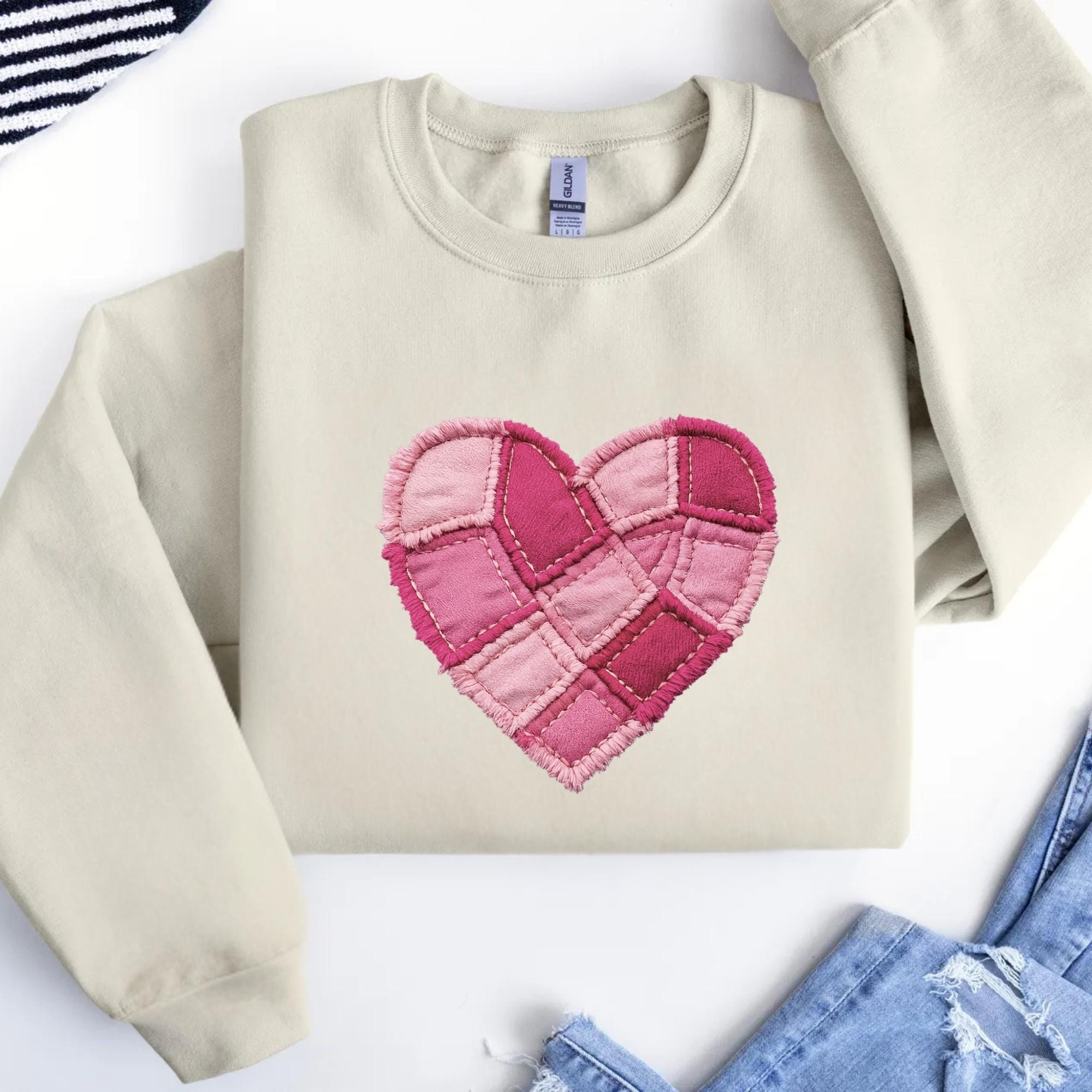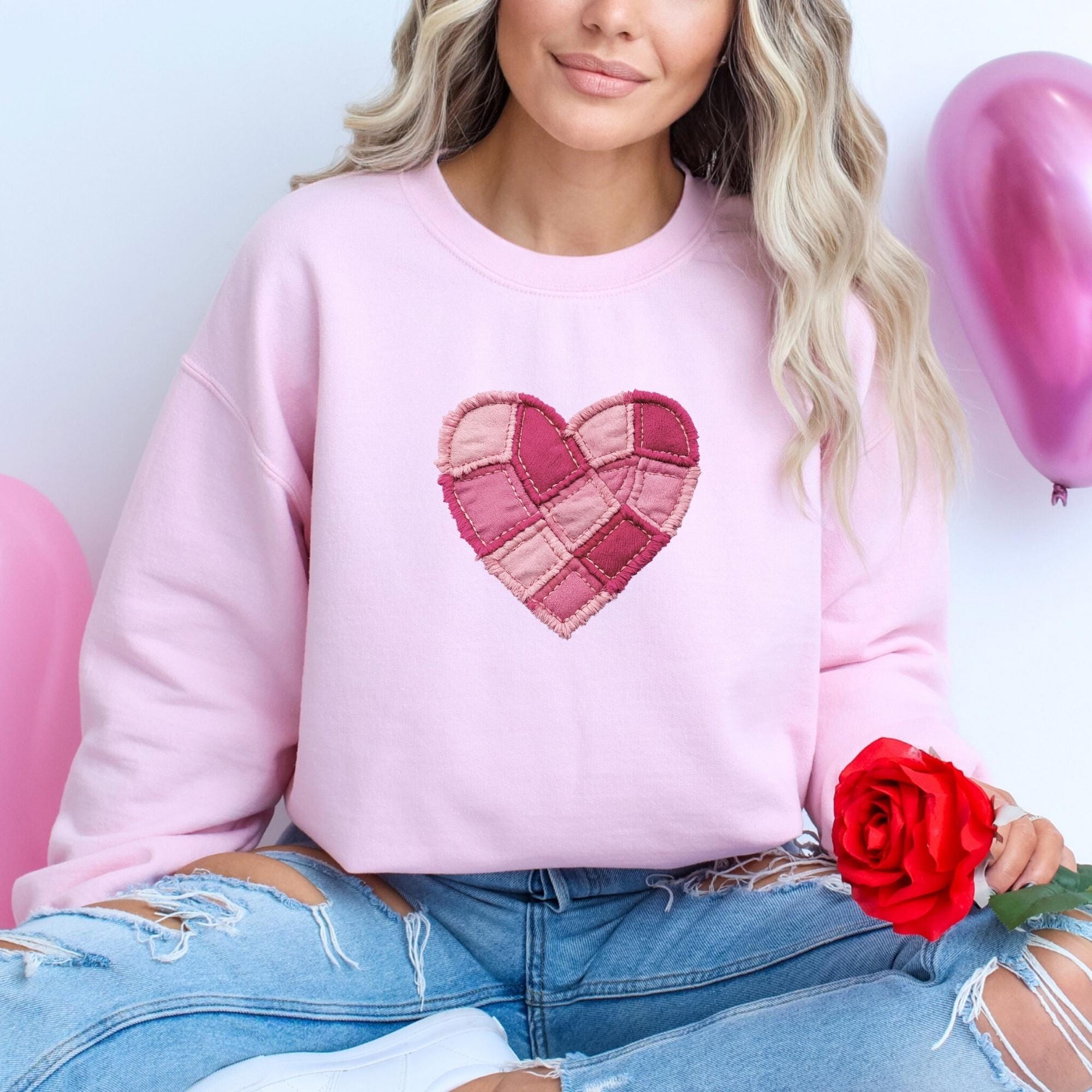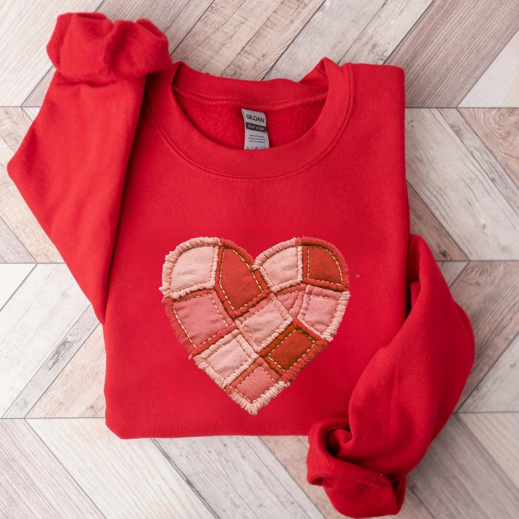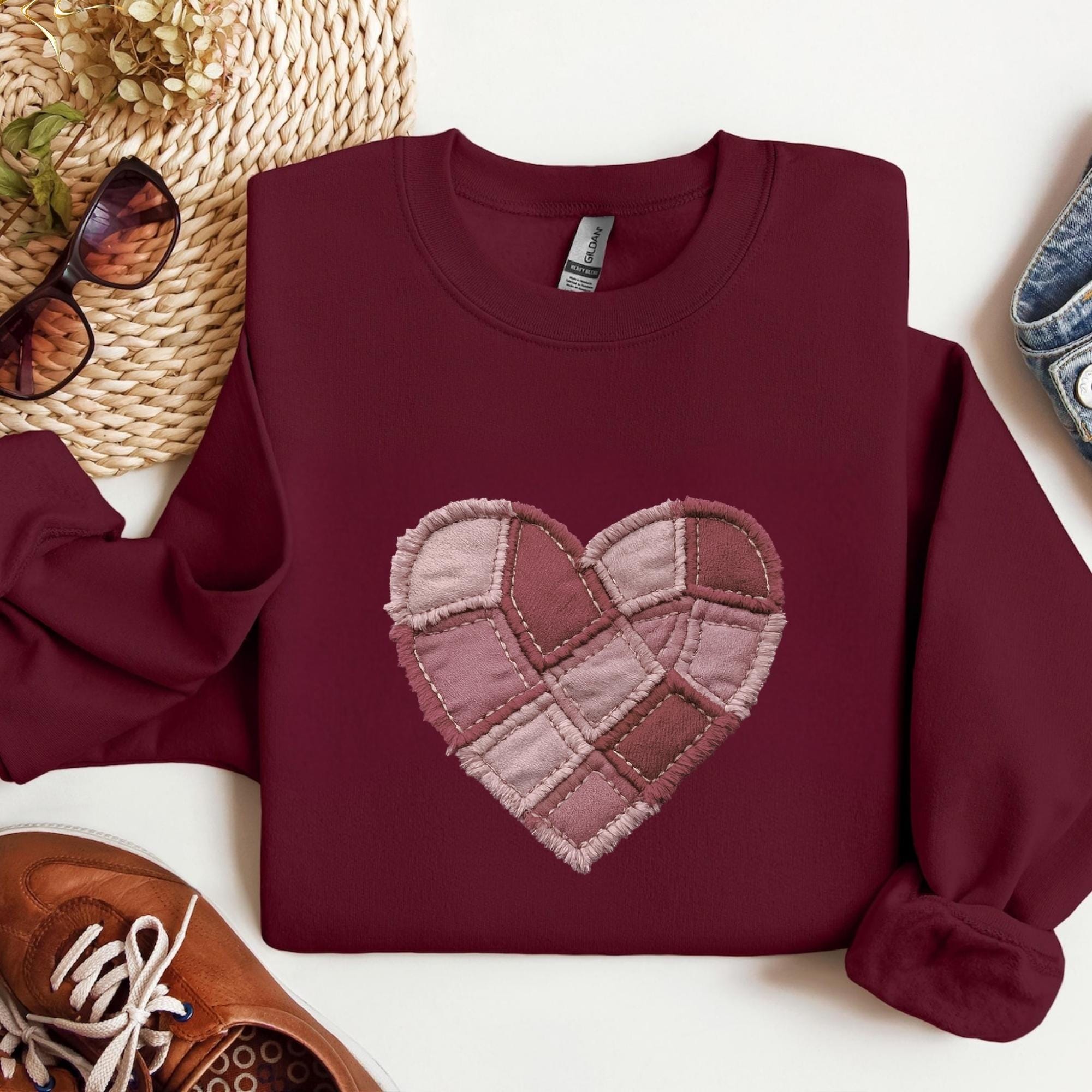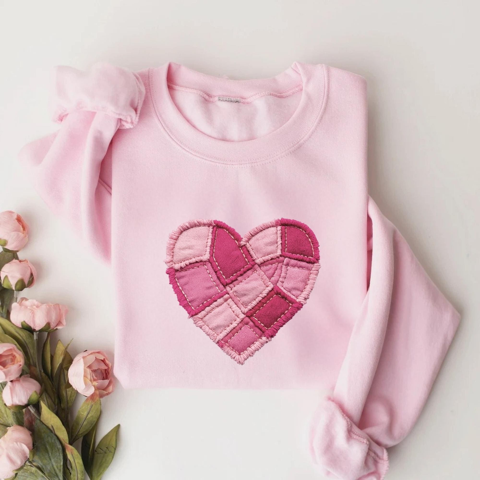 Valentine Patchwork Heart Sweatshirt, Faux Patchwork Quilted Hearts Tee, Quilter Valentine Sweatshirt, Floral Gingham Sewing Lover Gift