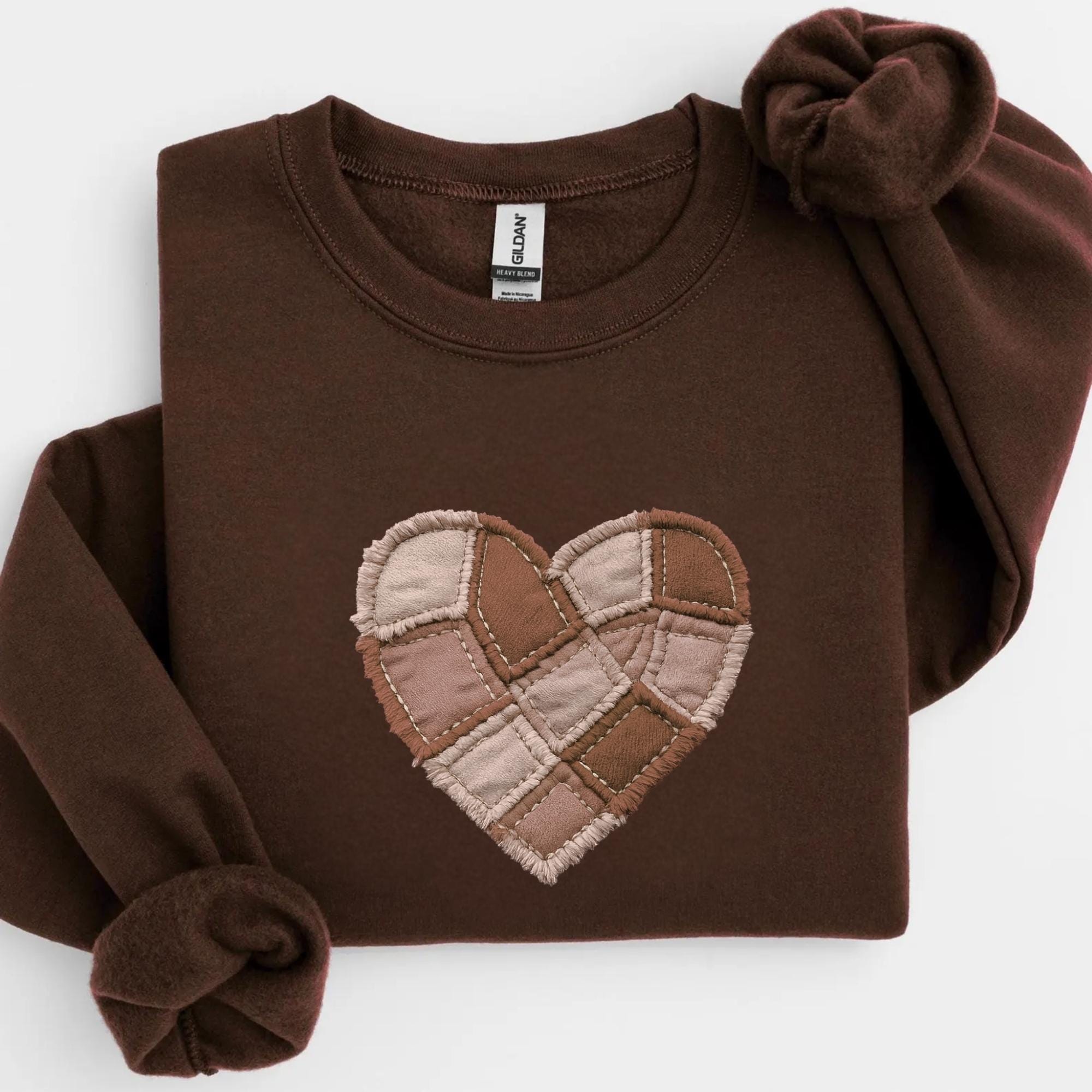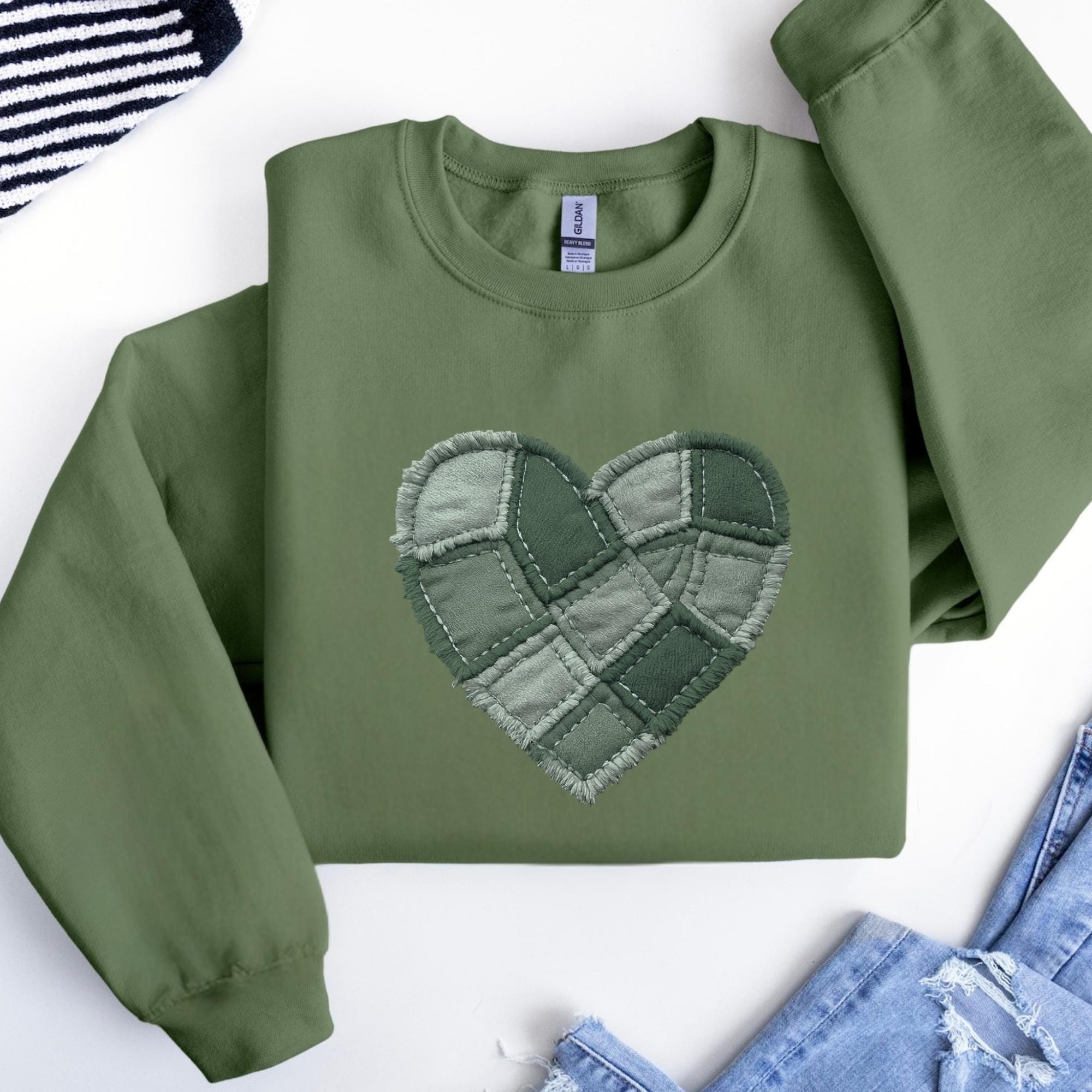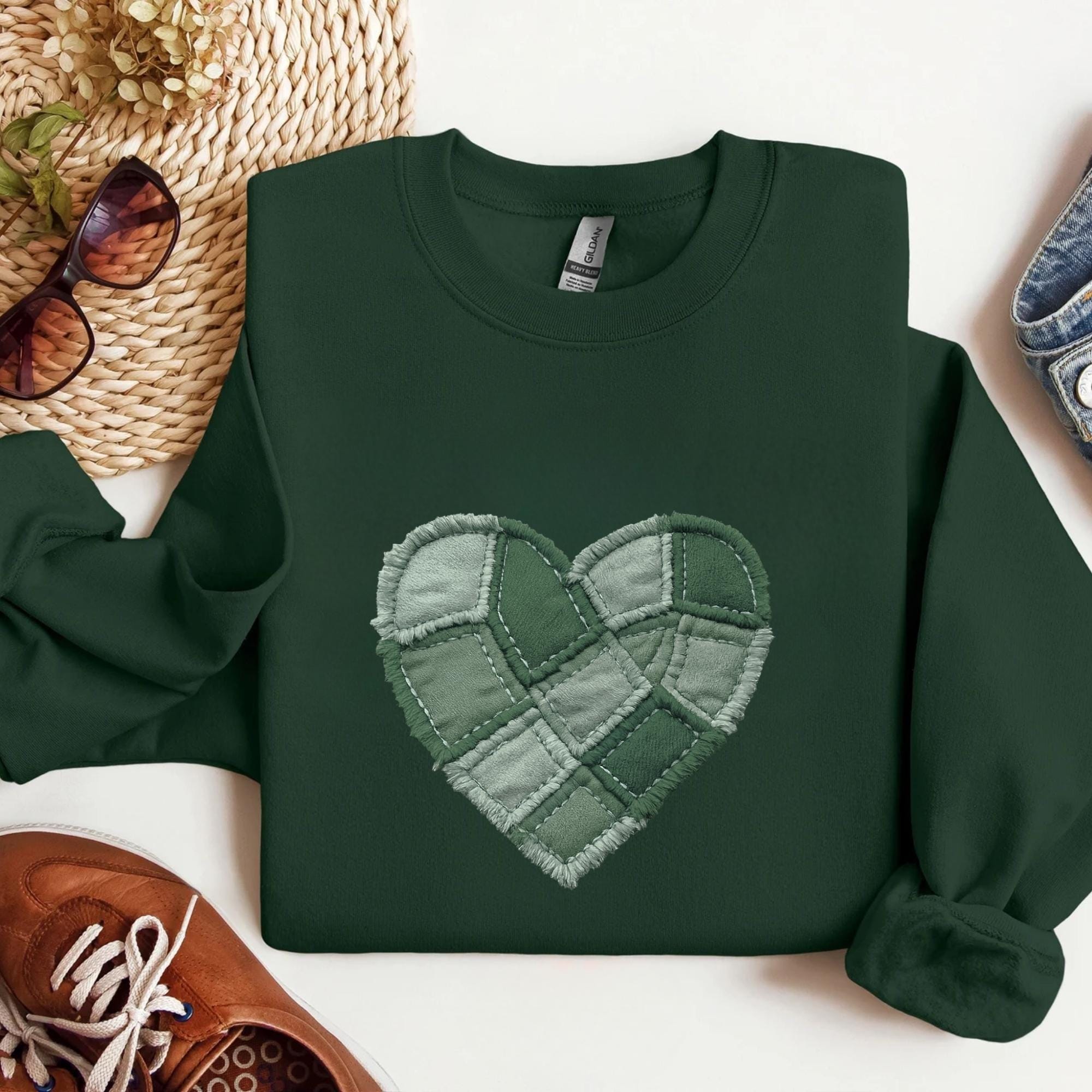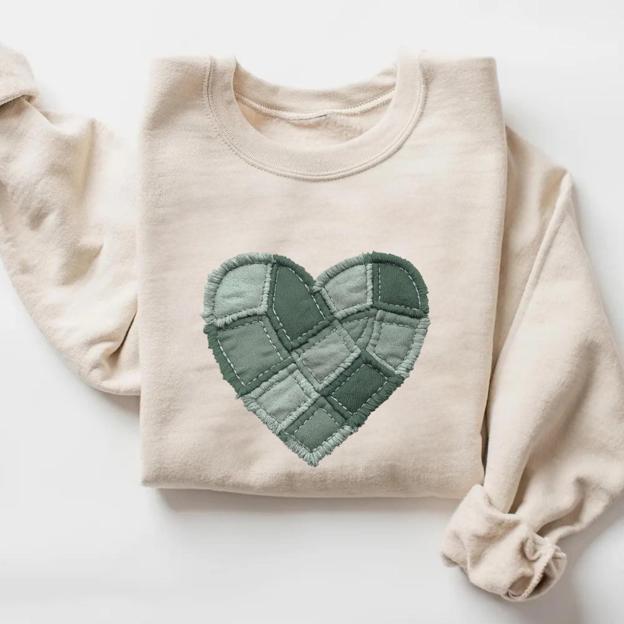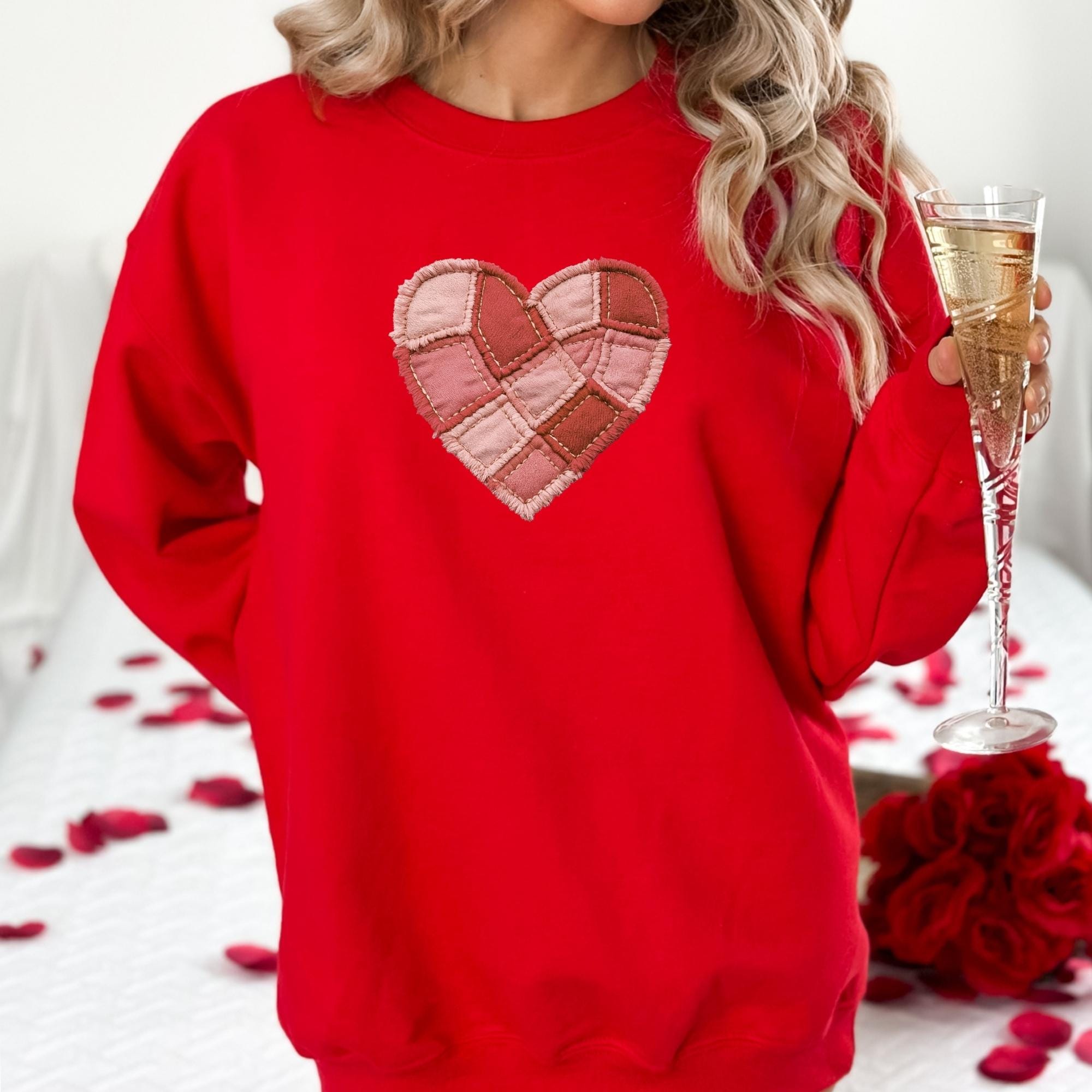 Valentine Patchwork Heart Sweatshirt, Faux Patchwork Quilted Hearts Tee, Quilter Valentine Sweatshirt, Floral Gingham Sewing Lover Gift