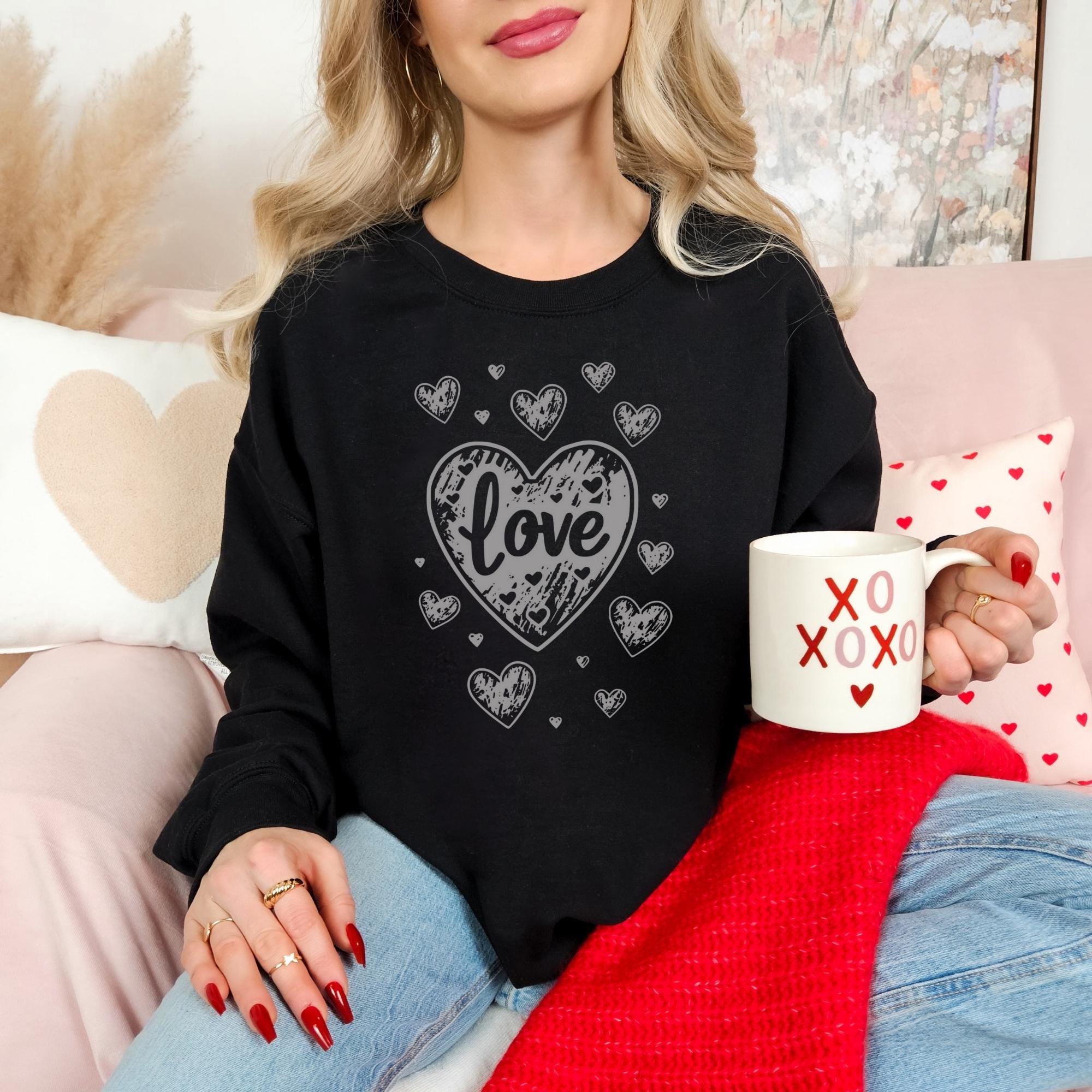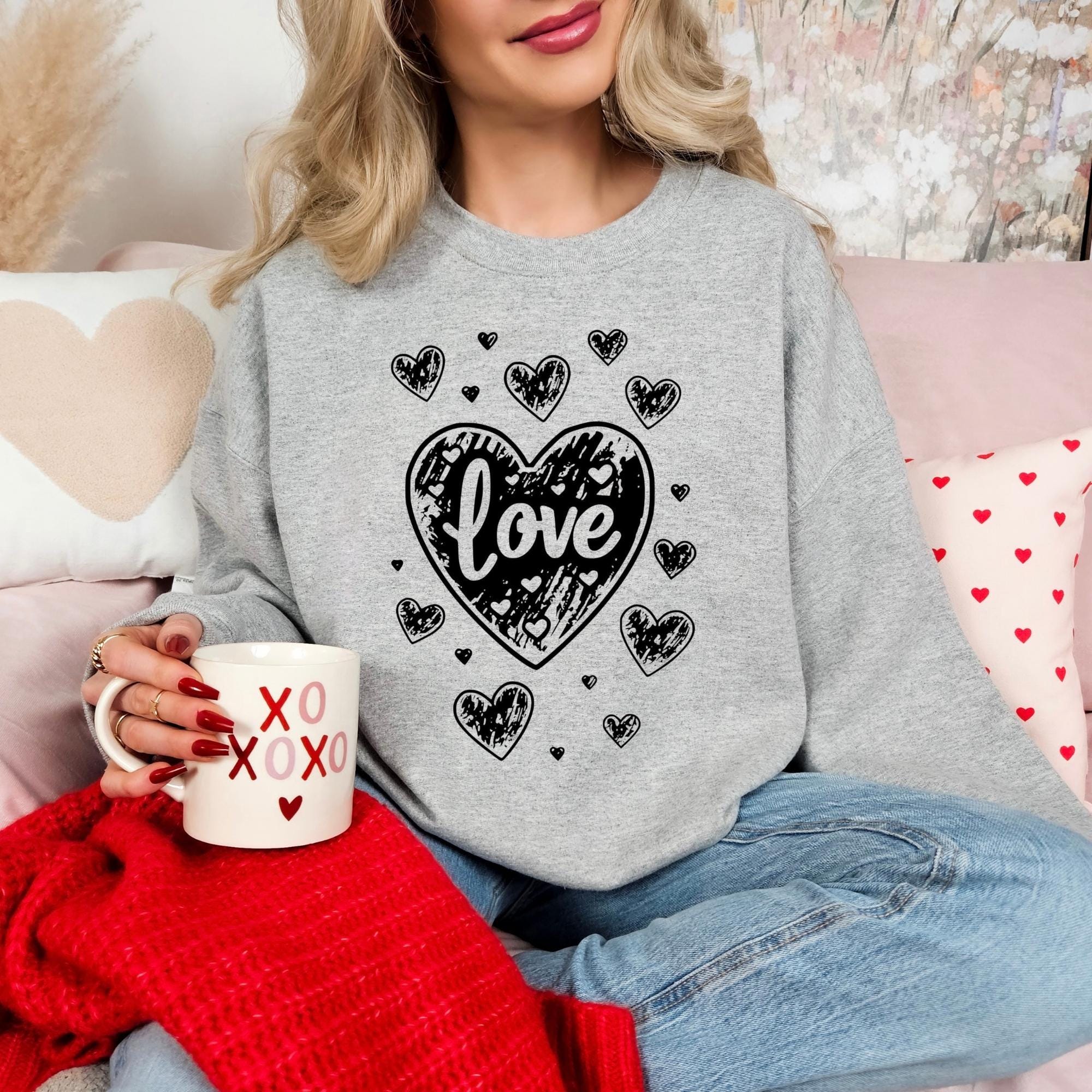 Retro Valentines Heart Sweatshirt, Cute Love Sweatshirt, Womens Valentines Hearts Sweatshirt, Teacher Valentine Sweatshirt, Mom Heart Shirt