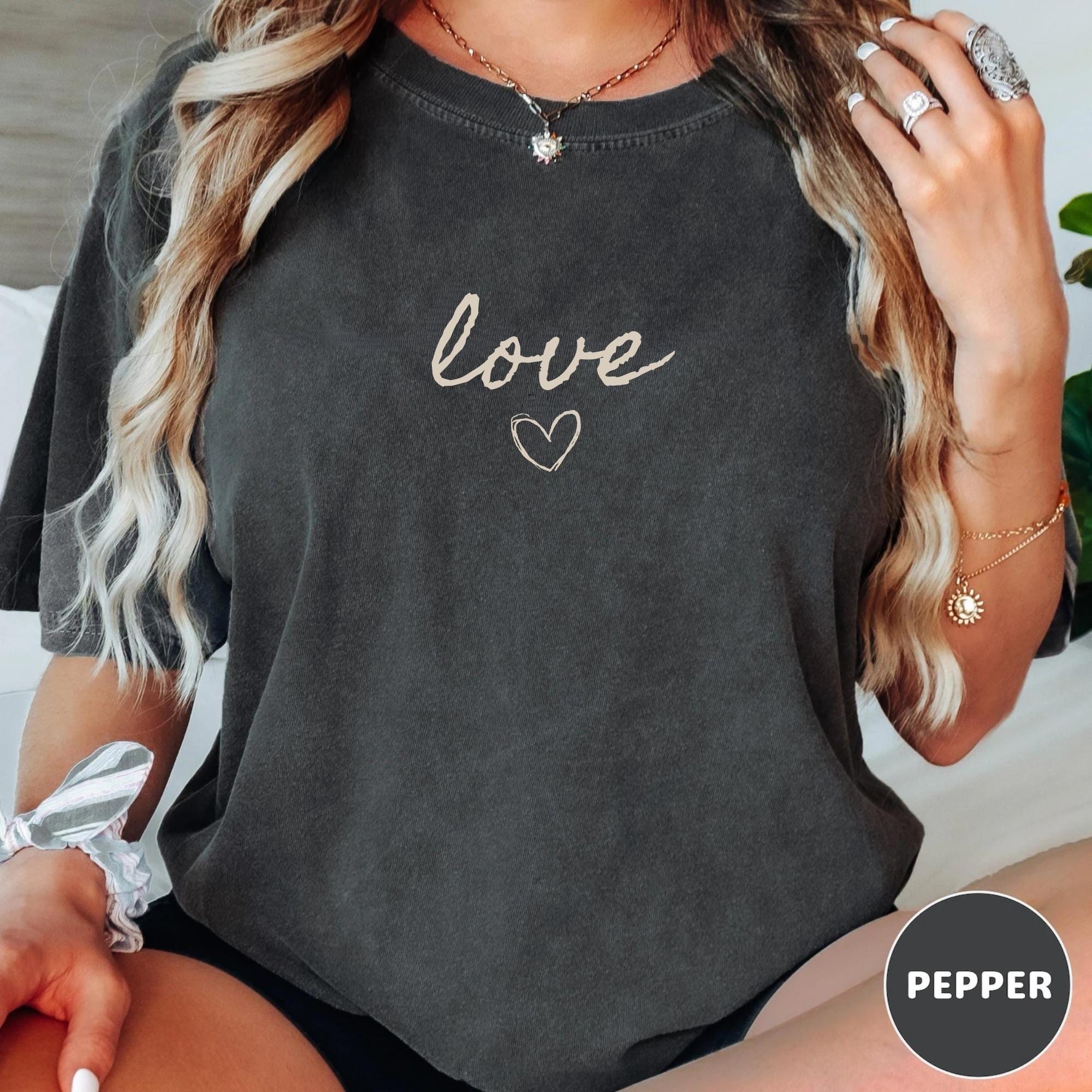 Comfort Colors Love Shirt, Minimal Love Heart Shirt, Valentine's Day, Wedding Bachelorette Shirt, Short Sleeve T-Shirt, Long Sleeve T-Shirt