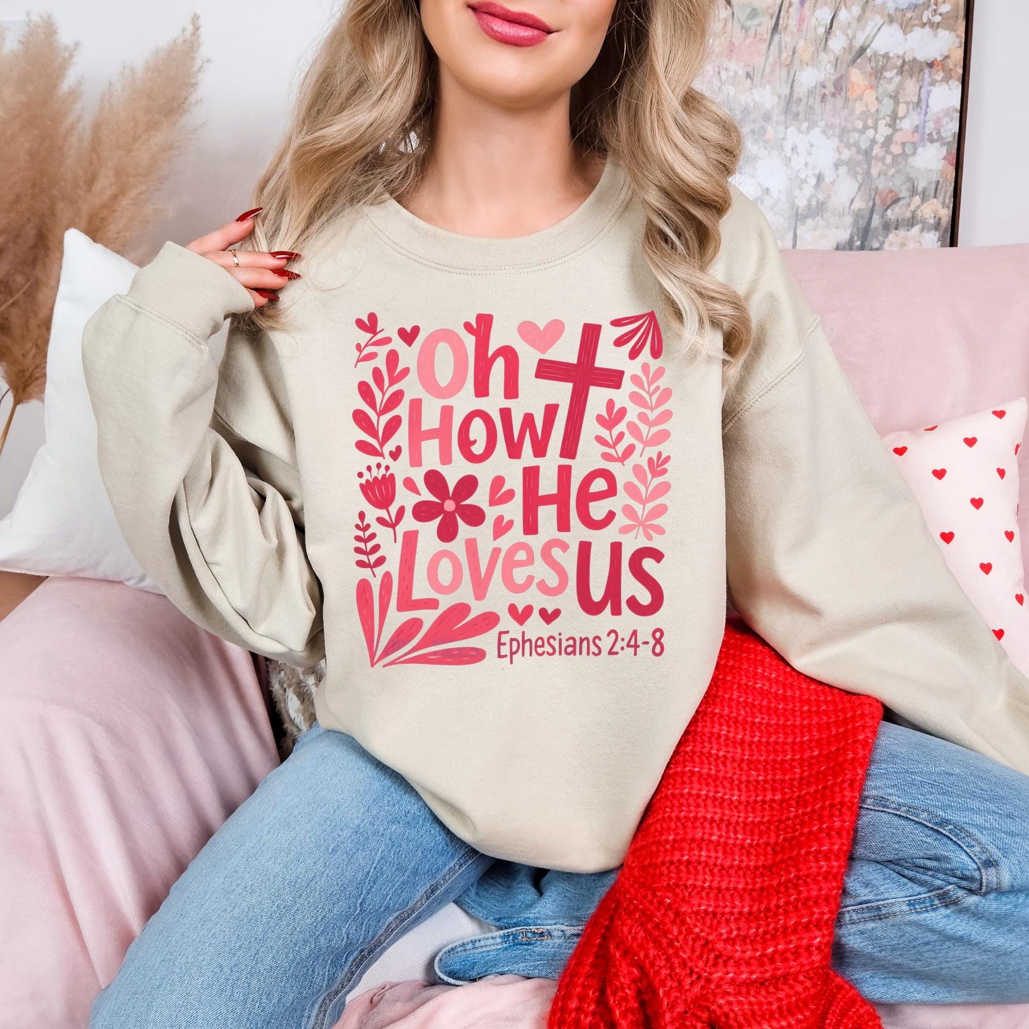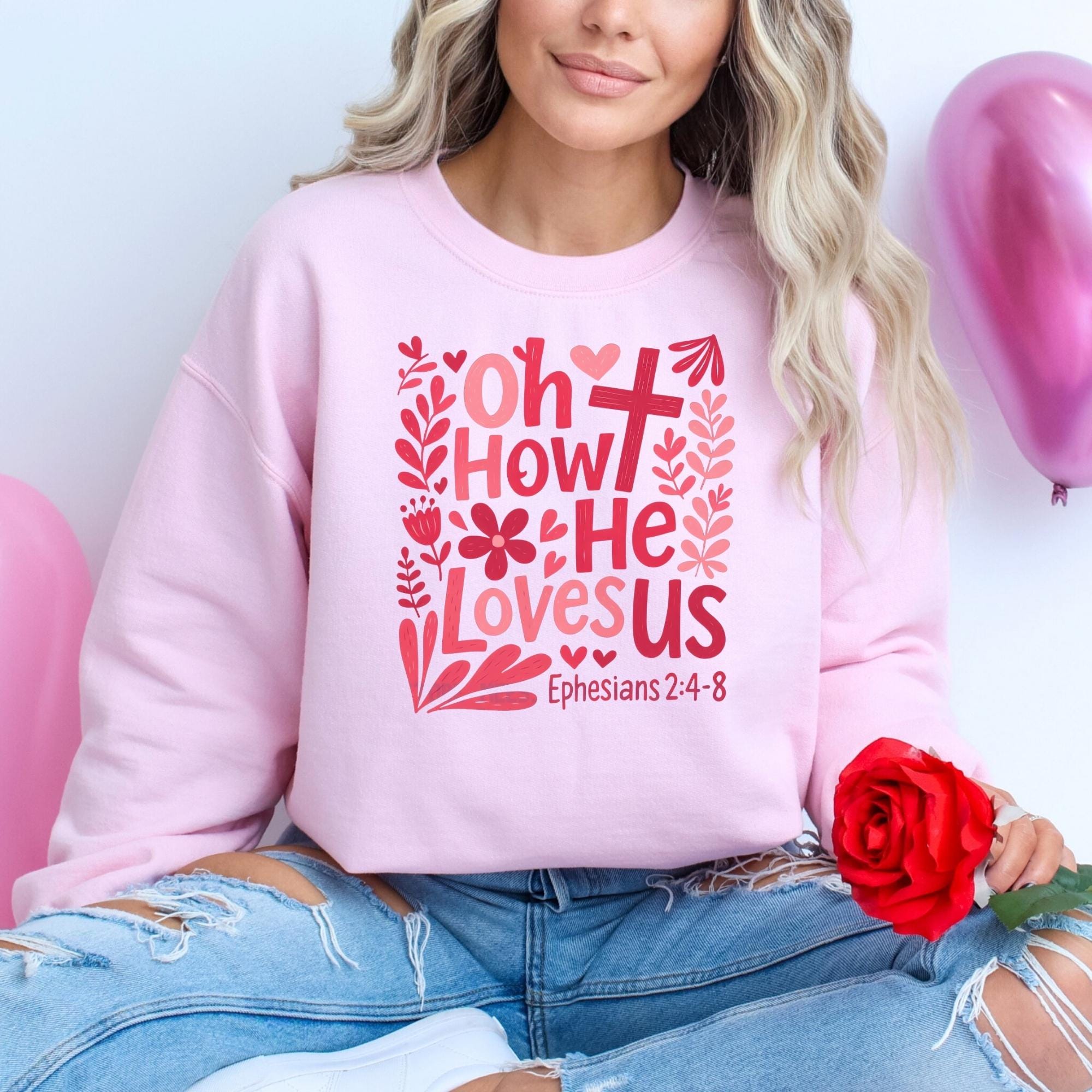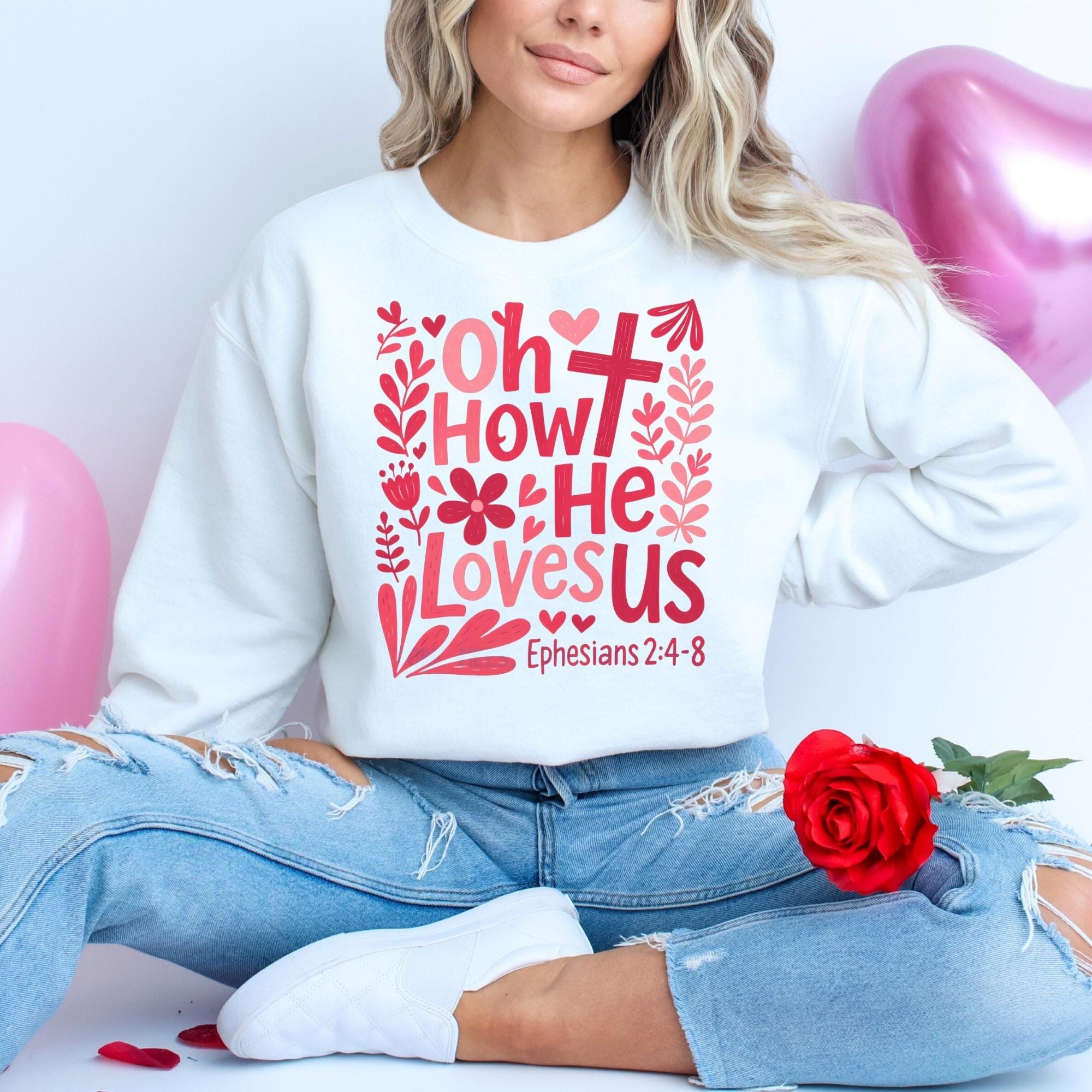 Oh how He Loves Us Tshirt, Boho Valentine Sweatshirt, Valentine Shirt, Christian Valentine Shirt, Valentine Jesus Shirt, Religious Clothing