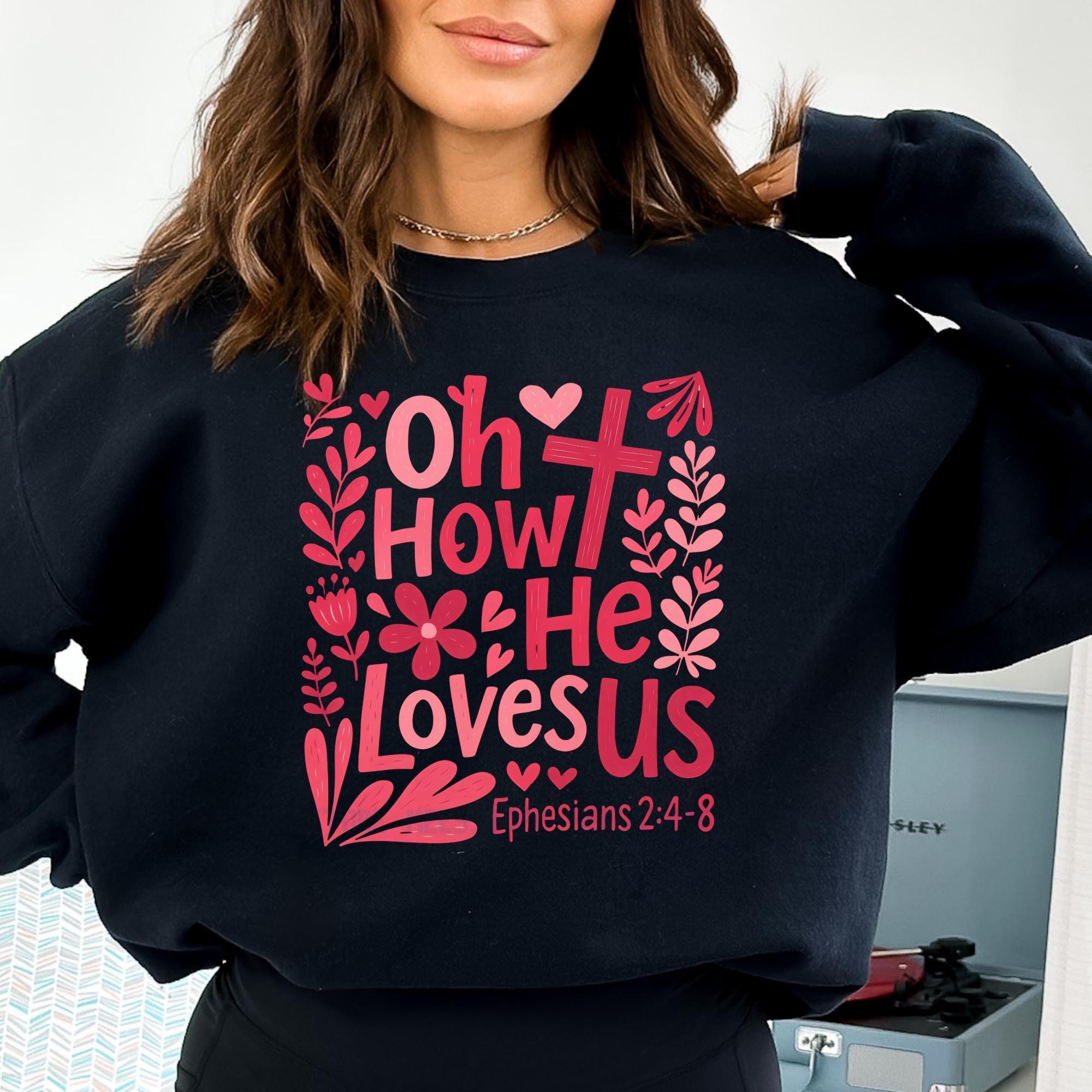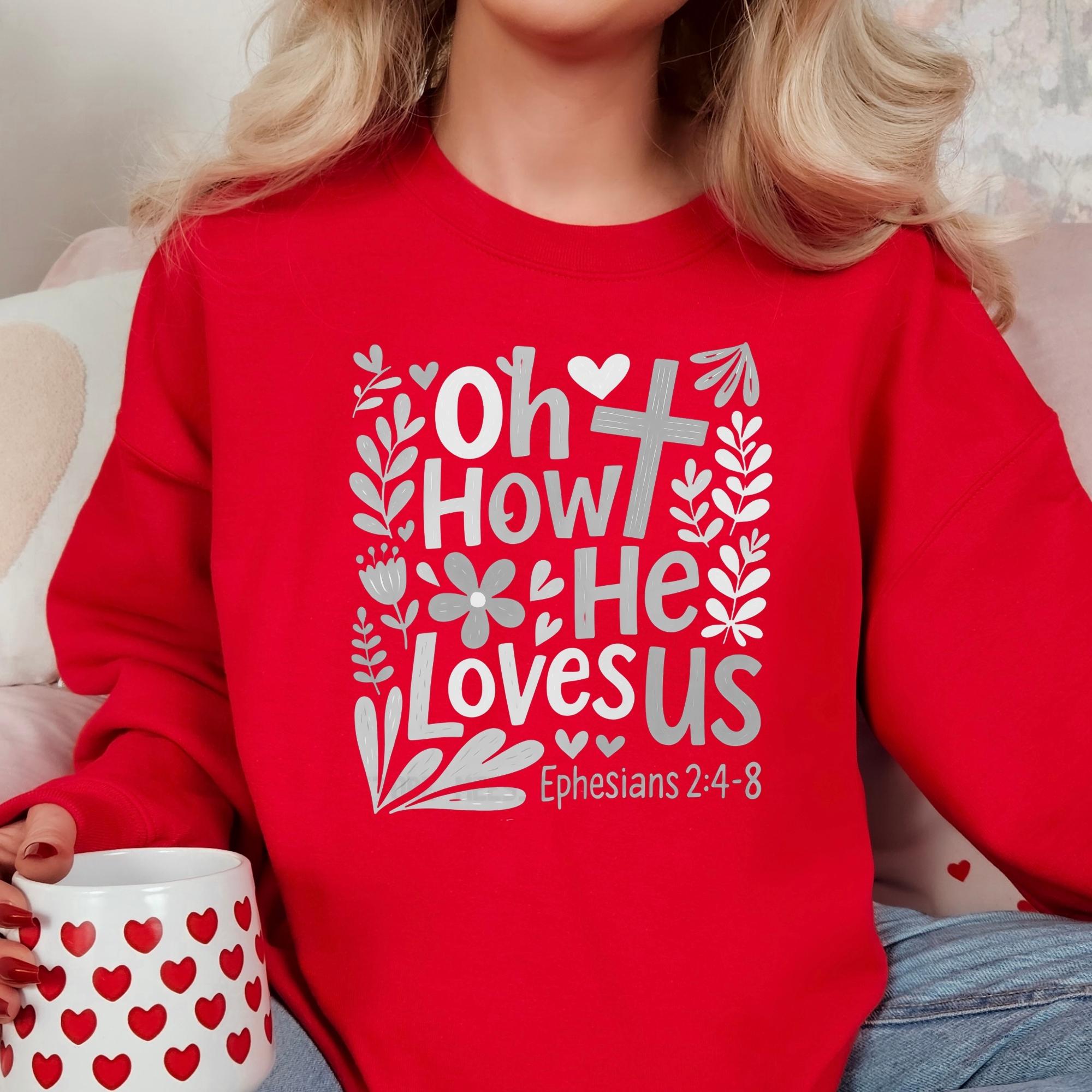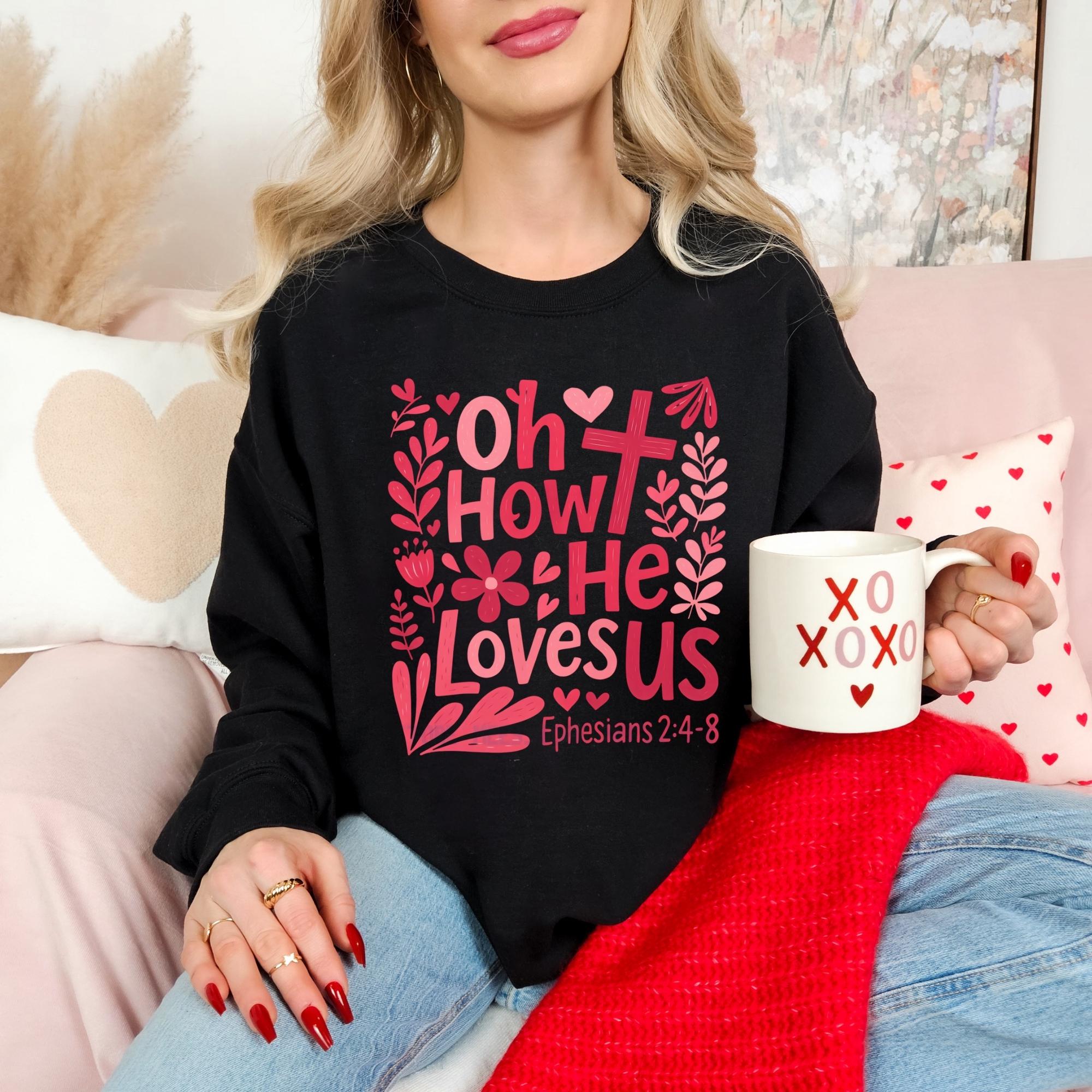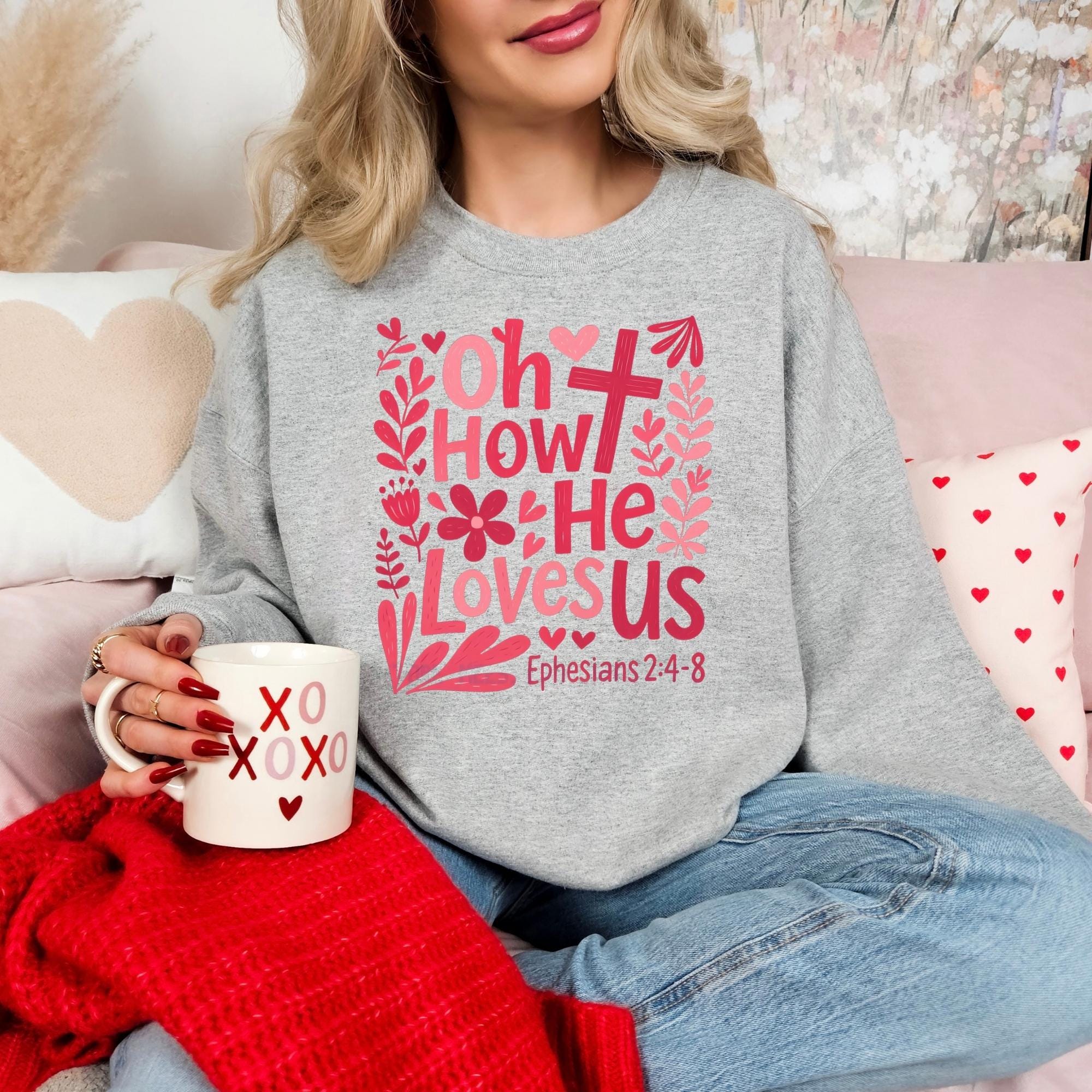 Oh how He Loves Us Tshirt, Boho Valentine Sweatshirt, Valentine Shirt, Christian Valentine Shirt, Valentine Jesus Shirt, Religious Clothing