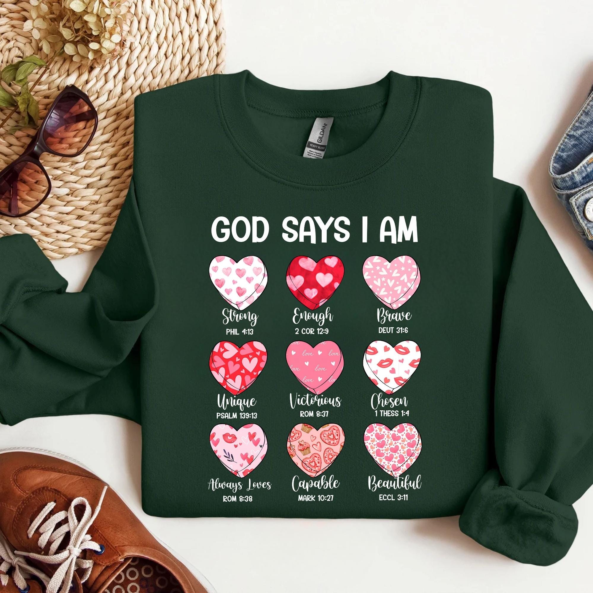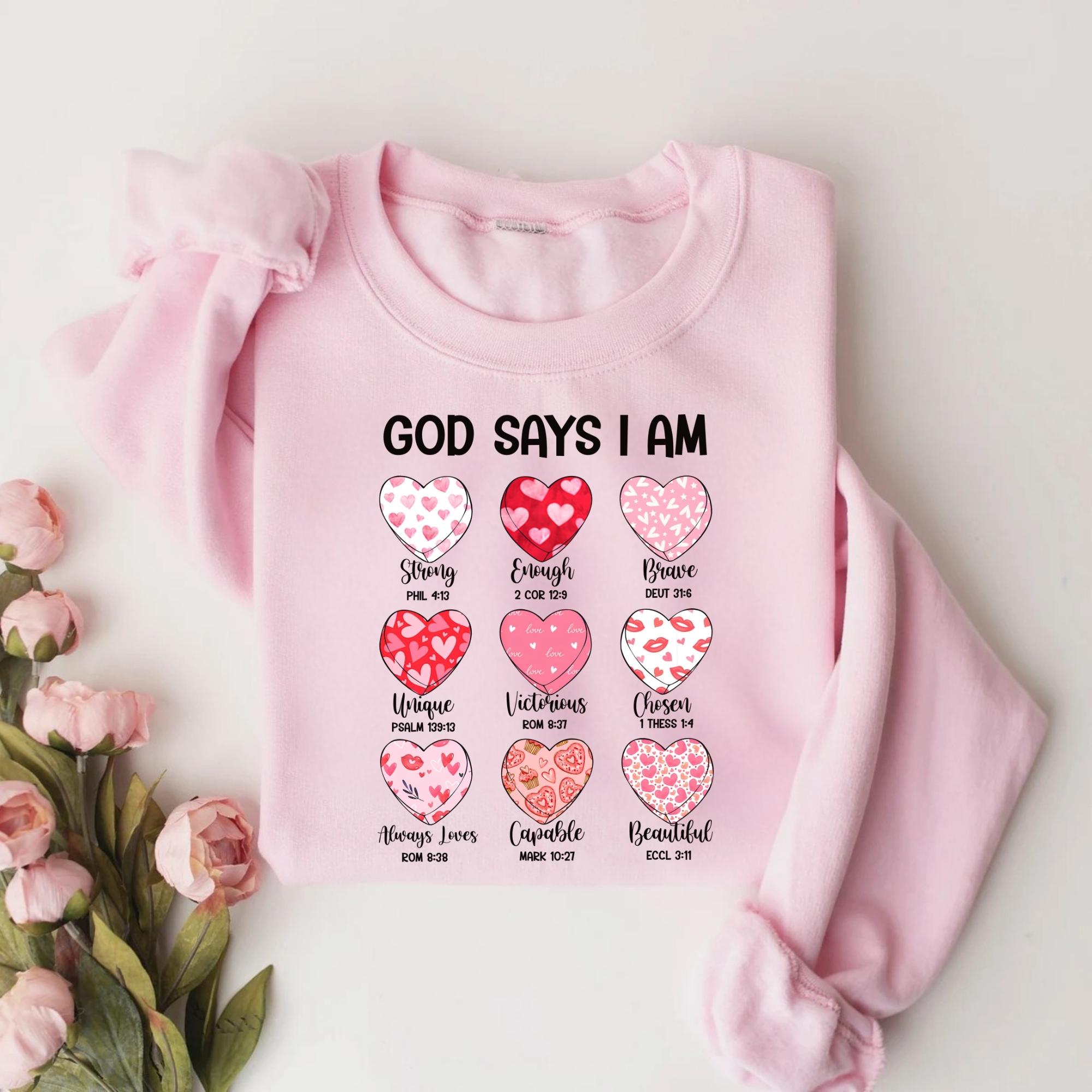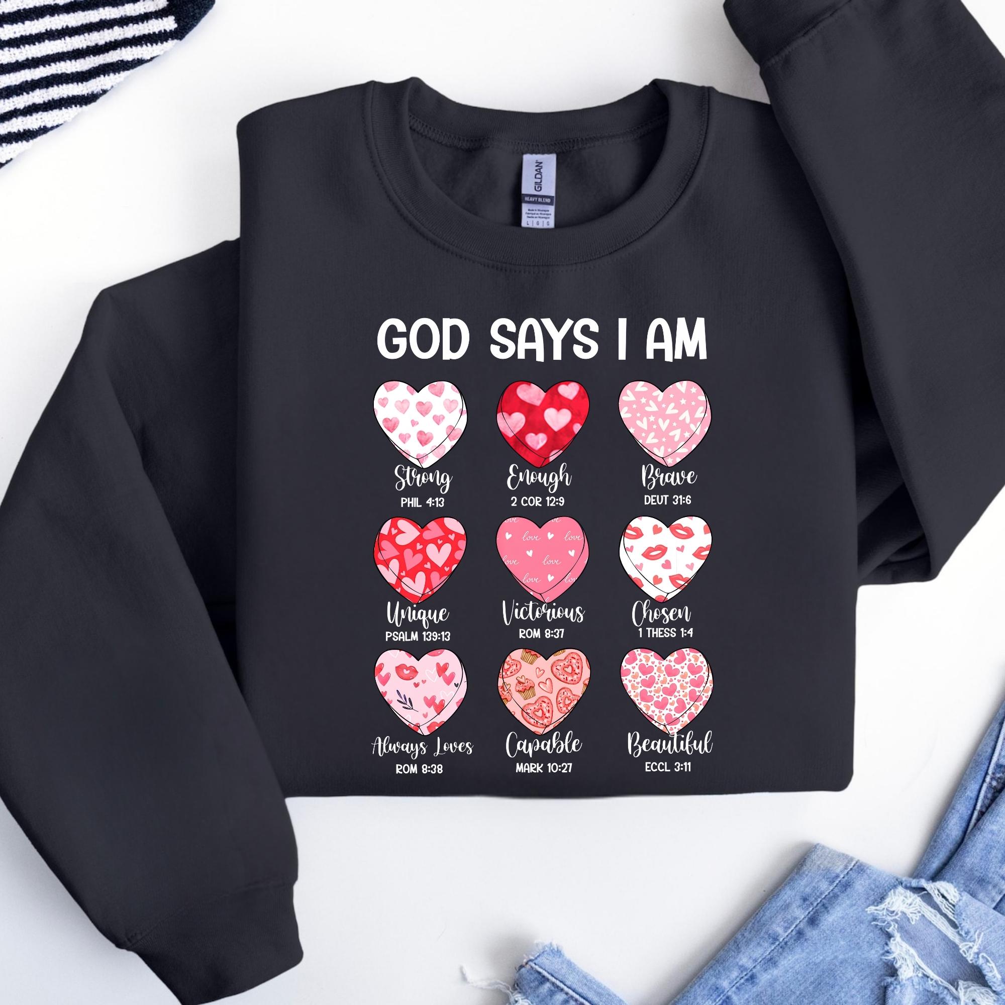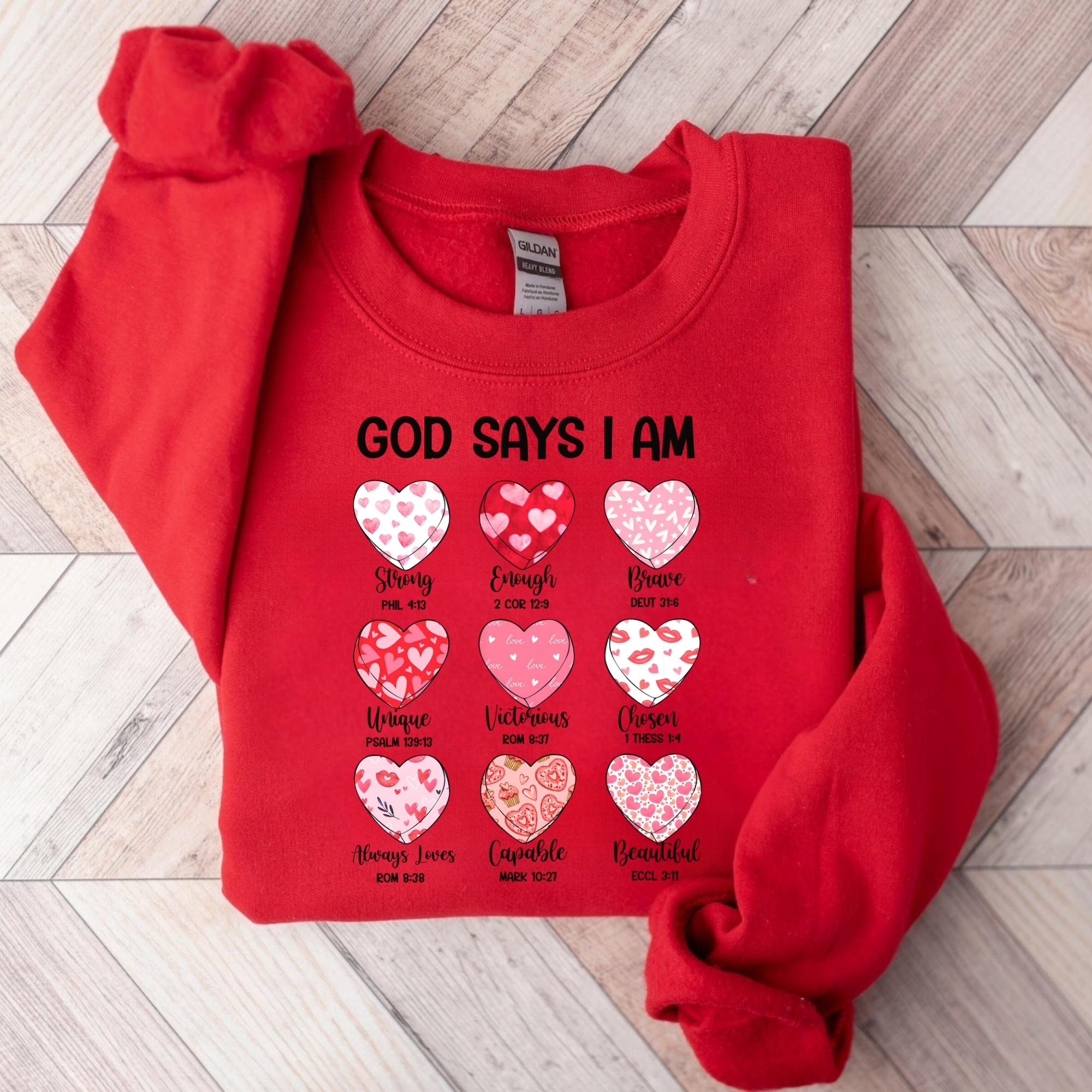 Bible Verse Valentine's Shirt, God Says I am Strong Sweatshirt, Faithful Hearts Valentines T-Shirt, Inspirational Valentines Tee