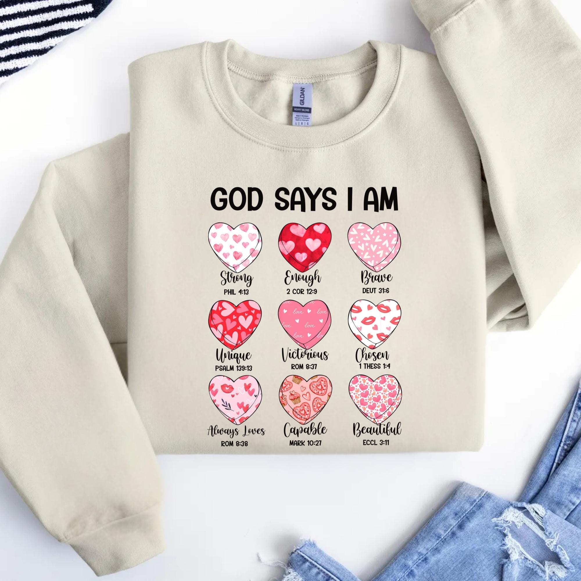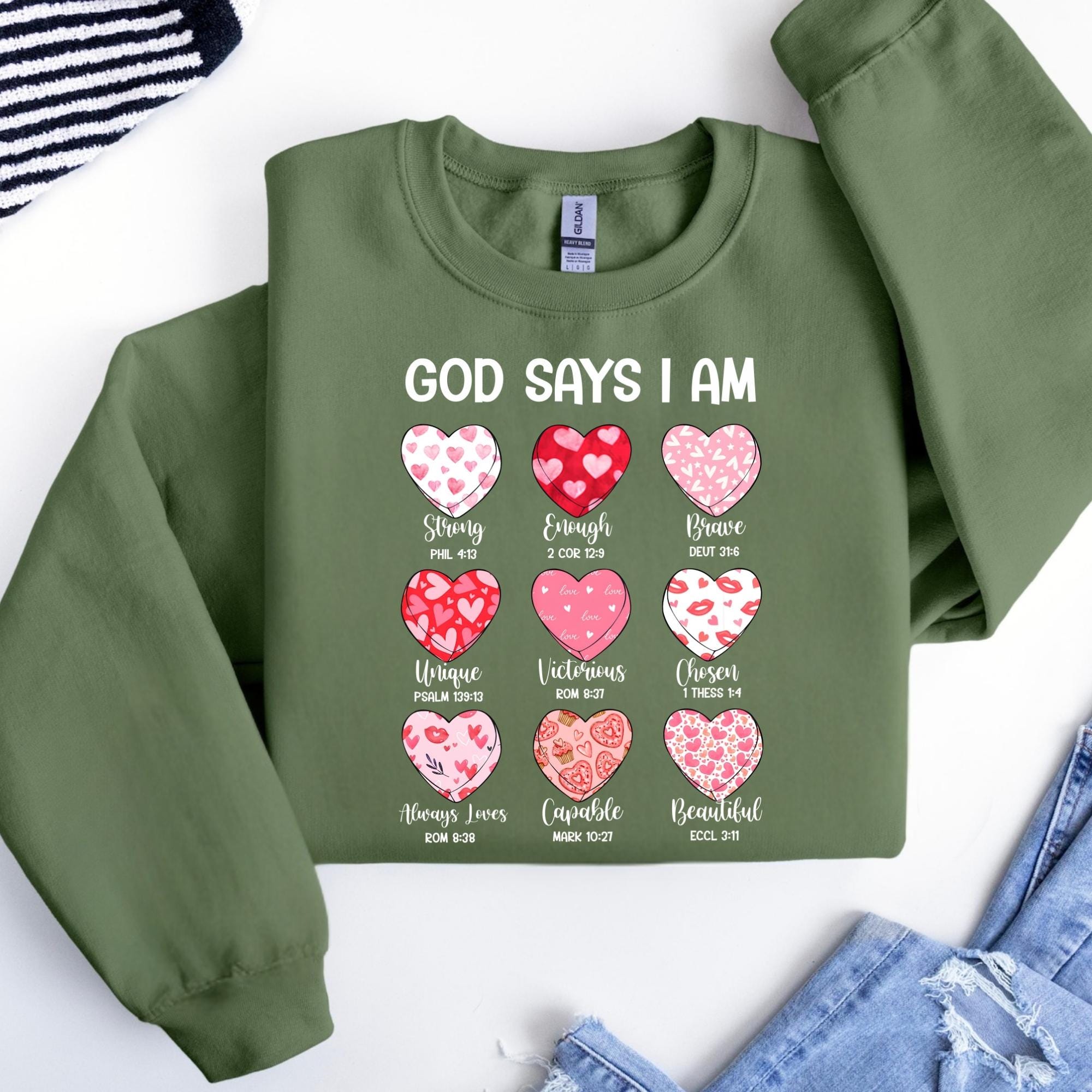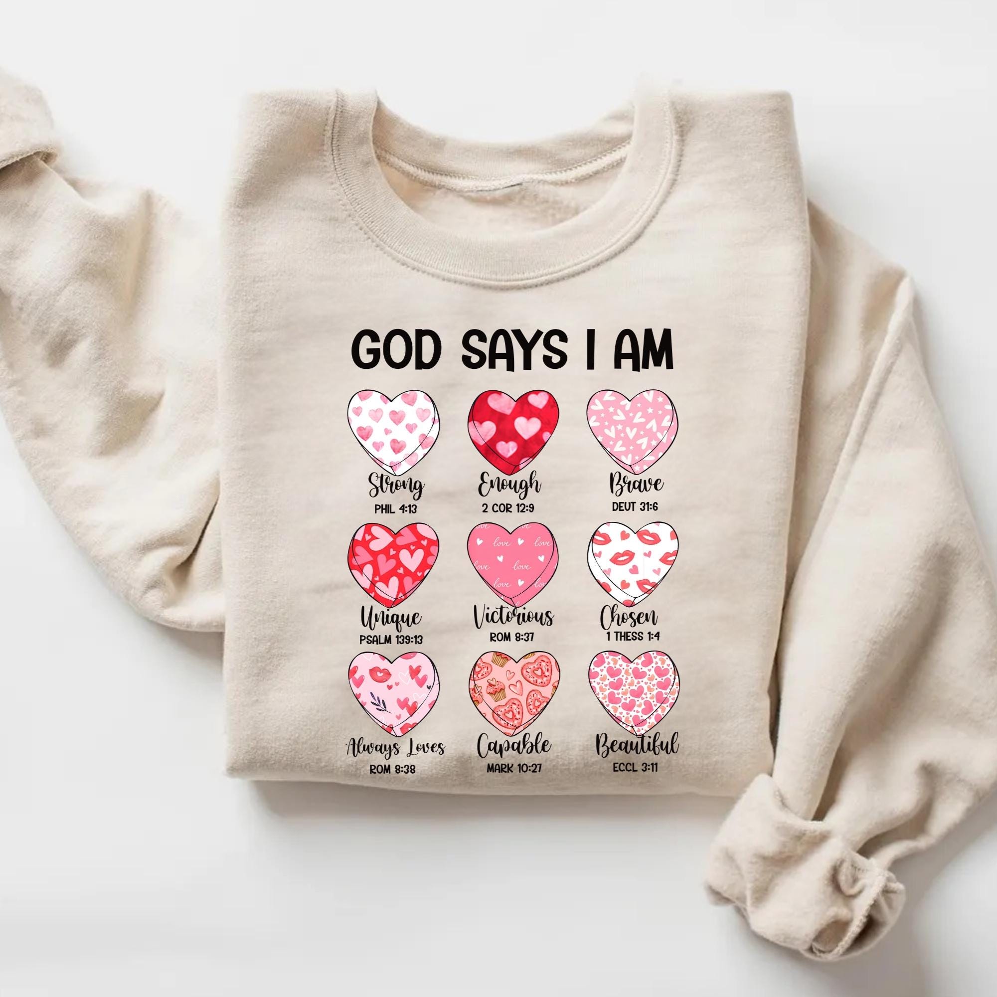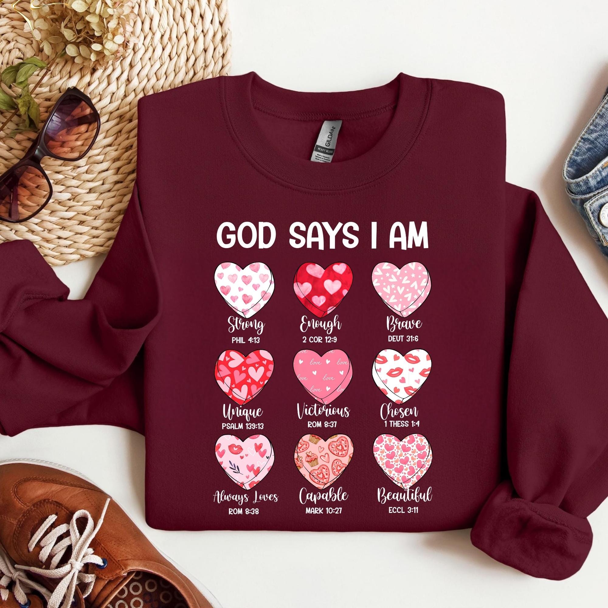 Bible Verse Valentine's Shirt, God Says I am Strong Sweatshirt, Faithful Hearts Valentines T-Shirt, Inspirational Valentines Tee