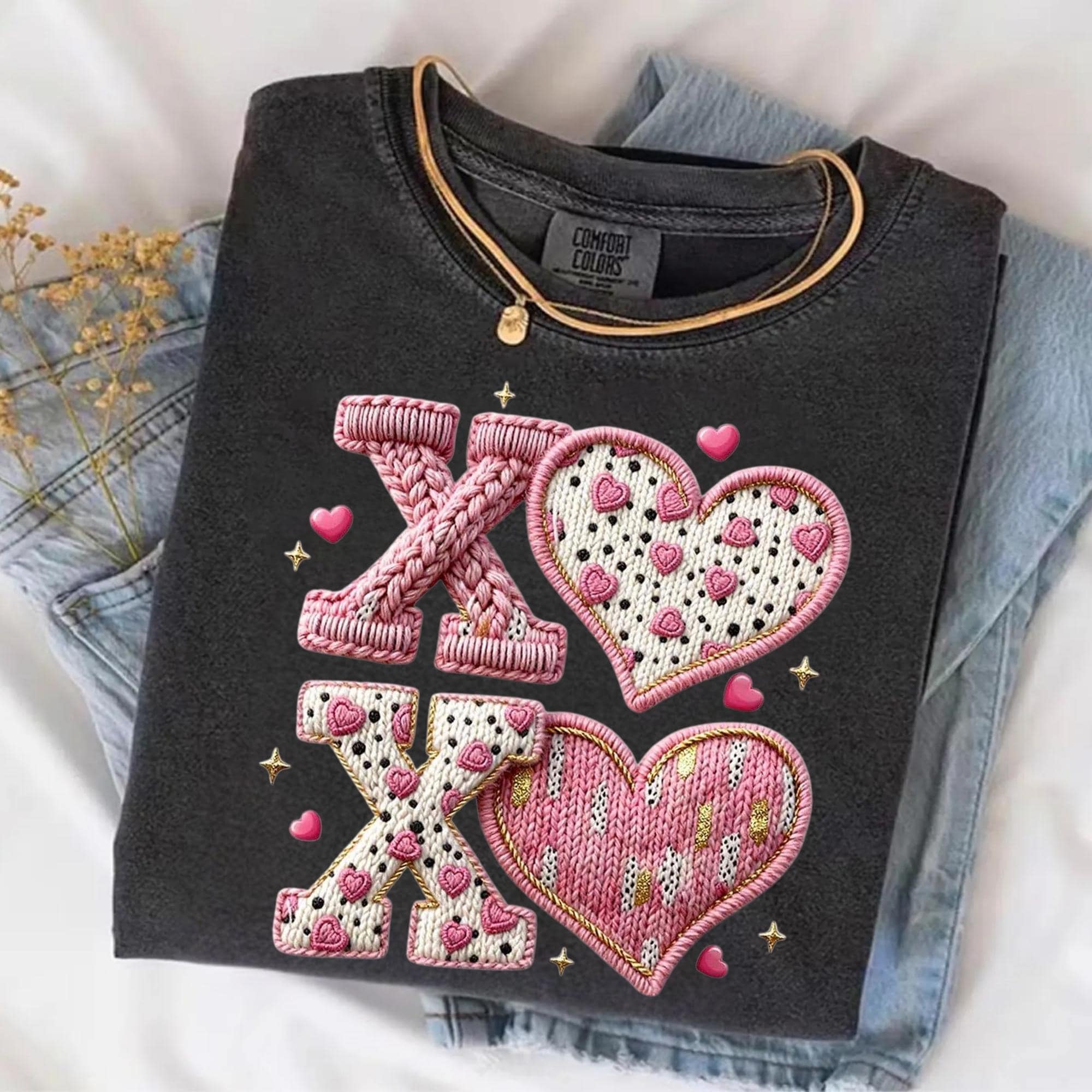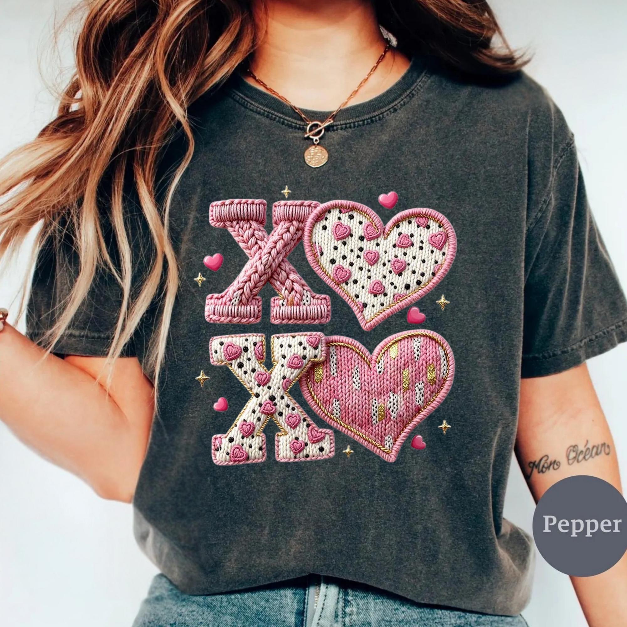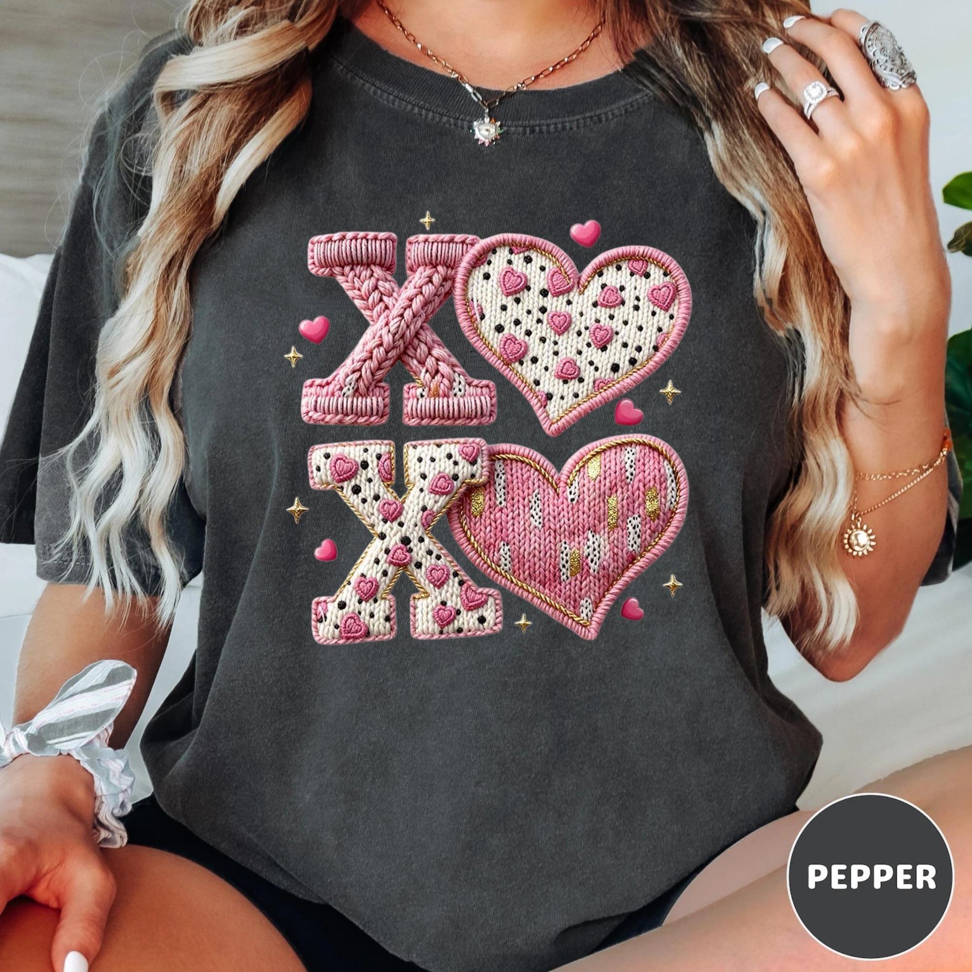 Comfort Colors® Faux Yarn XOXO Shirt, Coquette Bow Valentines T-Shirt, Valentines Day Shirt, Womens Valentine Shirt, Valentine's Day Gift 🌟 Your Everyday Go-To – Unique Design Comfort Colors Unisex T-Shirt and Sweatshirt