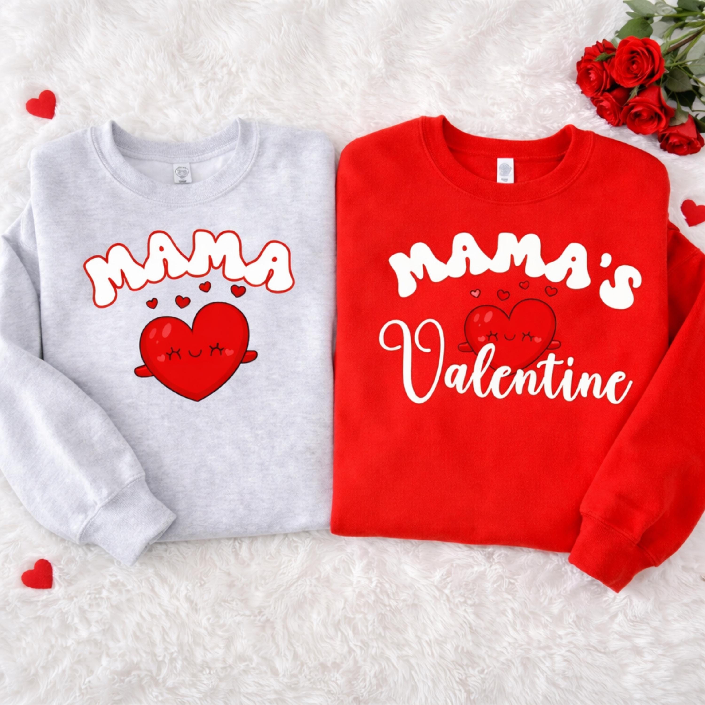 Mama's Valentine And Mama Shirts - Matching Valentine Mom and Kids Tee - Valentine Shirts