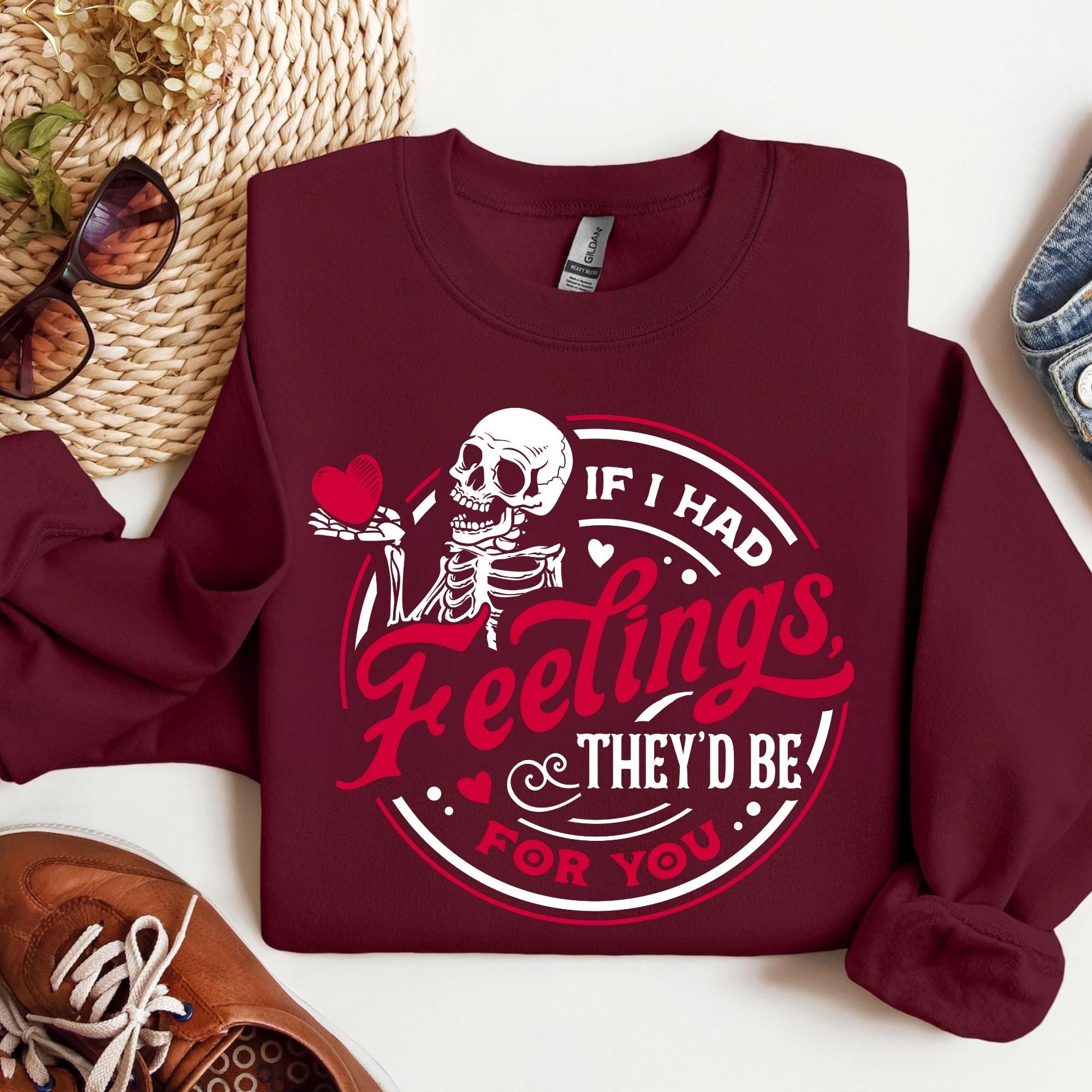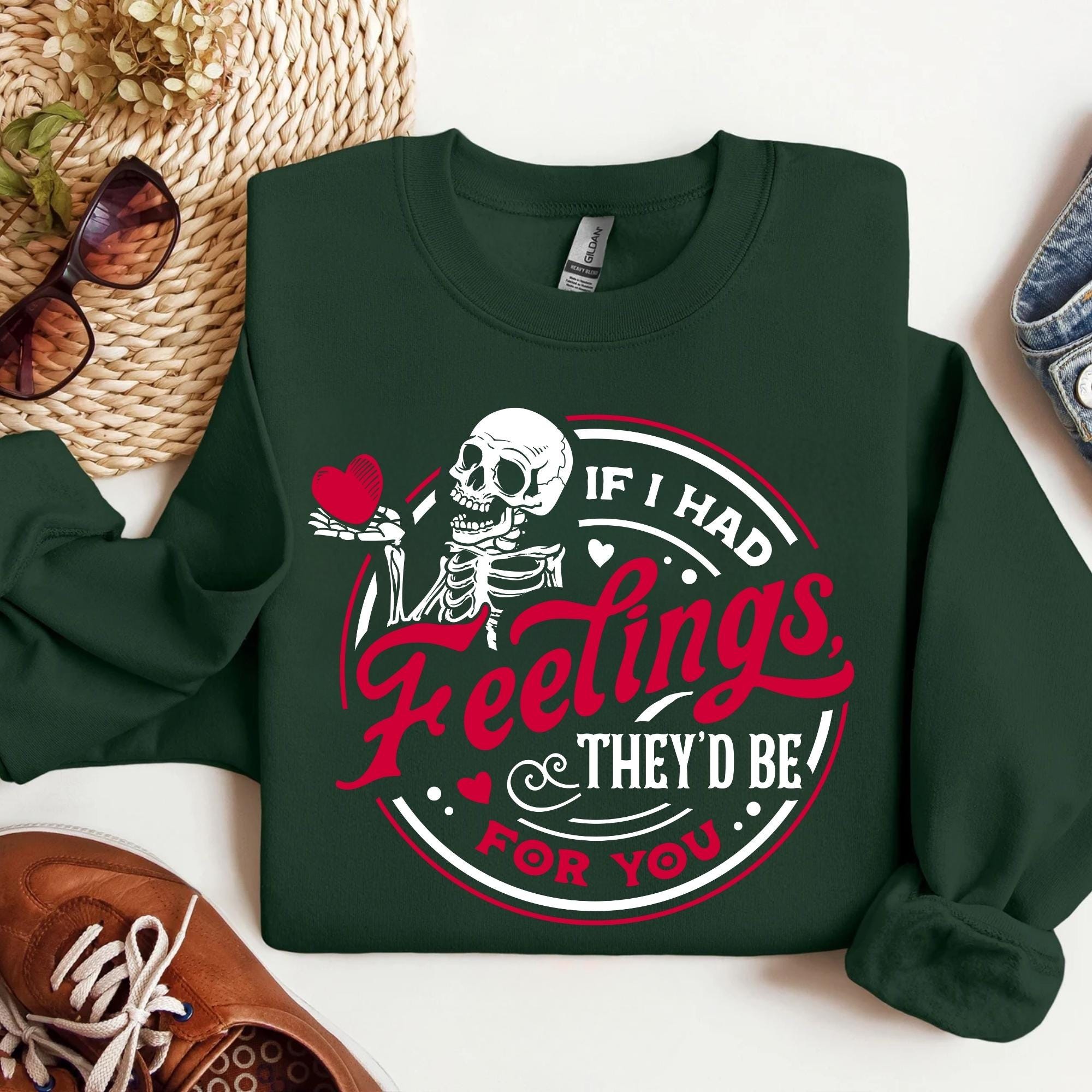 If I Had Feelings They’d Be For You Shirt, Valentines Day Sweatshirt,Skeleton Valentines Tee,Funny Valentines Day Shirt, Sarcastic Valentine
