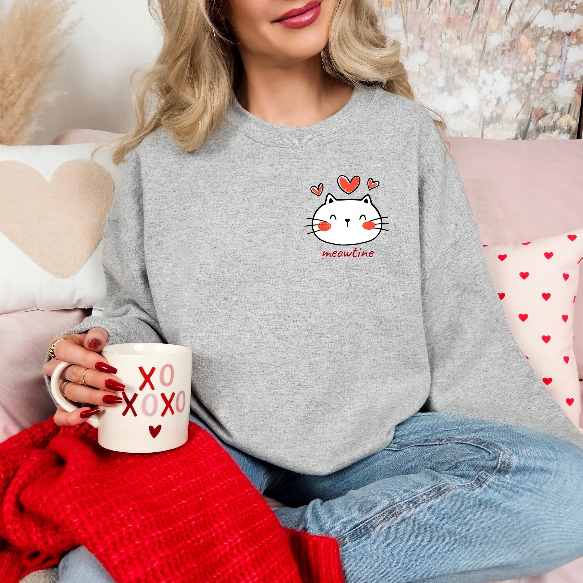 Cute Cat Valentines Sweatshirt, Cat Lover Valentines Gift, Cat Mom Valentines Shirt, Womens Valentines Shirt, Love Shirt, Valentines Outfit