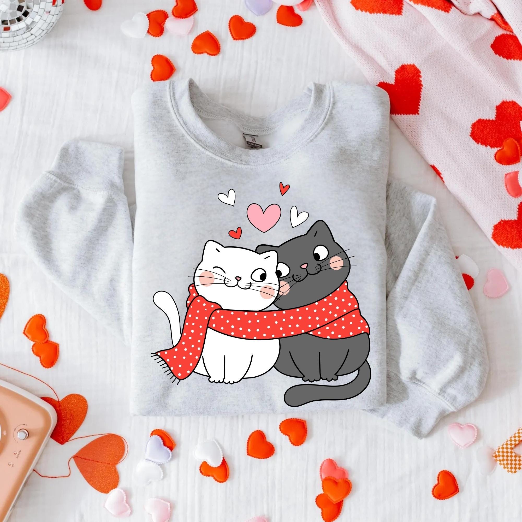 Cute Cat Valentines Sweatshirt, Cat Lover Valentines Gift, Cat Mom Valentines Shirt, Womens Valentines Shirt, Love Shirt, Valentines Outfit