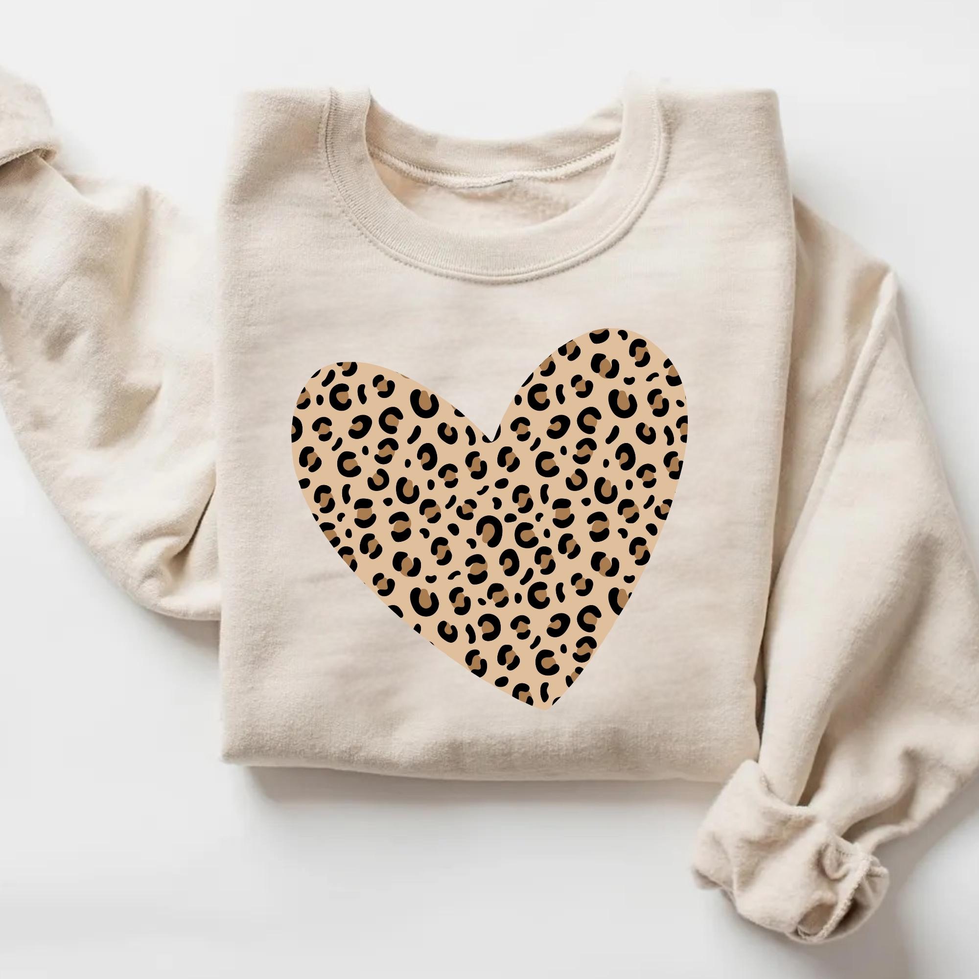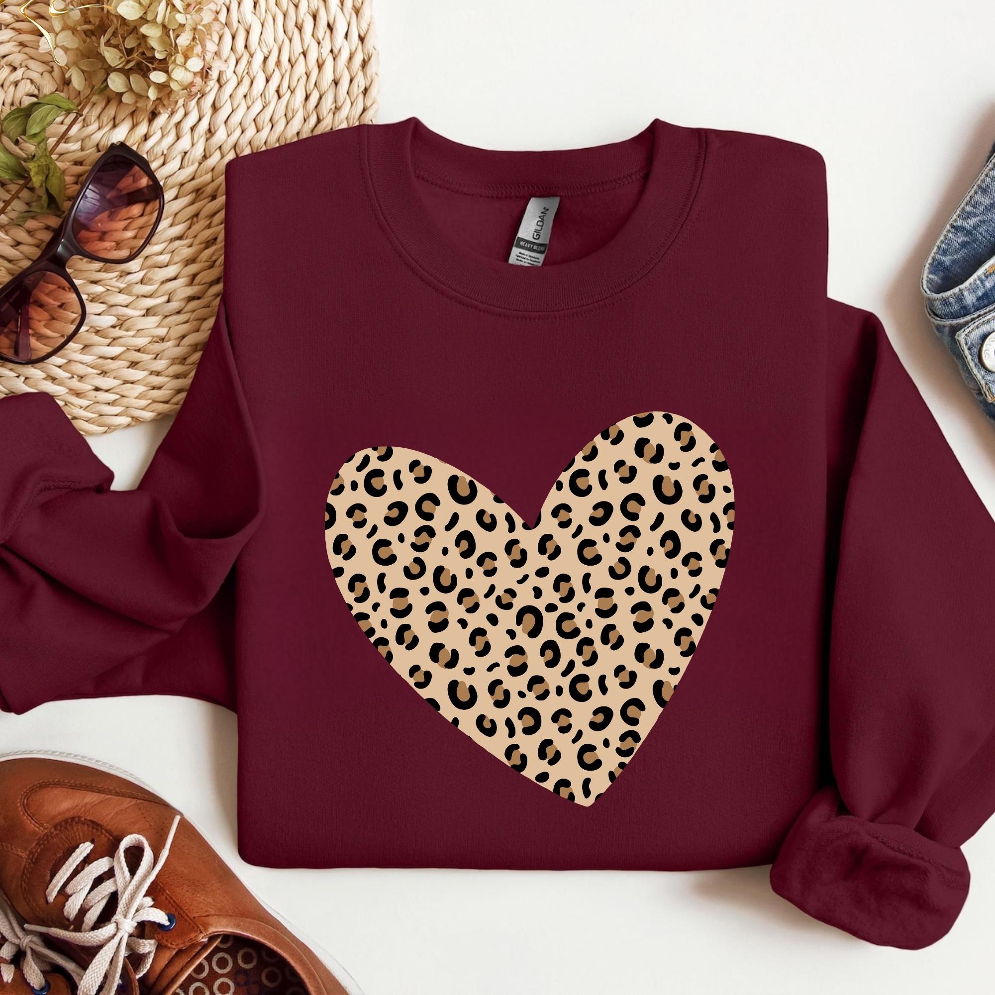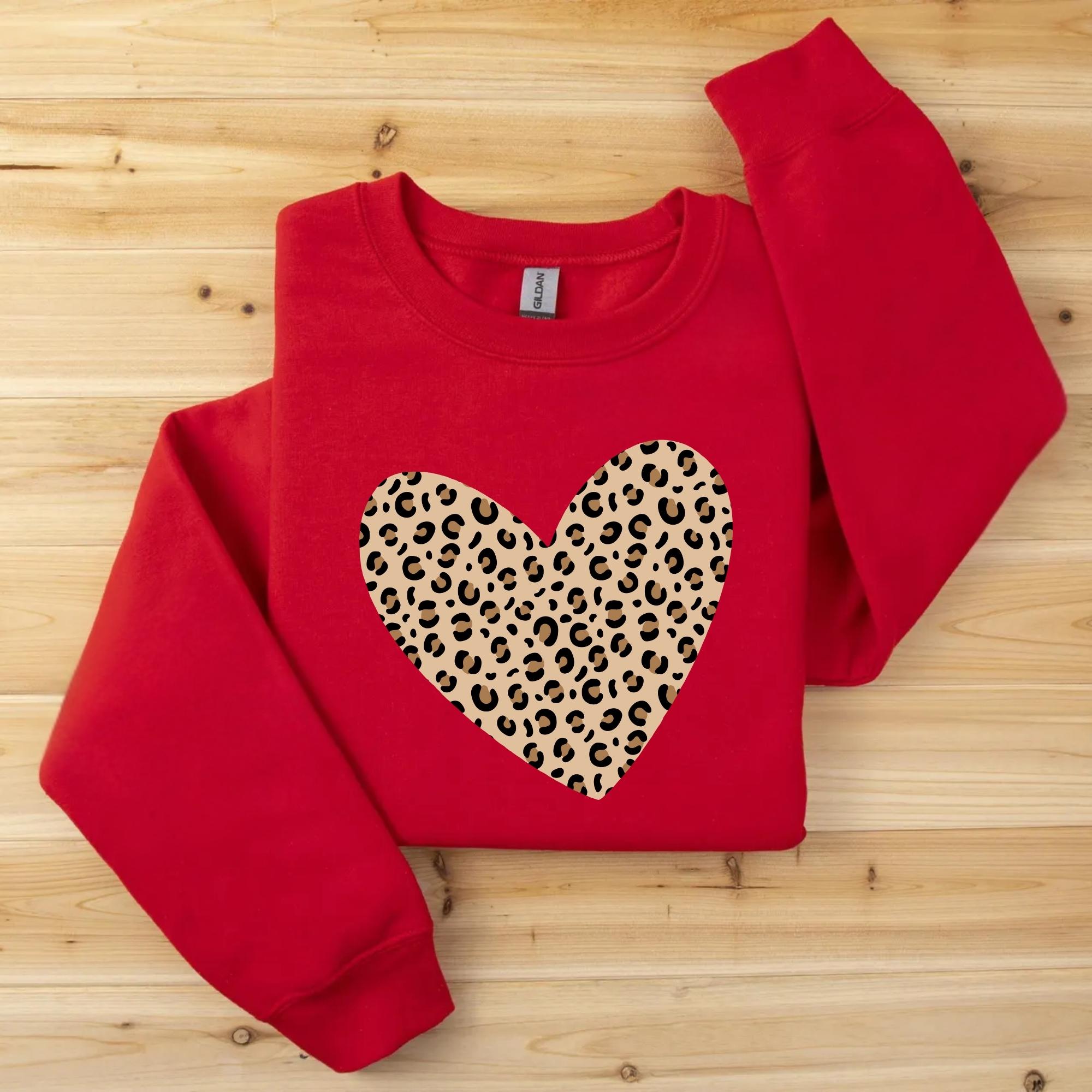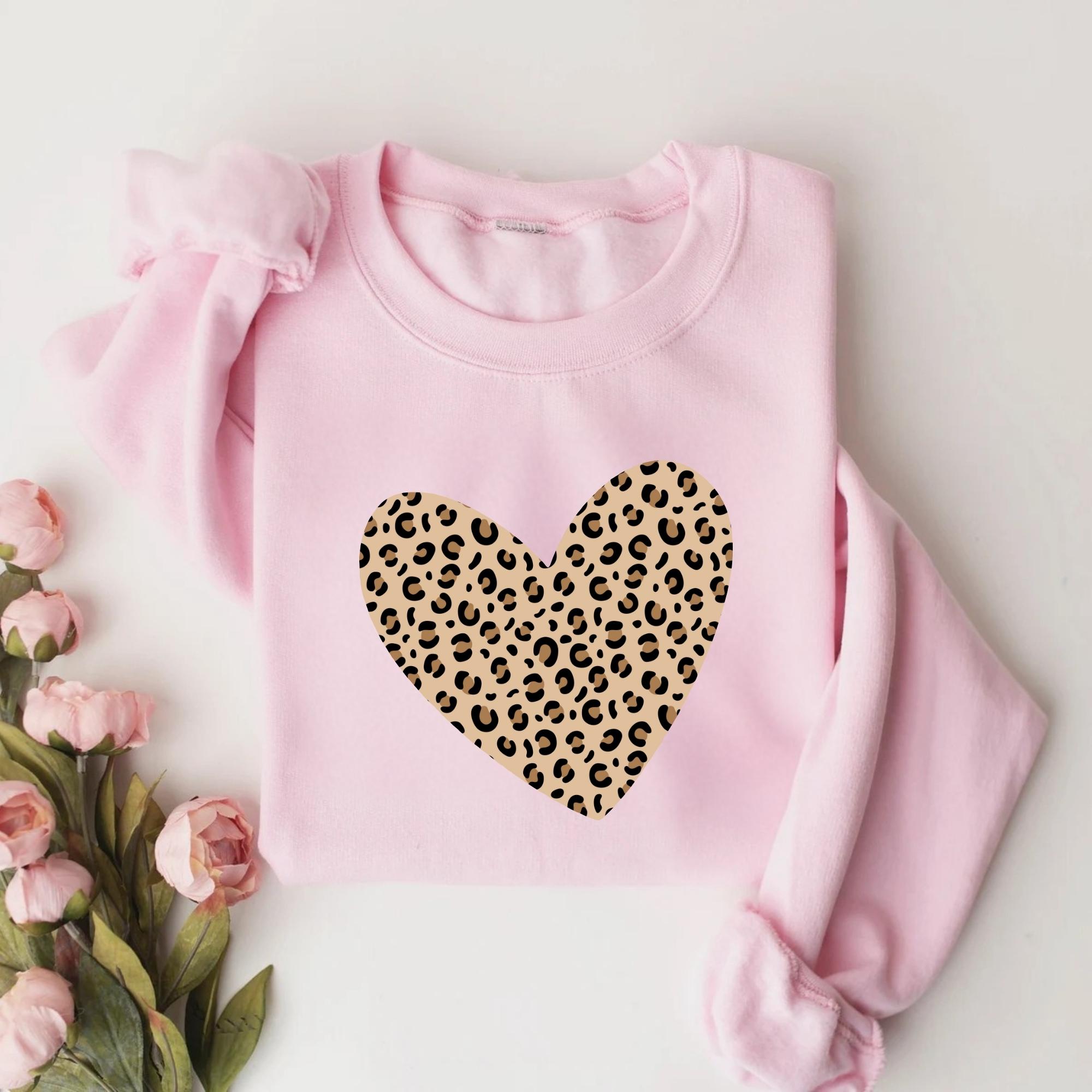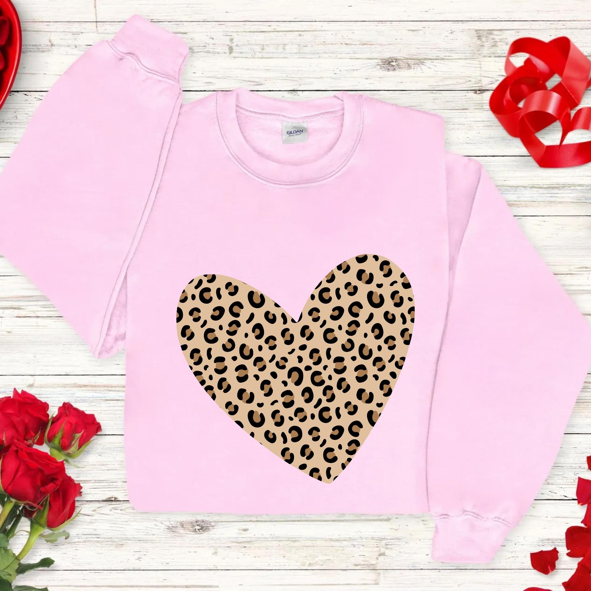 Heart Valentine Sweatshirt, Leopard Heart Sweatshirt, Leopard Print Sweatshirt, Animal Print, Cute Valentine Day Shirt for Women, Love Shirt