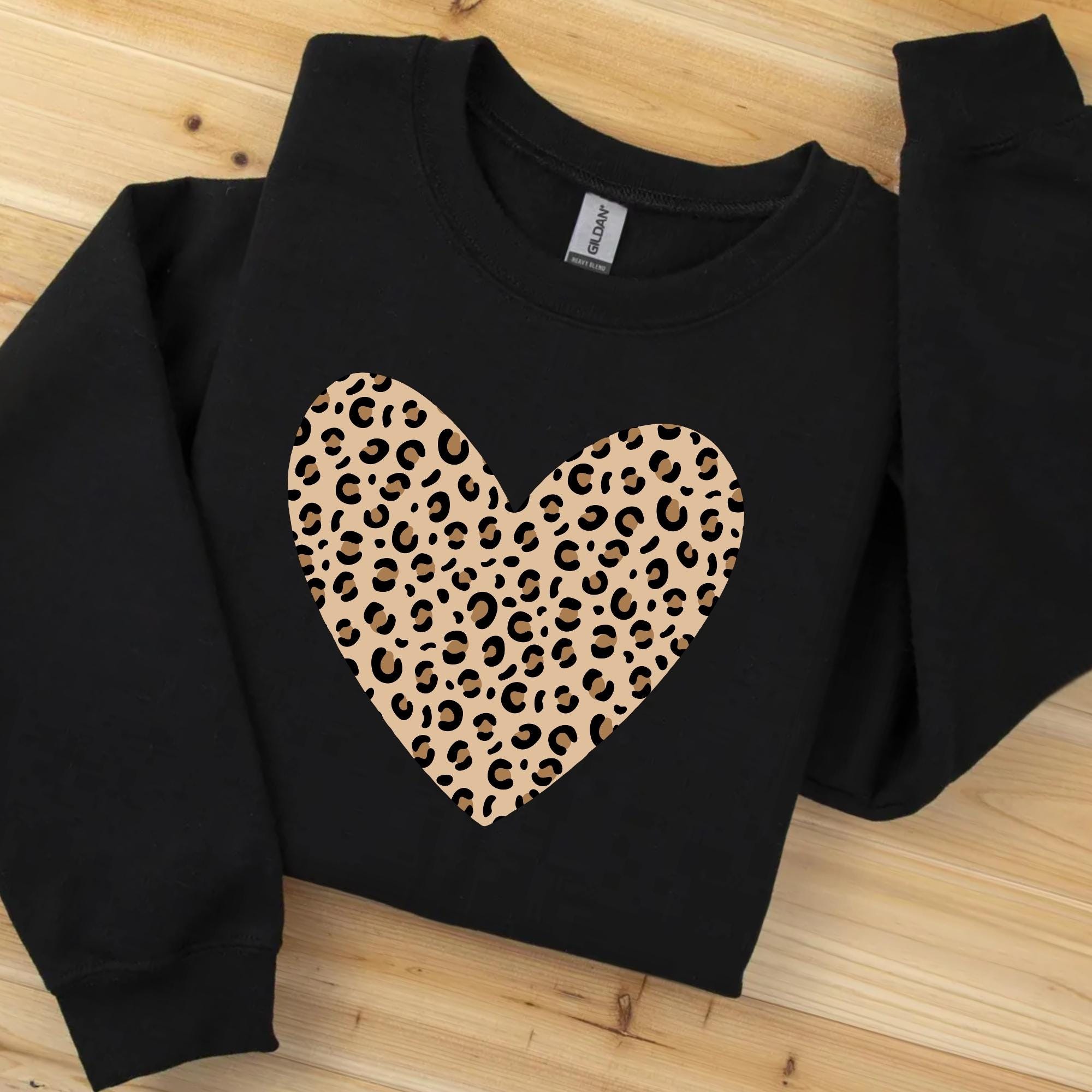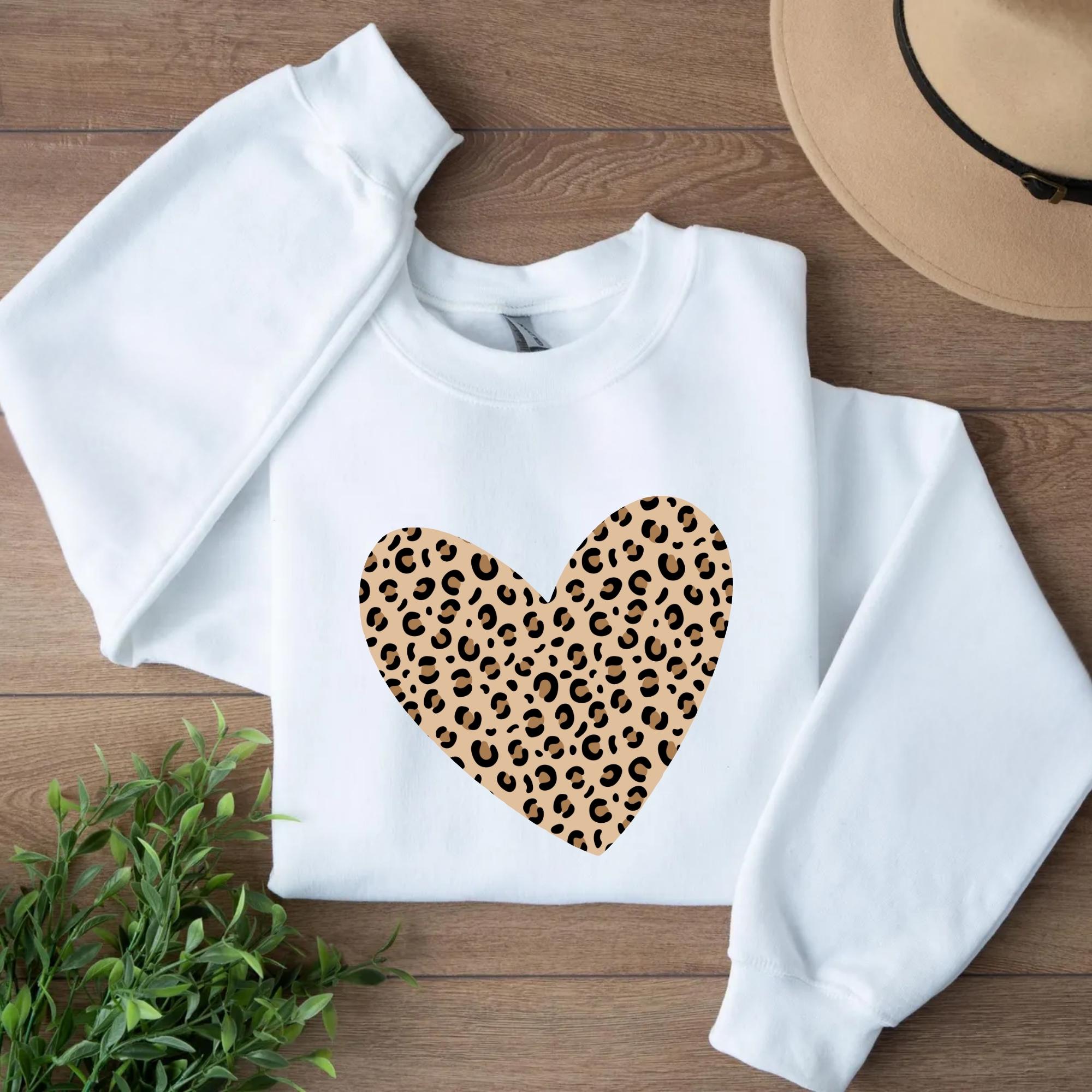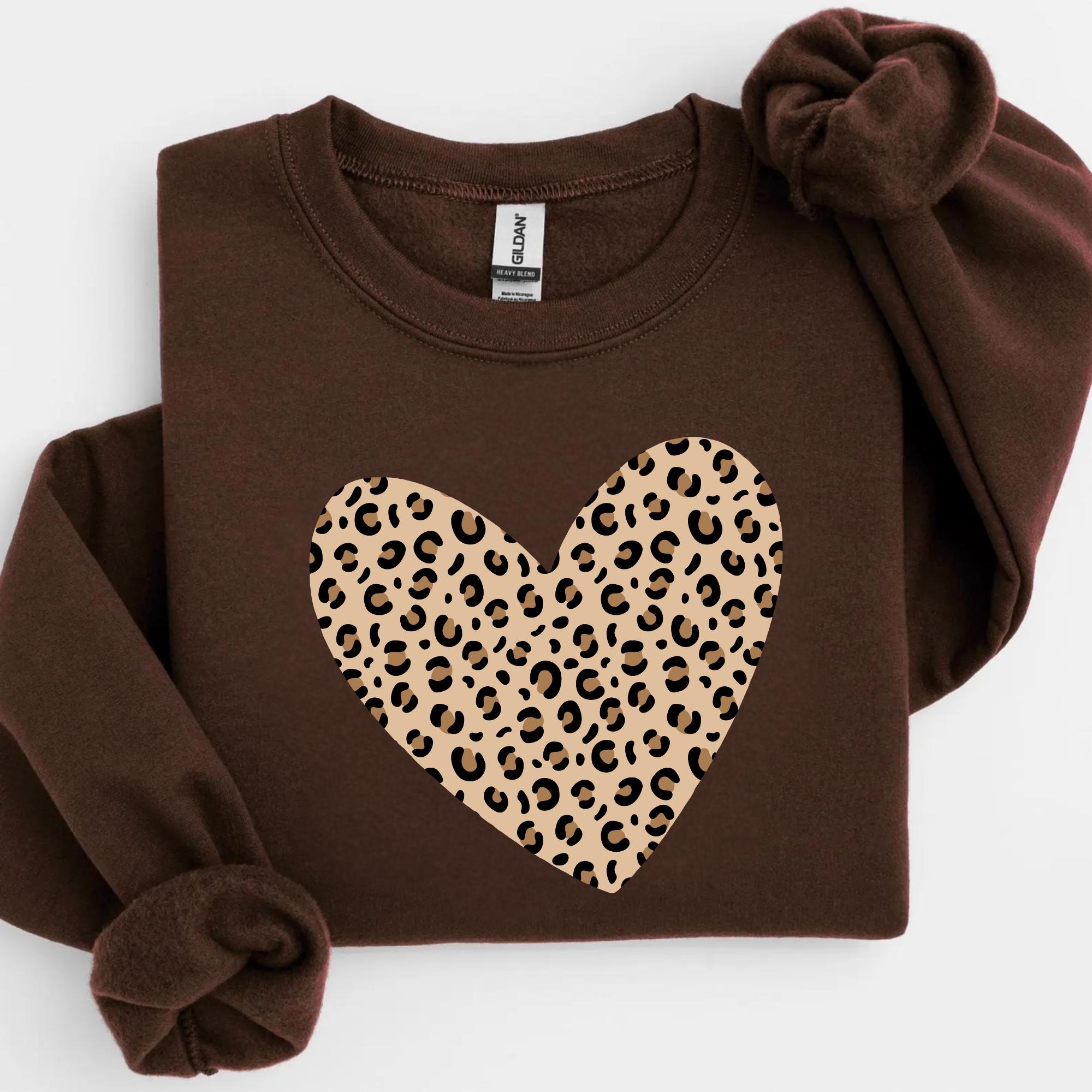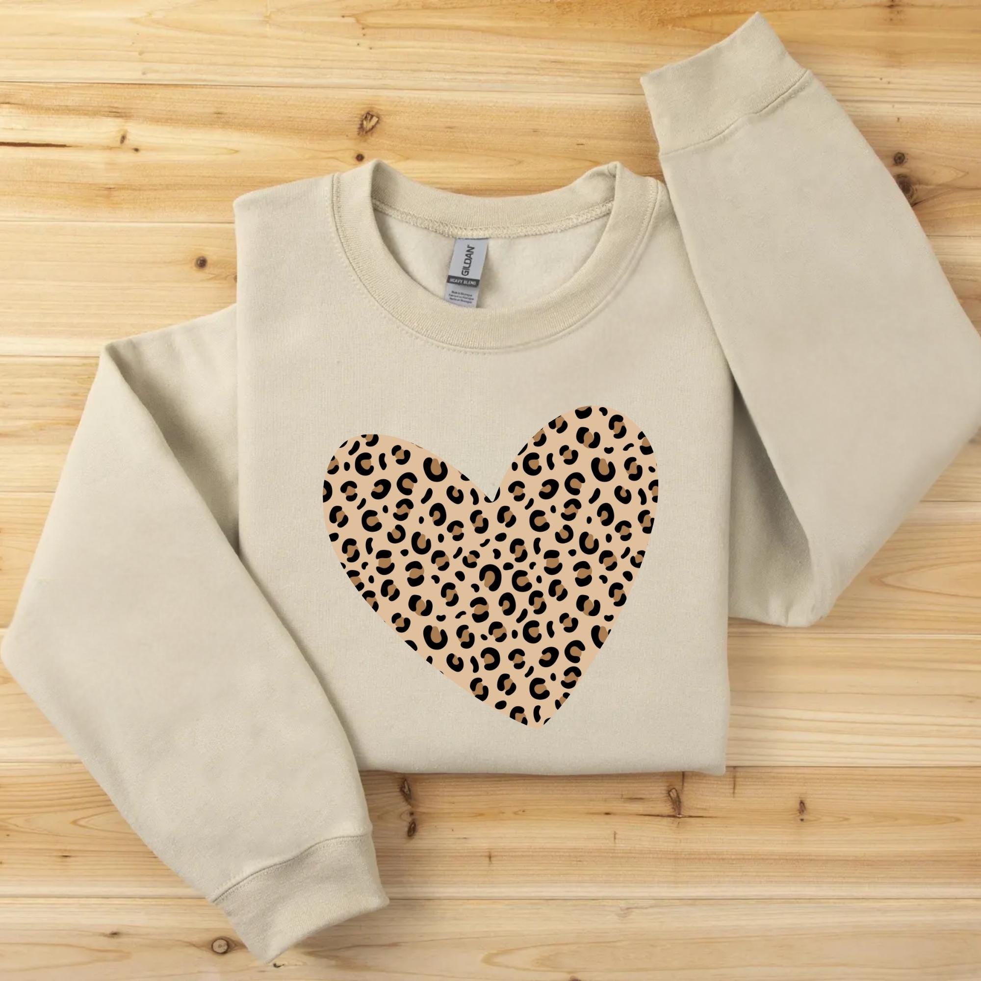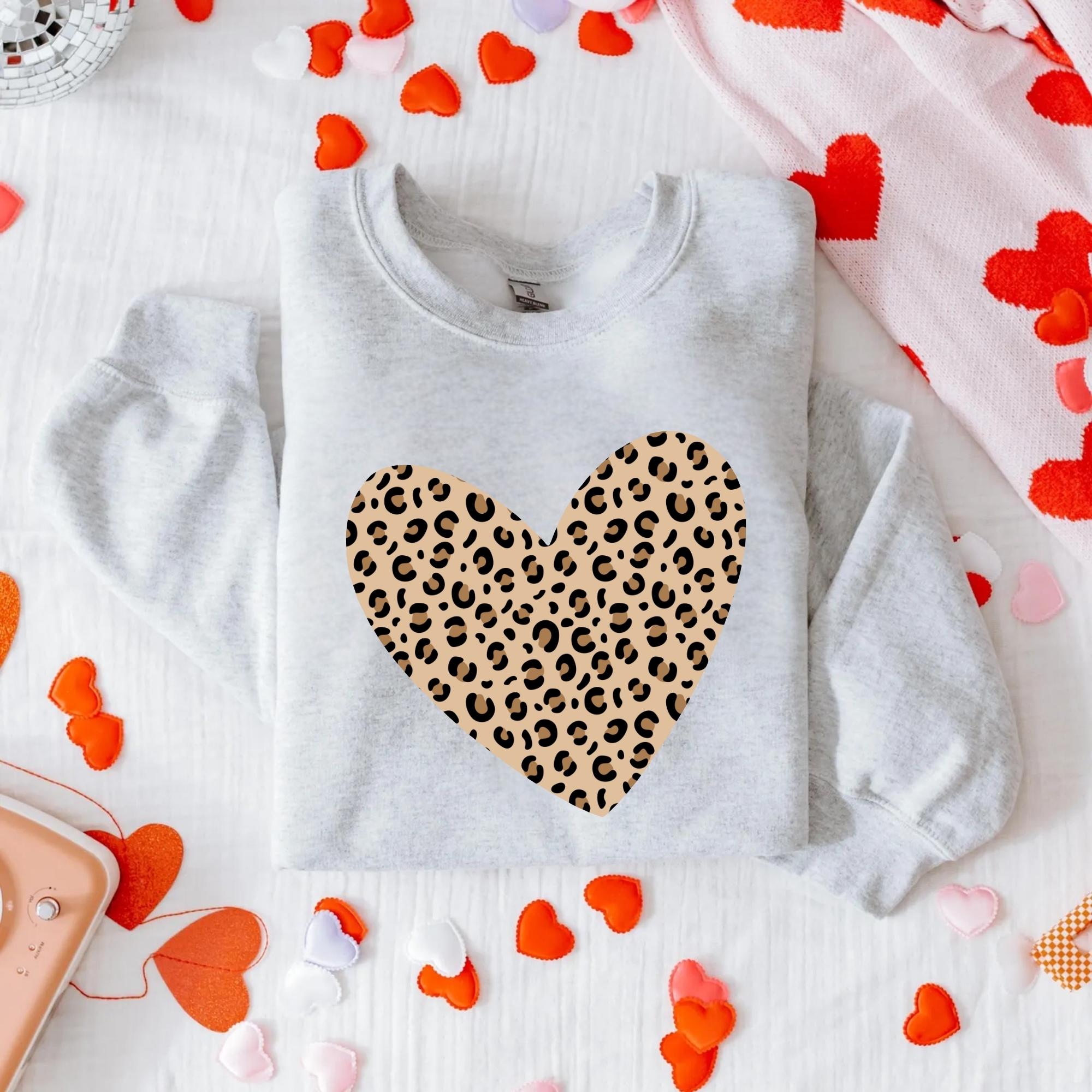 Heart Valentine Sweatshirt, Leopard Heart Sweatshirt, Leopard Print Sweatshirt, Animal Print, Cute Valentine Day Shirt for Women, Love Shirt