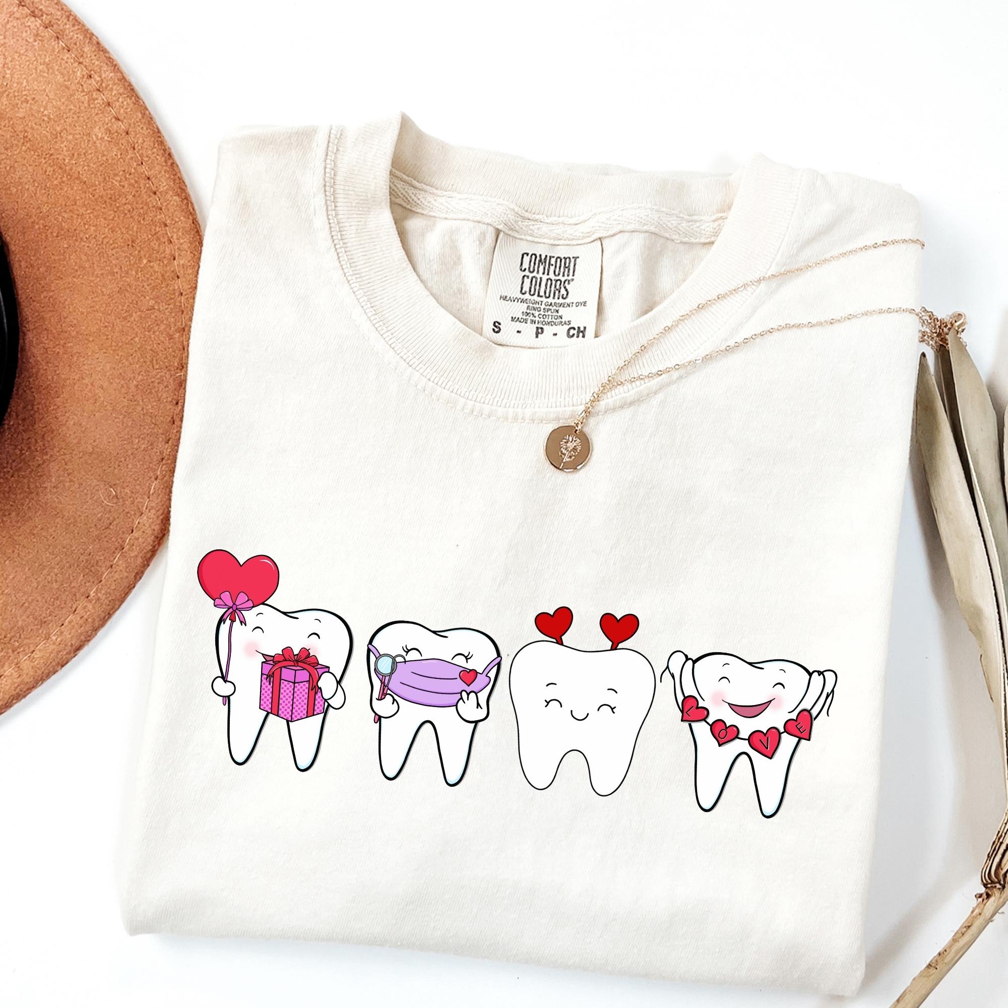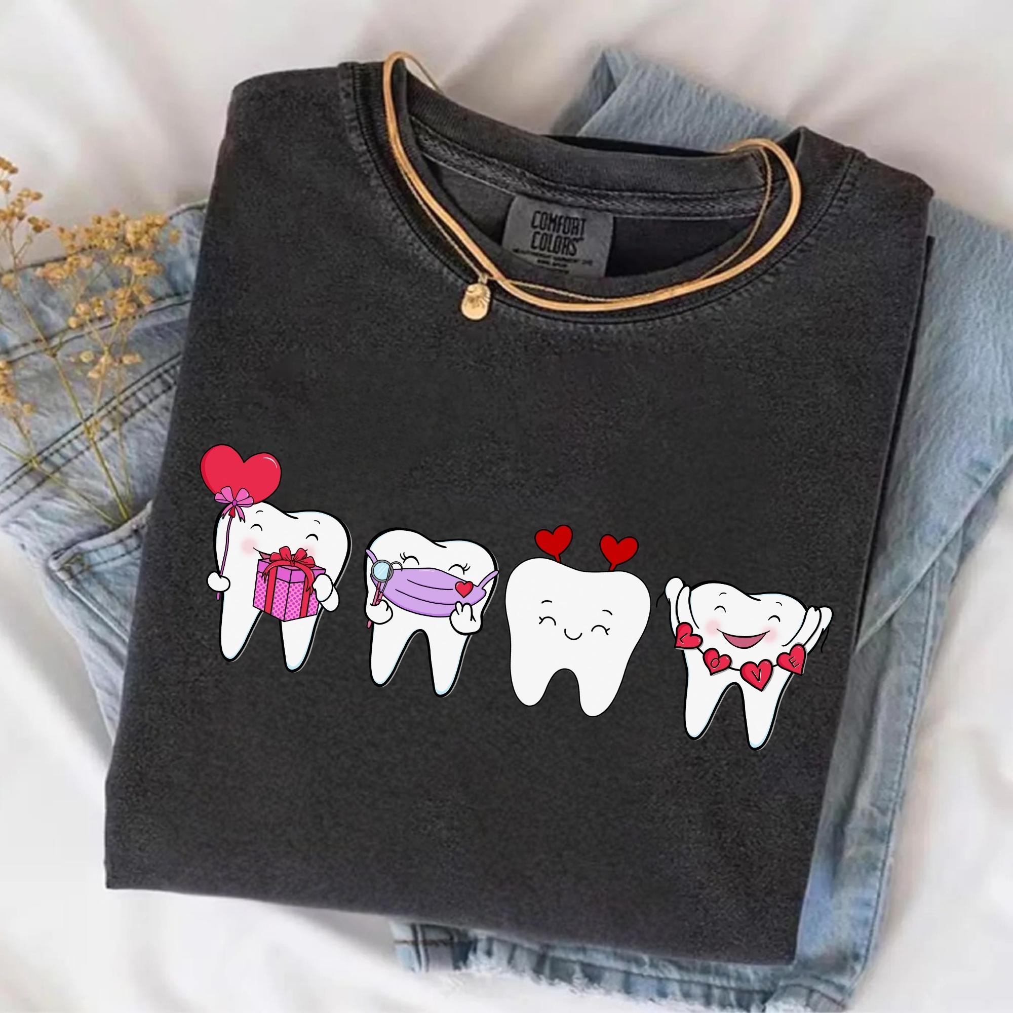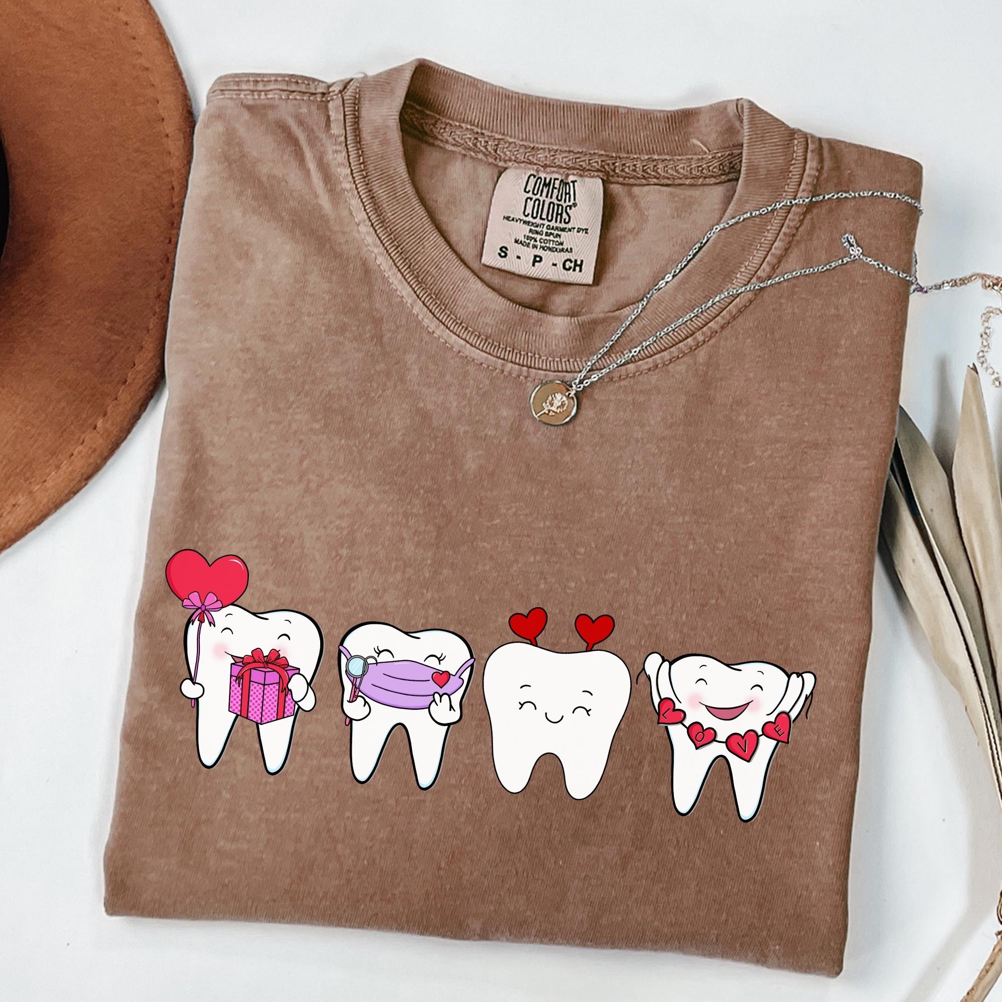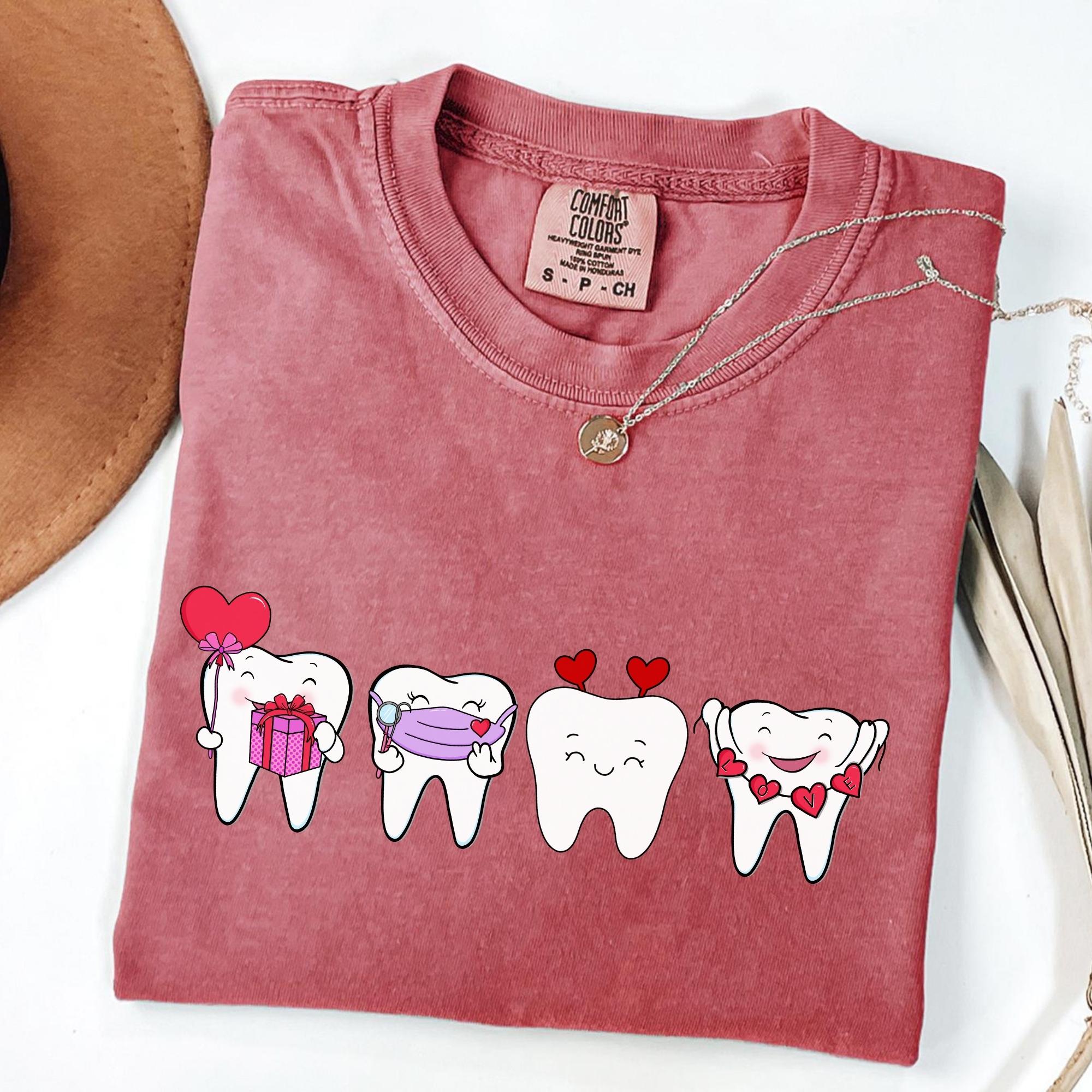 Dentist Valentines Day Shirt Comfort Colors Orthodontist Gift Retro Valentines Day Shirt V-Day Tooth Shirt Trendy Dental Assistant T-Shirt