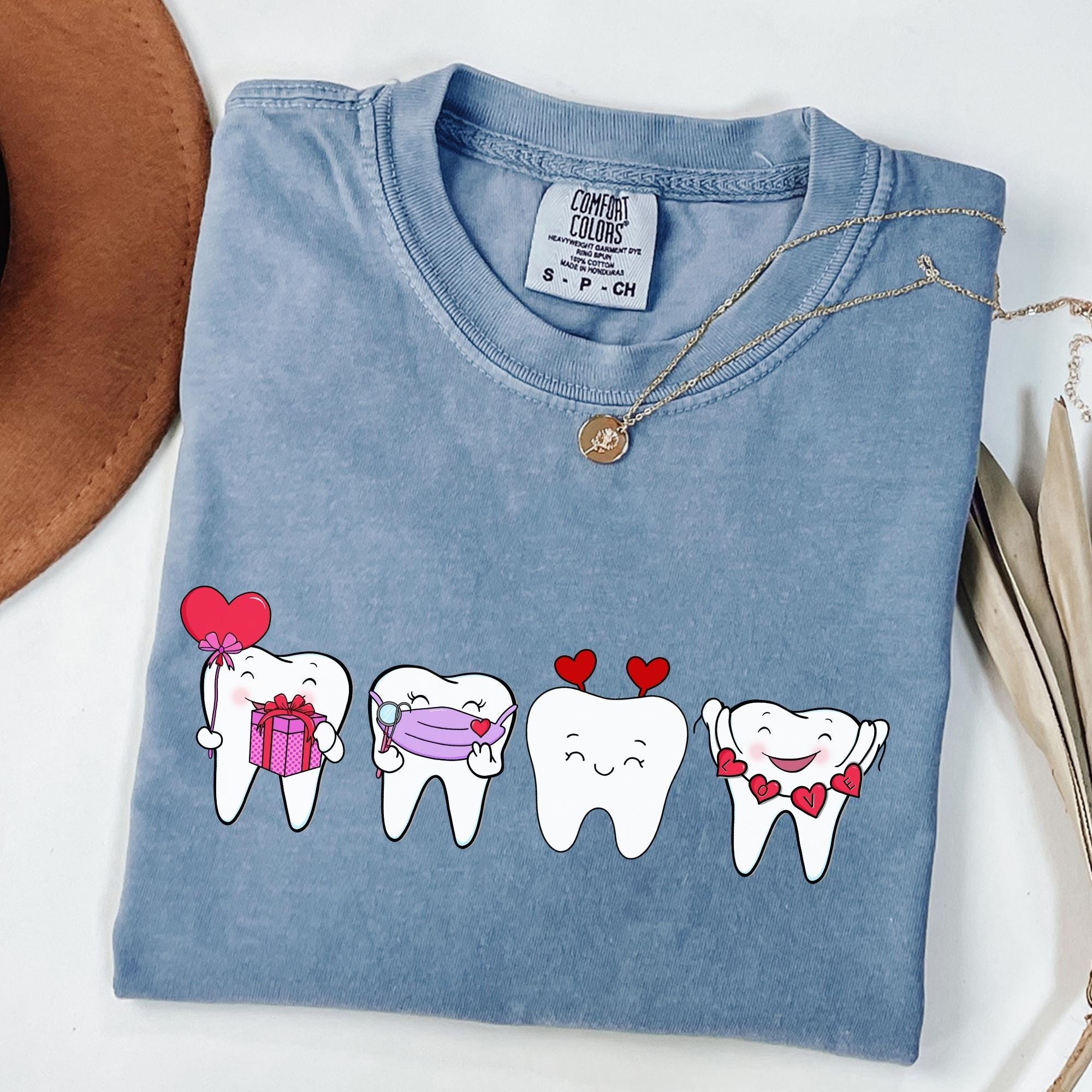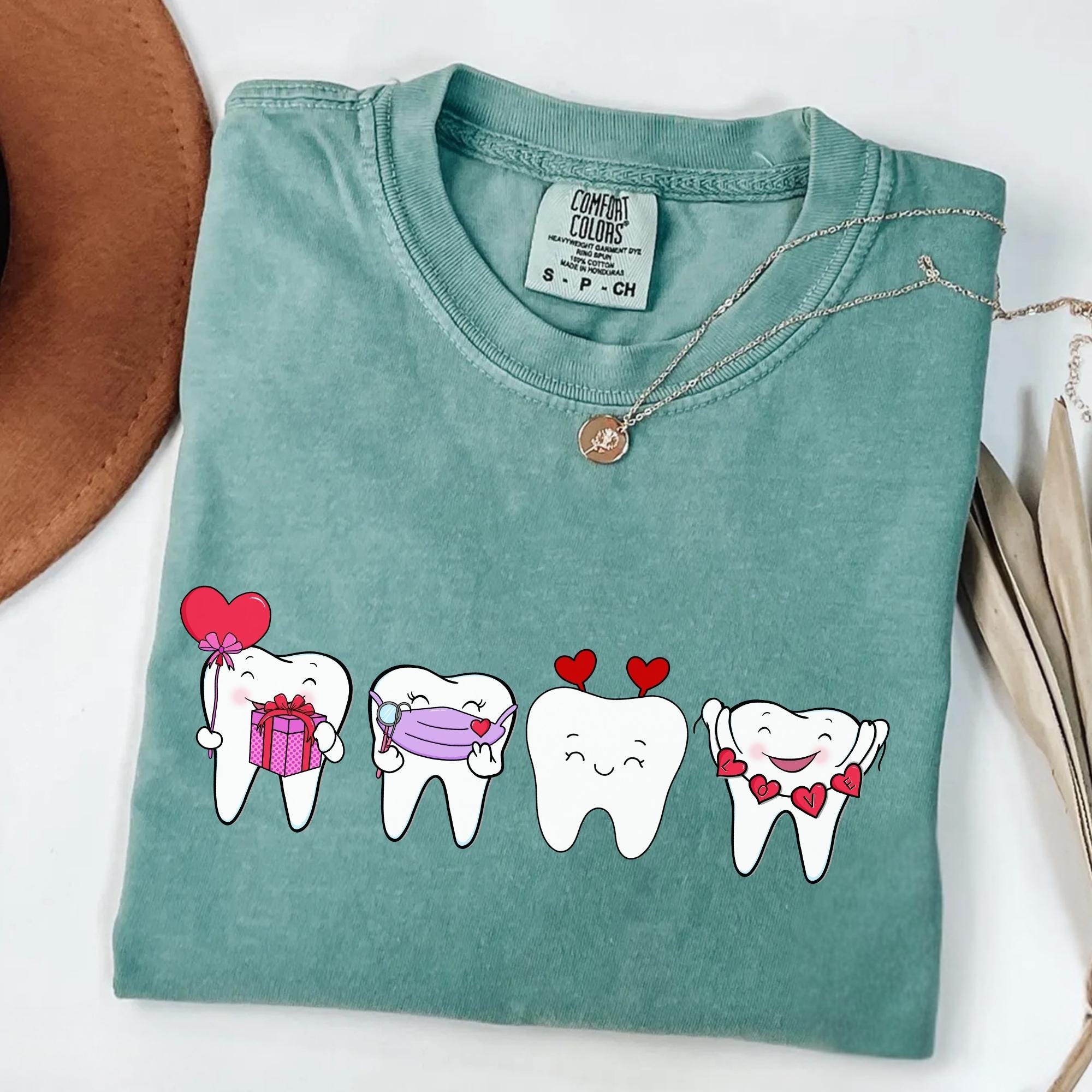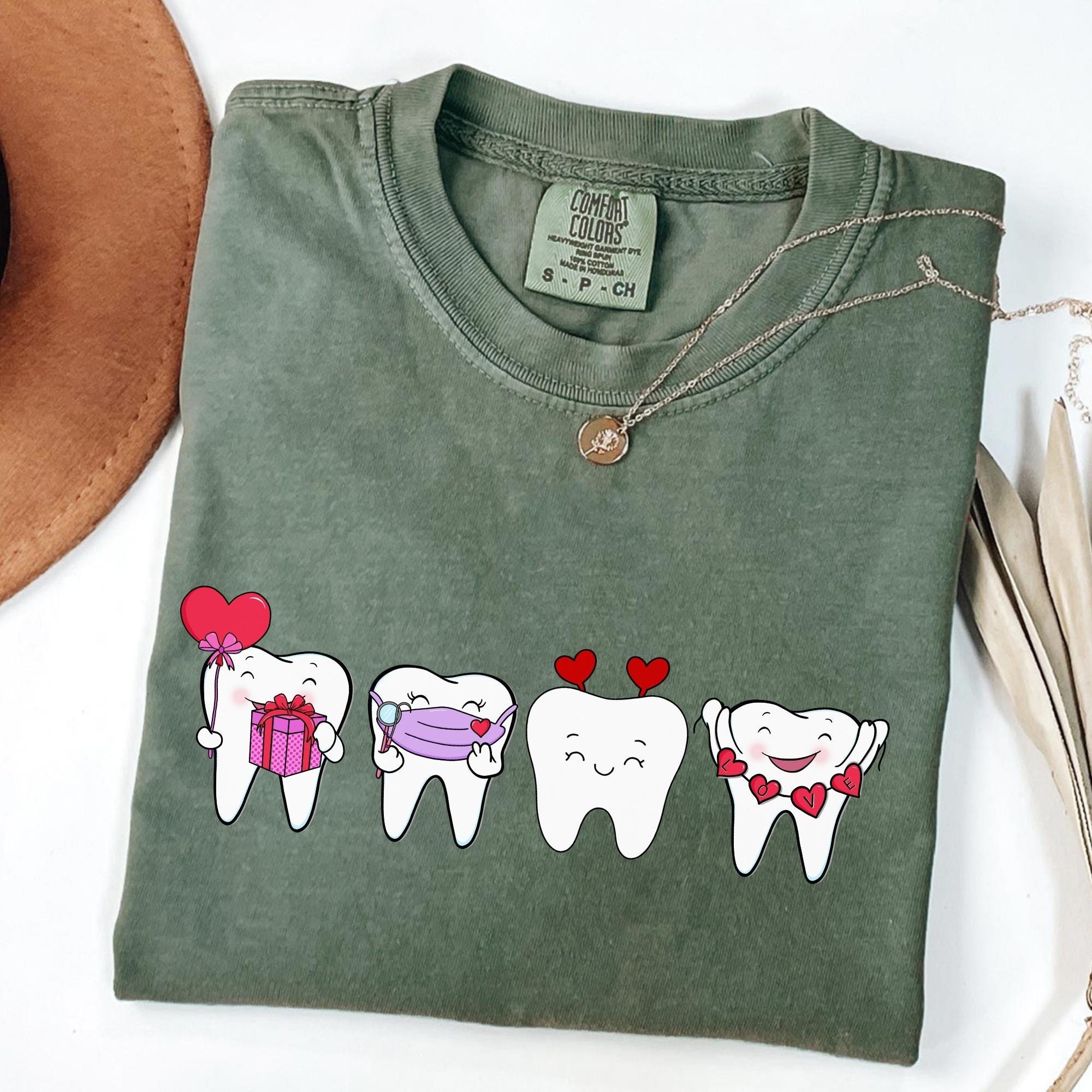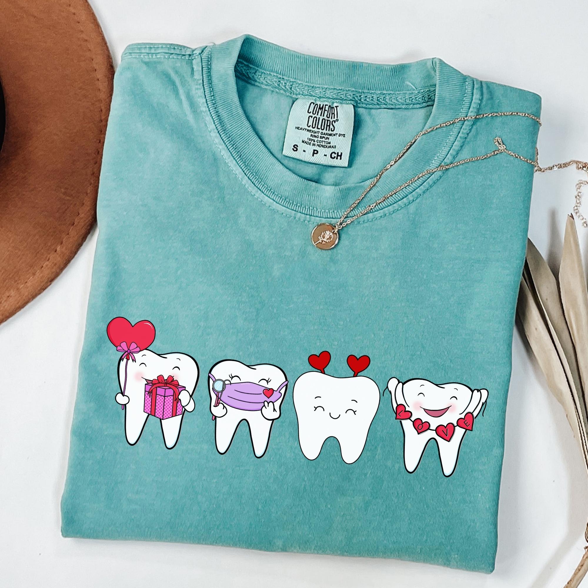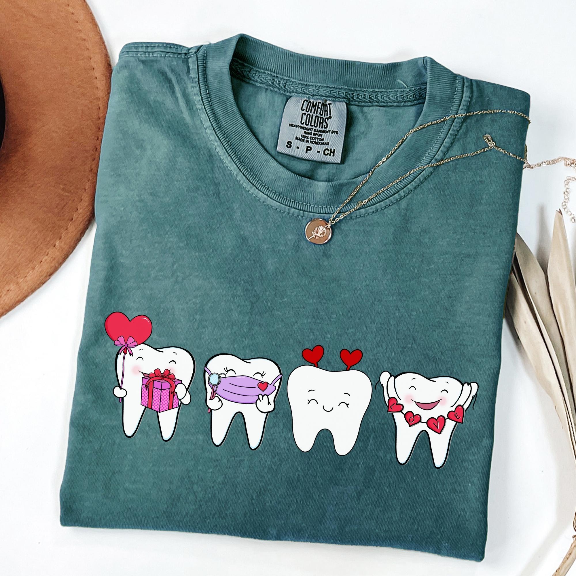 Dentist Valentines Day Shirt Comfort Colors Orthodontist Gift Retro Valentines Day Shirt V-Day Tooth Shirt Trendy Dental Assistant T-Shirt