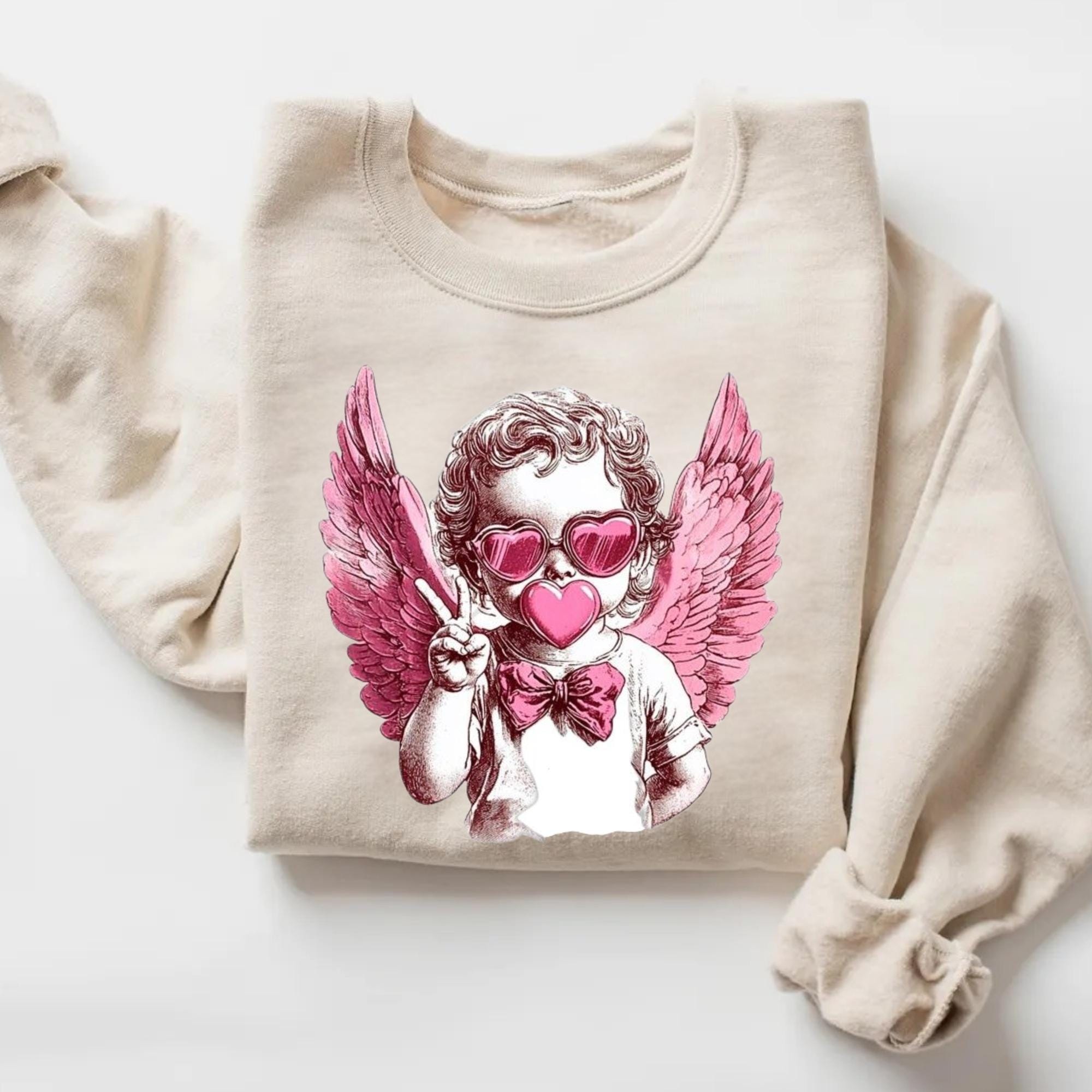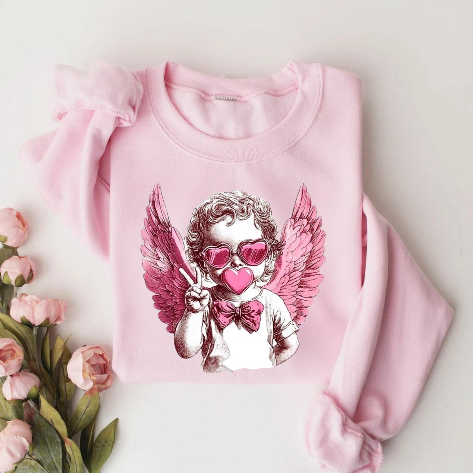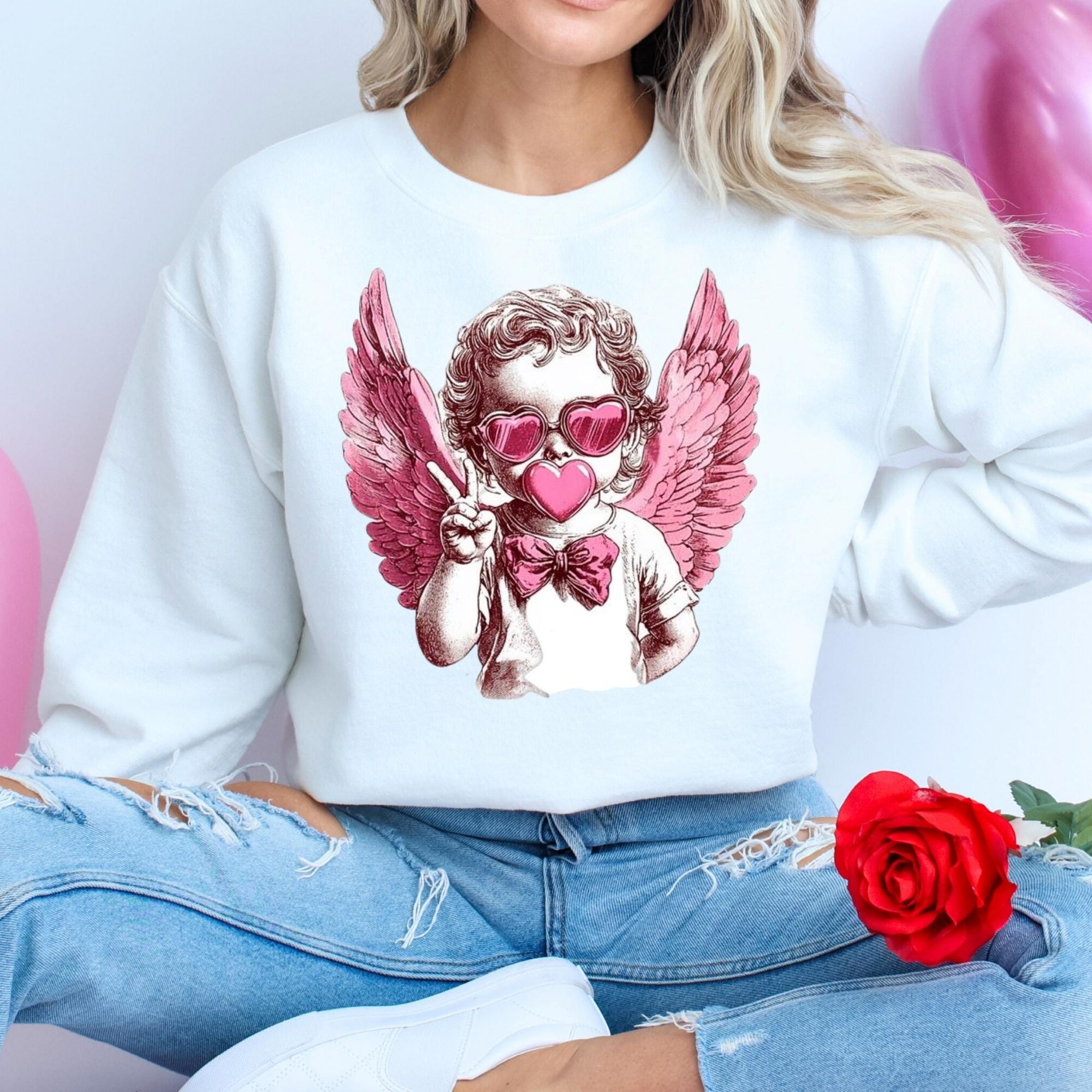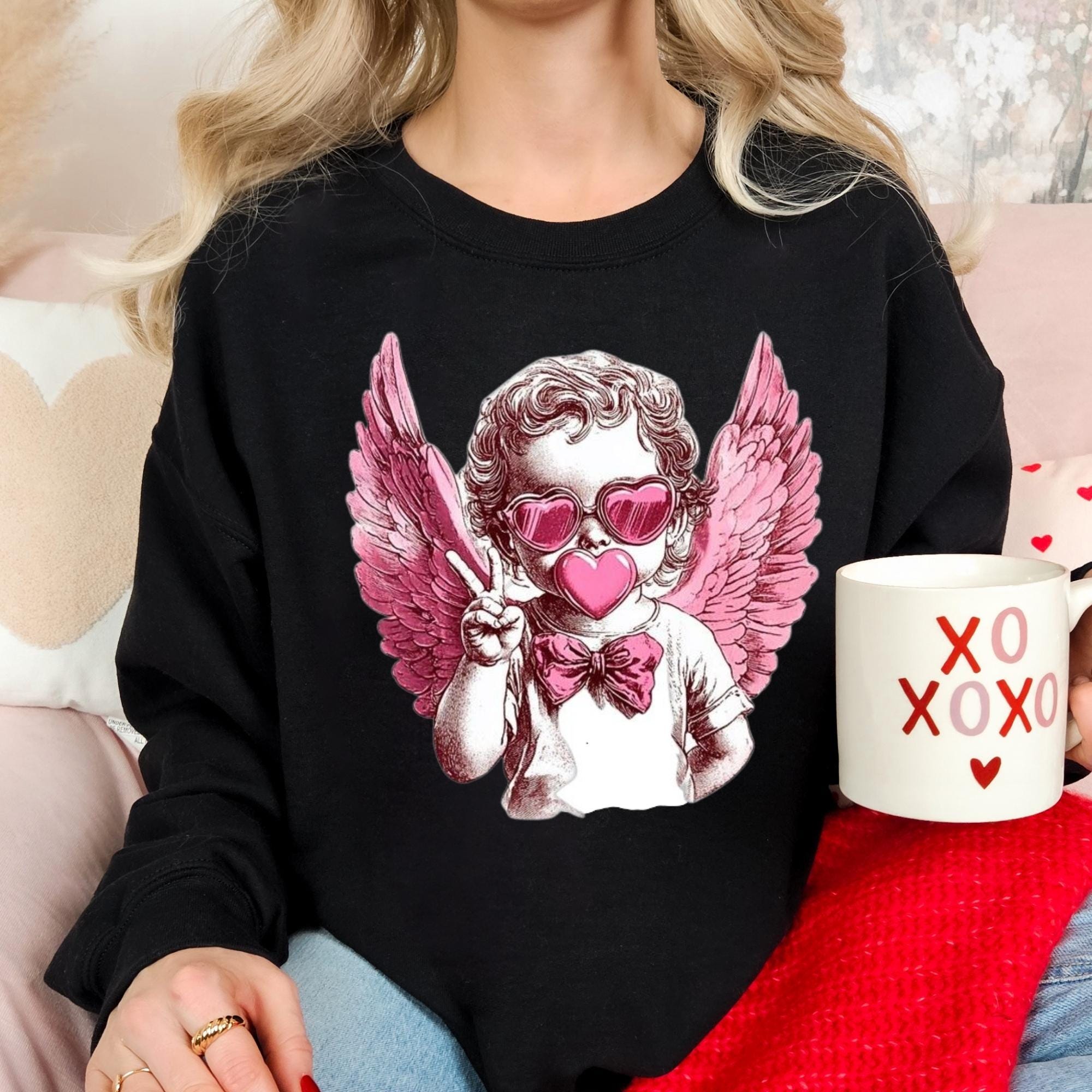 Retro Cupid Sweatshirt, Retro Valentines Day T Shirt, Valentines Angel Baby Sweatshirt, Love Hearts Valentine Sweatshirt, Cupid Day Shirt