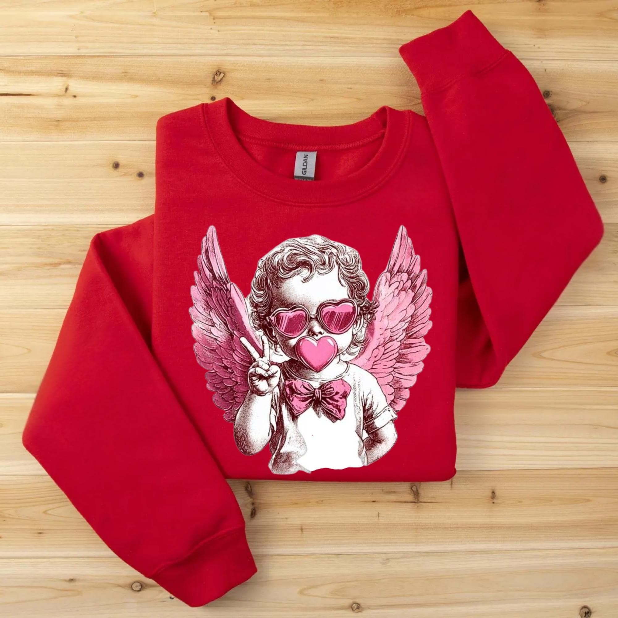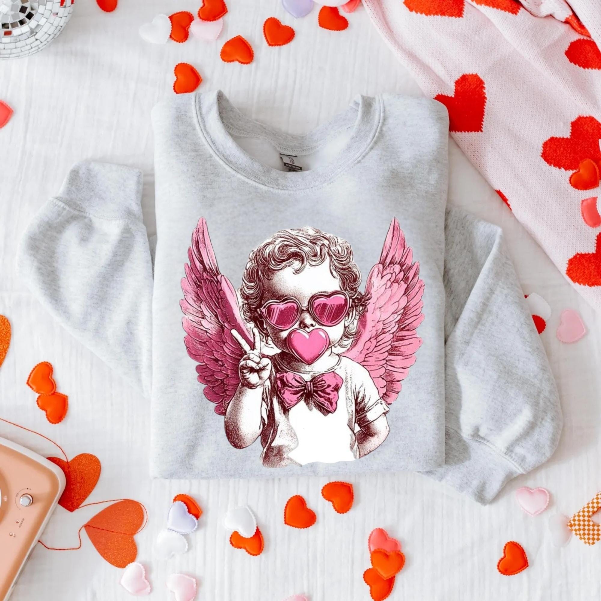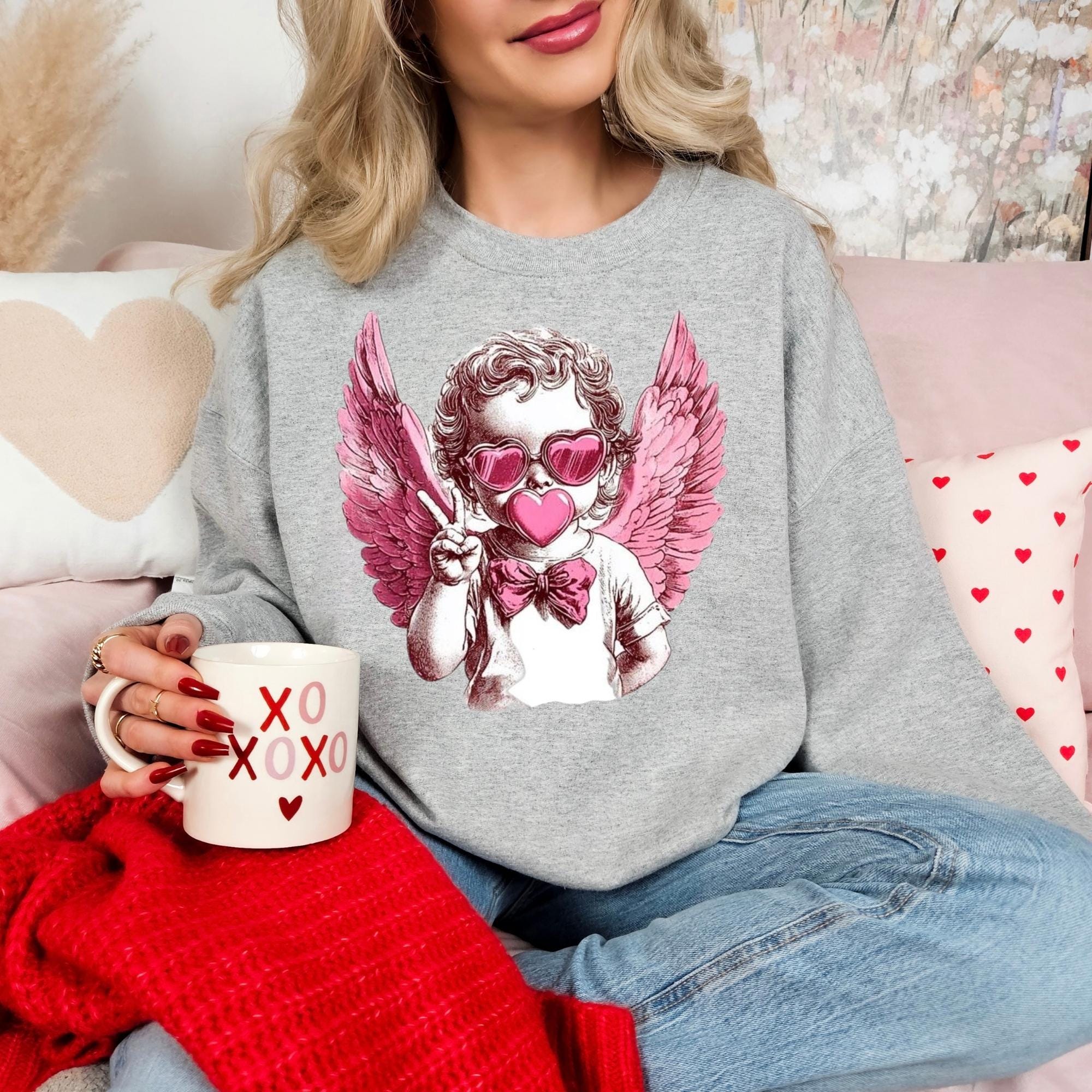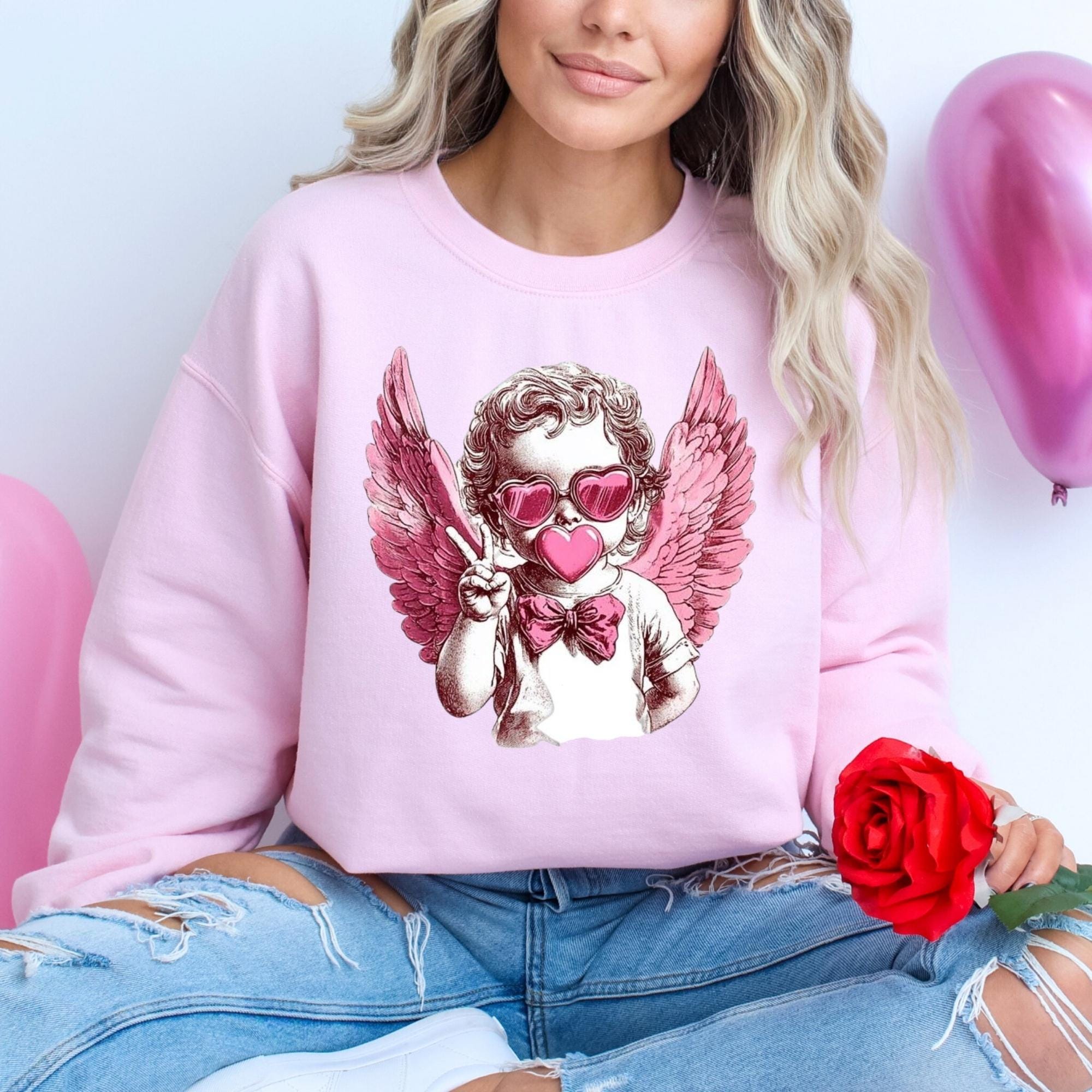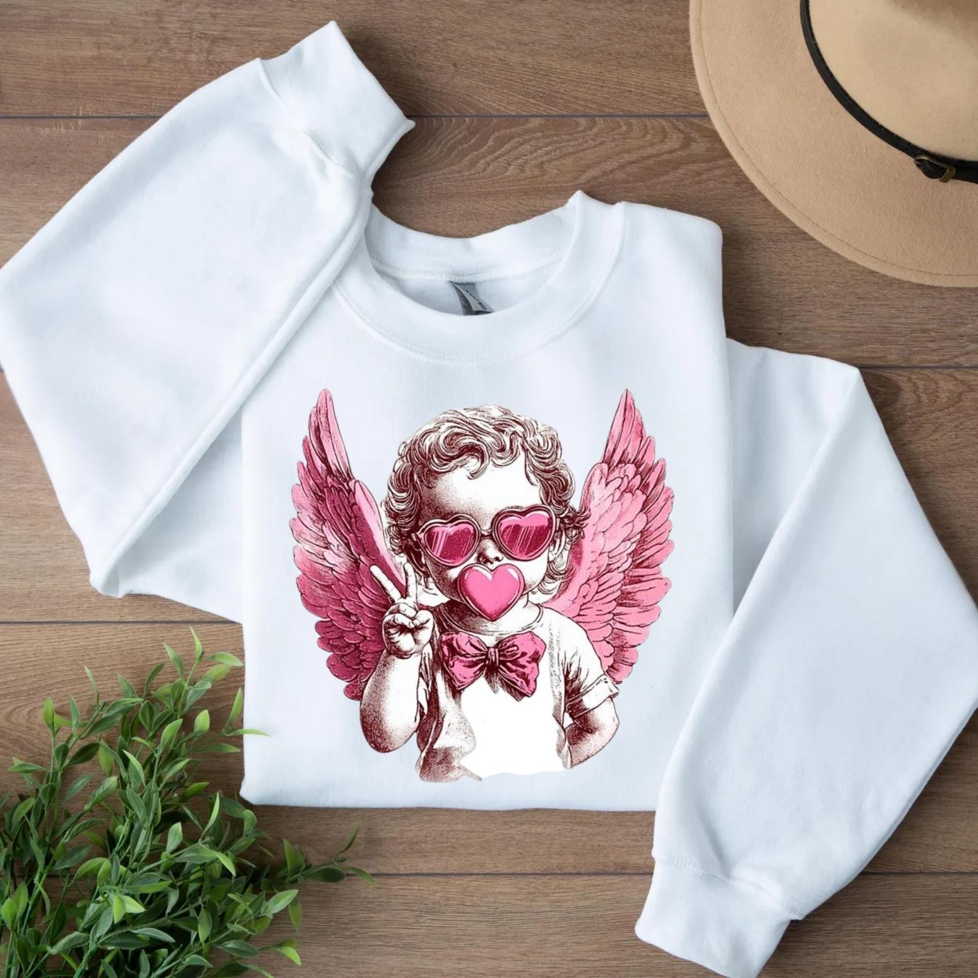 Retro Cupid Sweatshirt, Retro Valentines Day T Shirt, Valentines Angel Baby Sweatshirt, Love Hearts Valentine Sweatshirt, Cupid Day Shirt