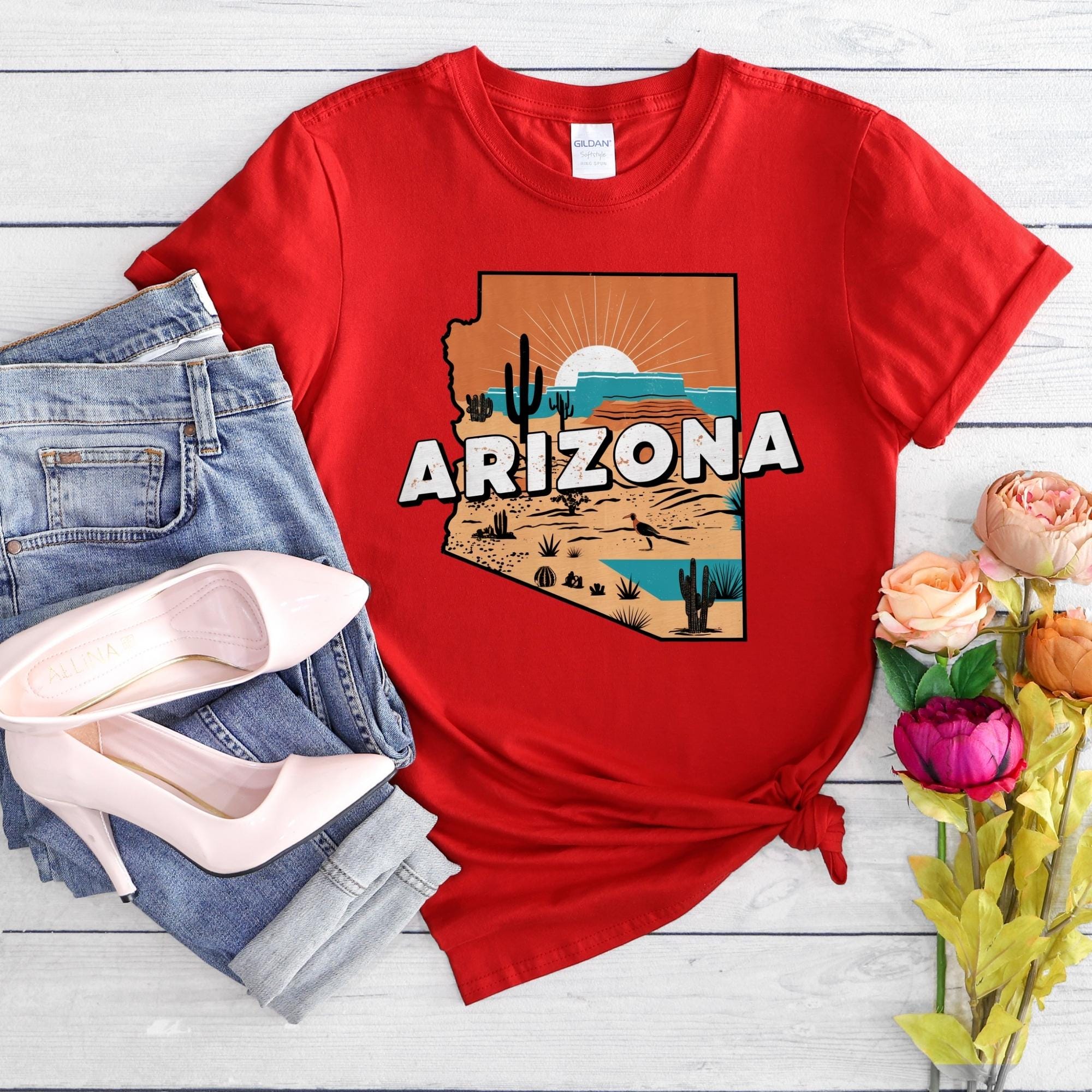 Arizona State Shirt, Retro Arizona Map T-Shirt, Vintage Desert Illustration, Arizona Pride Gift