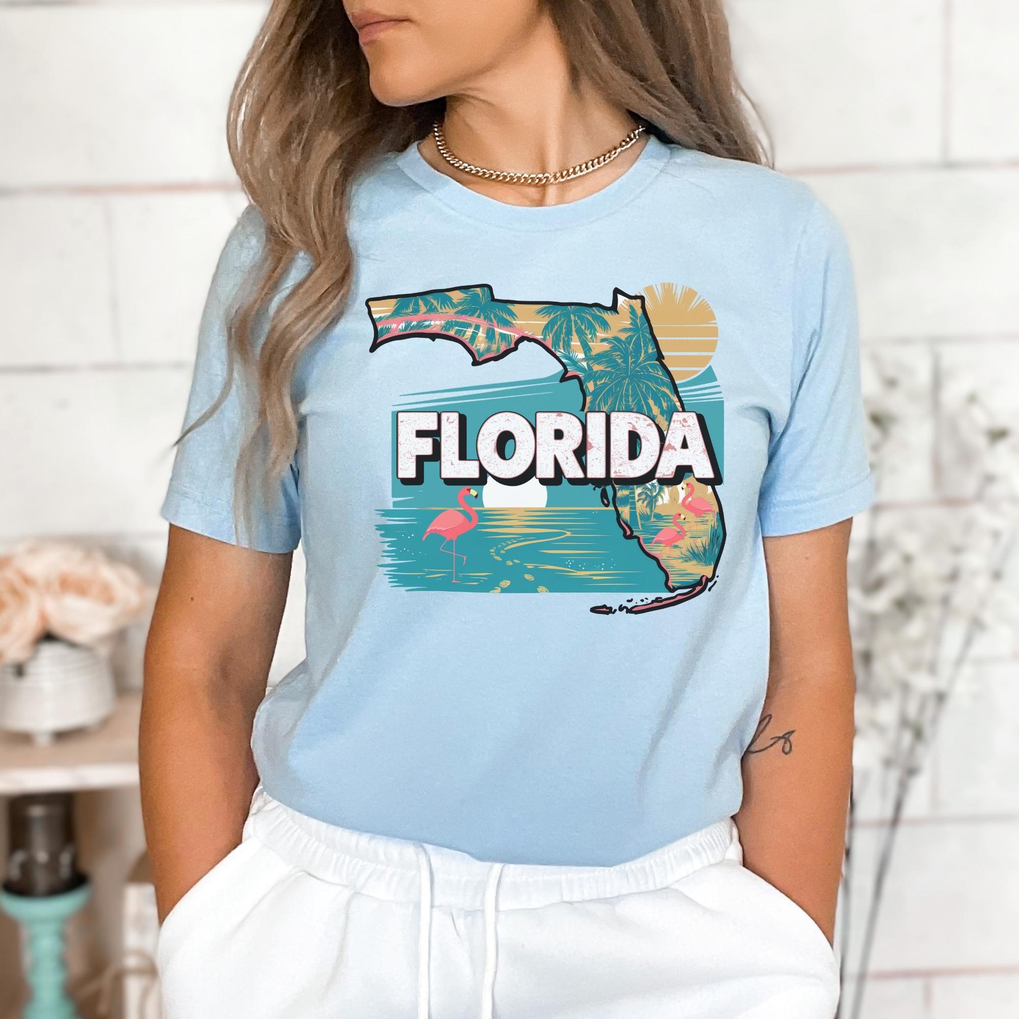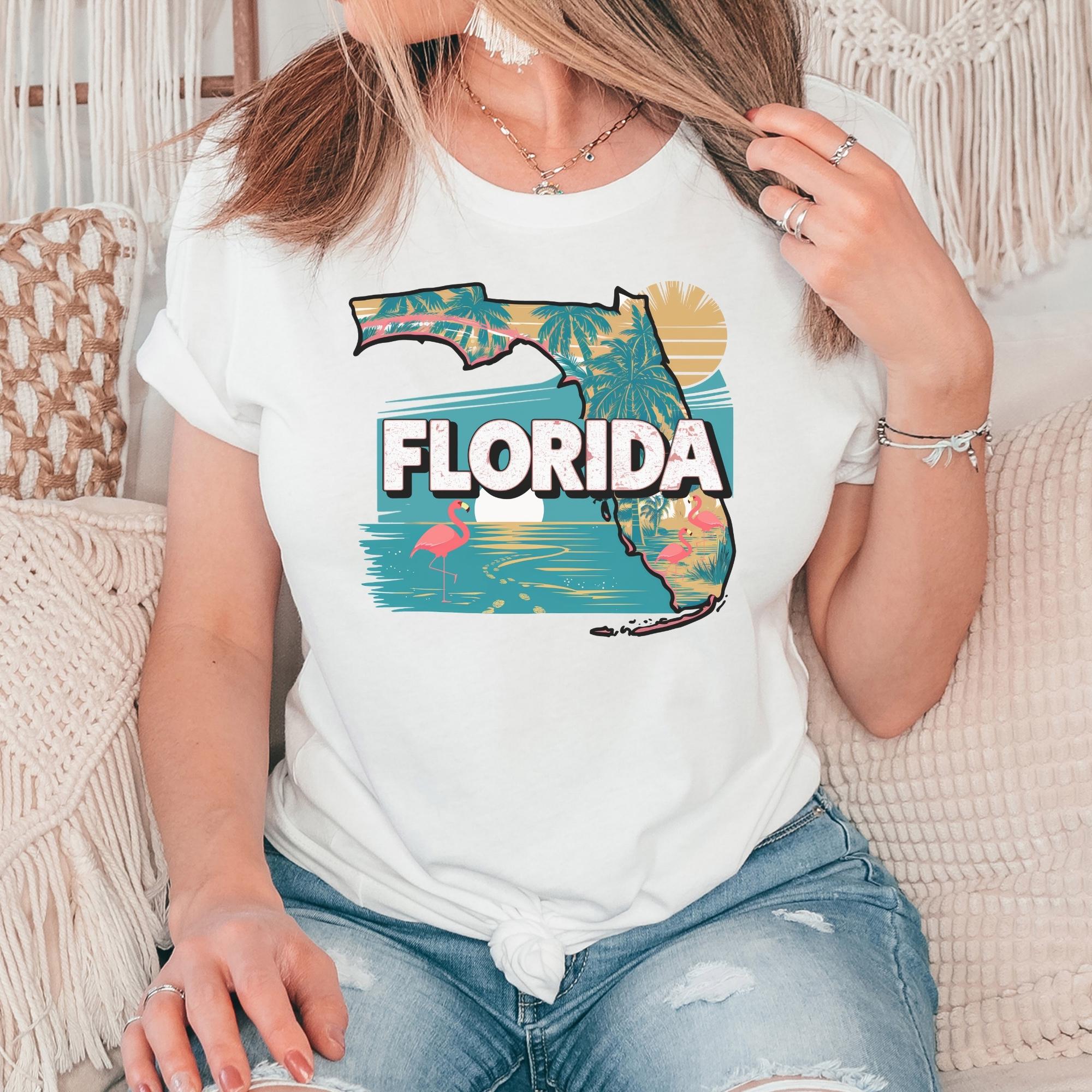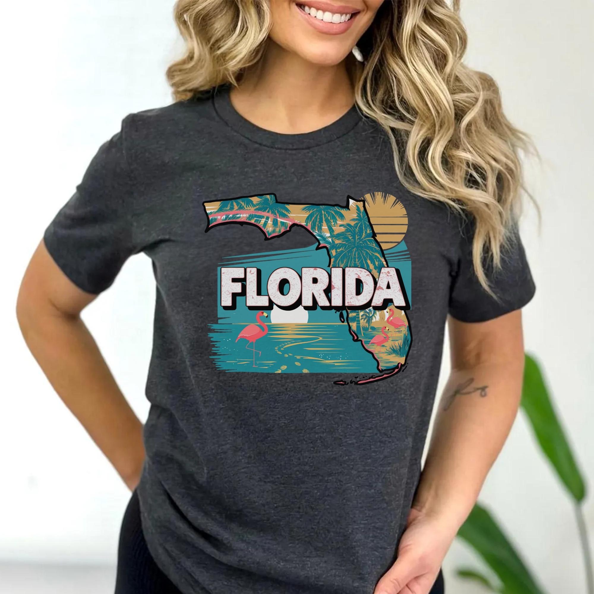 Florida State Shirt, Retro Florida Map T-Shirt, Vintage Travel Illustration, Florida Pride Gift