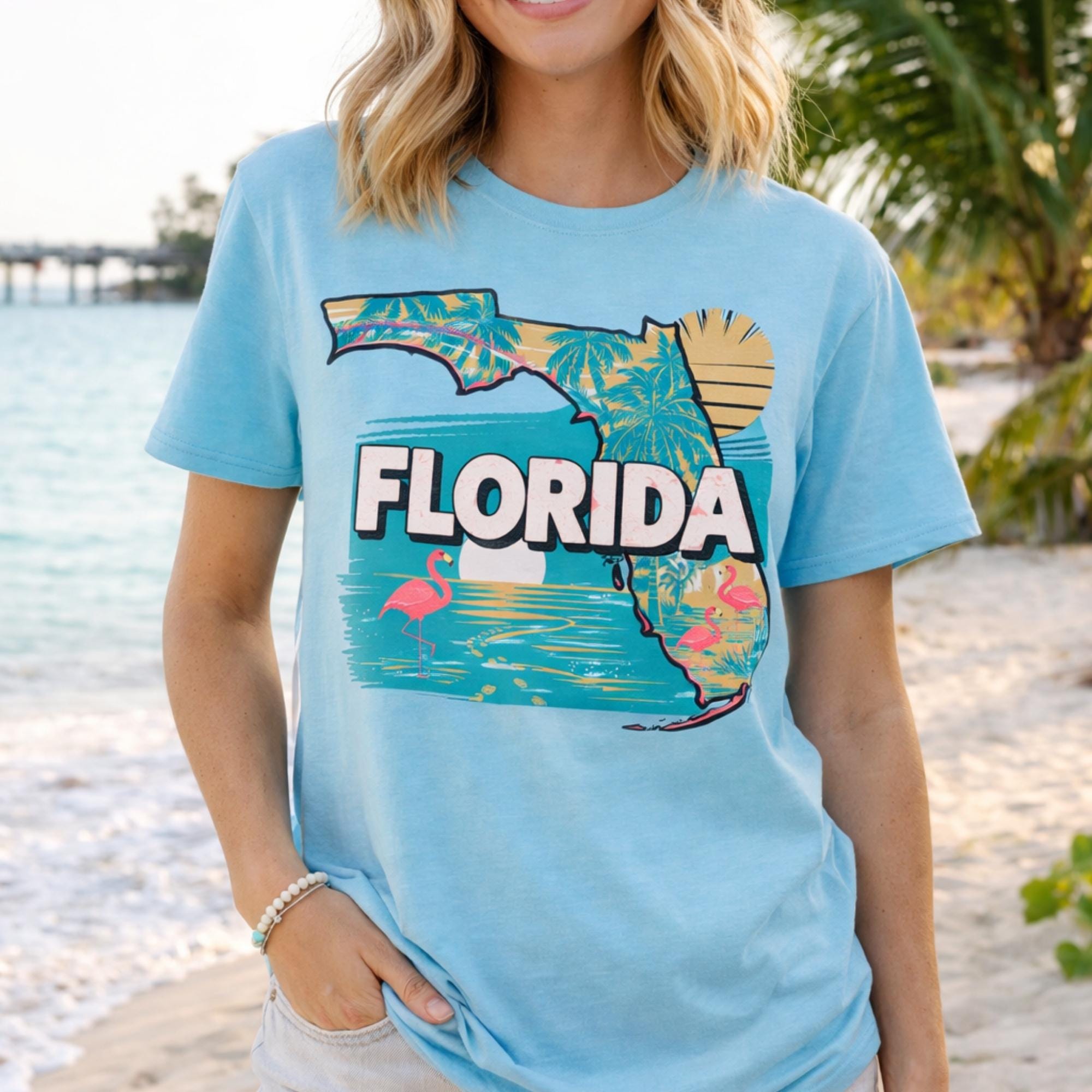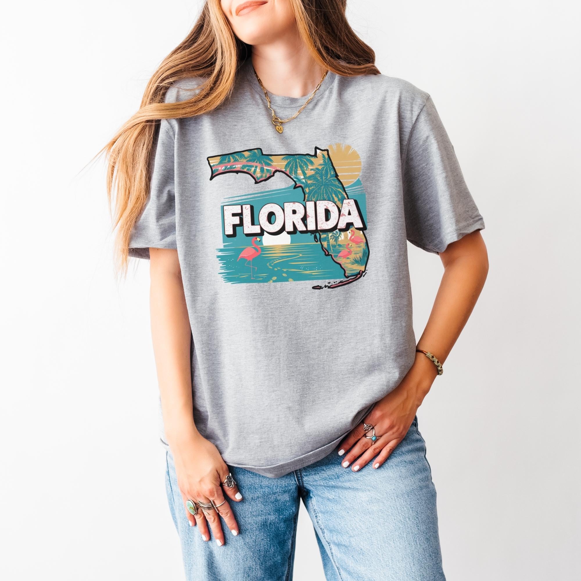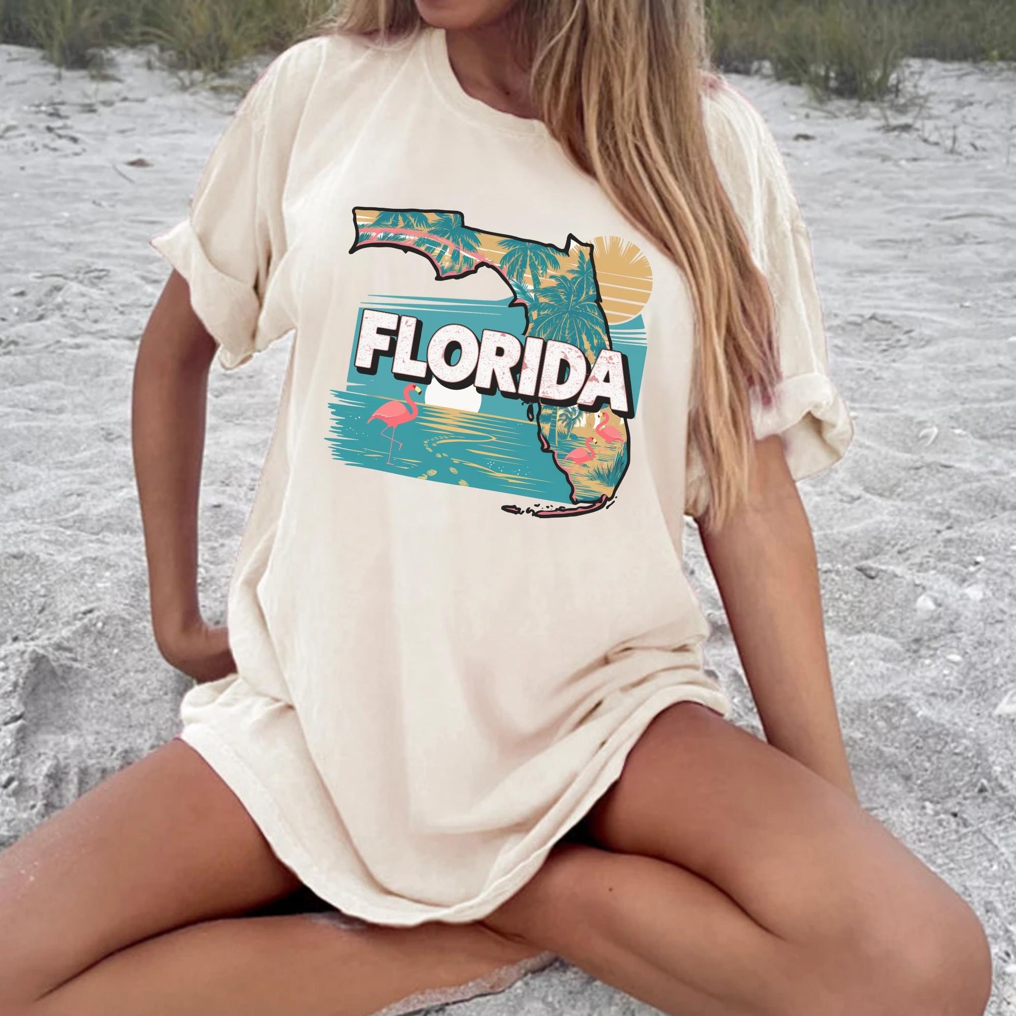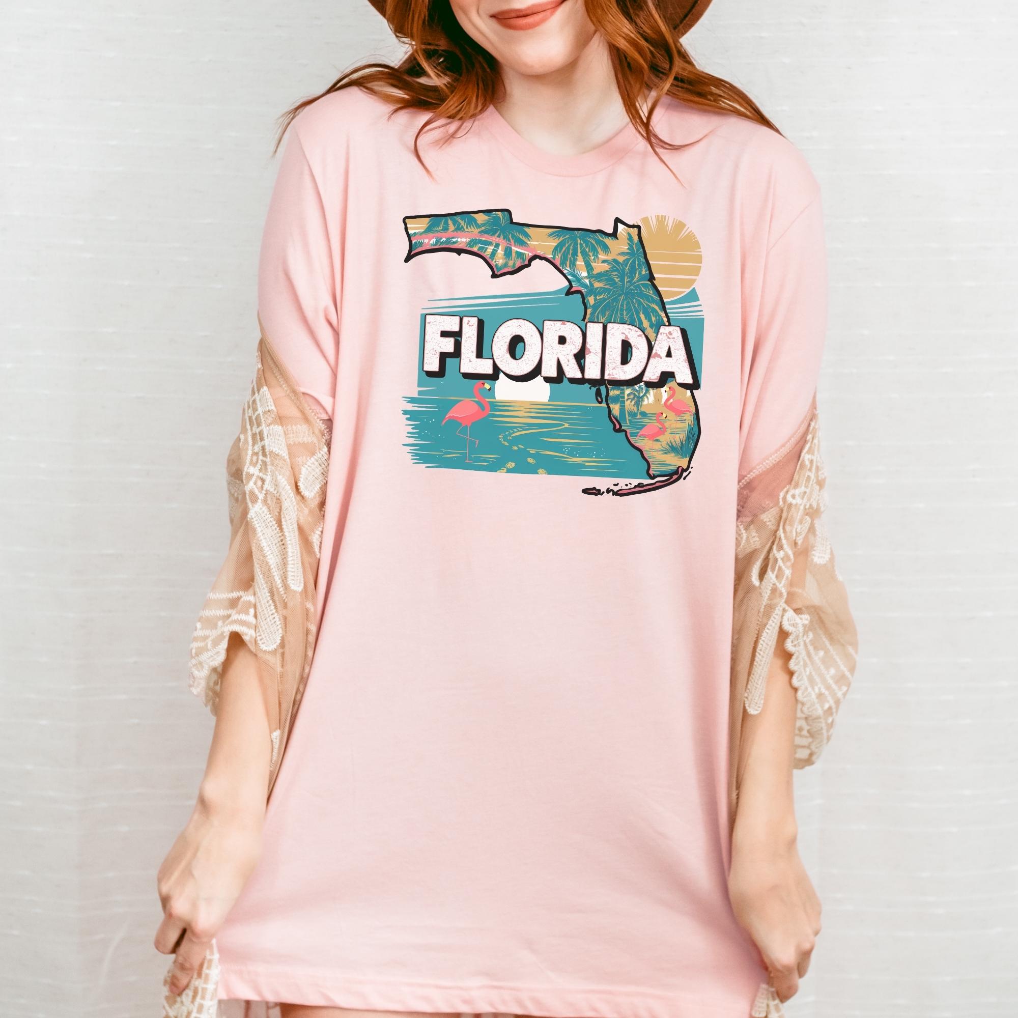 Florida State Shirt, Retro Florida Map T-Shirt, Vintage Travel Illustration, Florida Pride Gift