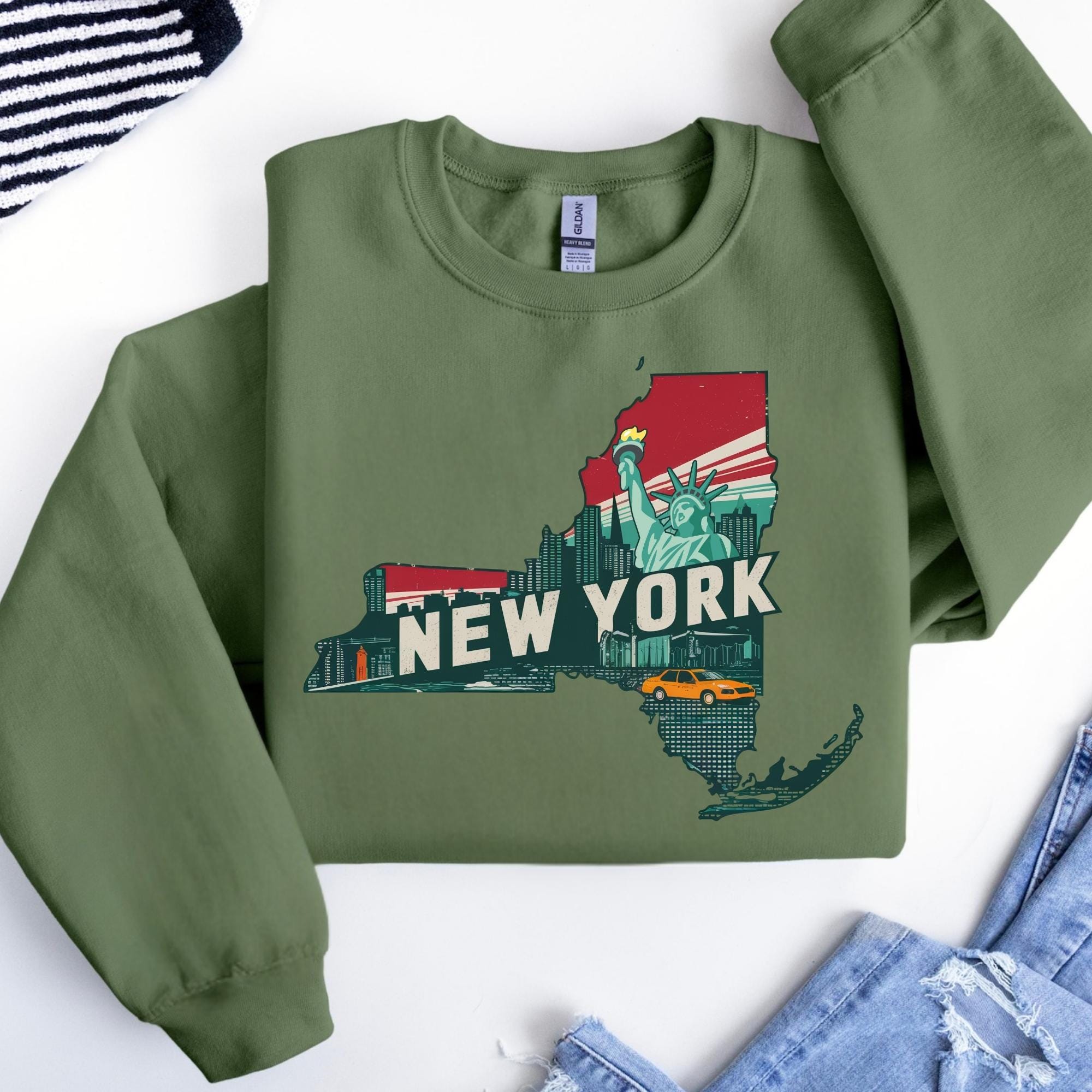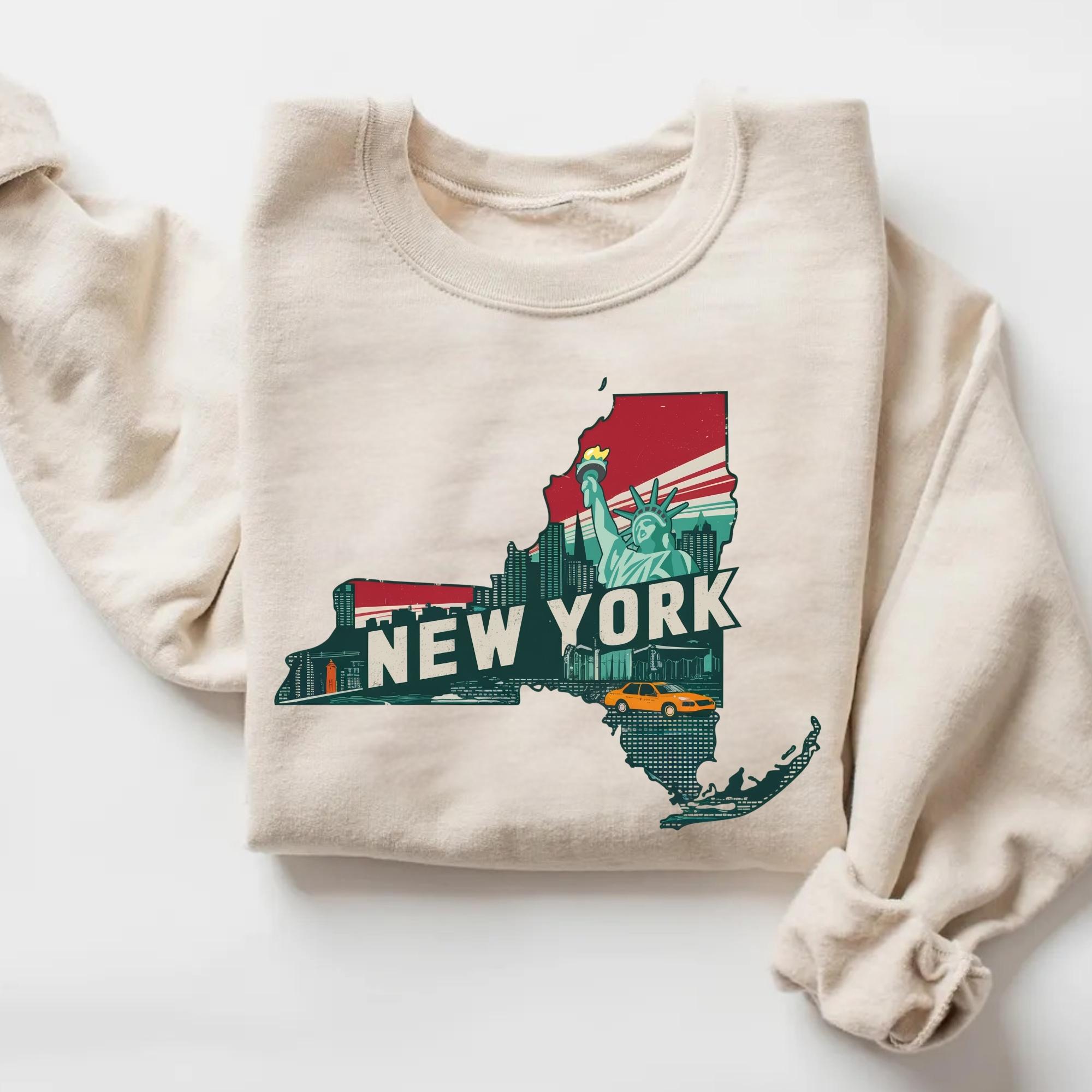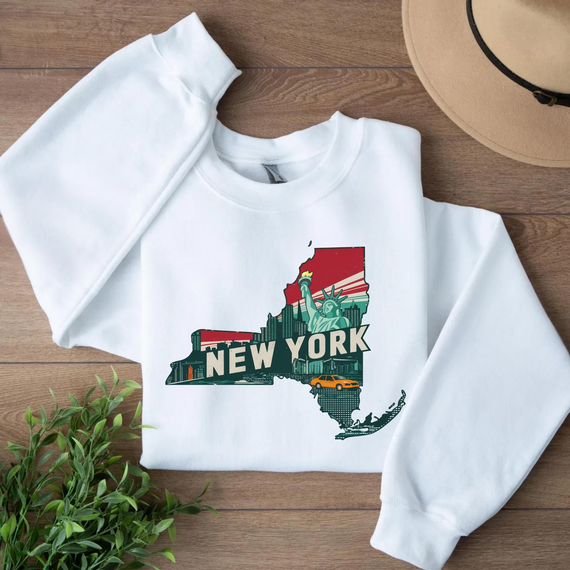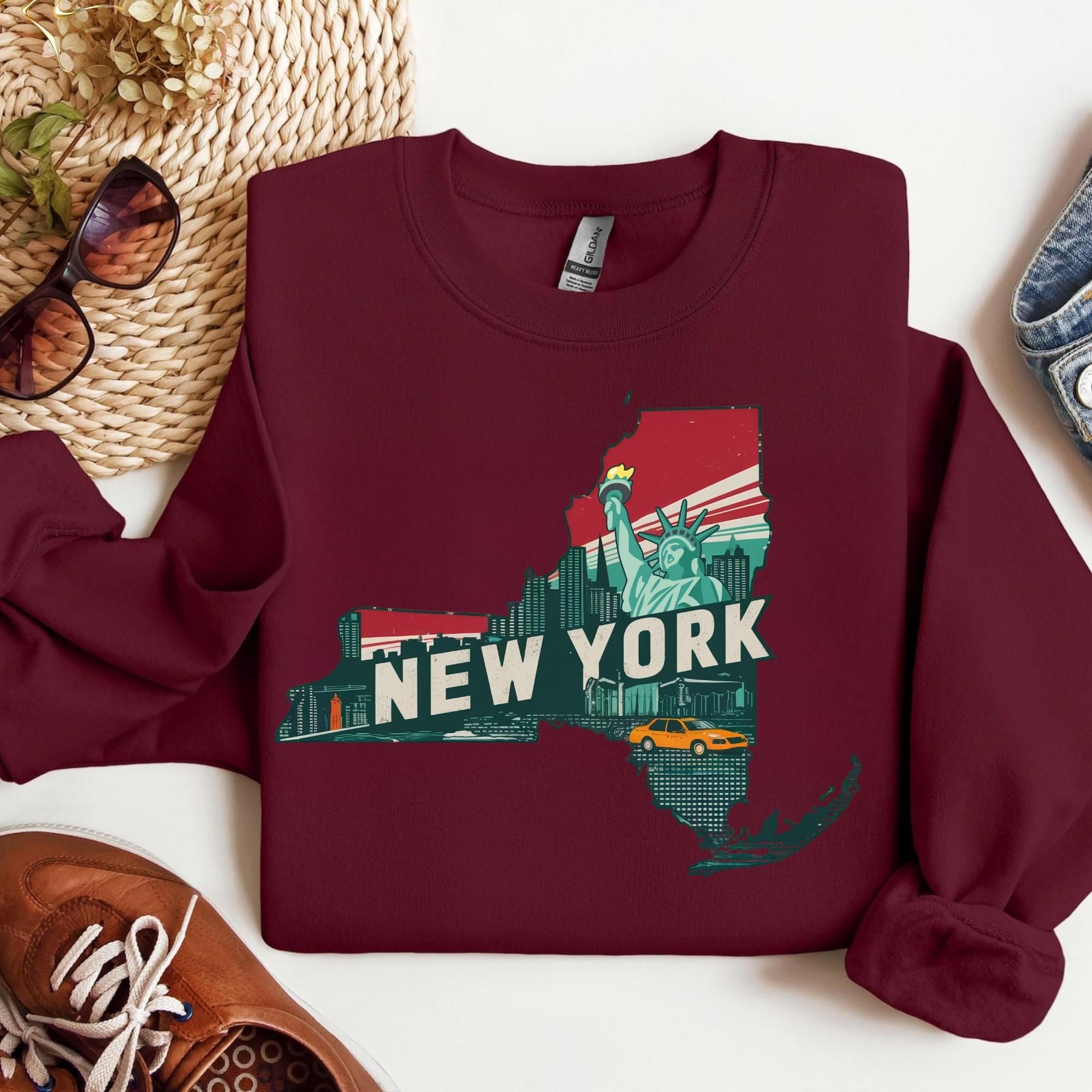 New York State Sweatshirt, Retro New York Map Sweatshirt, Vintage Travel Illustration, NY State Pride Gift
