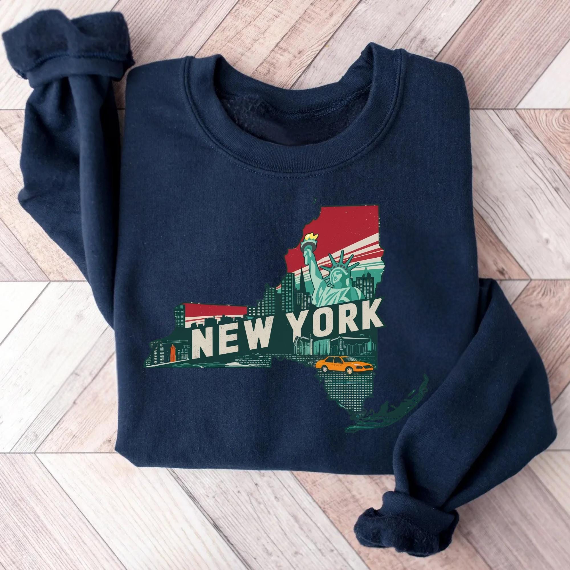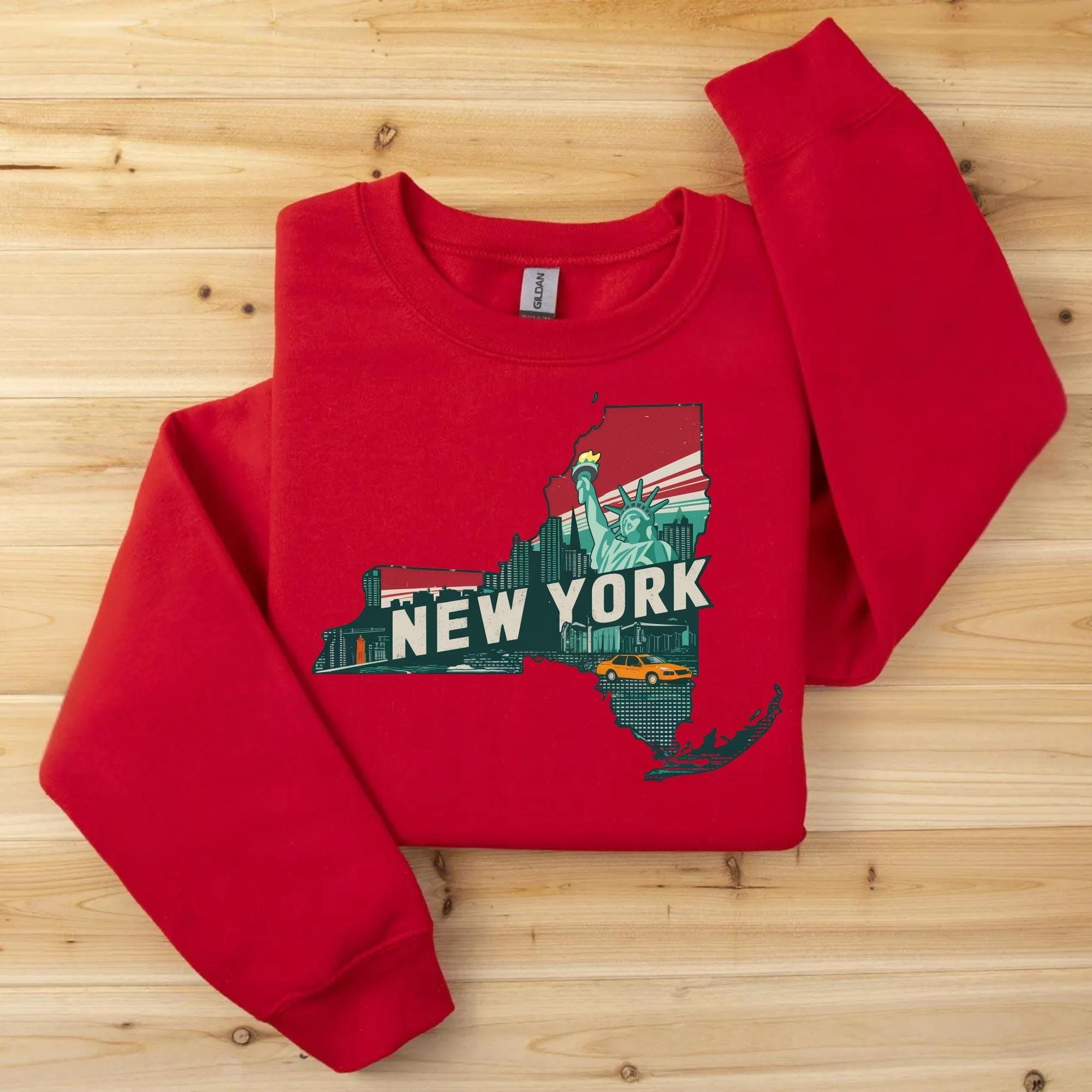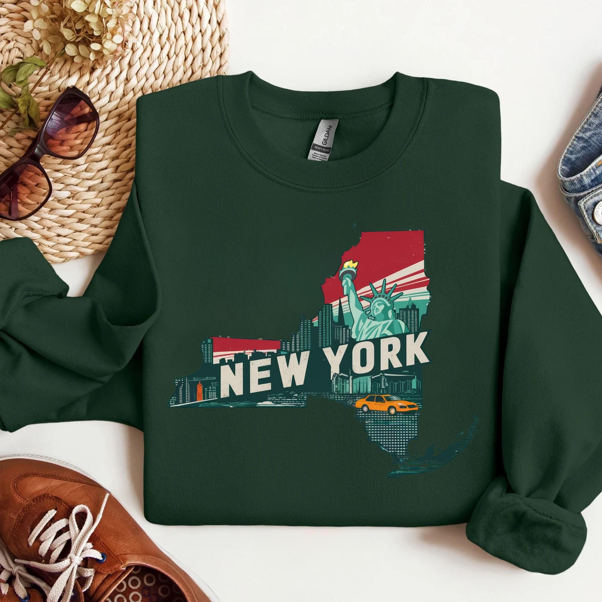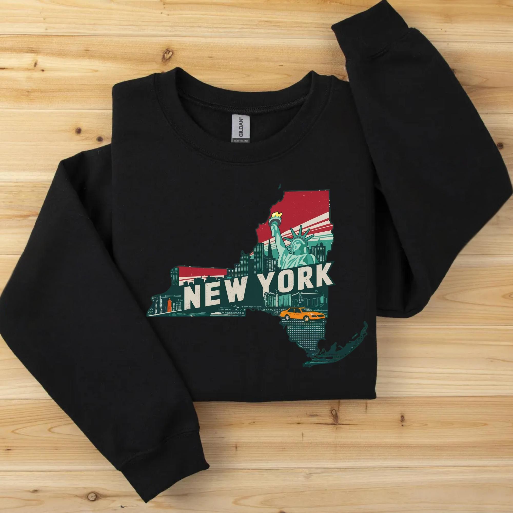 New York State Sweatshirt, Retro New York Map Sweatshirt, Vintage Travel Illustration, NY State Pride Gift