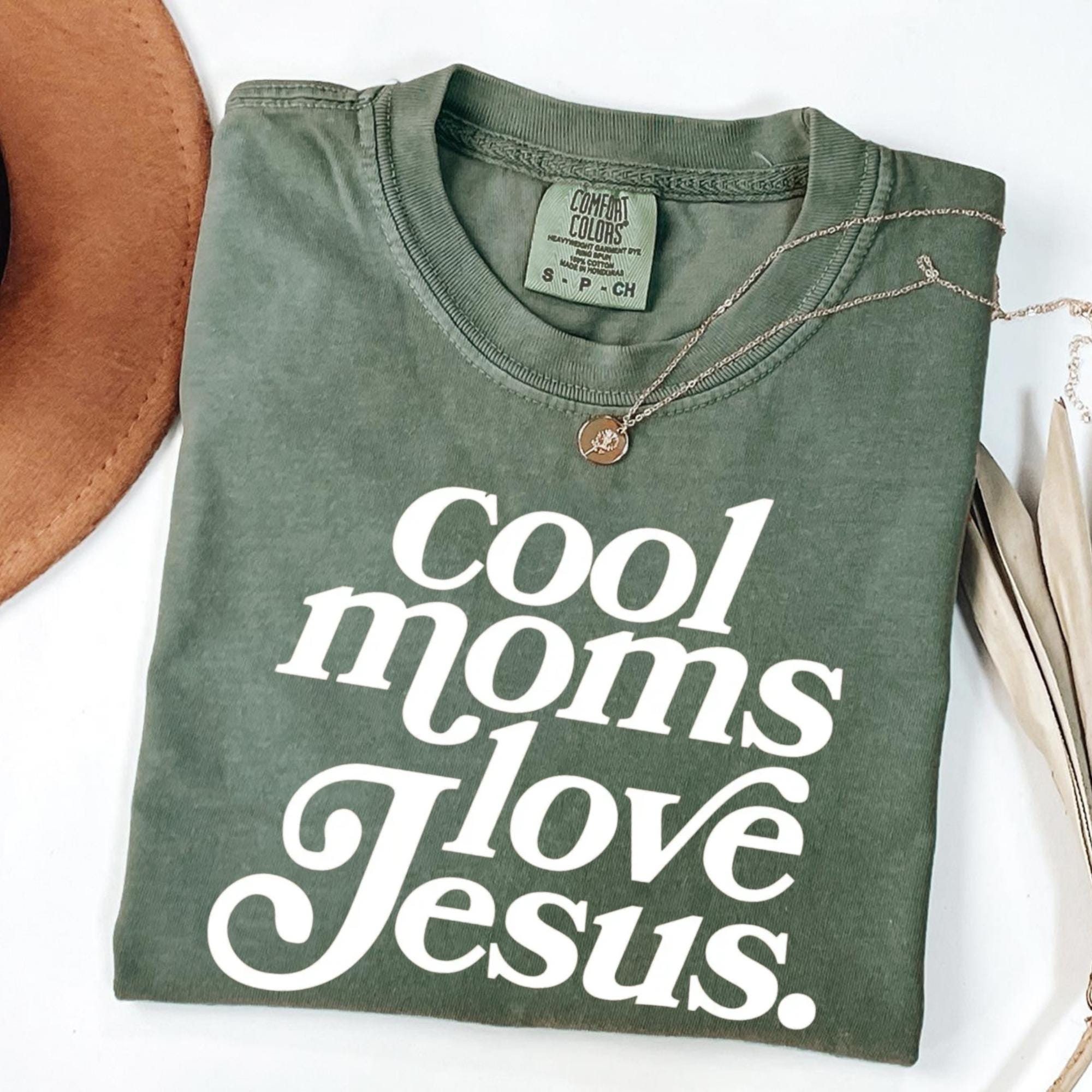 Cool Moms Love Jesus Comfort Colors T-Shirt, Christian Mom Tee, Praying Mama Shirts, Faith Based T-Shirt, Faithful Shirt, Religious Mom Tee