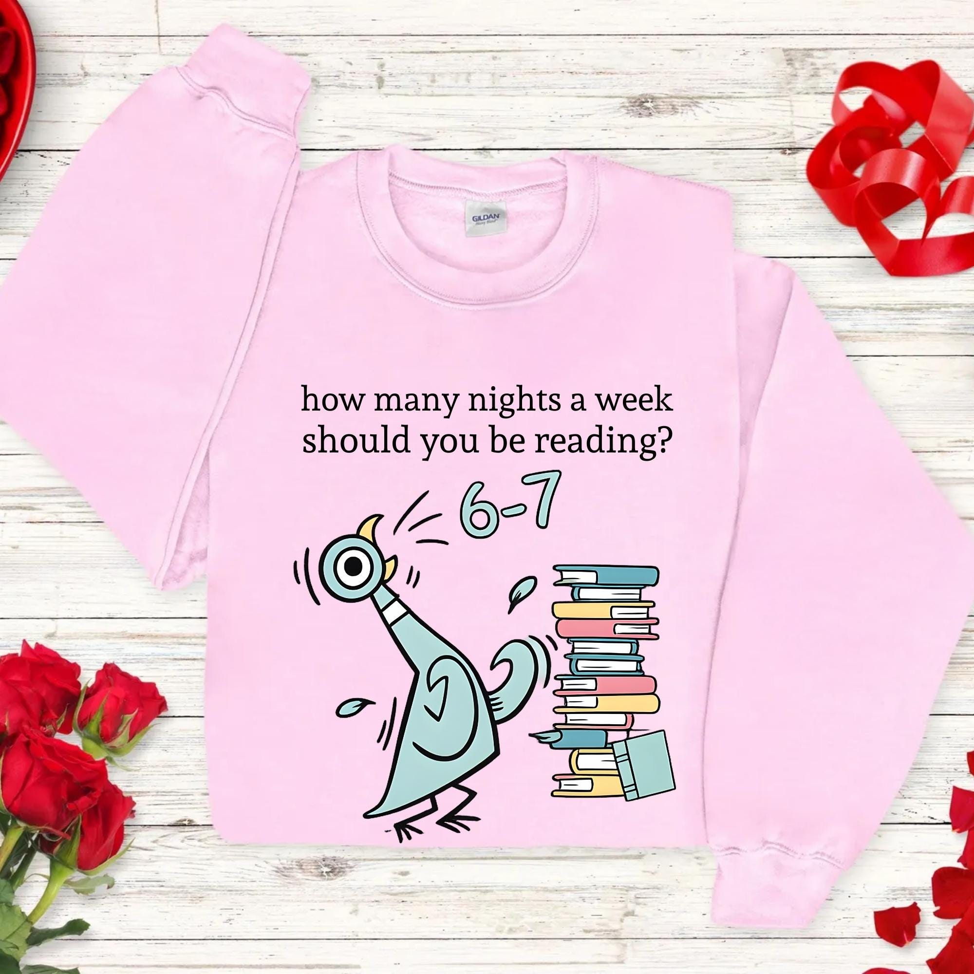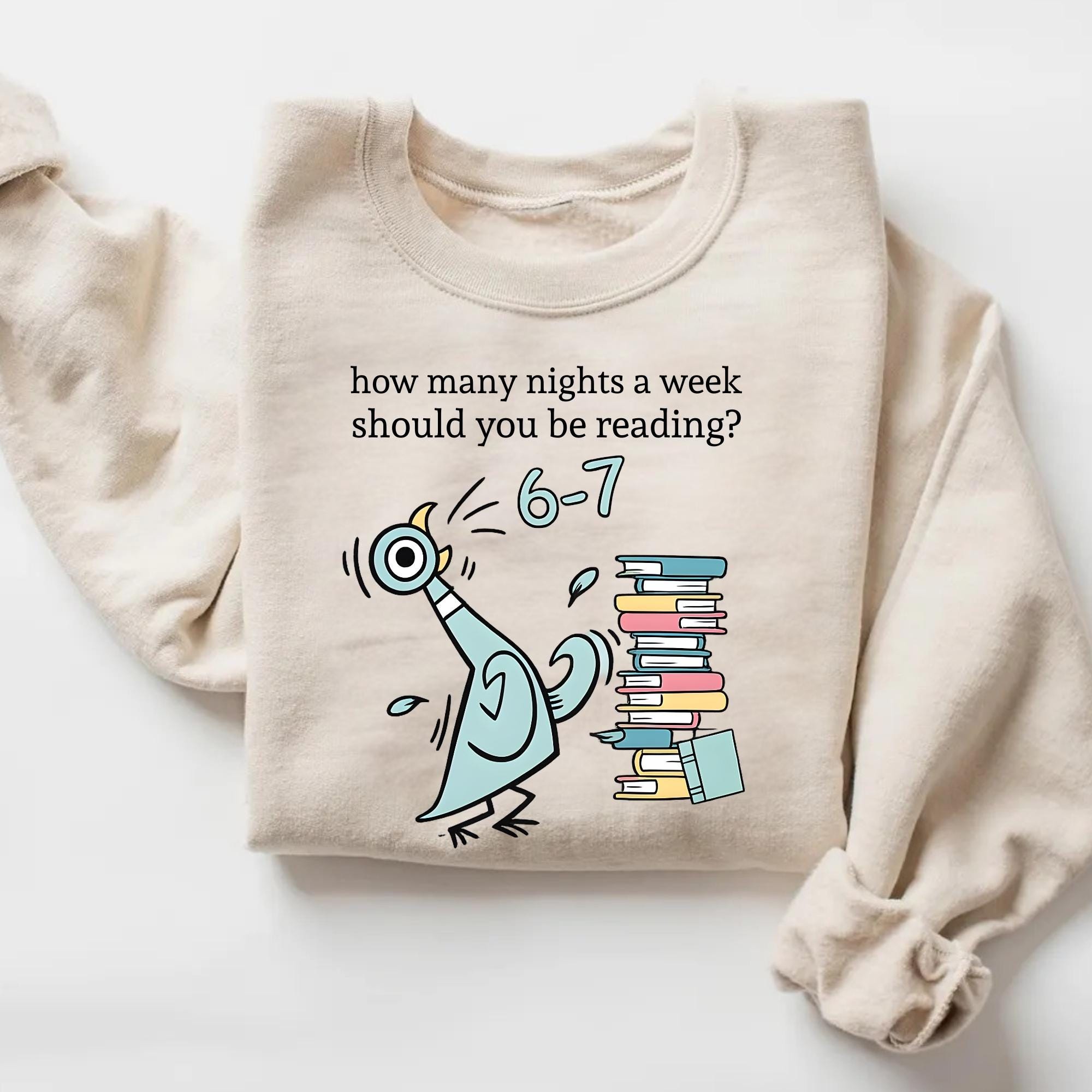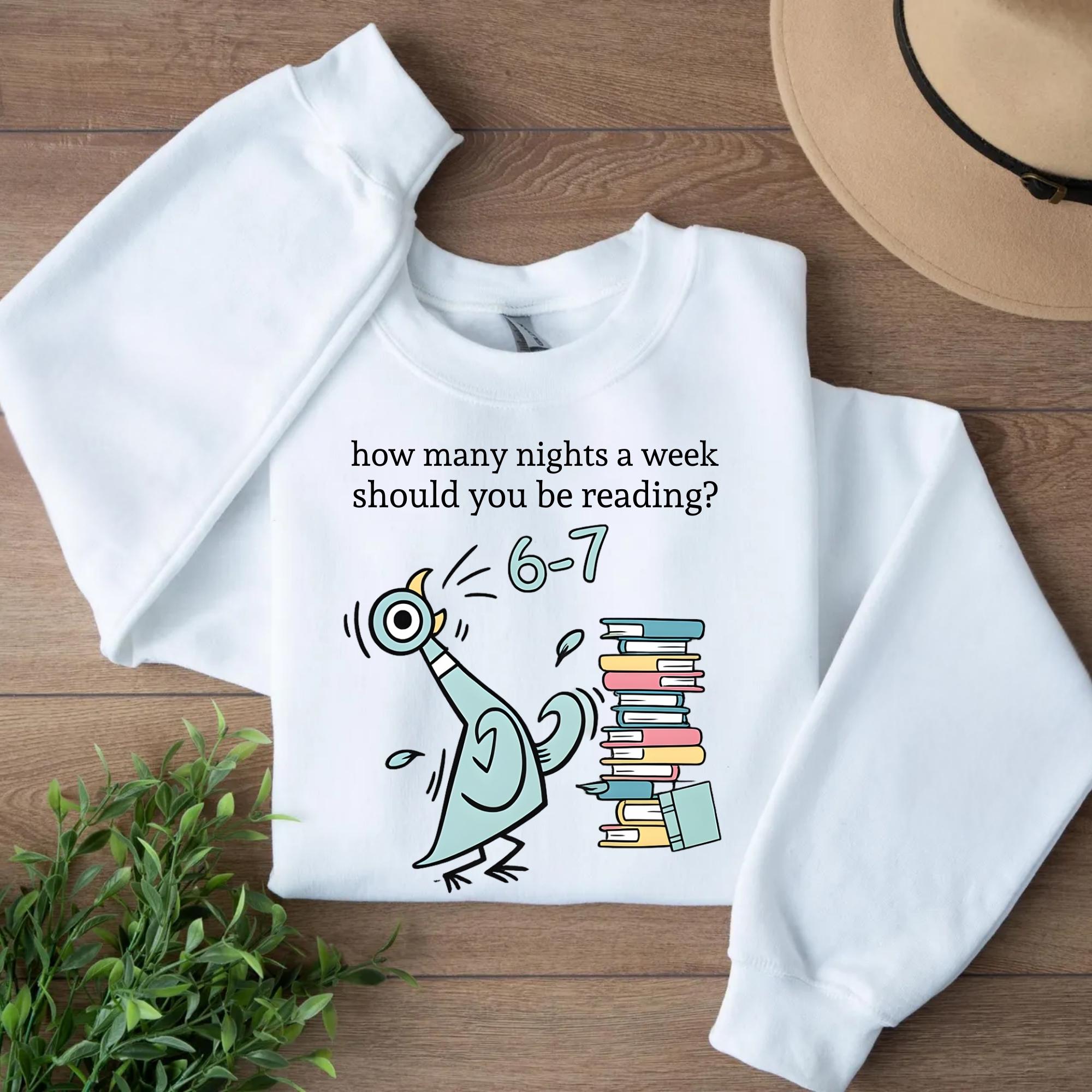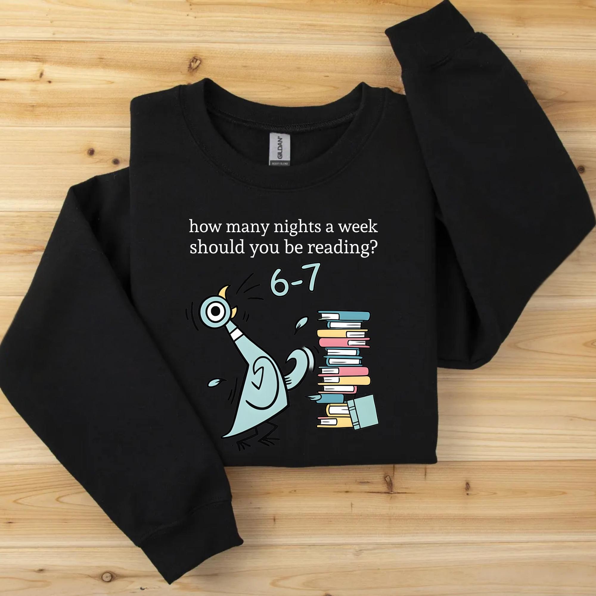 How Many Nights A Week Should You Be Reading 6-7 T-Sweatshirt, Pigeon Elephant Piggie Children's Books Sweatshirt, Teacher 6 7 Tee