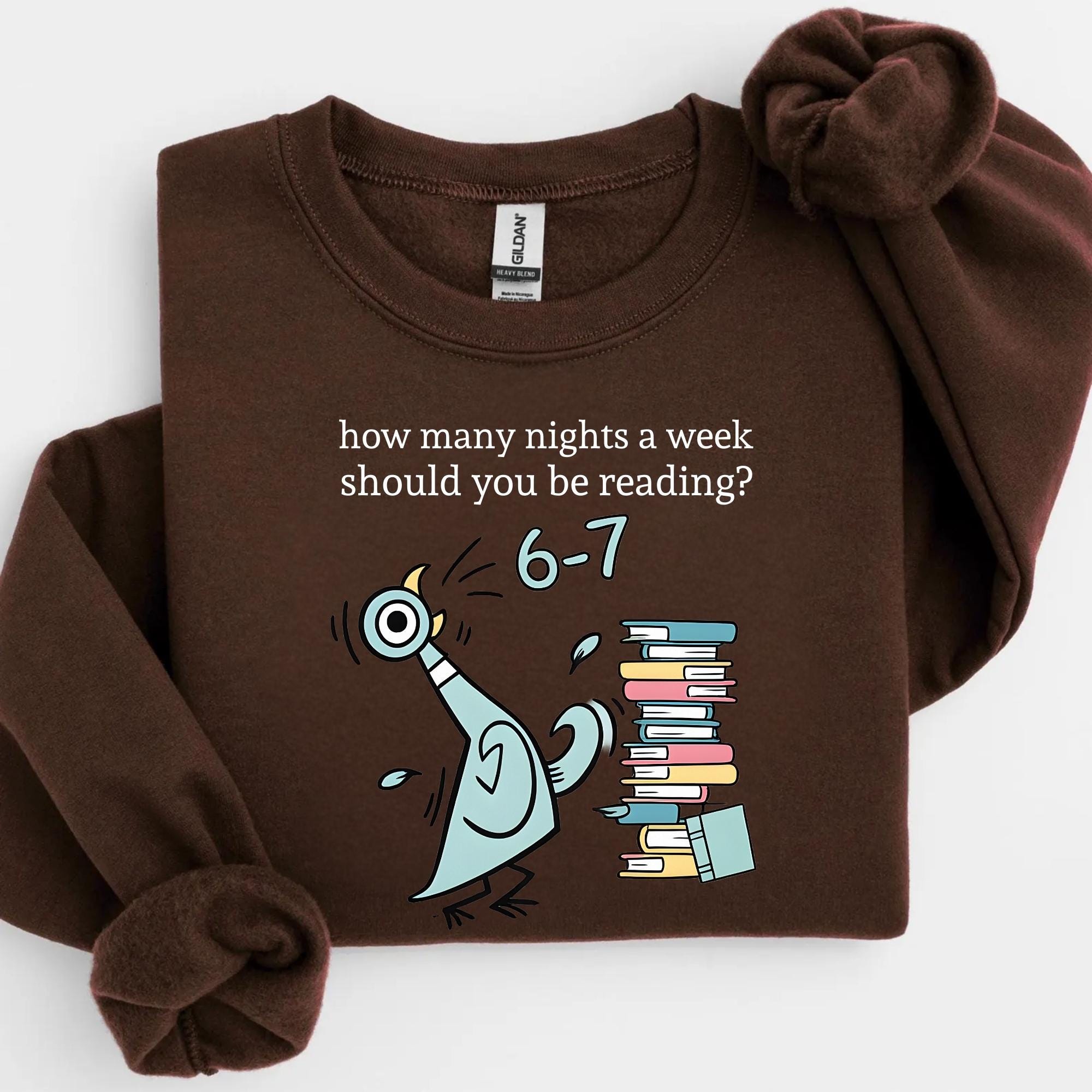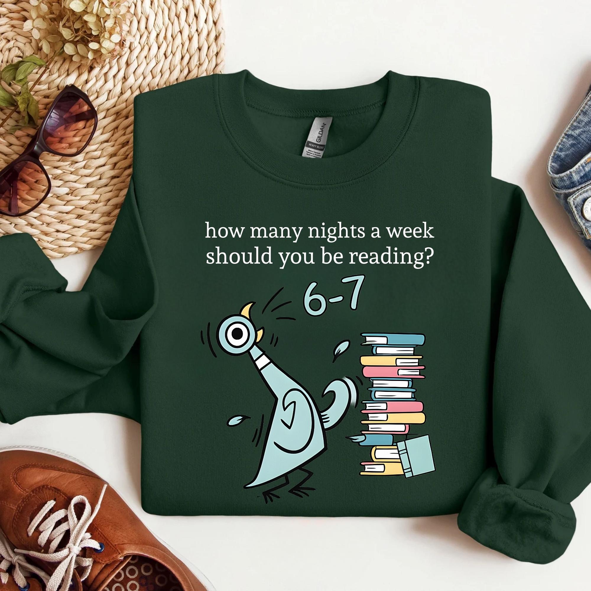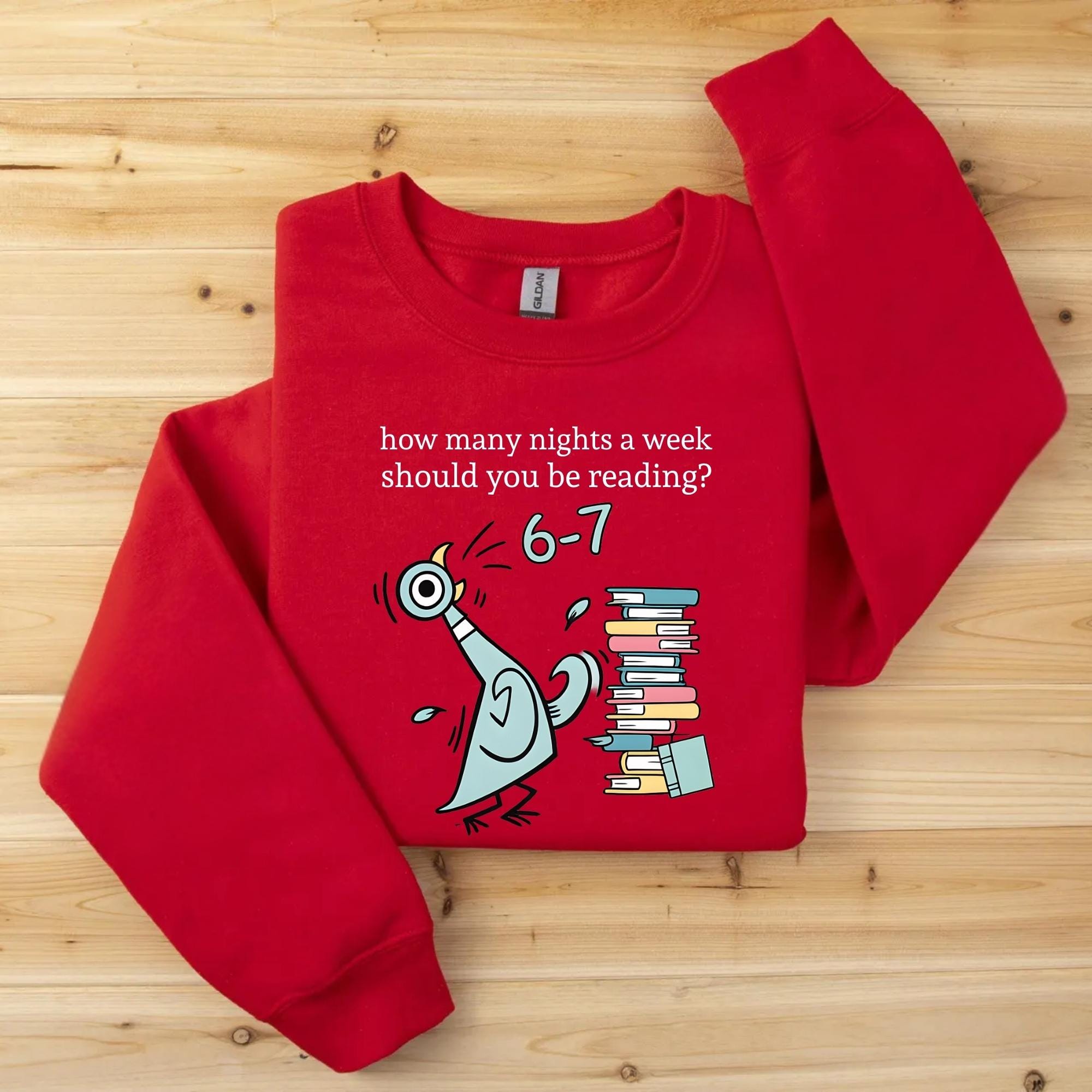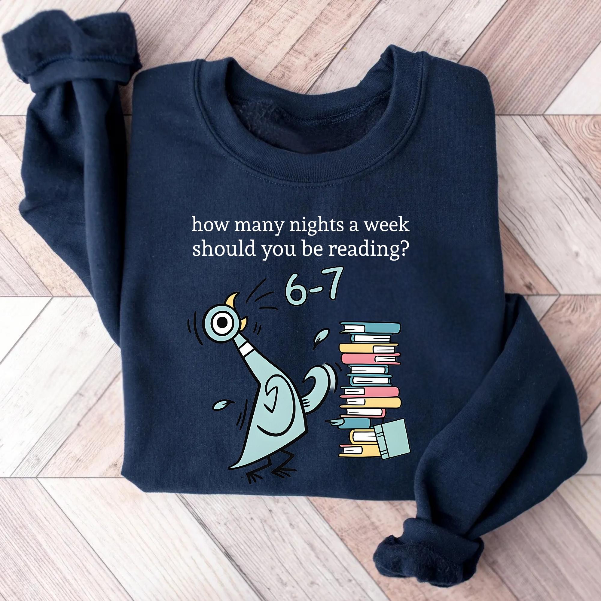 How Many Nights A Week Should You Be Reading 6-7 T-Sweatshirt, Pigeon Elephant Piggie Children's Books Sweatshirt, Teacher 6 7 Tee