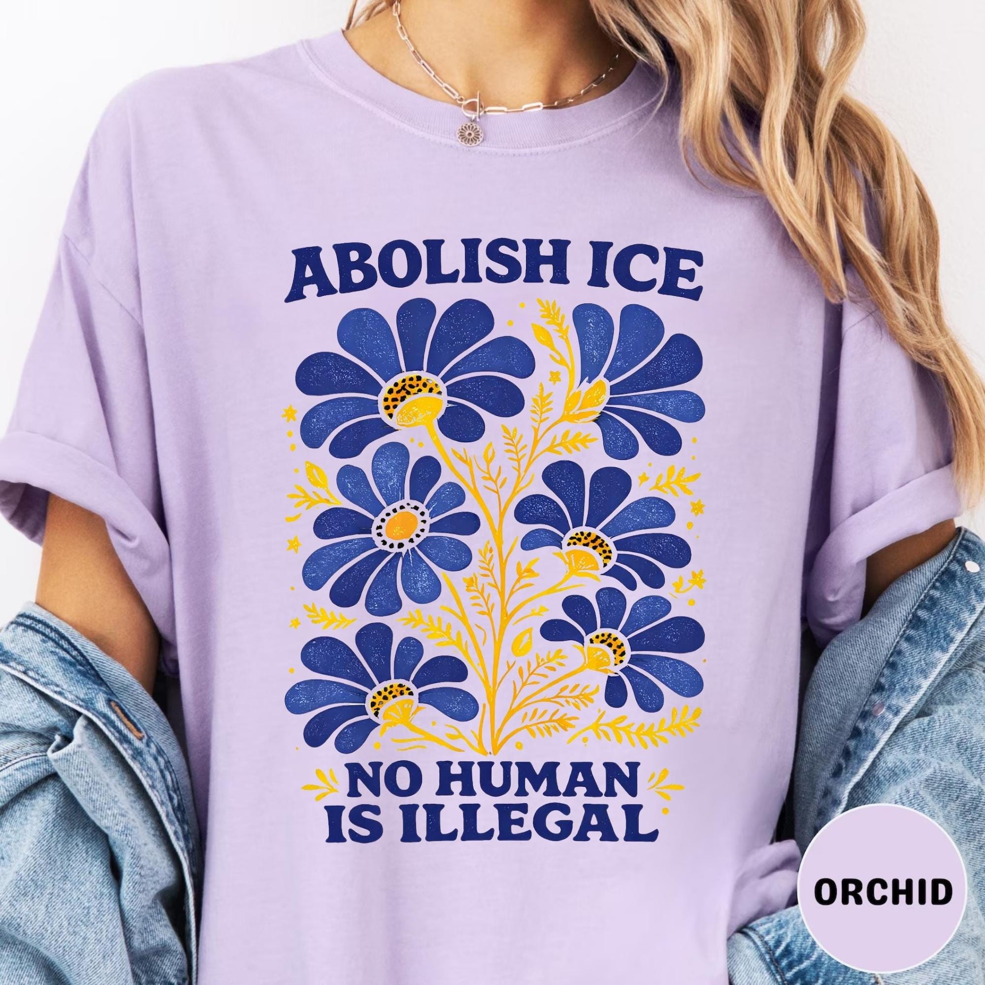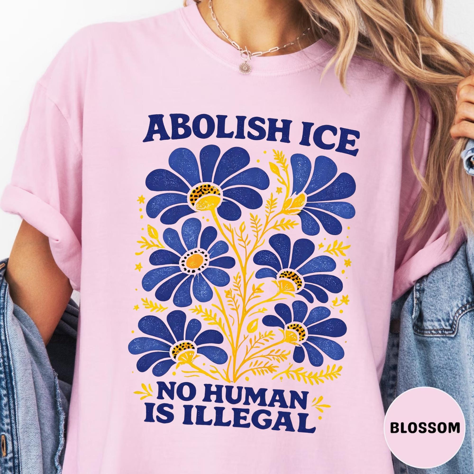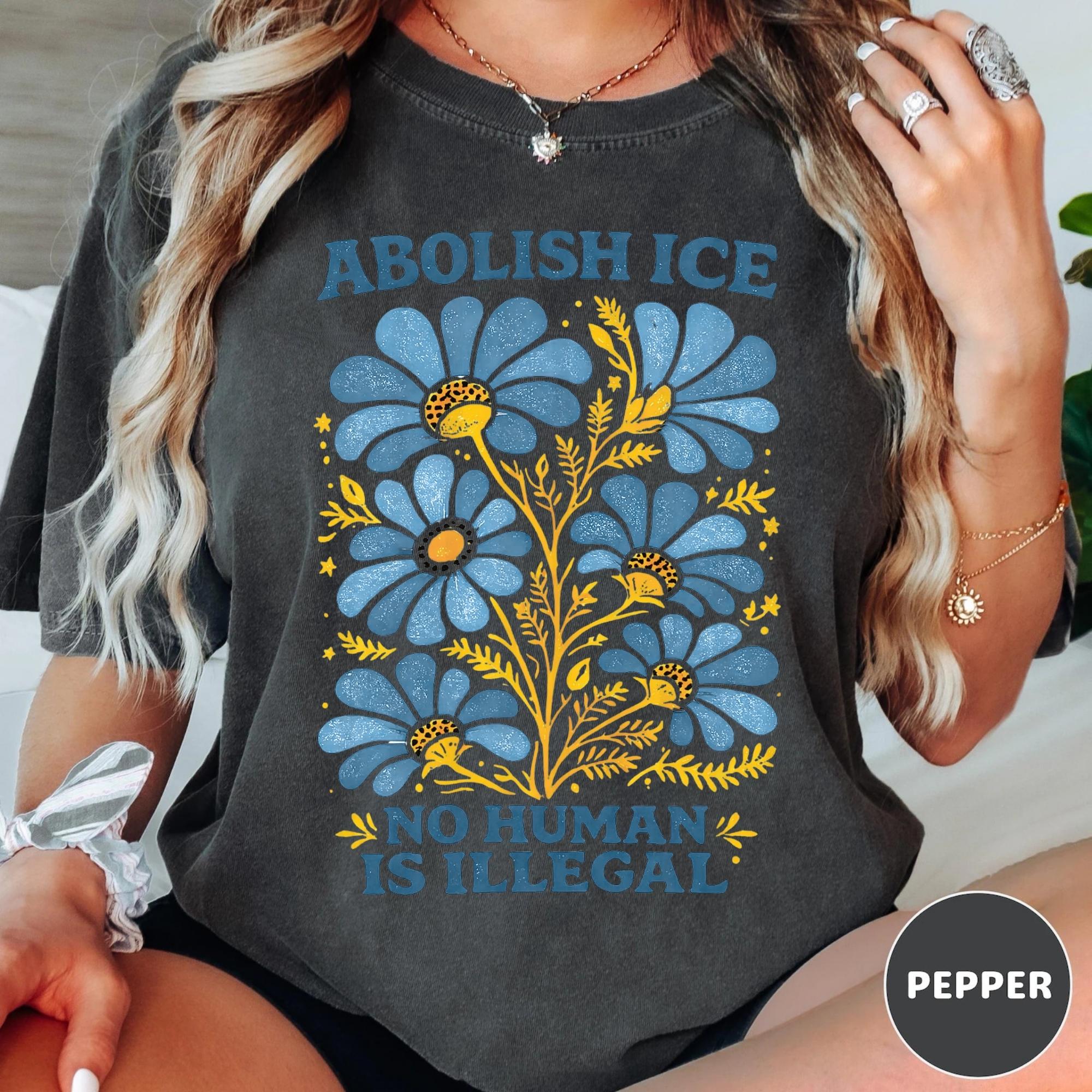 Comfort Colors® Floral Abolish ICE Shirt, Anti ICE Shirt, Abolish ICE Apparel, Anti Trump Shirt, Anti Maga Shirt, Anti Fascism Shirt