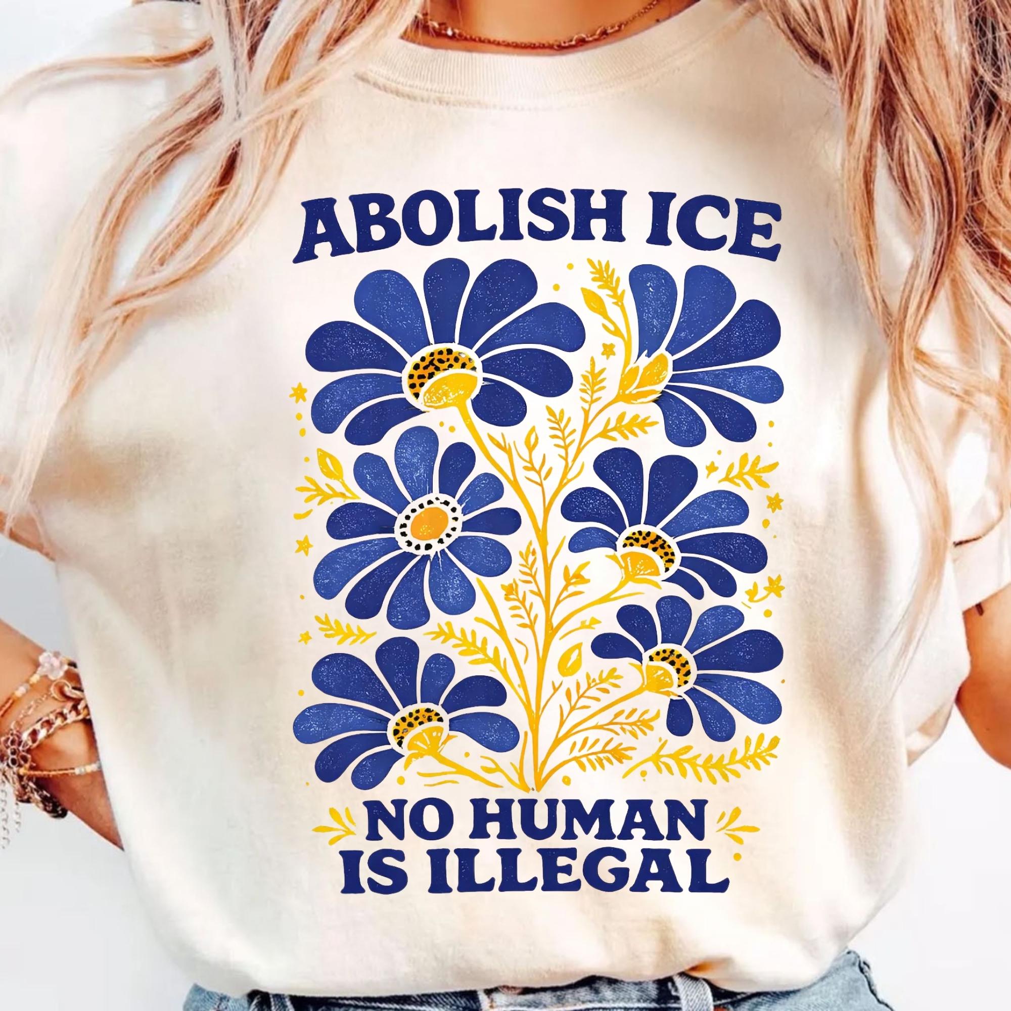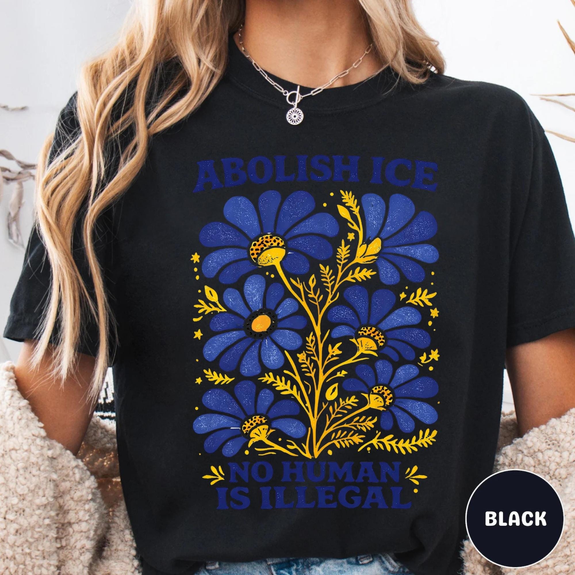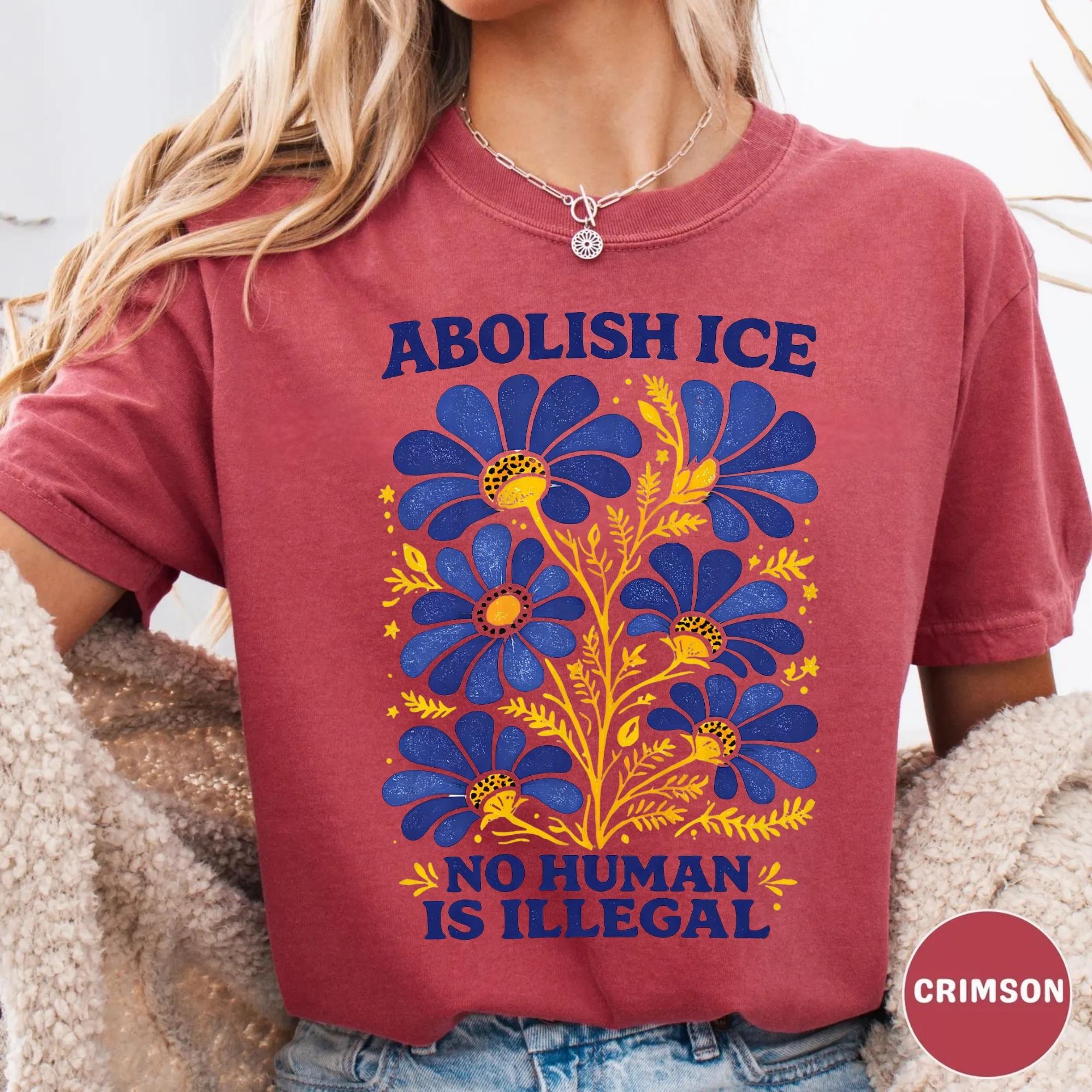 Comfort Colors® Floral Abolish ICE Shirt, Anti ICE Shirt, Abolish ICE Apparel, Anti Trump Shirt, Anti Maga Shirt, Anti Fascism Shirt