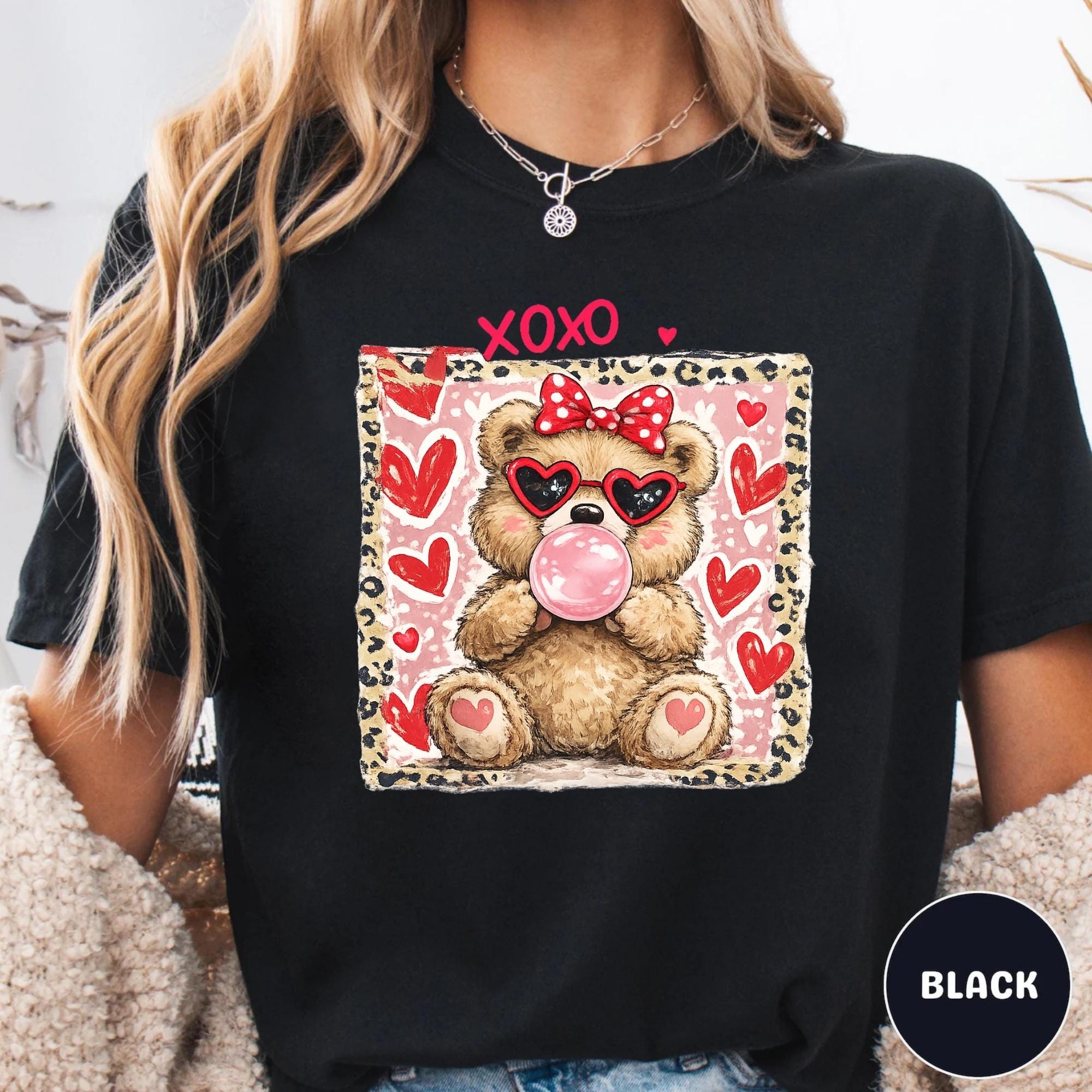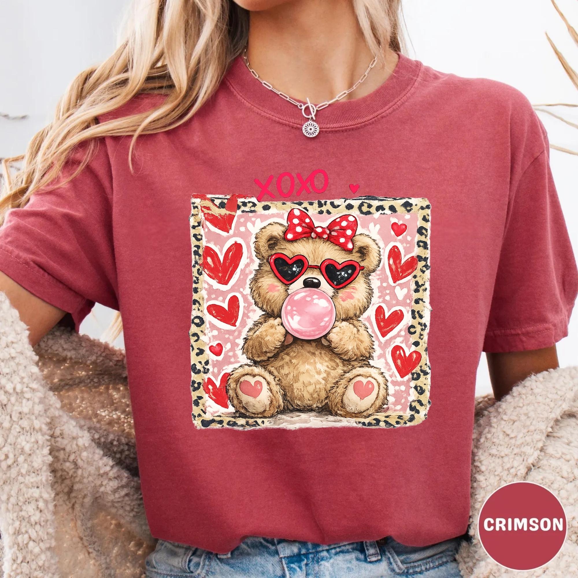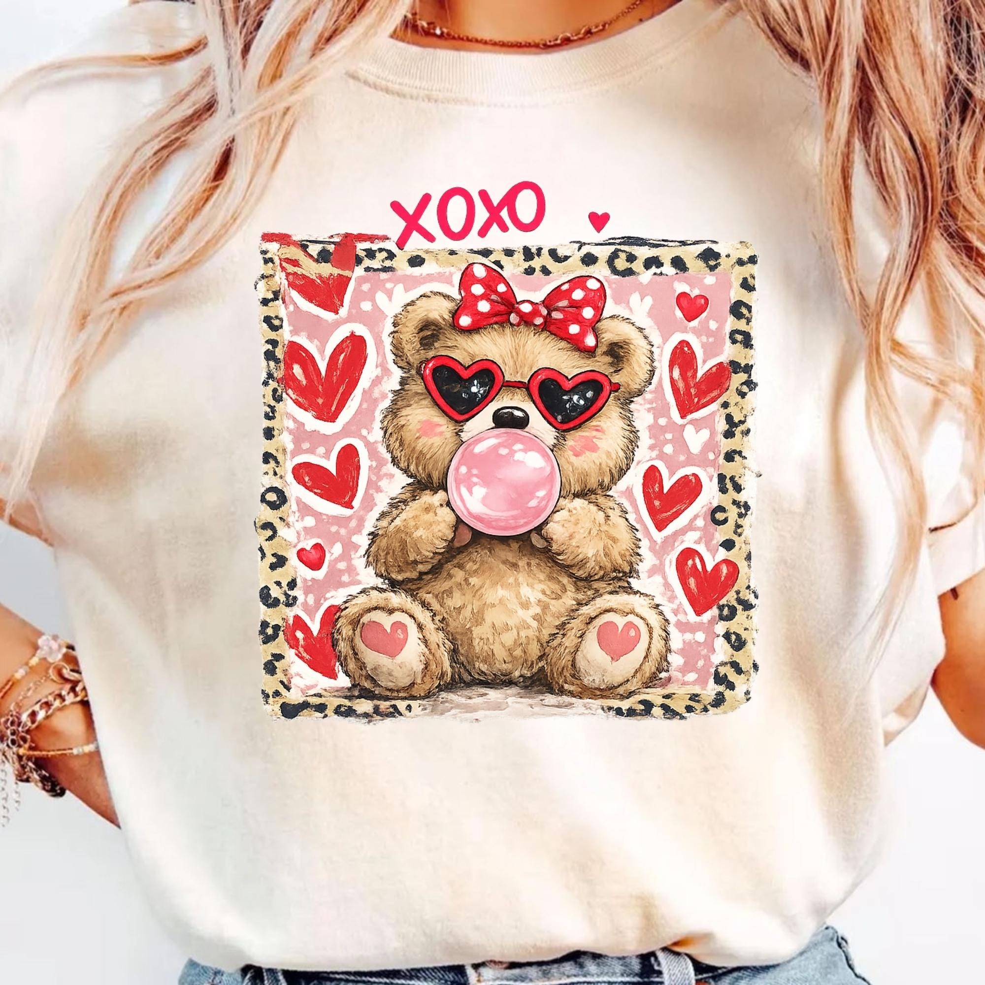 Valentine Bear Sweatshirt, Funny Romantic Quote Sweatshirt, Trendy Animal Coquette Red Heart Glasses Shirt, Love Gift