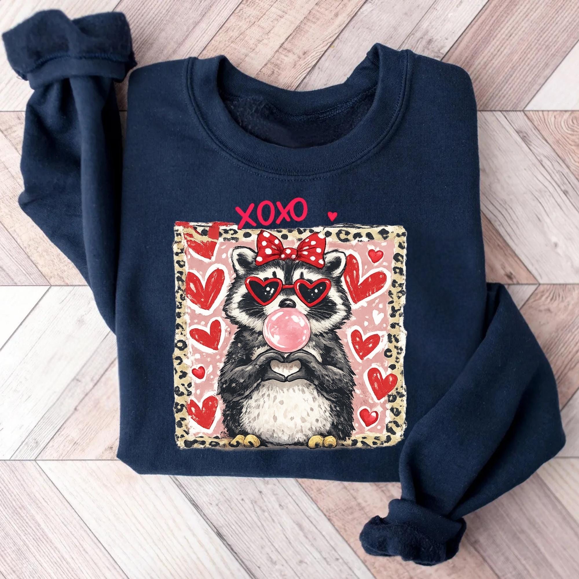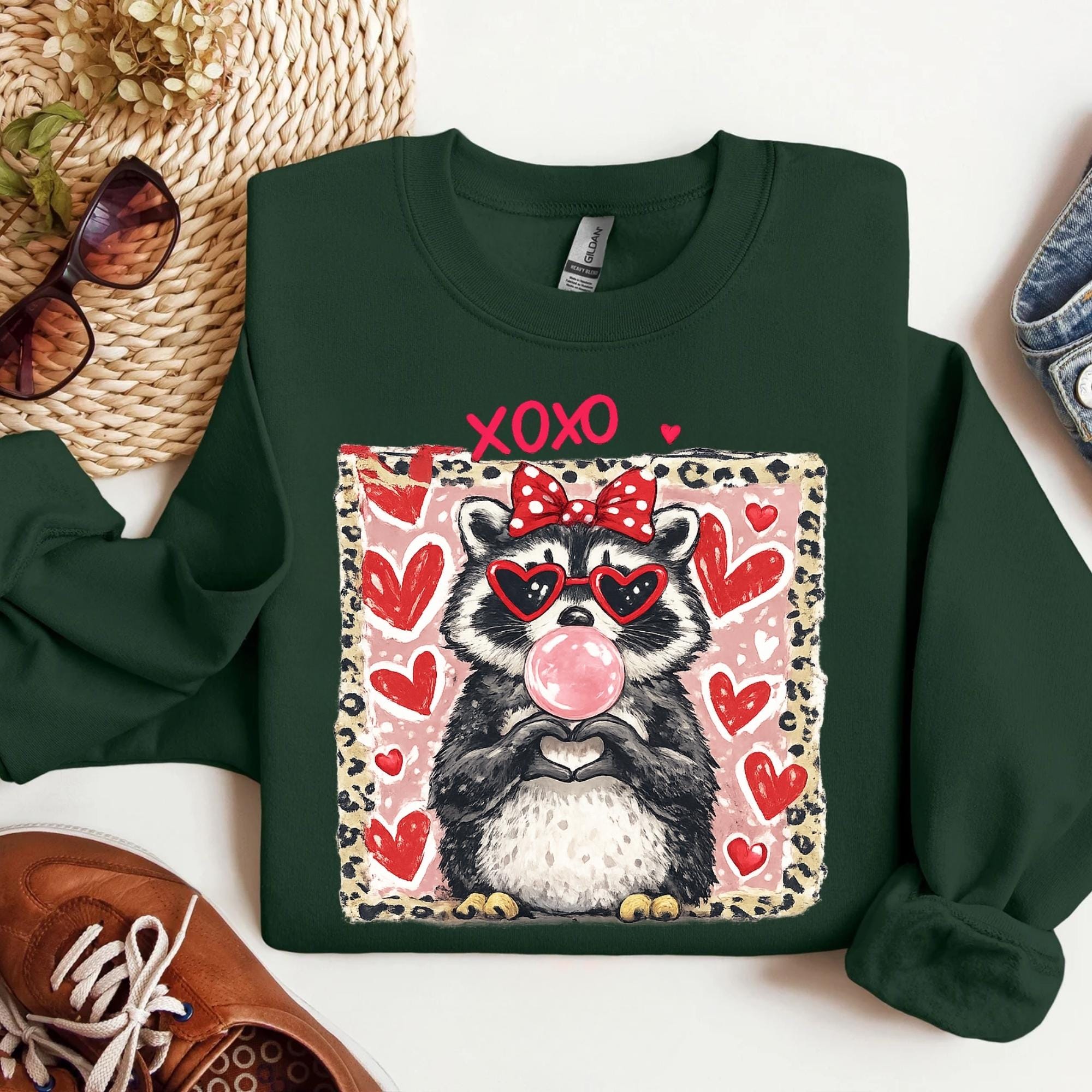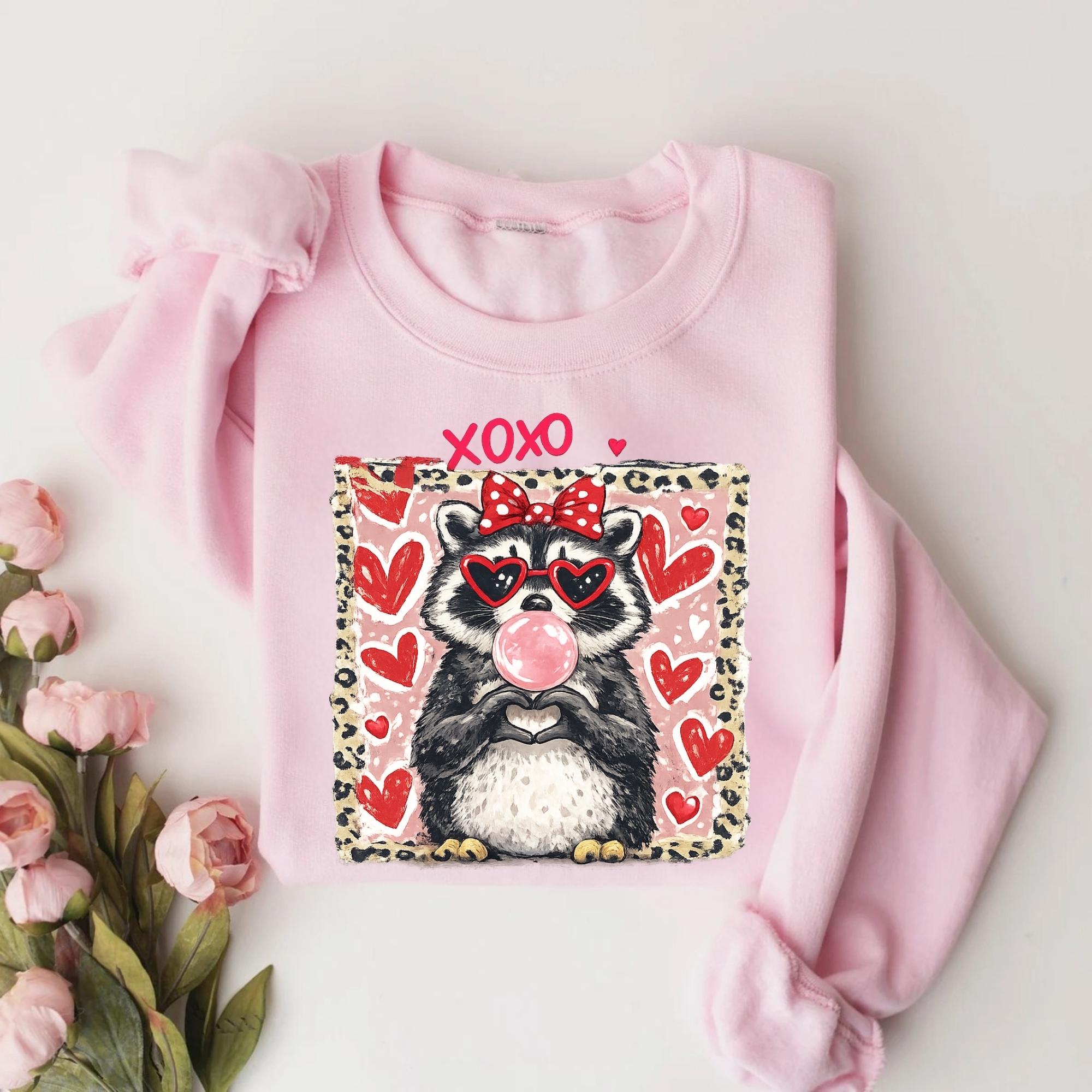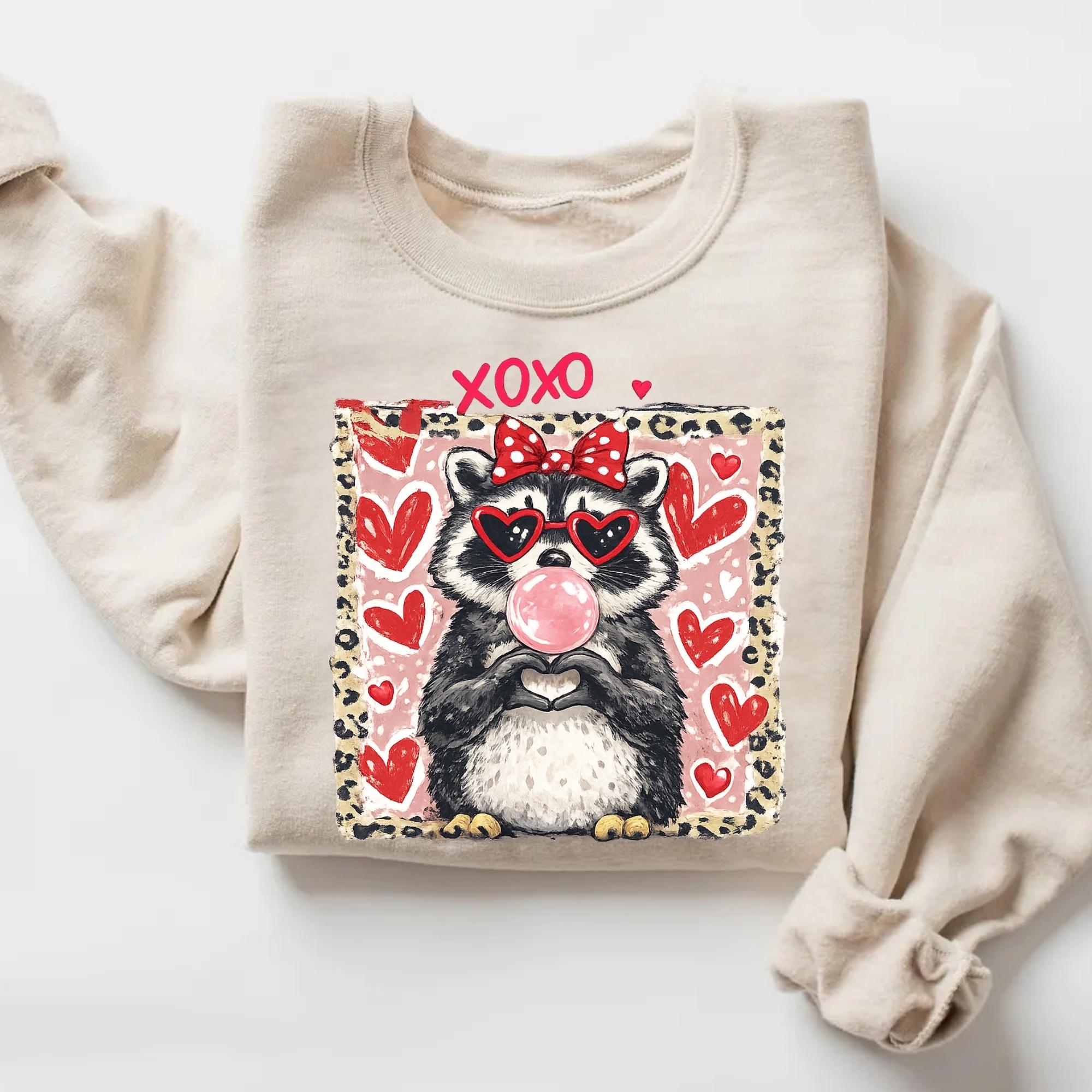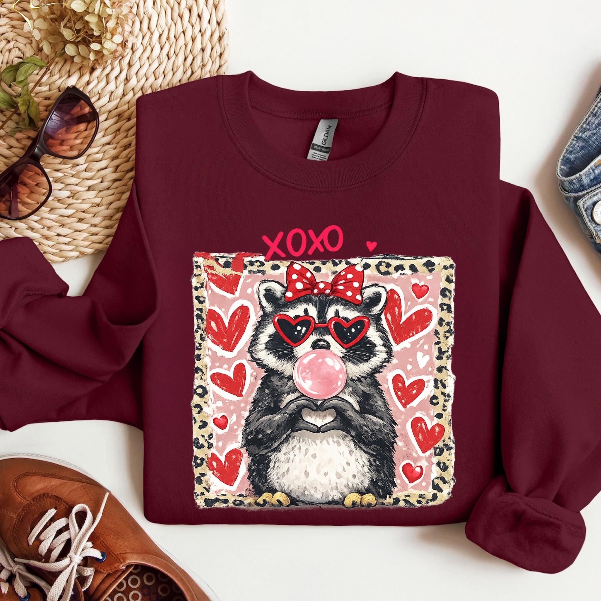 Valentine Raccoon Sweatshirt, Funny Romantic Quote Sweatshirt, Trendy Animal Coquette Red Heart Glasses Shirt, Love Gift