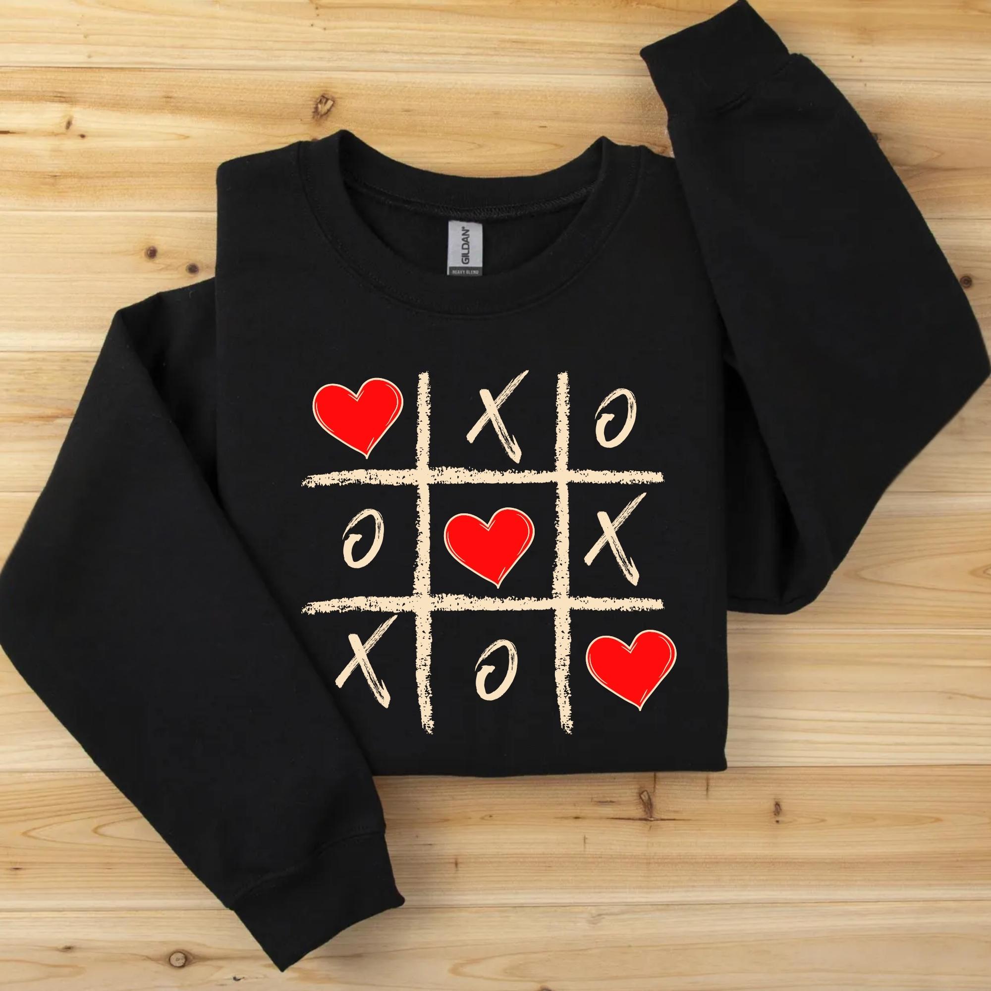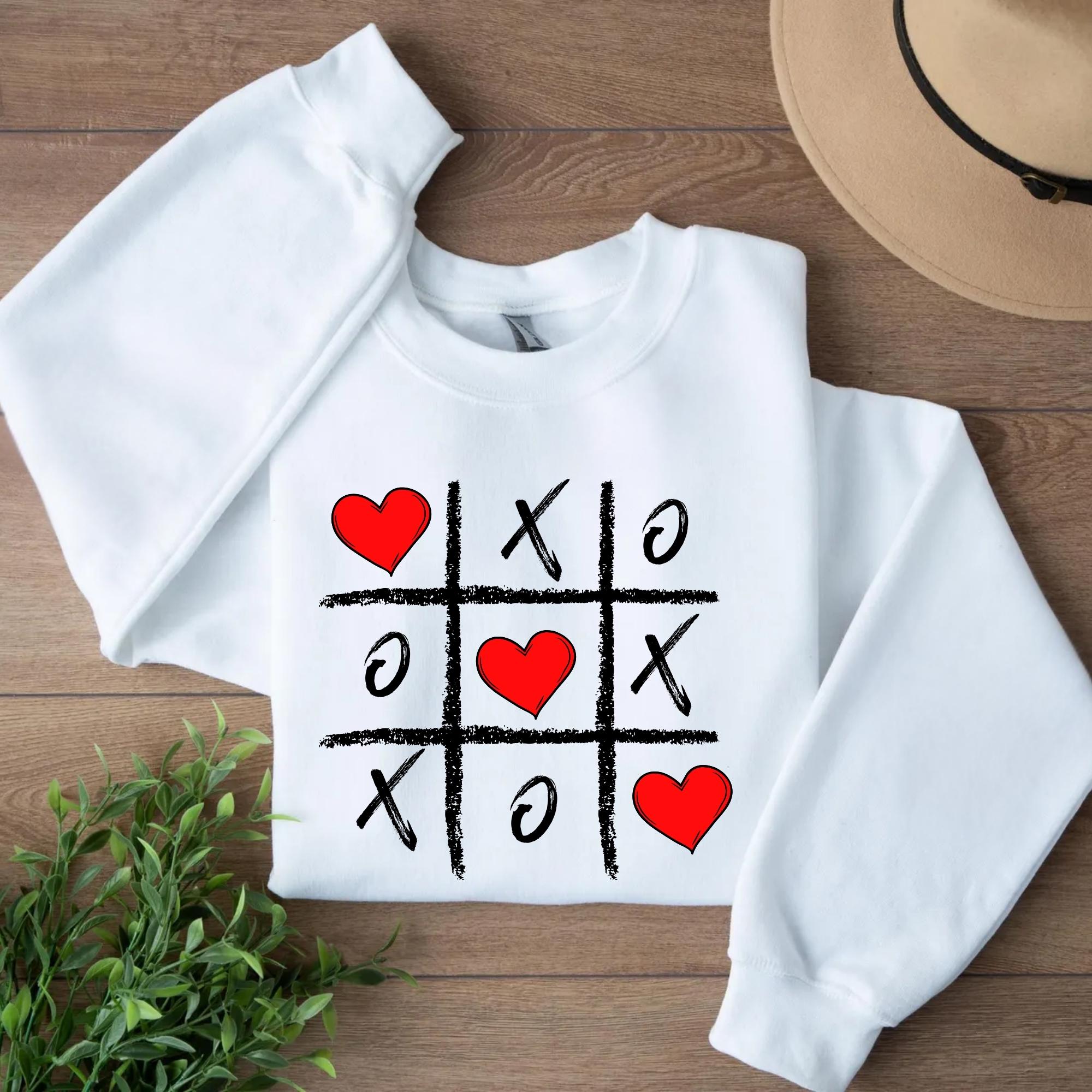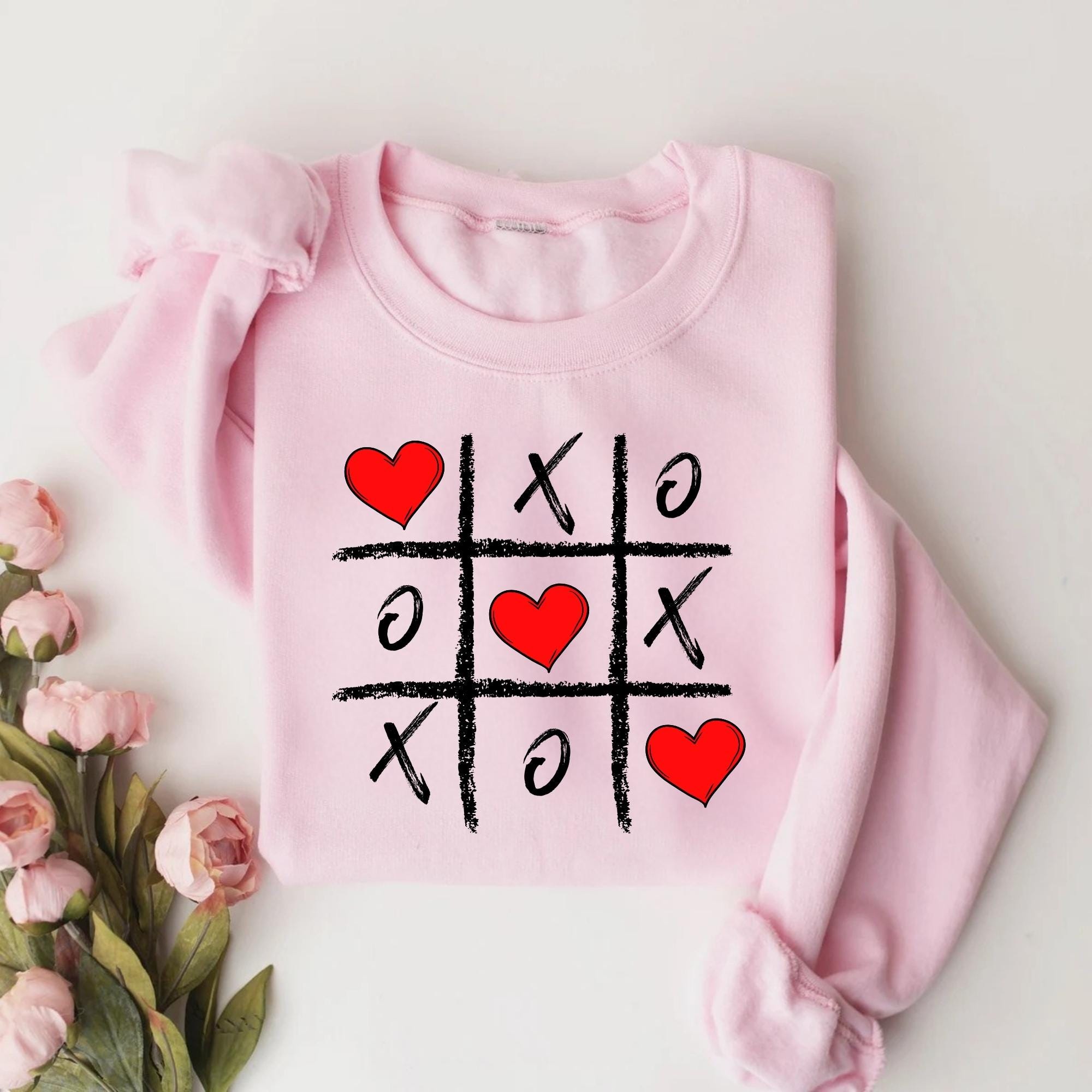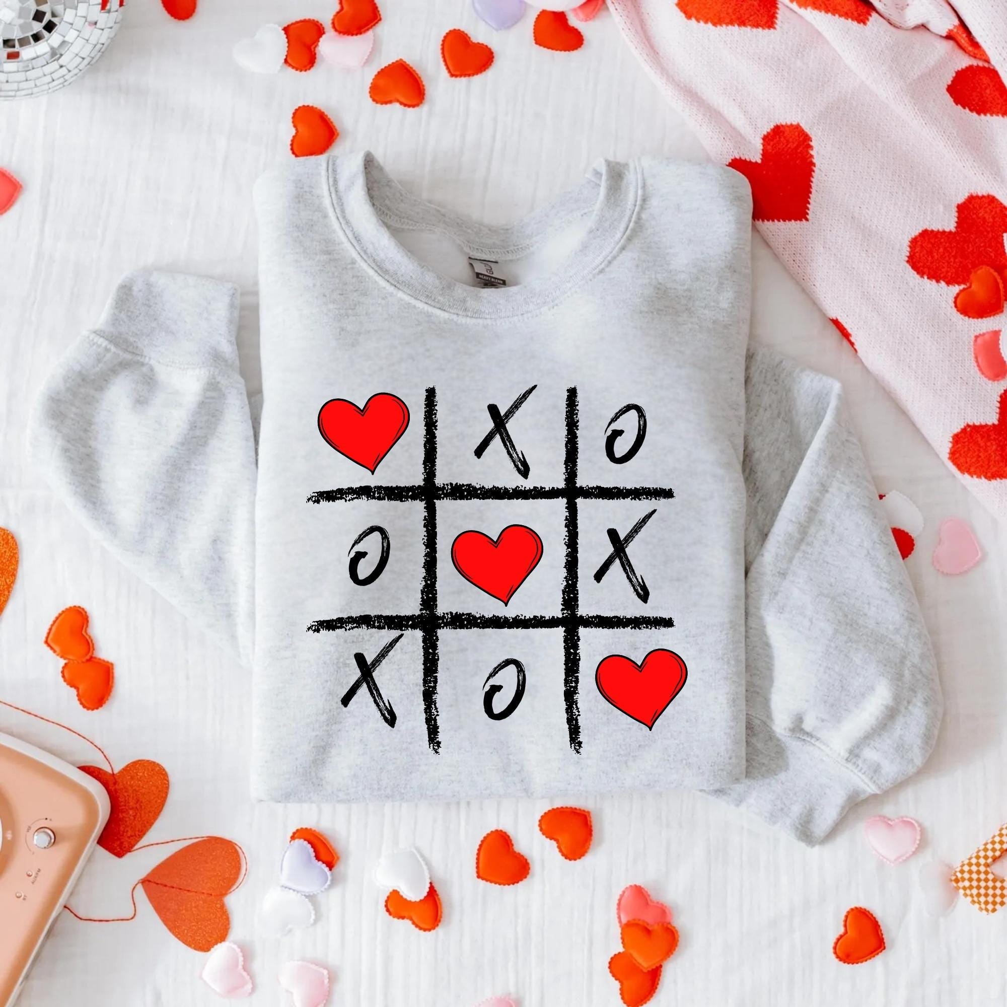 XOXO Shirt, Coquette Bow Valentines T-Shirt, Valentines Day Shirt, Tic Tac Toe Shirt, Valentine's Day Gift, V Day Heart Long Sleeve