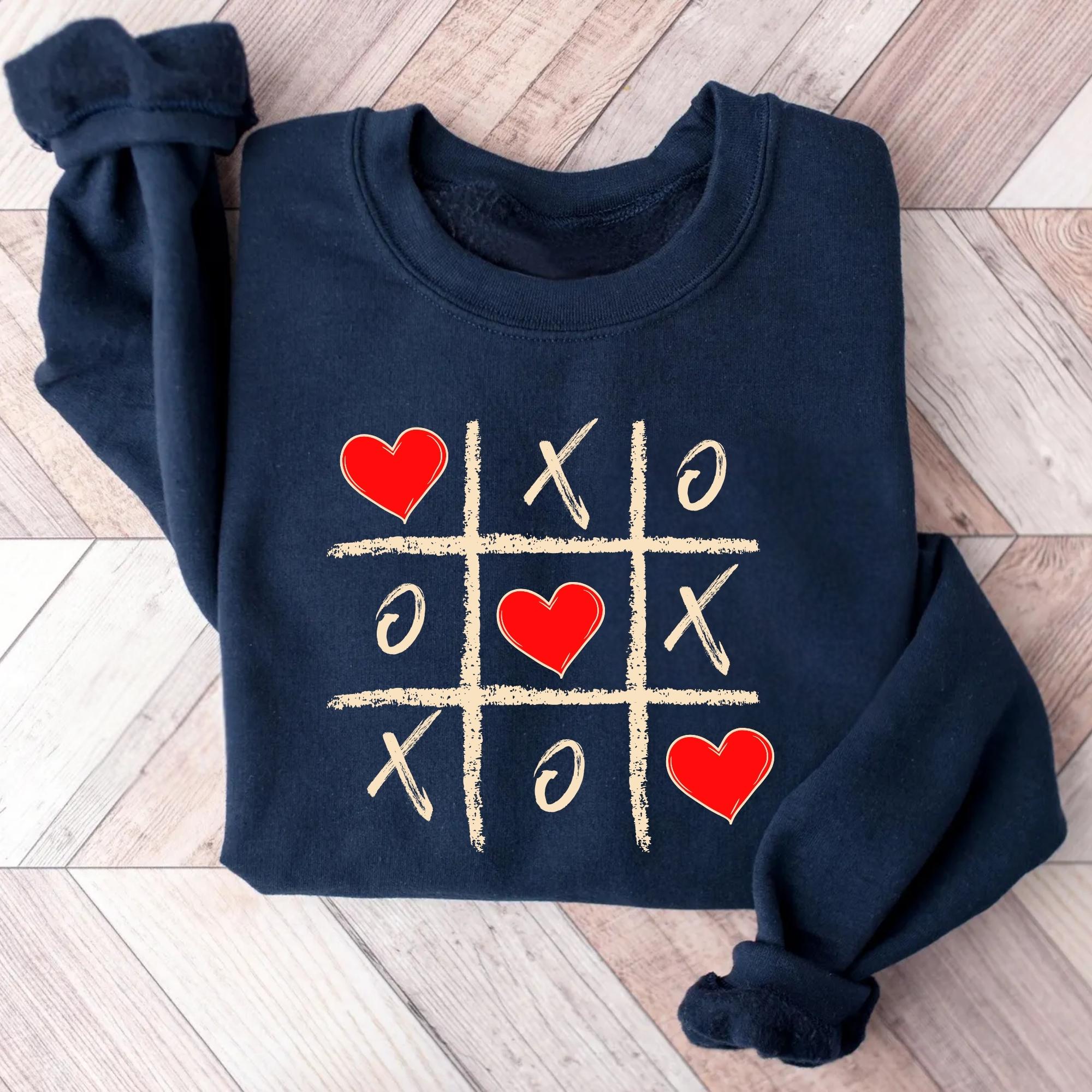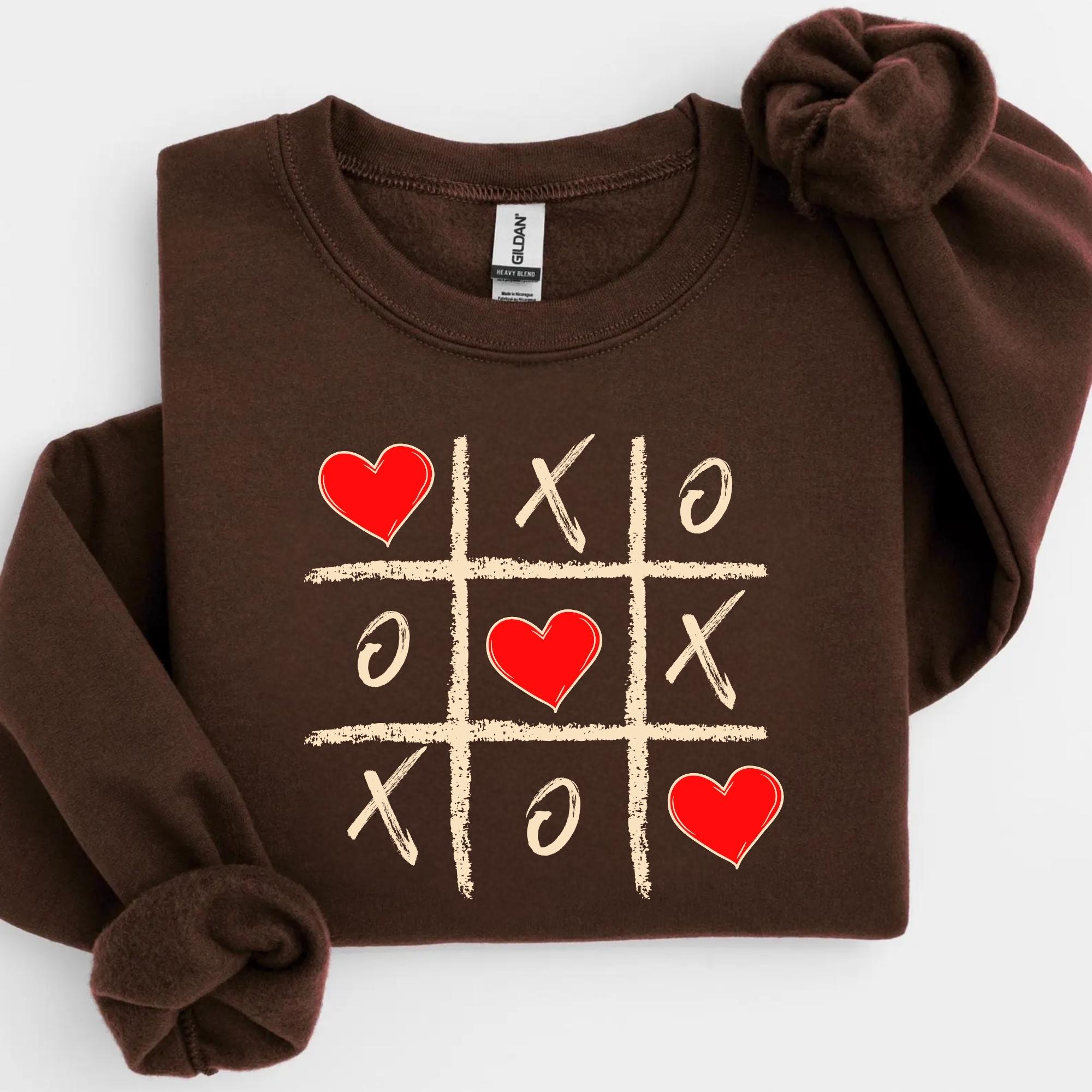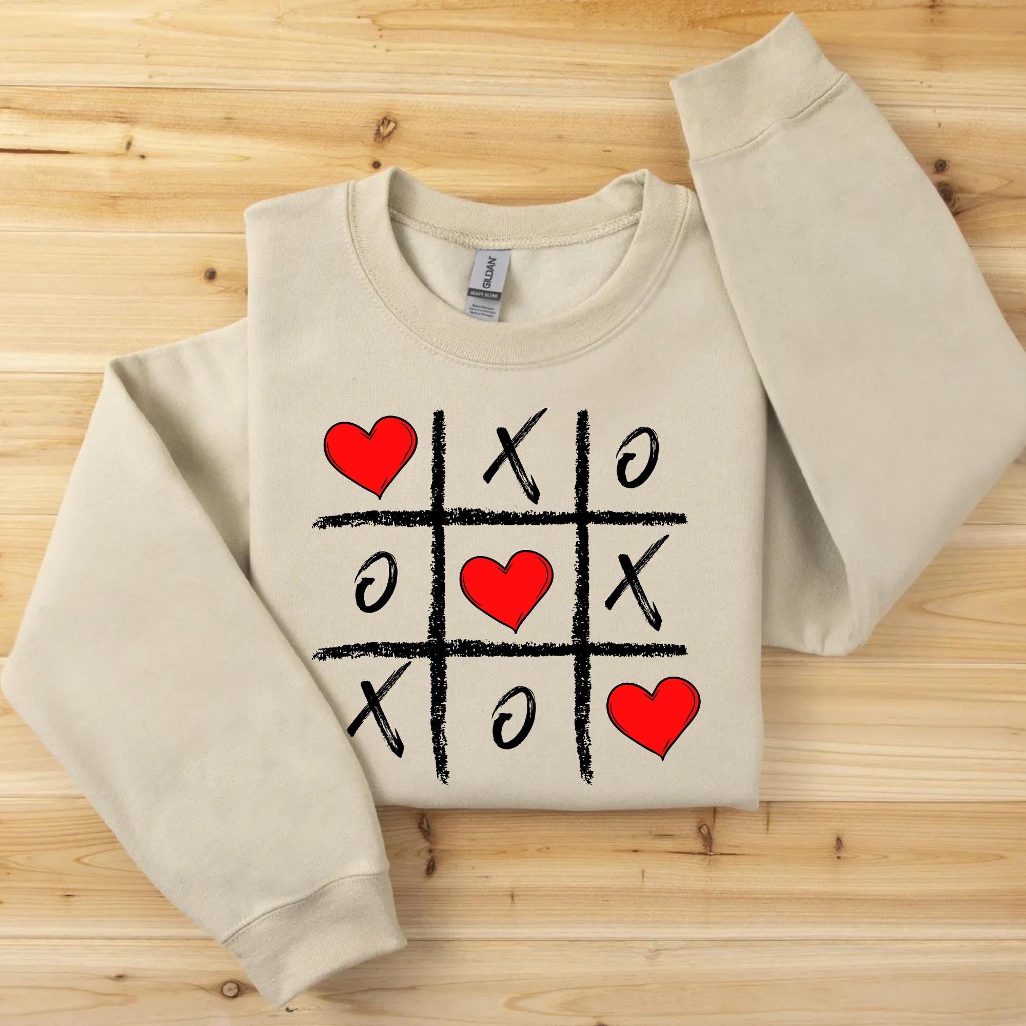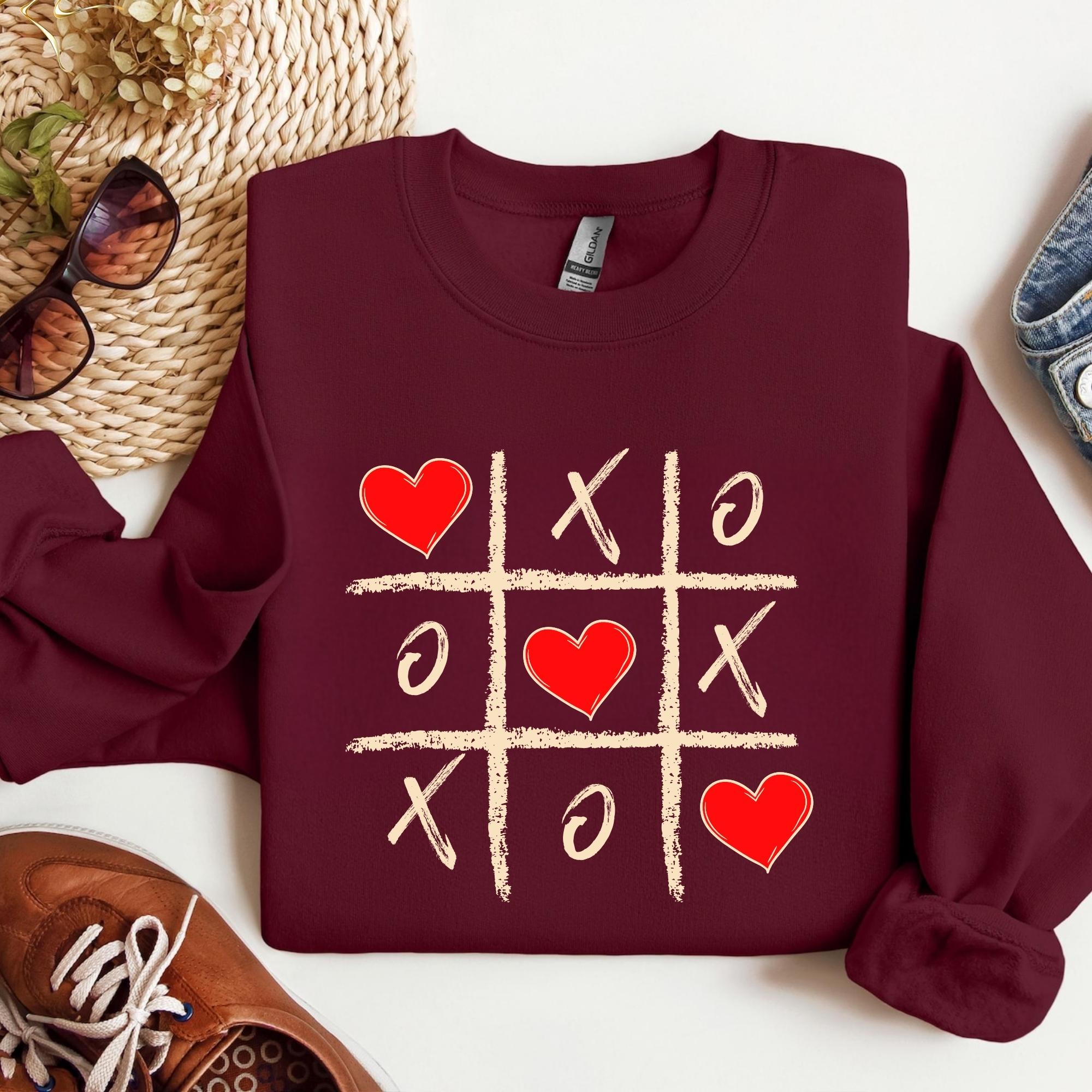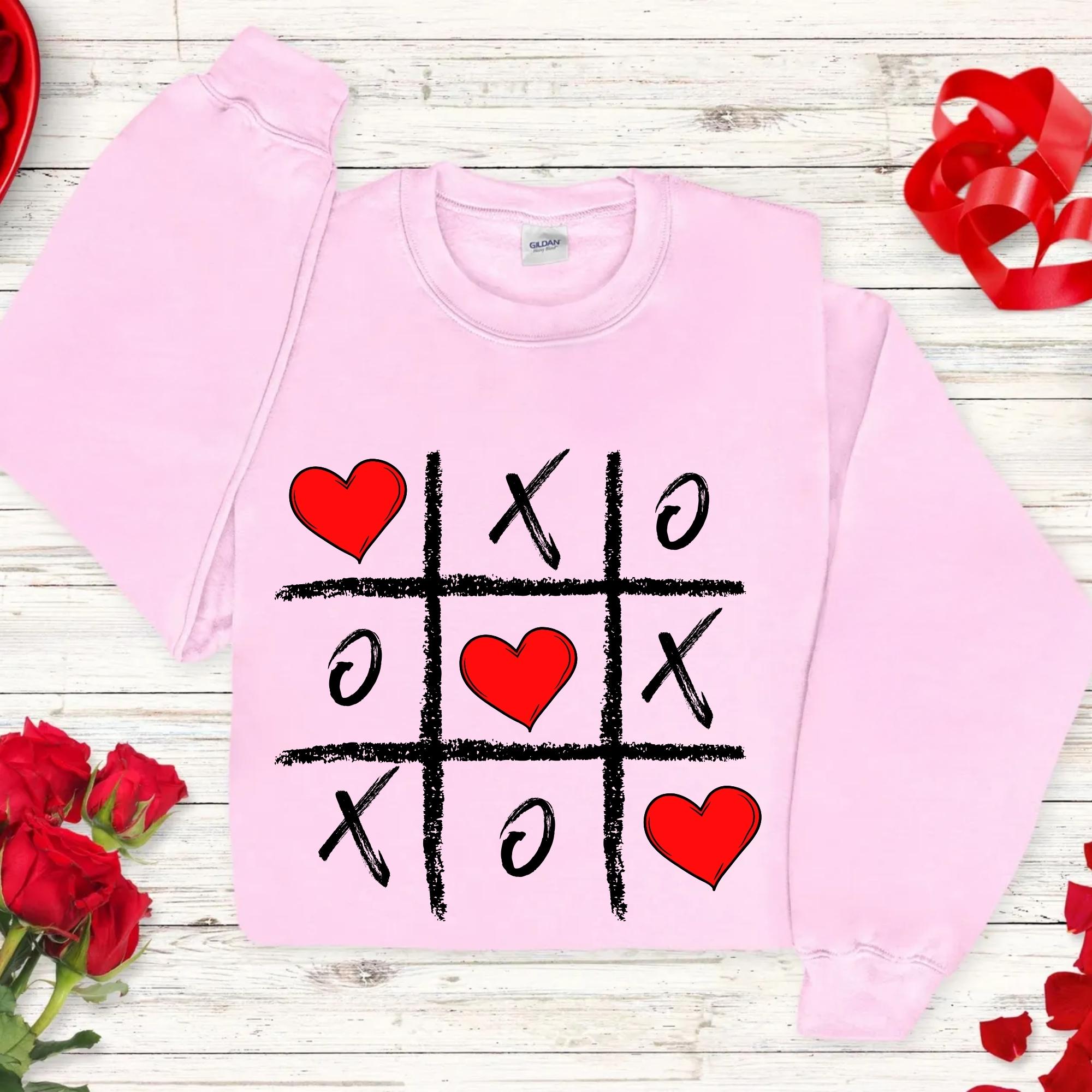 XOXO Shirt, Coquette Bow Valentines T-Shirt, Valentines Day Shirt, Tic Tac Toe Shirt, Valentine's Day Gift, V Day Heart Long Sleeve