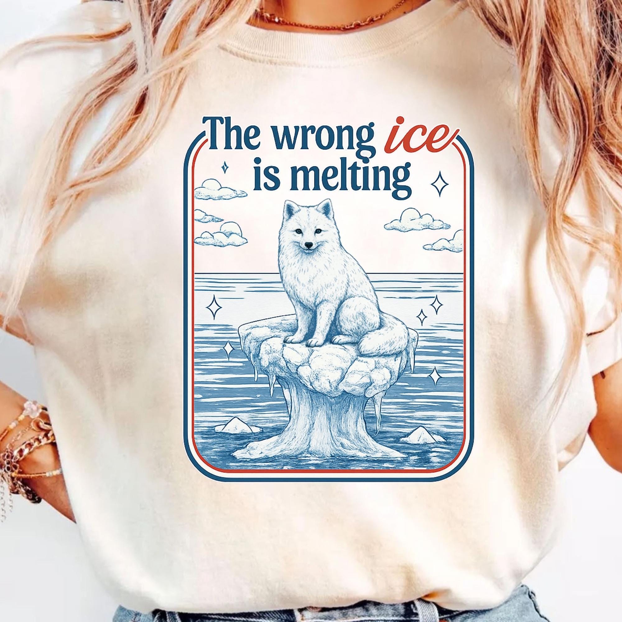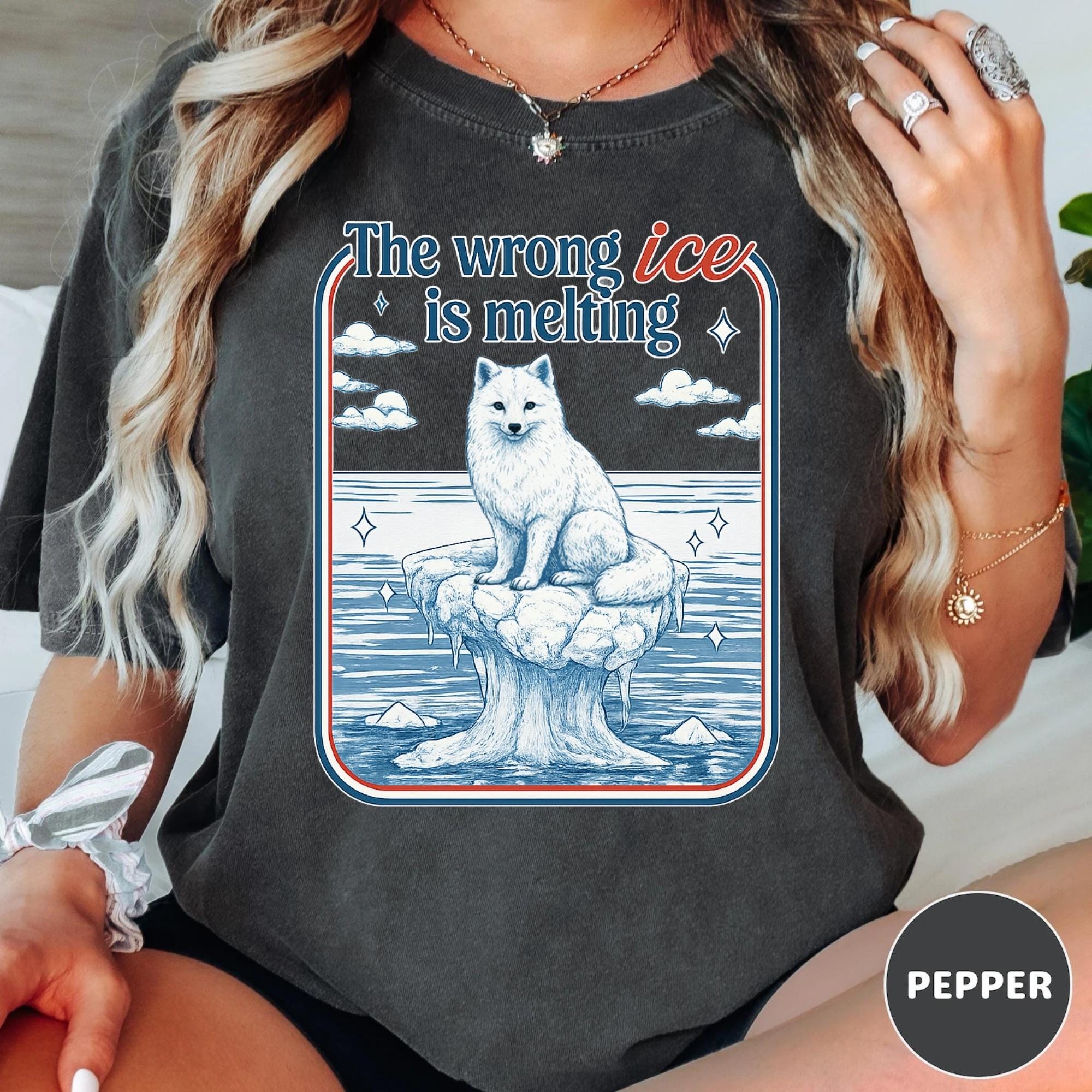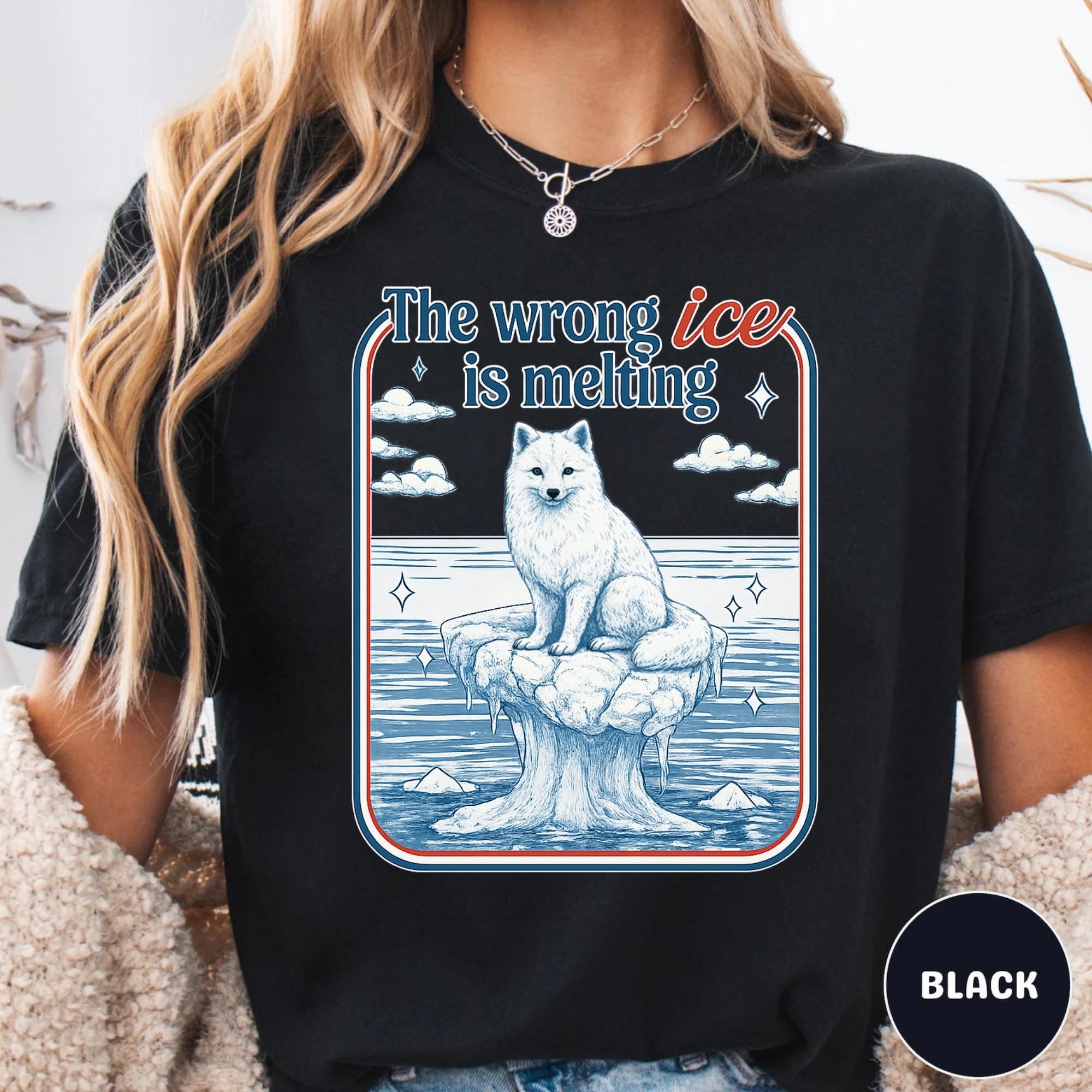 The Wrong Ice Is Melting Arctic Fox Shirt, Climate Change Shirt, Polar Fox Graphic Tee, Environmental Protest Shirt, Vintage Activist Tee