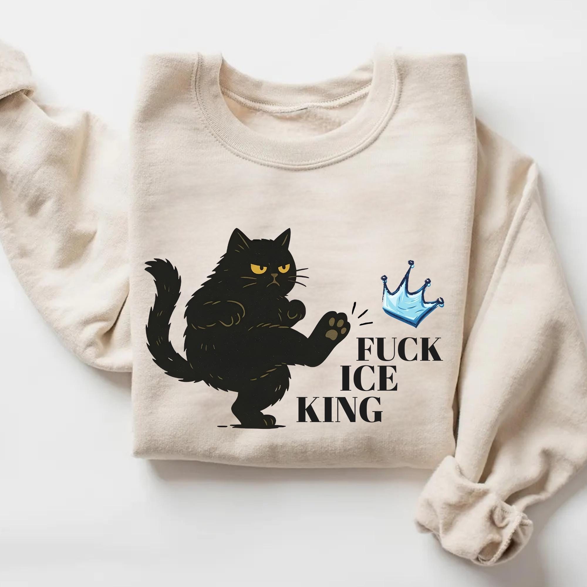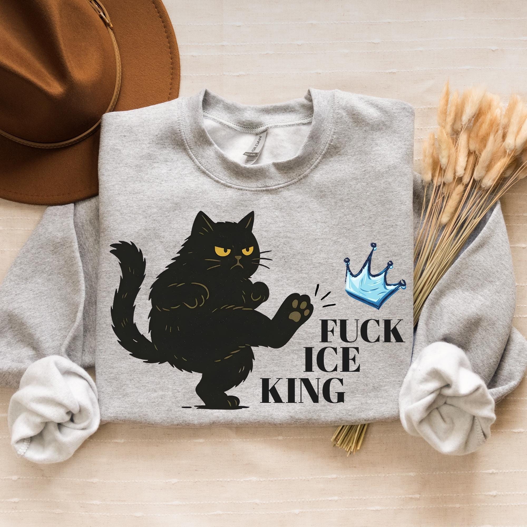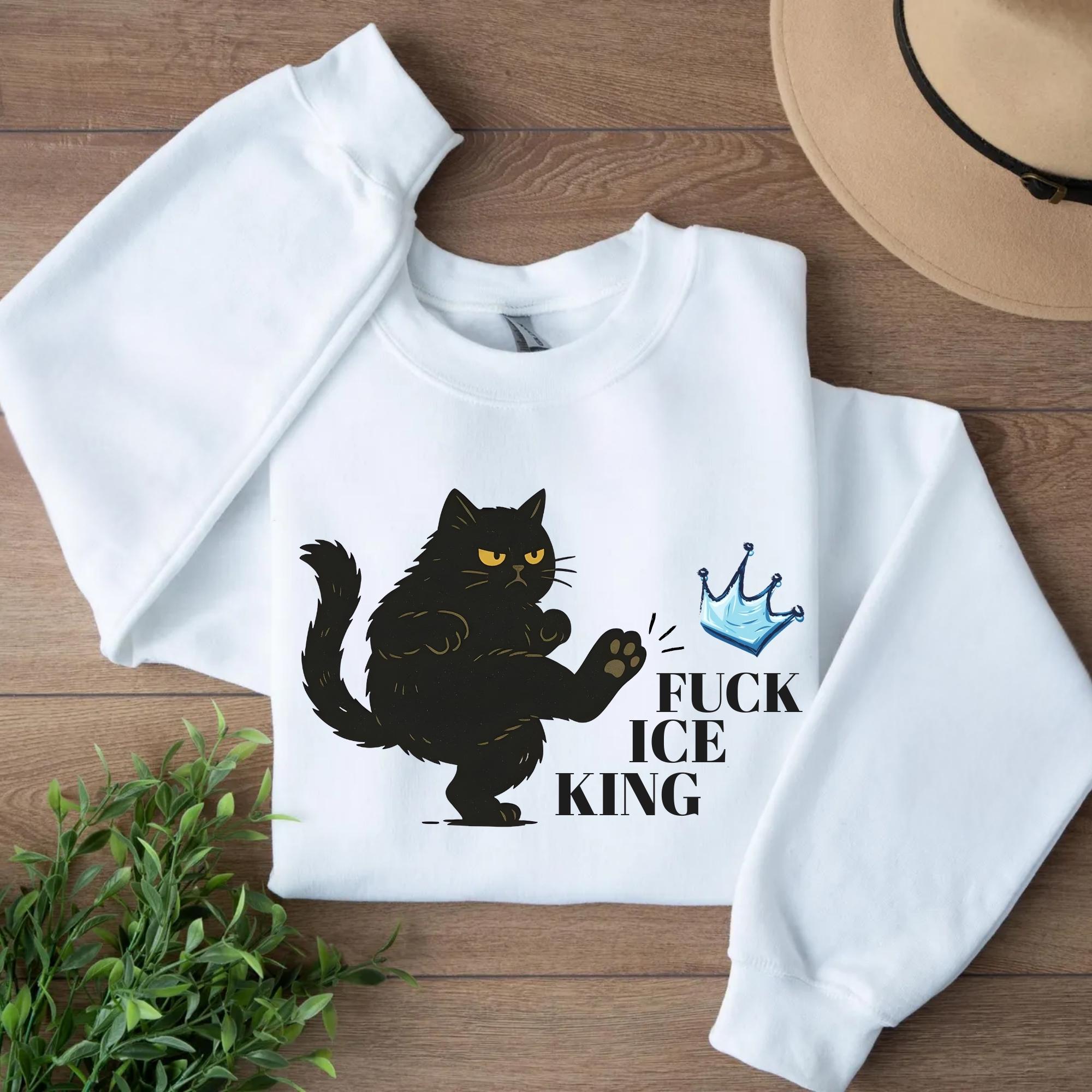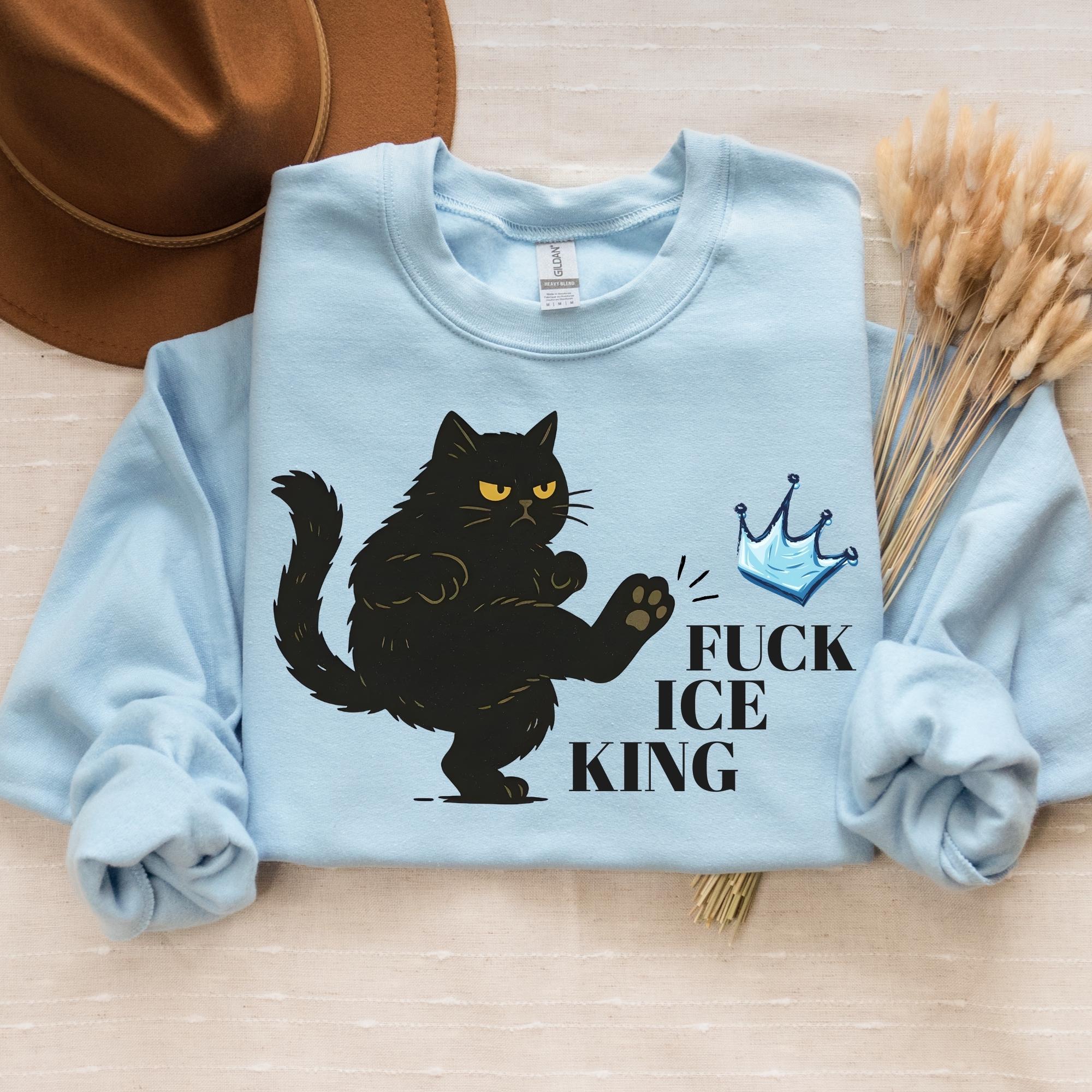 Fuck Ice King Black Cat Protest Sweatshirt โ No Kings Anti Monarchy Graphic Crewneck