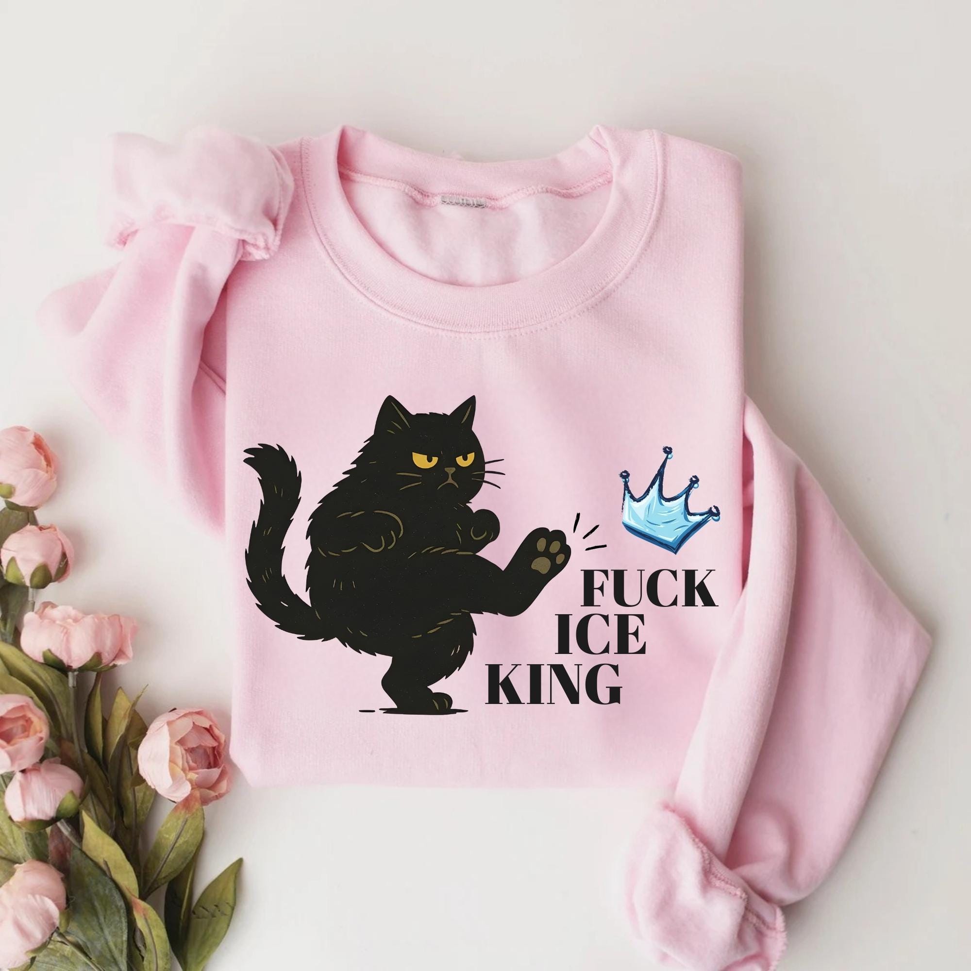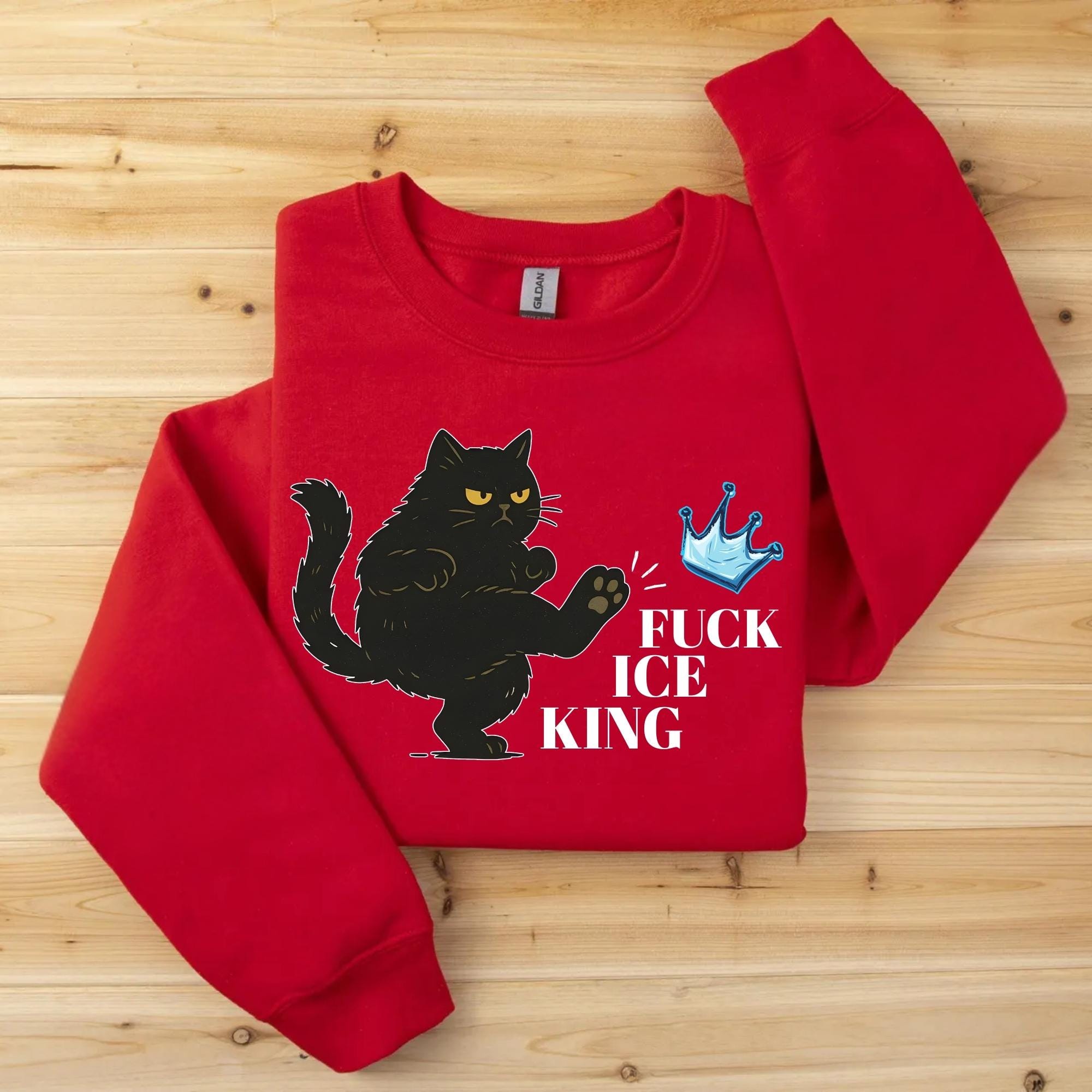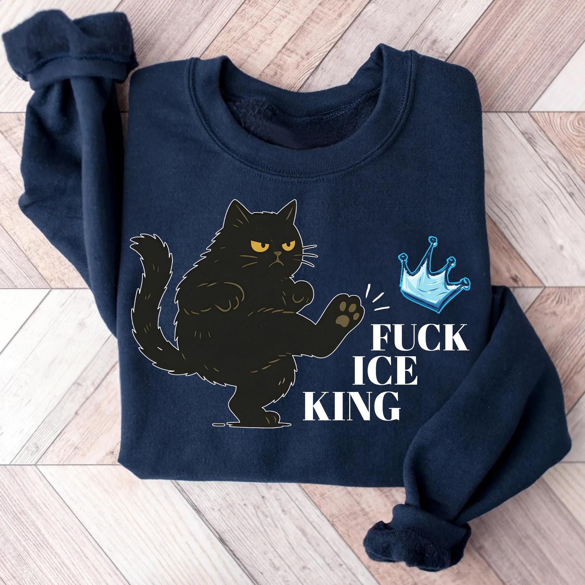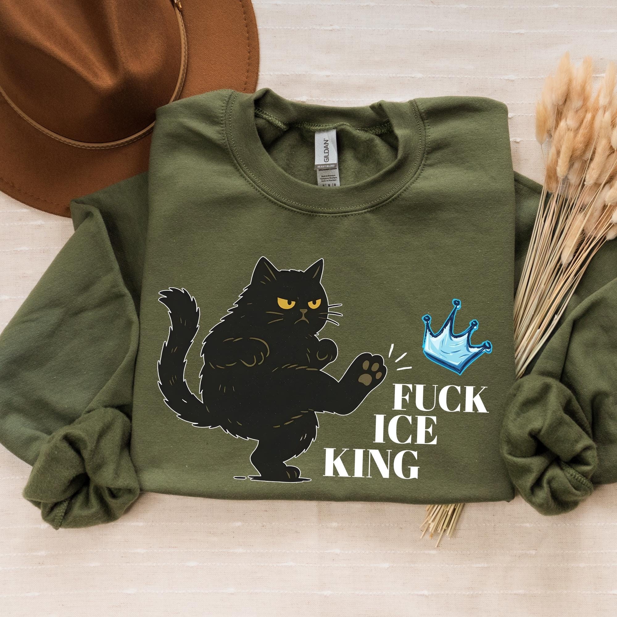 Fuck Ice King Black Cat Protest Sweatshirt โ No Kings Anti Monarchy Graphic Crewneck