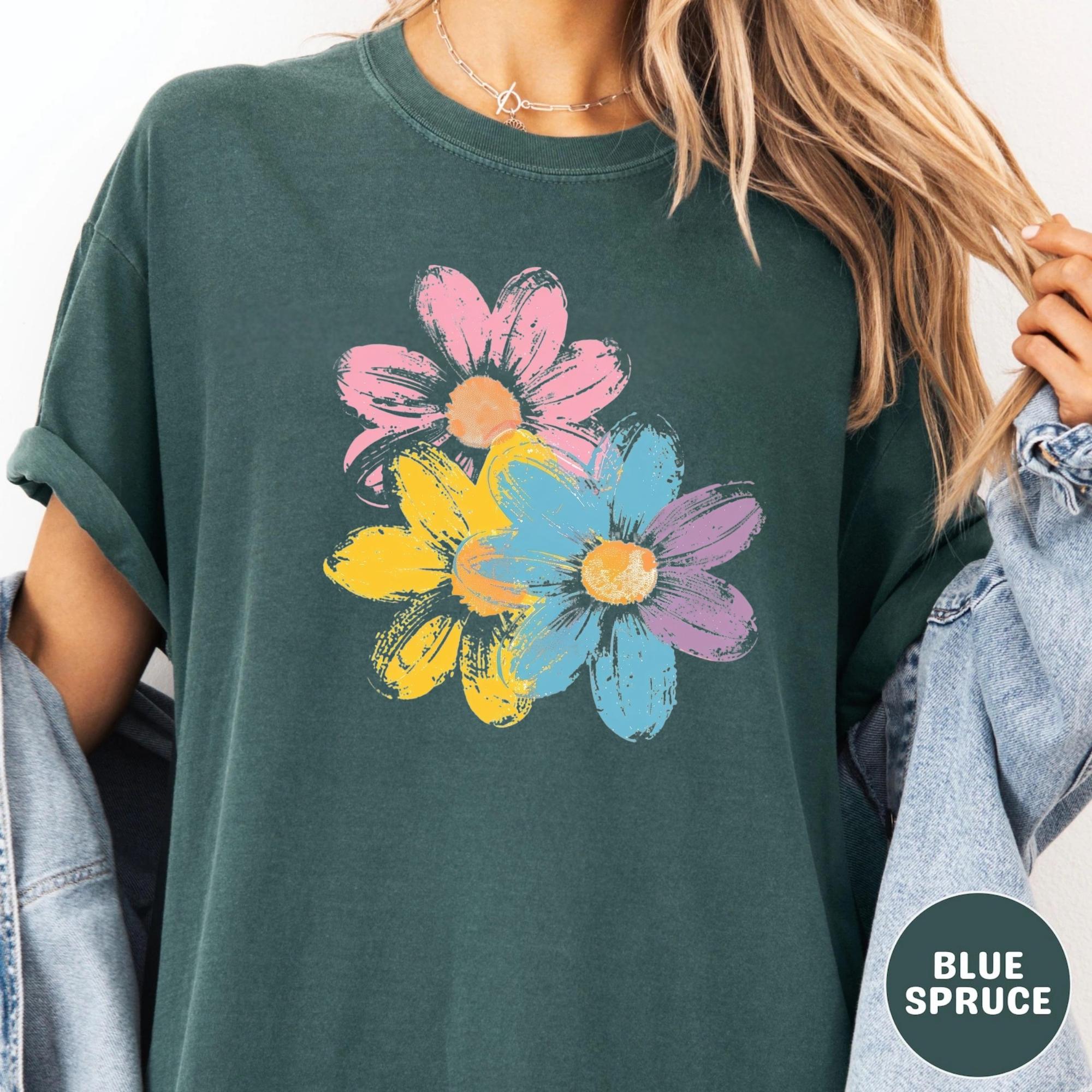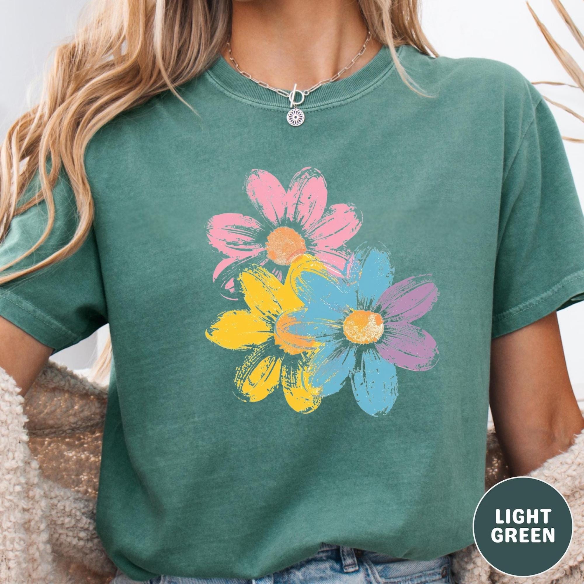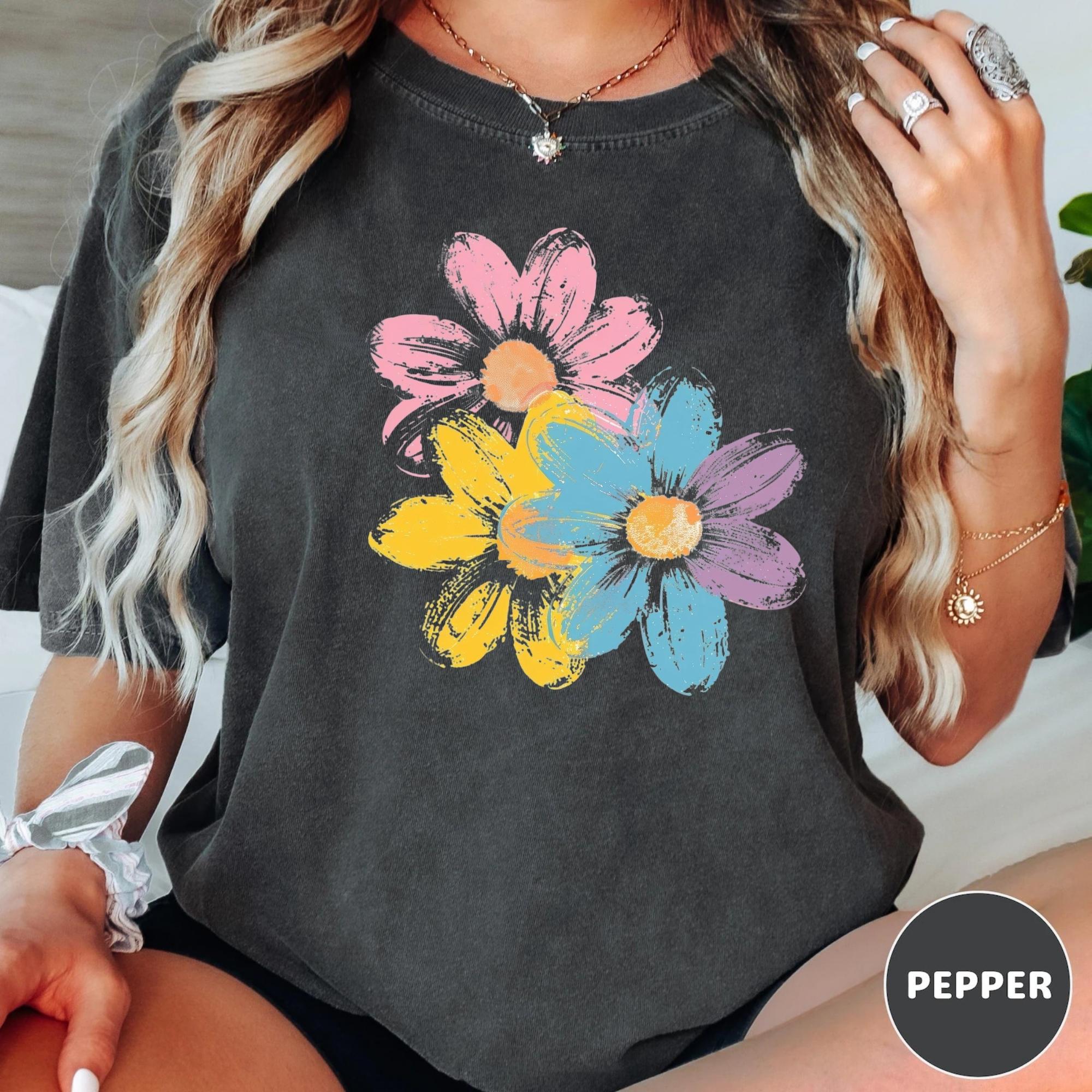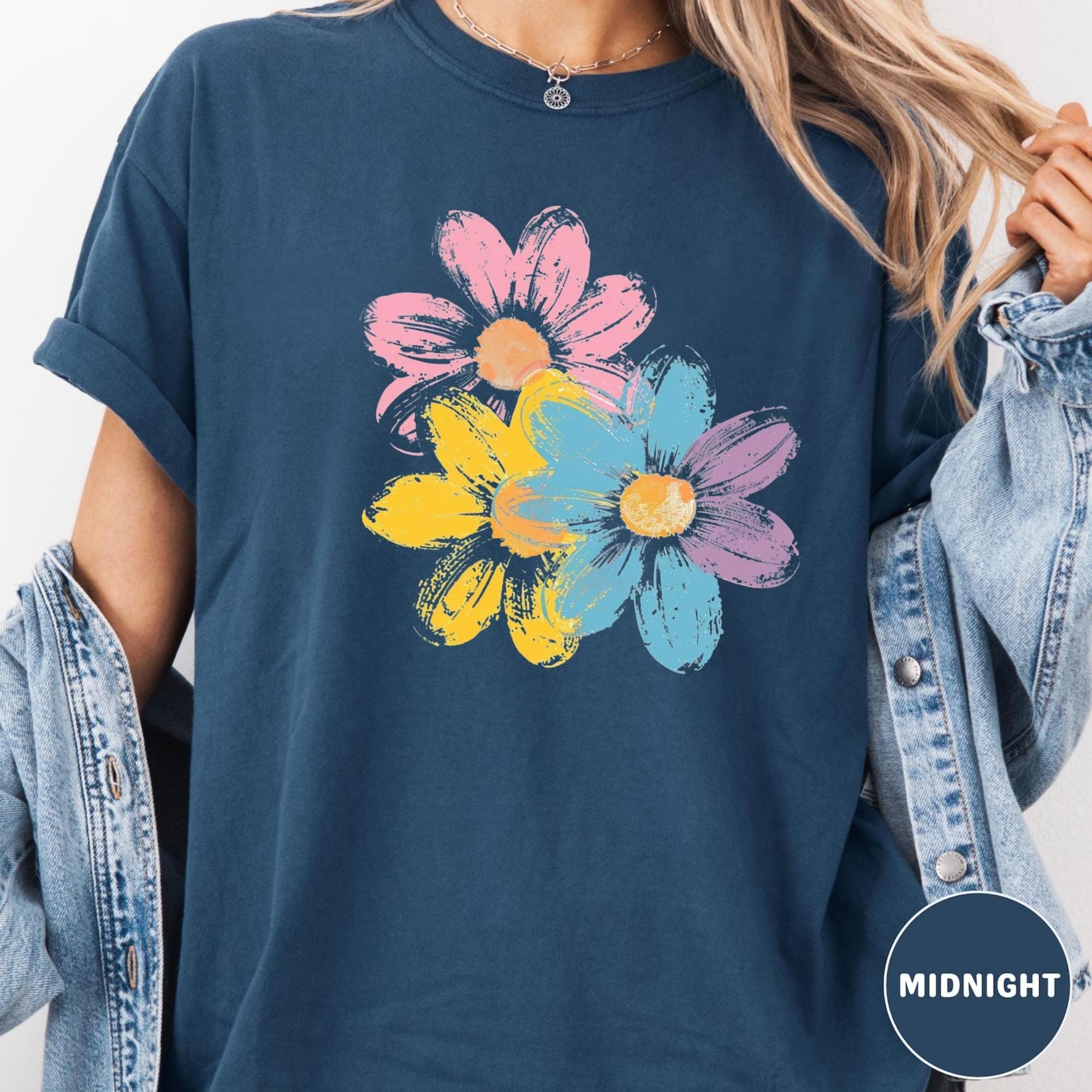 Comfort Colors Daisy Shirt, Boho Floral Graphic Tee, Retro Aesthetic Flower Shirt, Soft Washed Vintage T-Shirt, Valentines Gift Women shirt