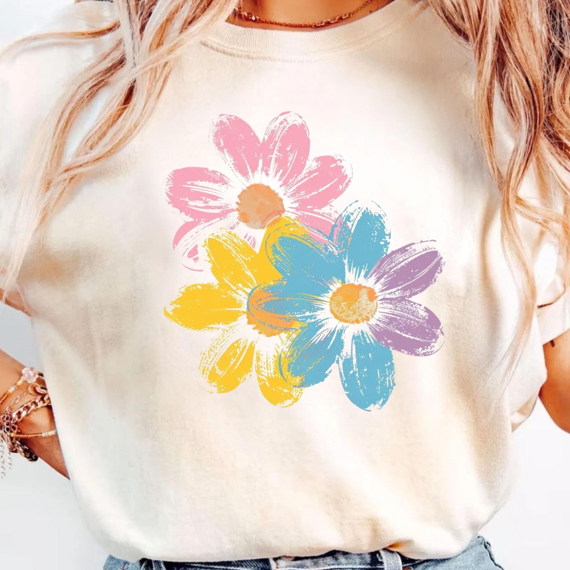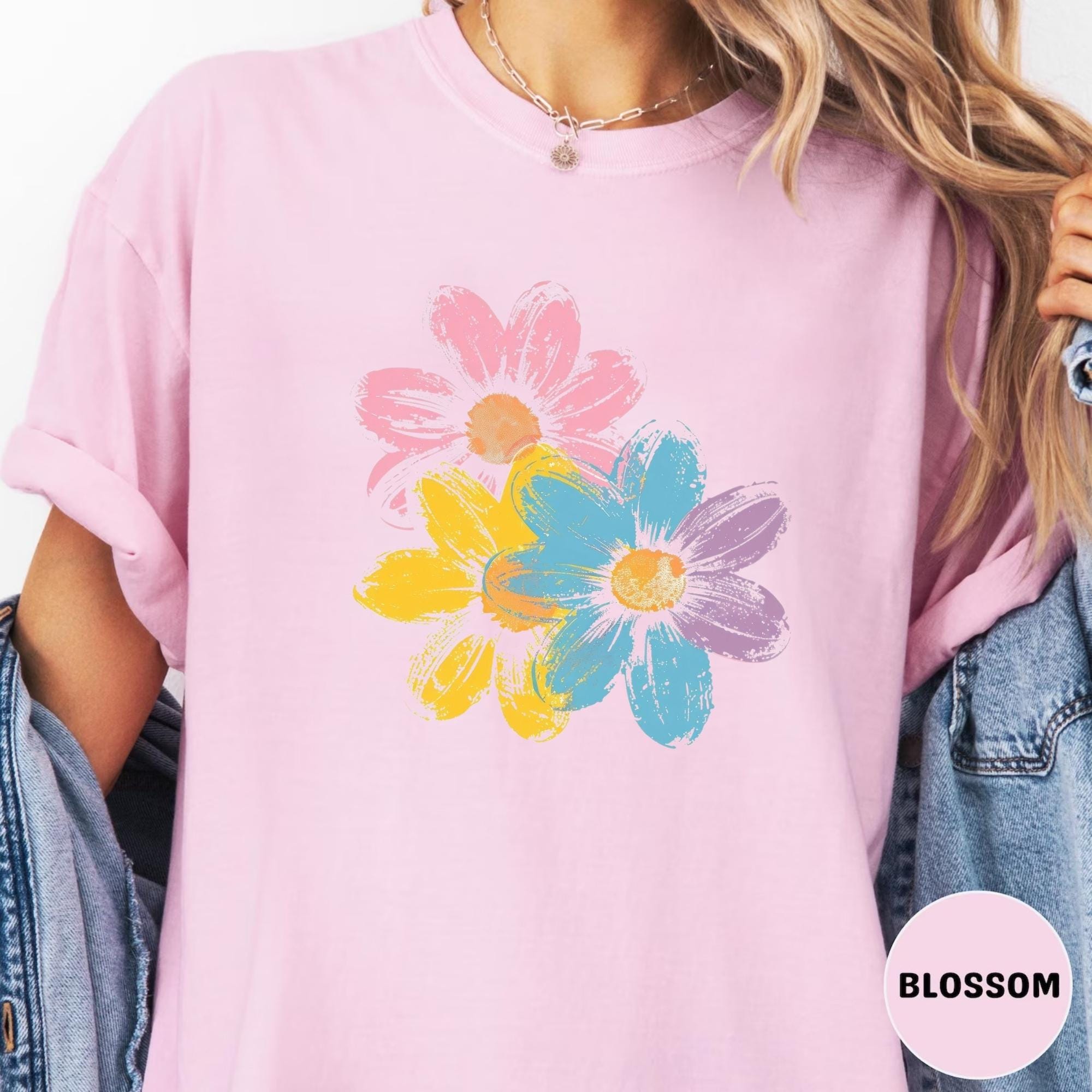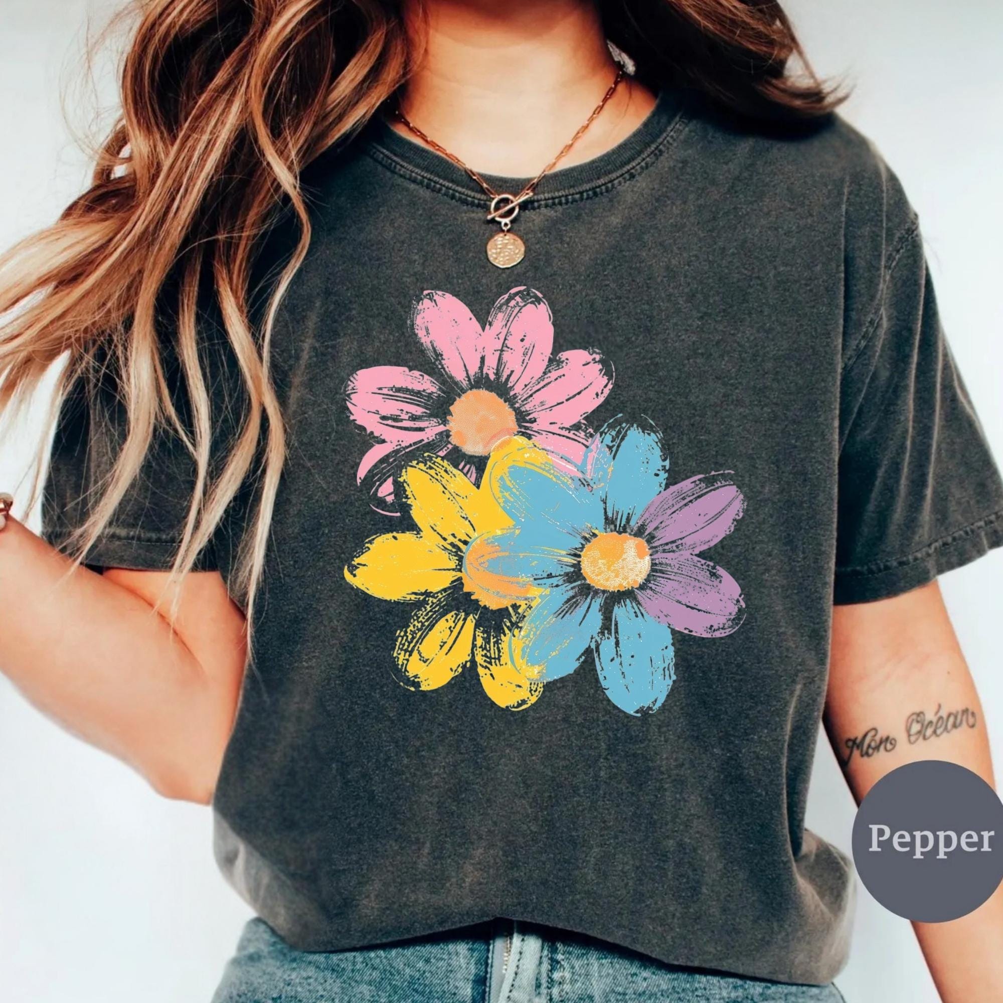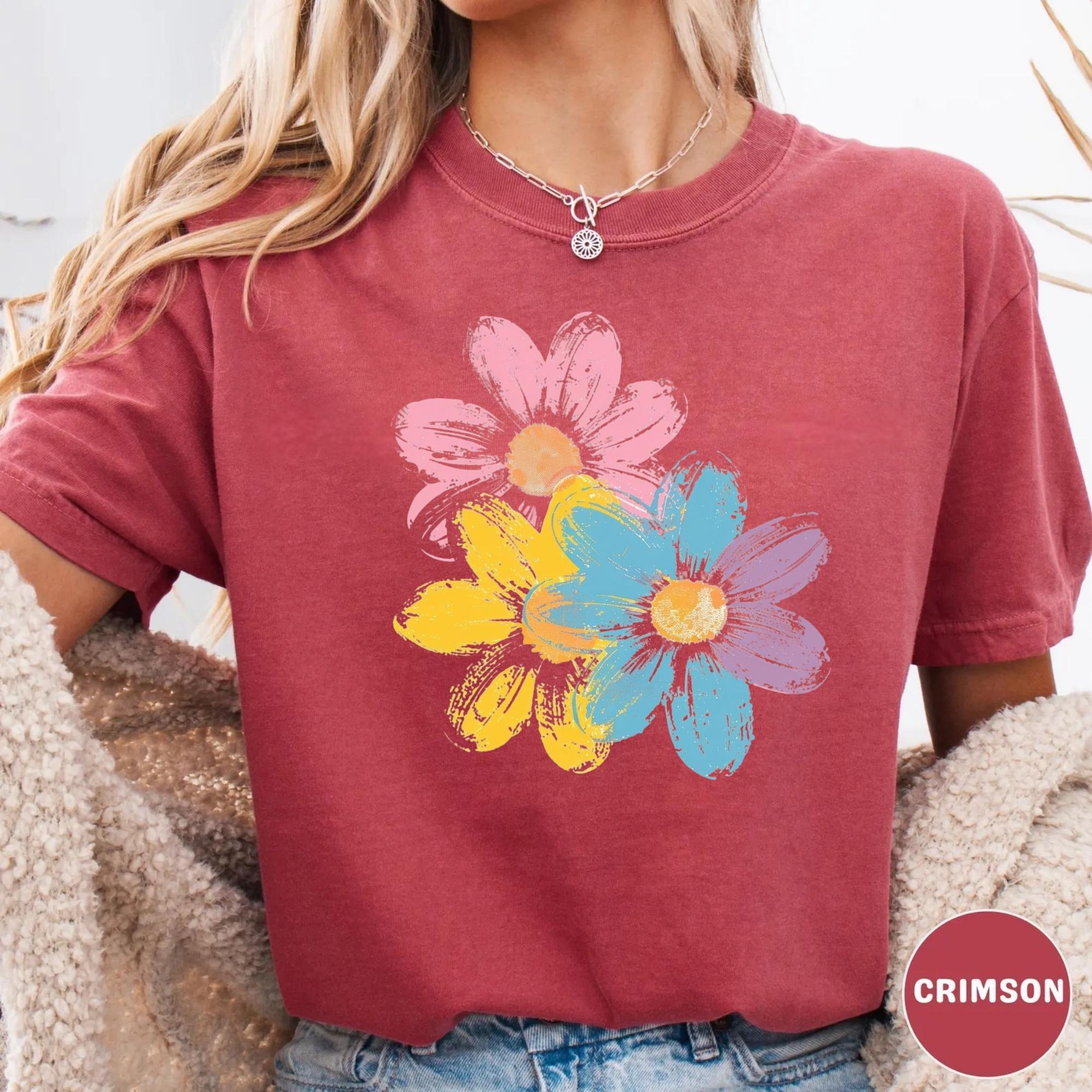 Comfort Colors Daisy Shirt, Boho Floral Graphic Tee, Retro Aesthetic Flower Shirt, Soft Washed Vintage T-Shirt, Valentines Gift Women shirt