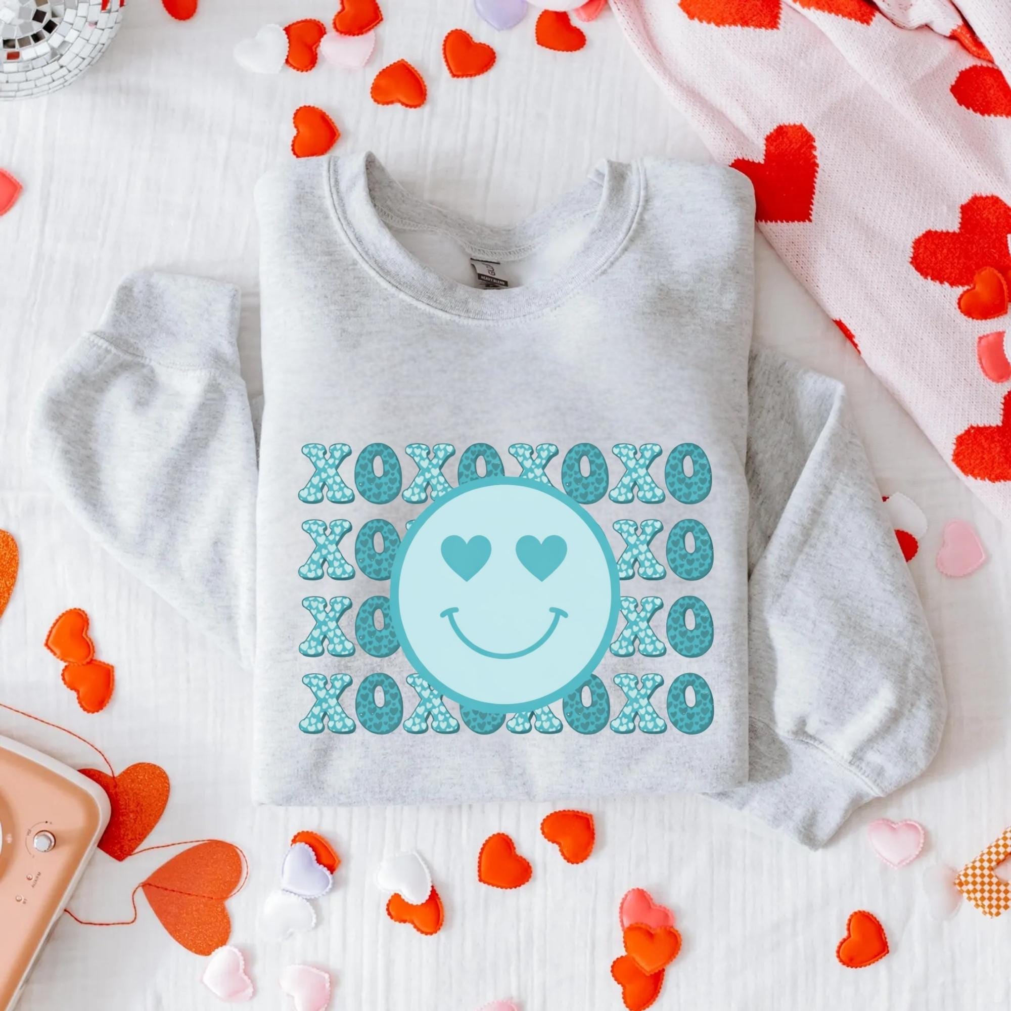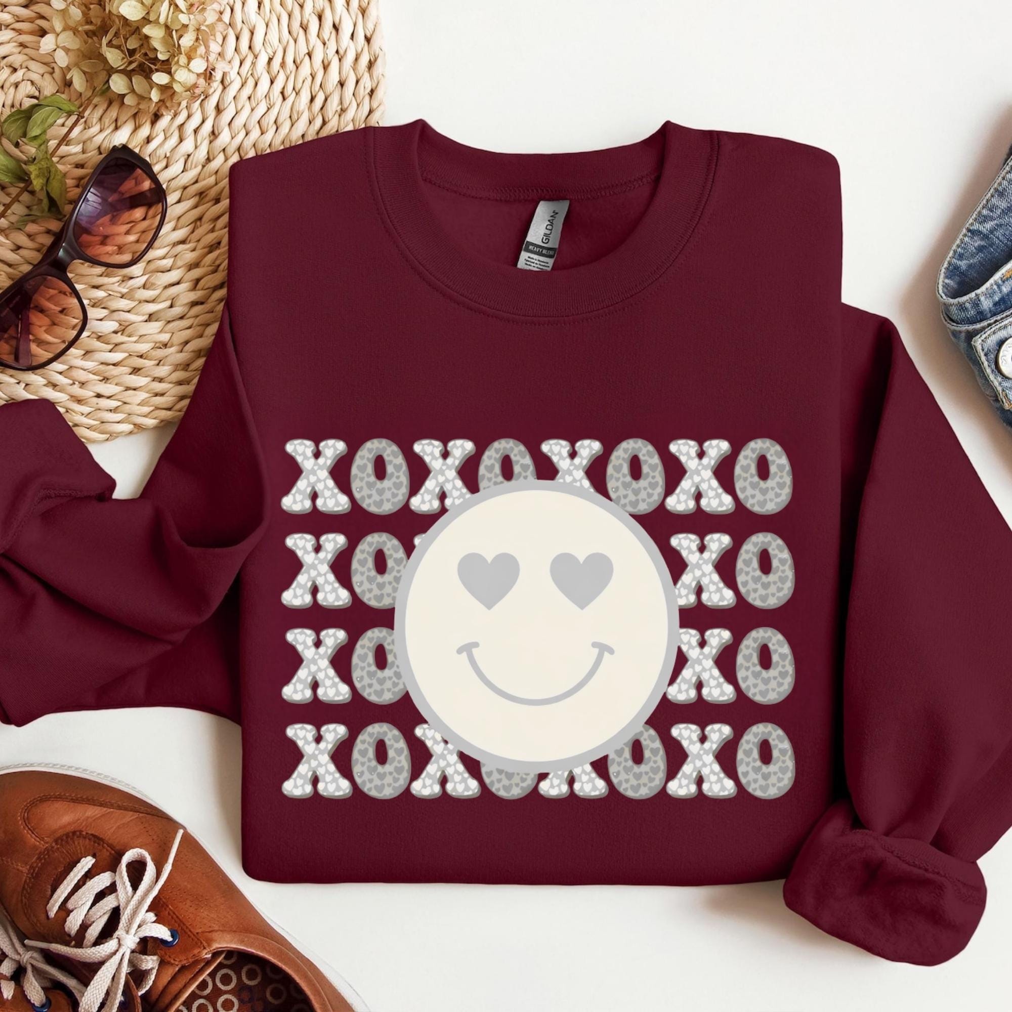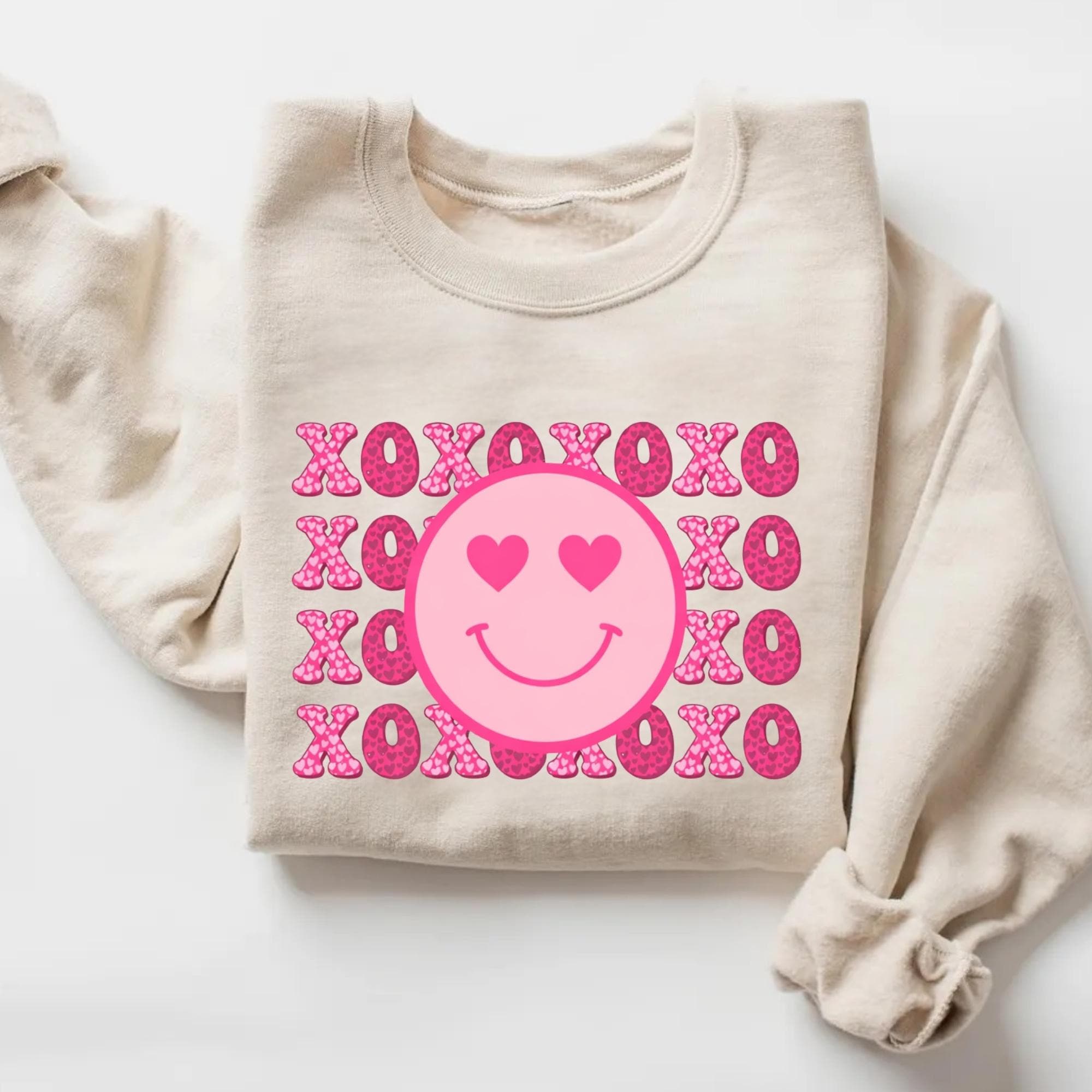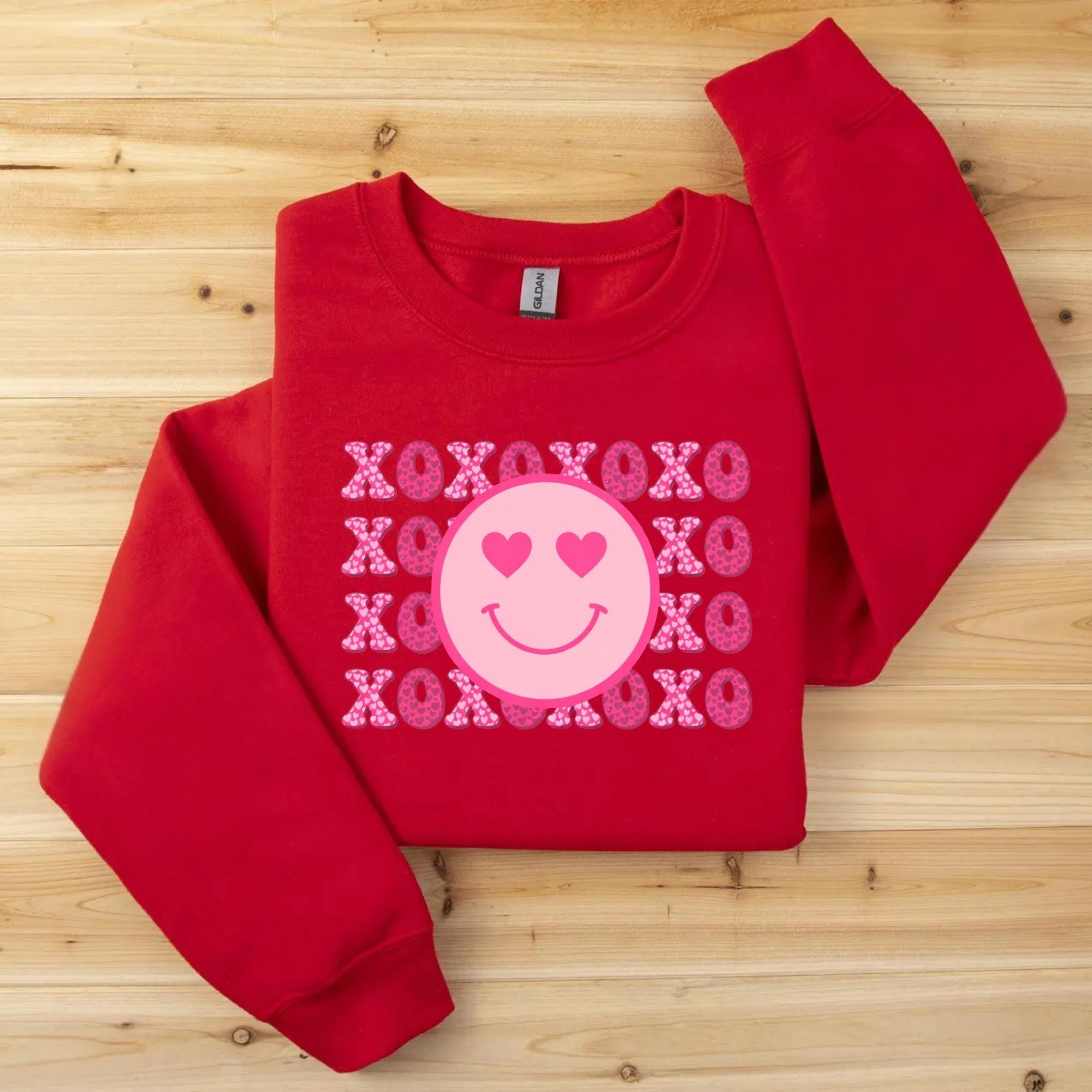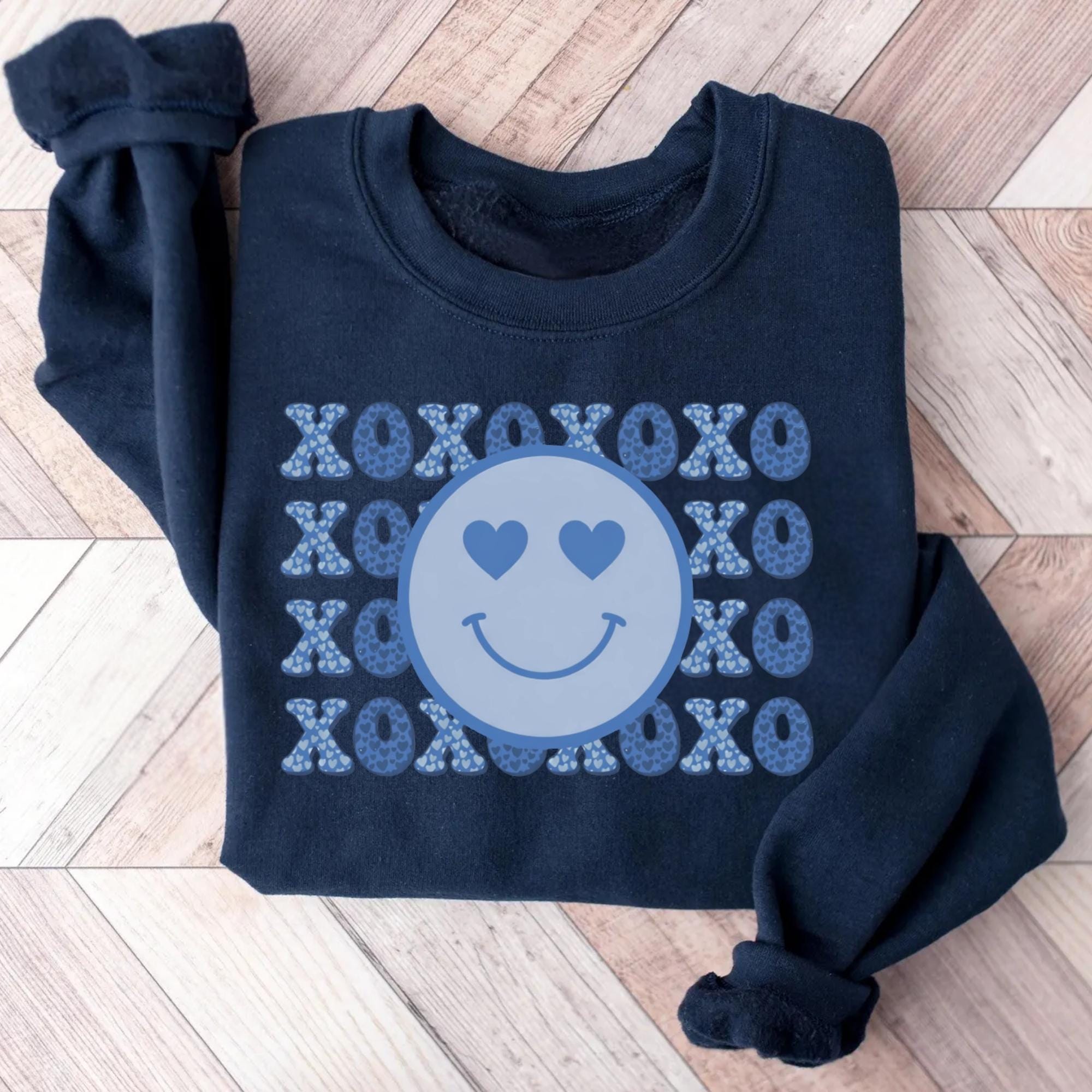 Smiley Face Sweatshirt, Valentines Day Cotton Love XOXO Tee for Women Couples Girlfriend Wife
