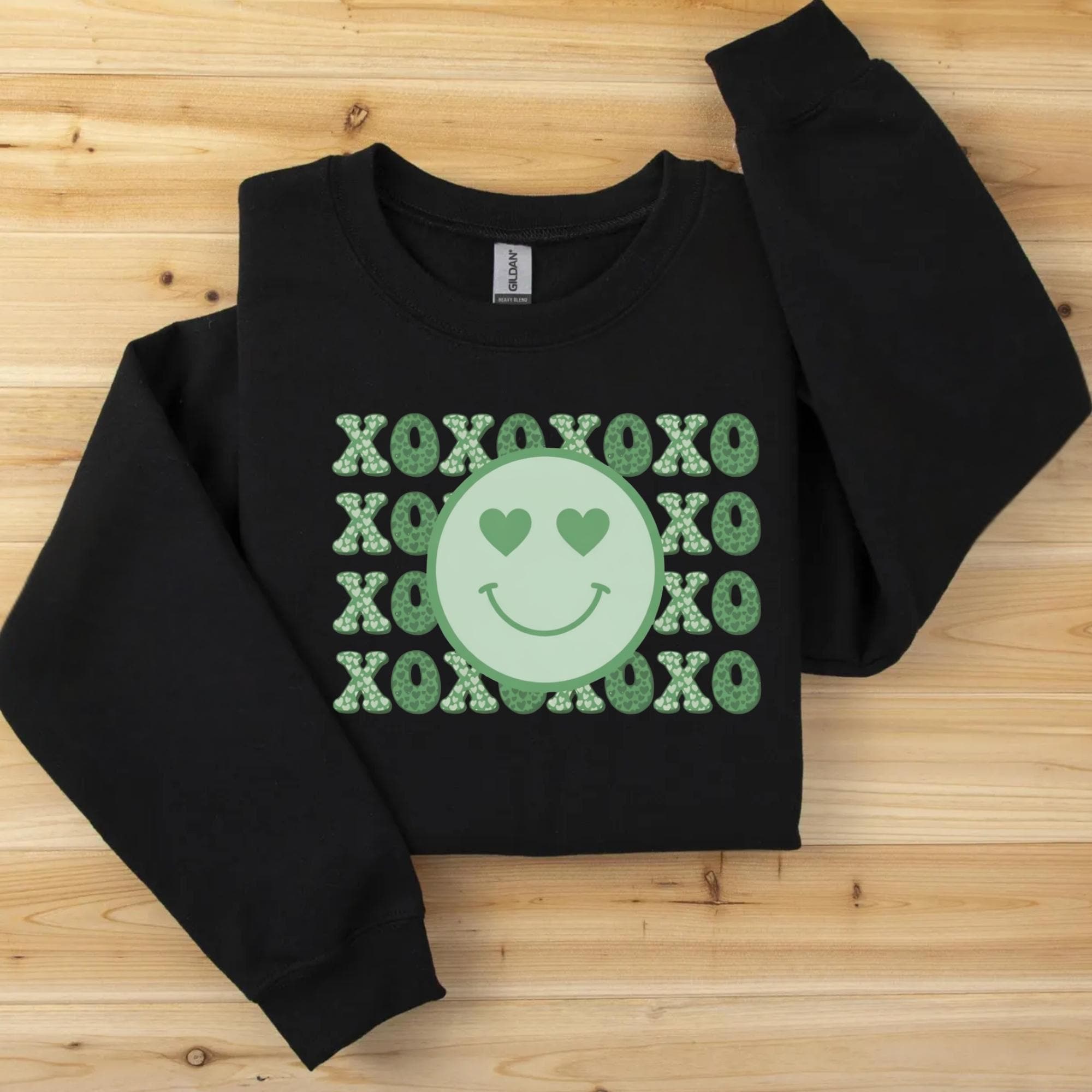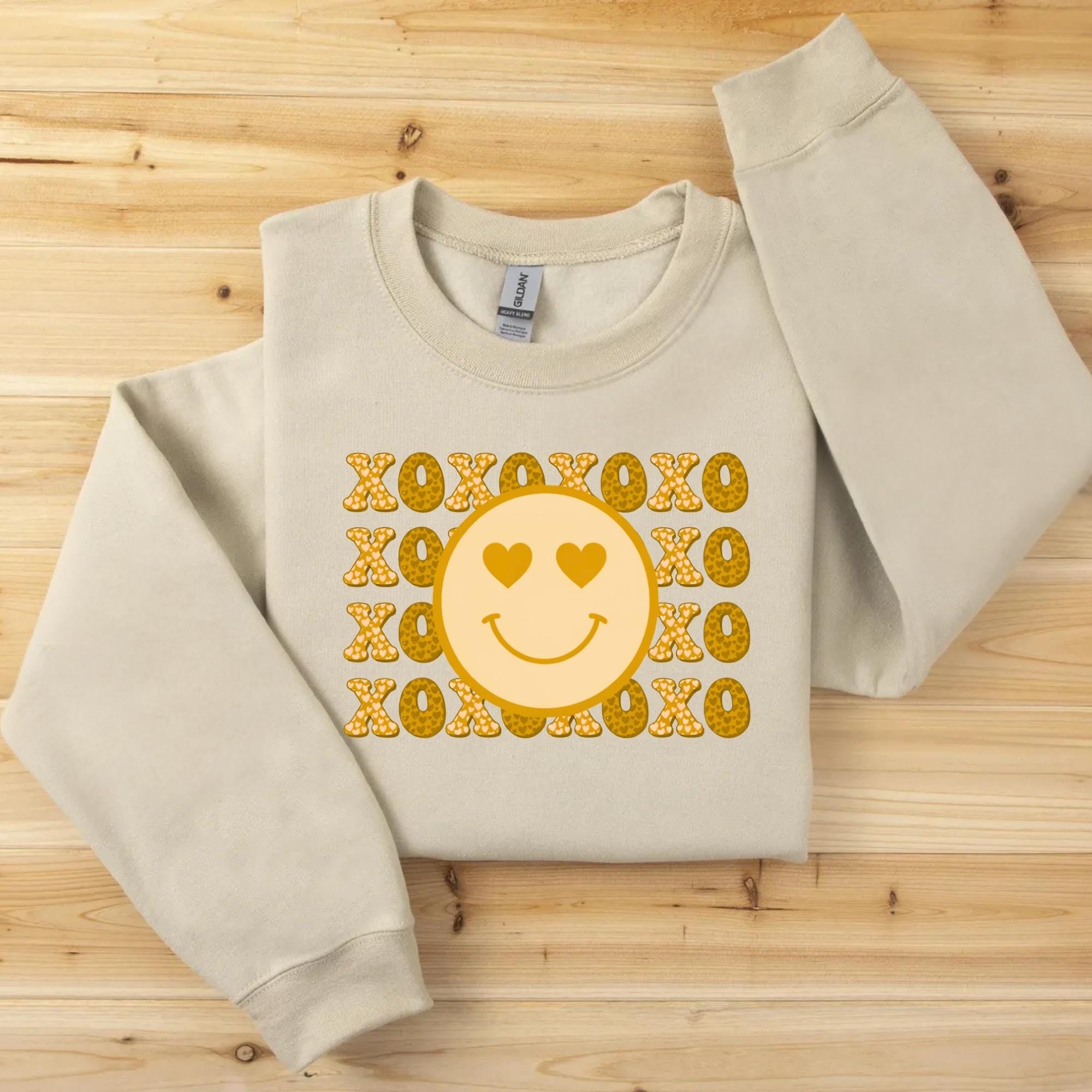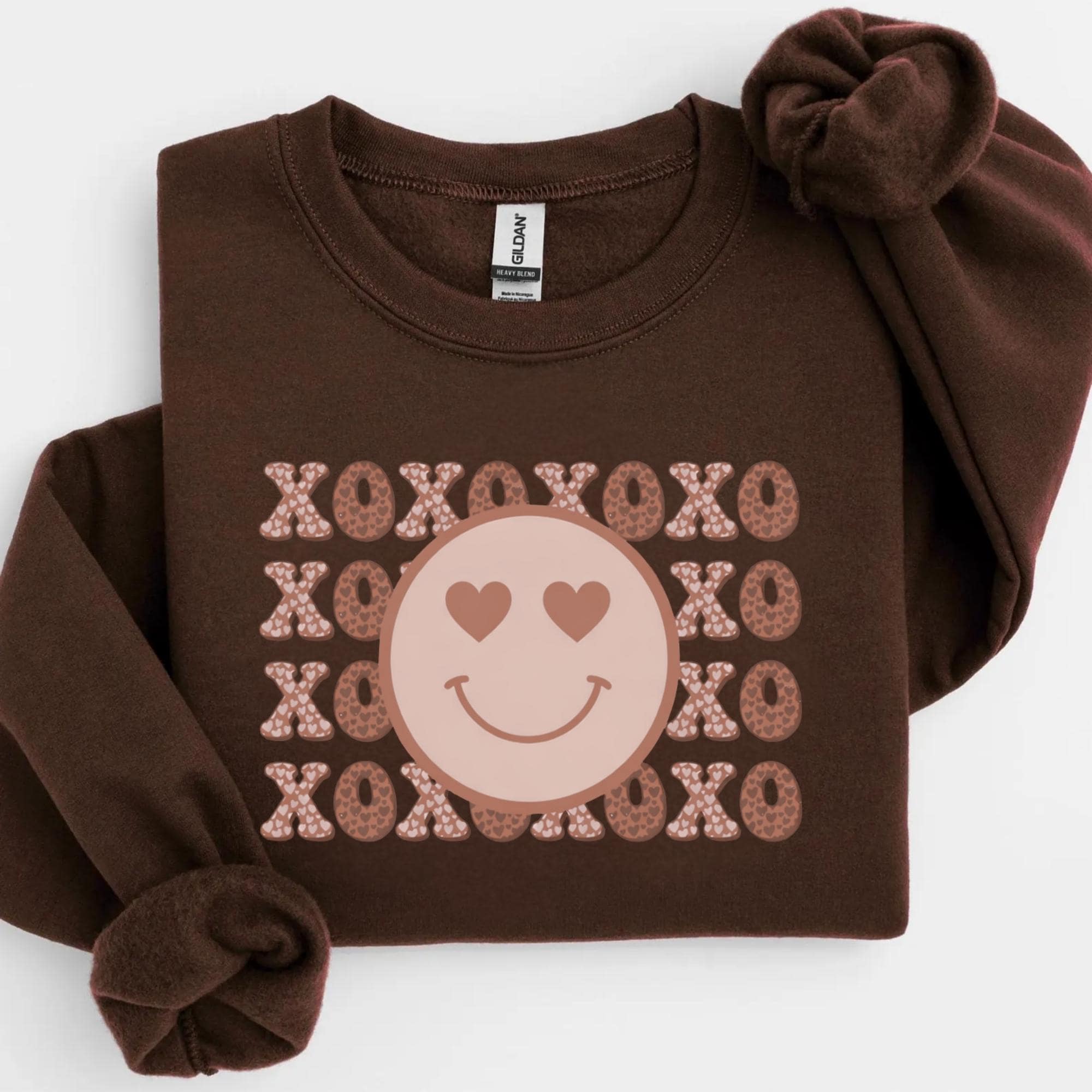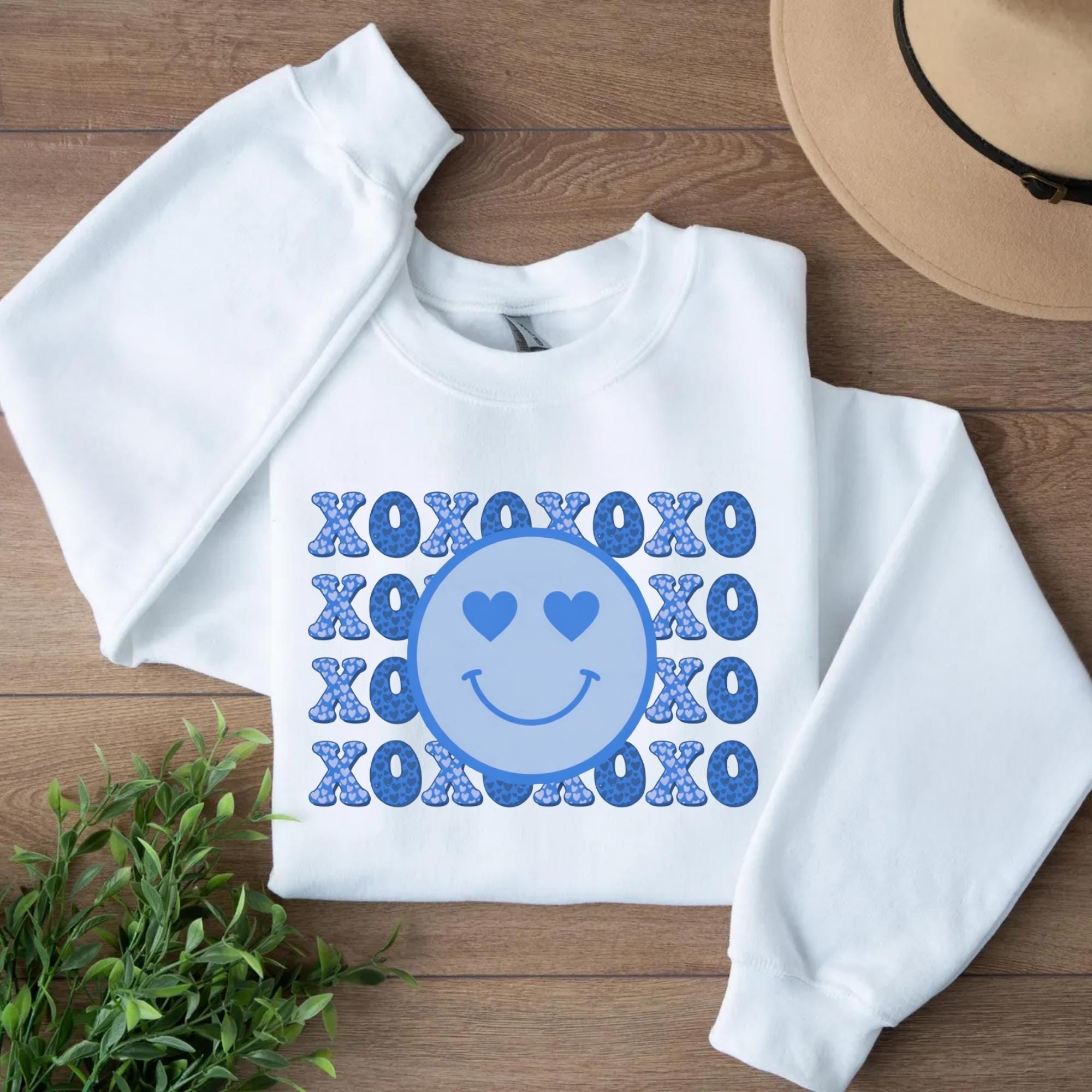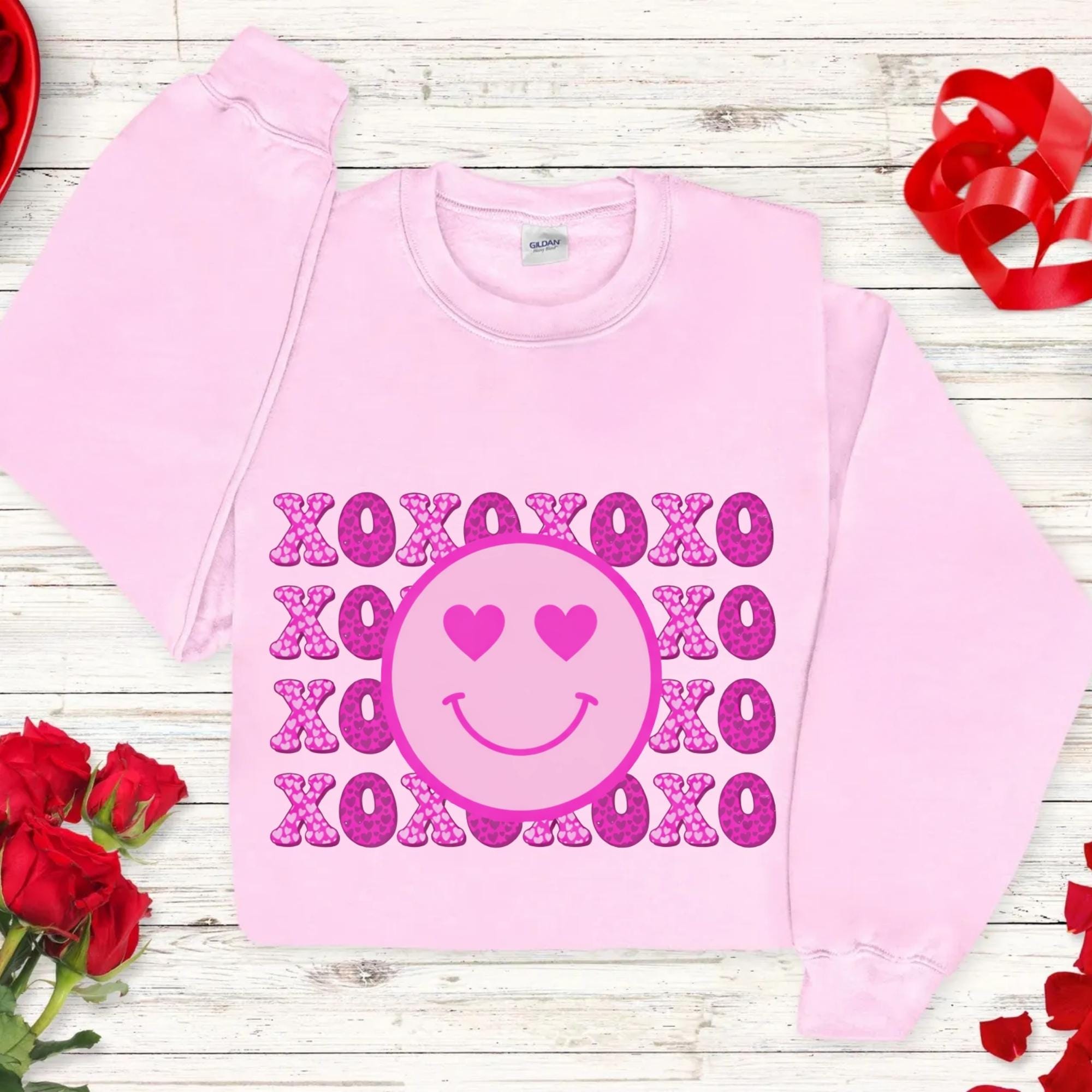 Smiley Face Sweatshirt, Valentines Day Cotton Love XOXO Tee for Women Couples Girlfriend Wife