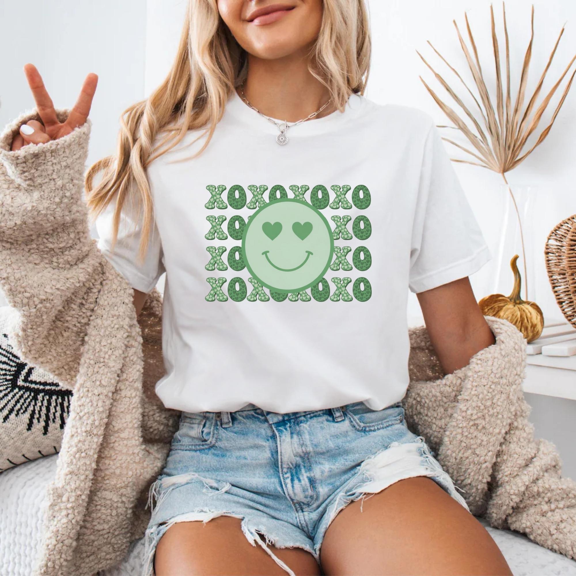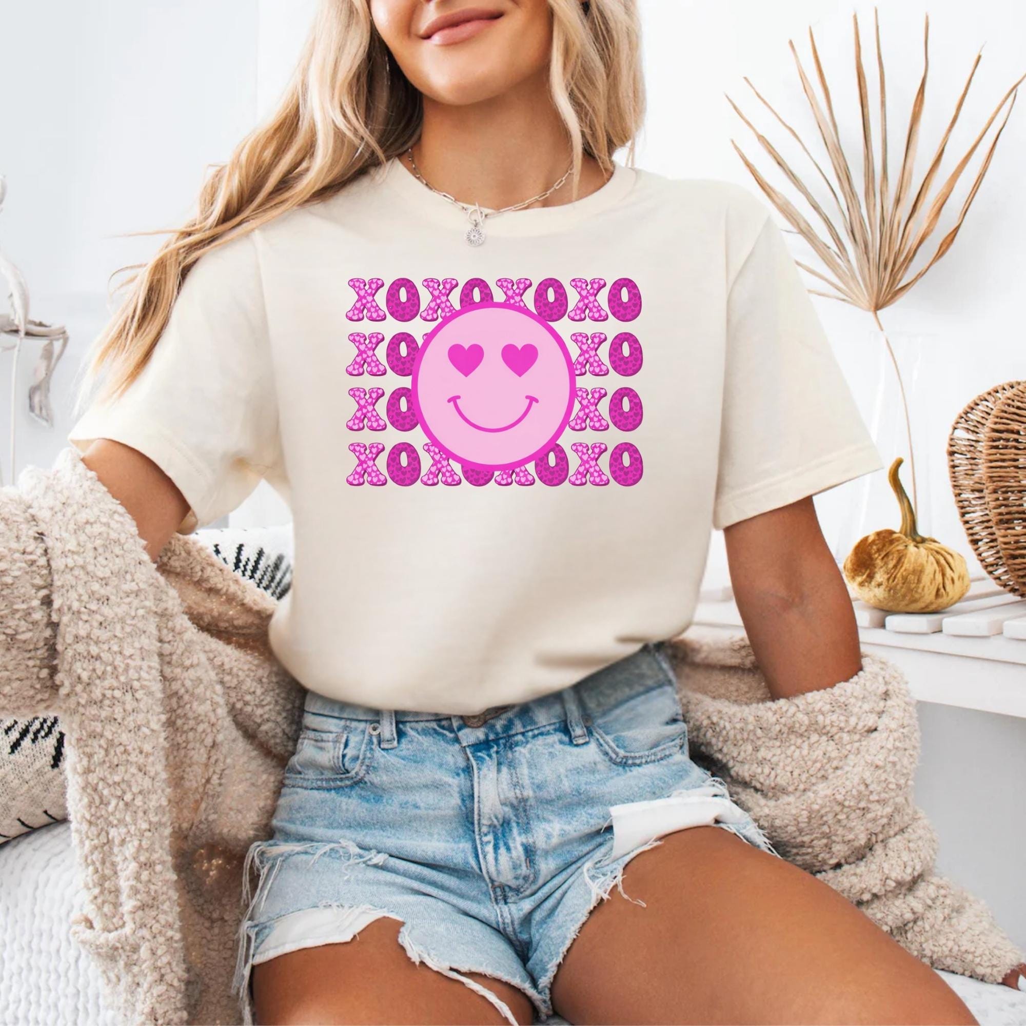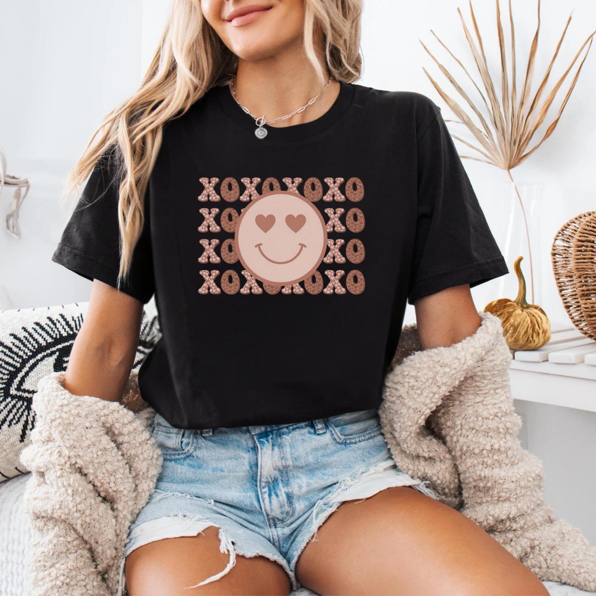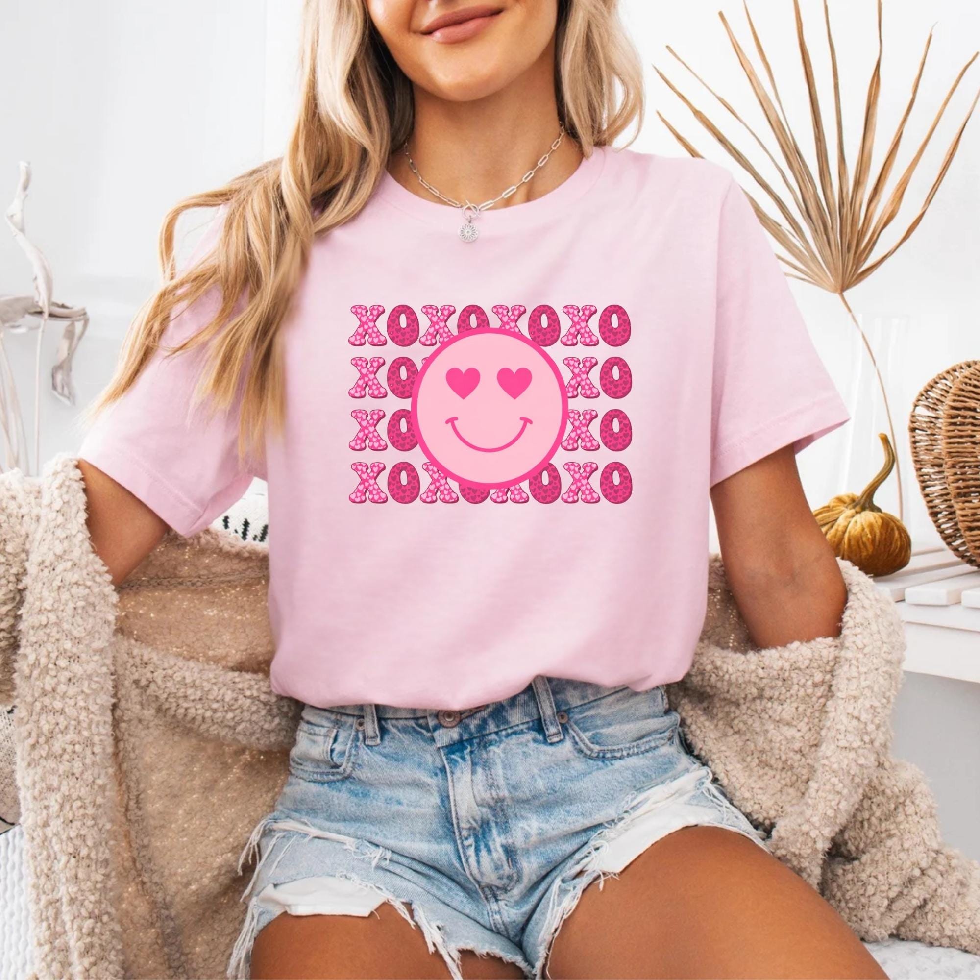 Smiley Face Shirt, Valentines Day Cotton Love XOXO Tee for Women Couples Girlfriend Wife